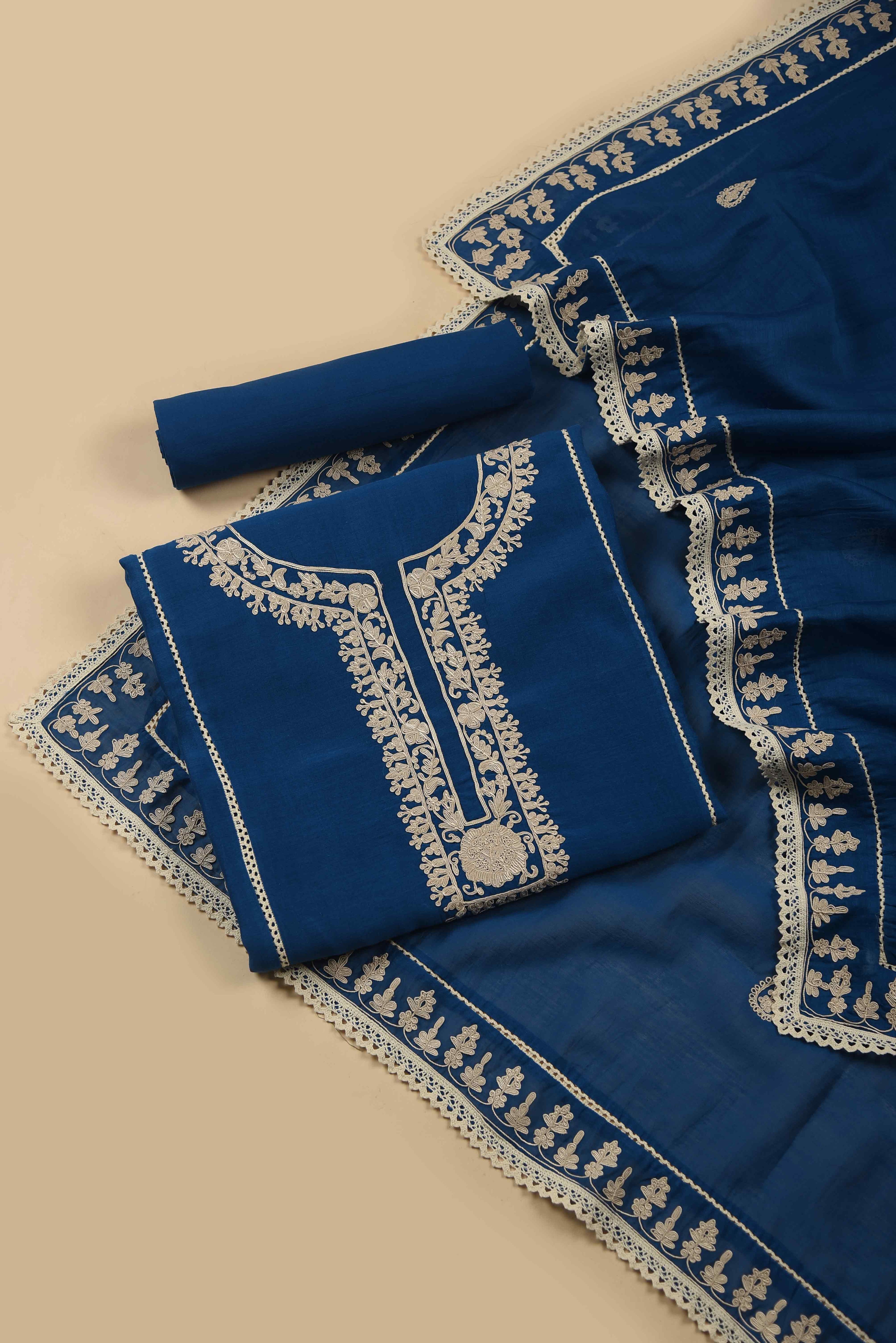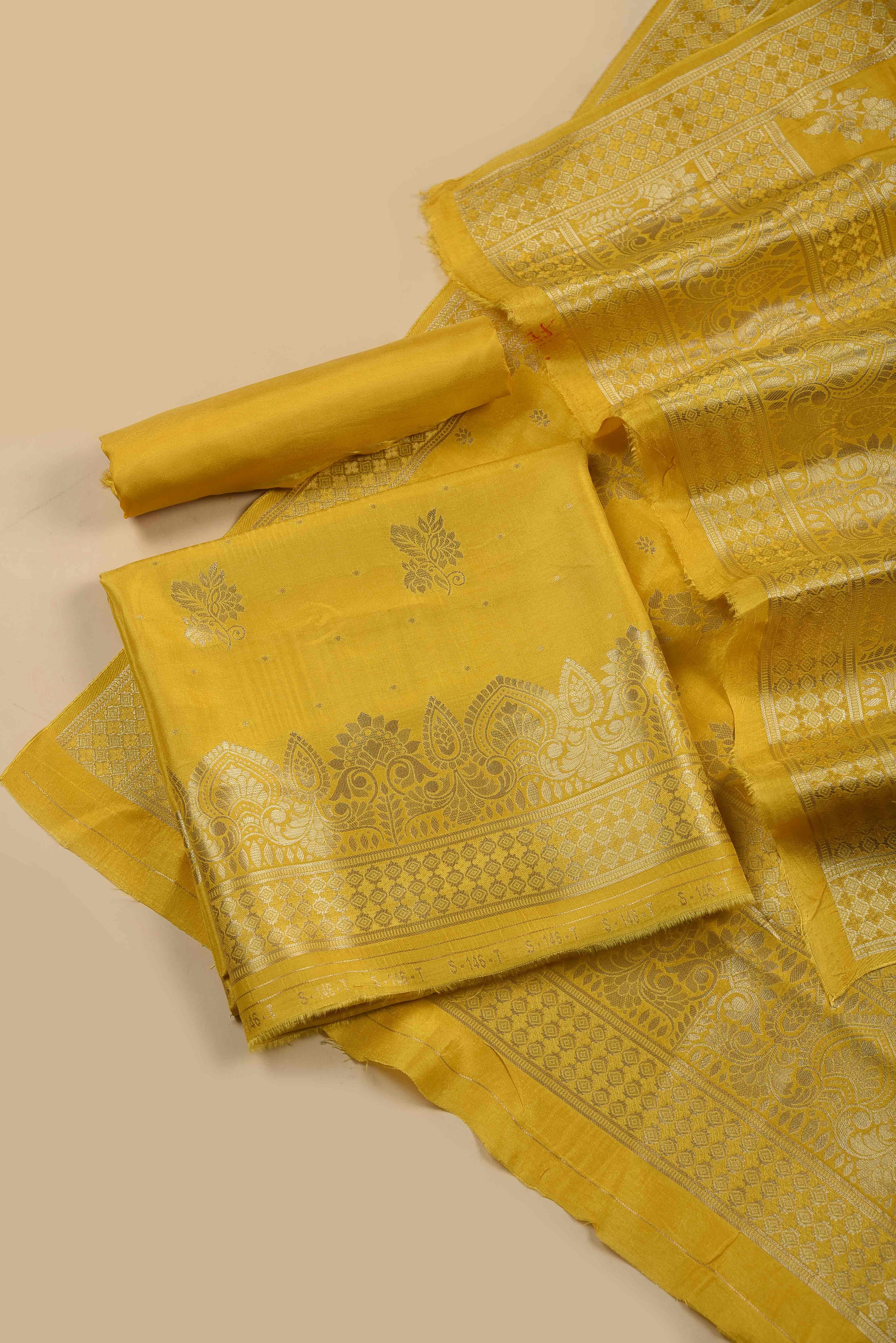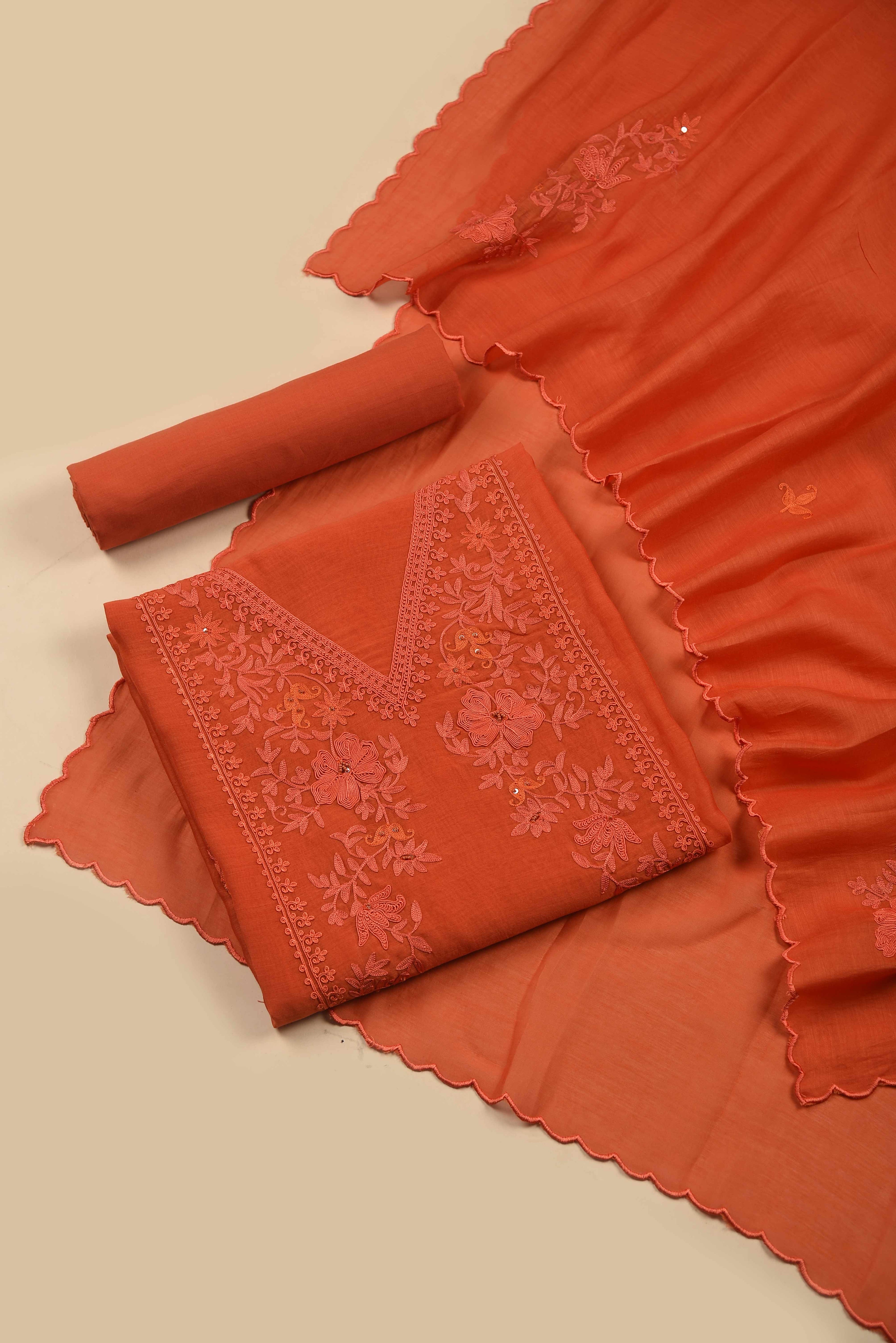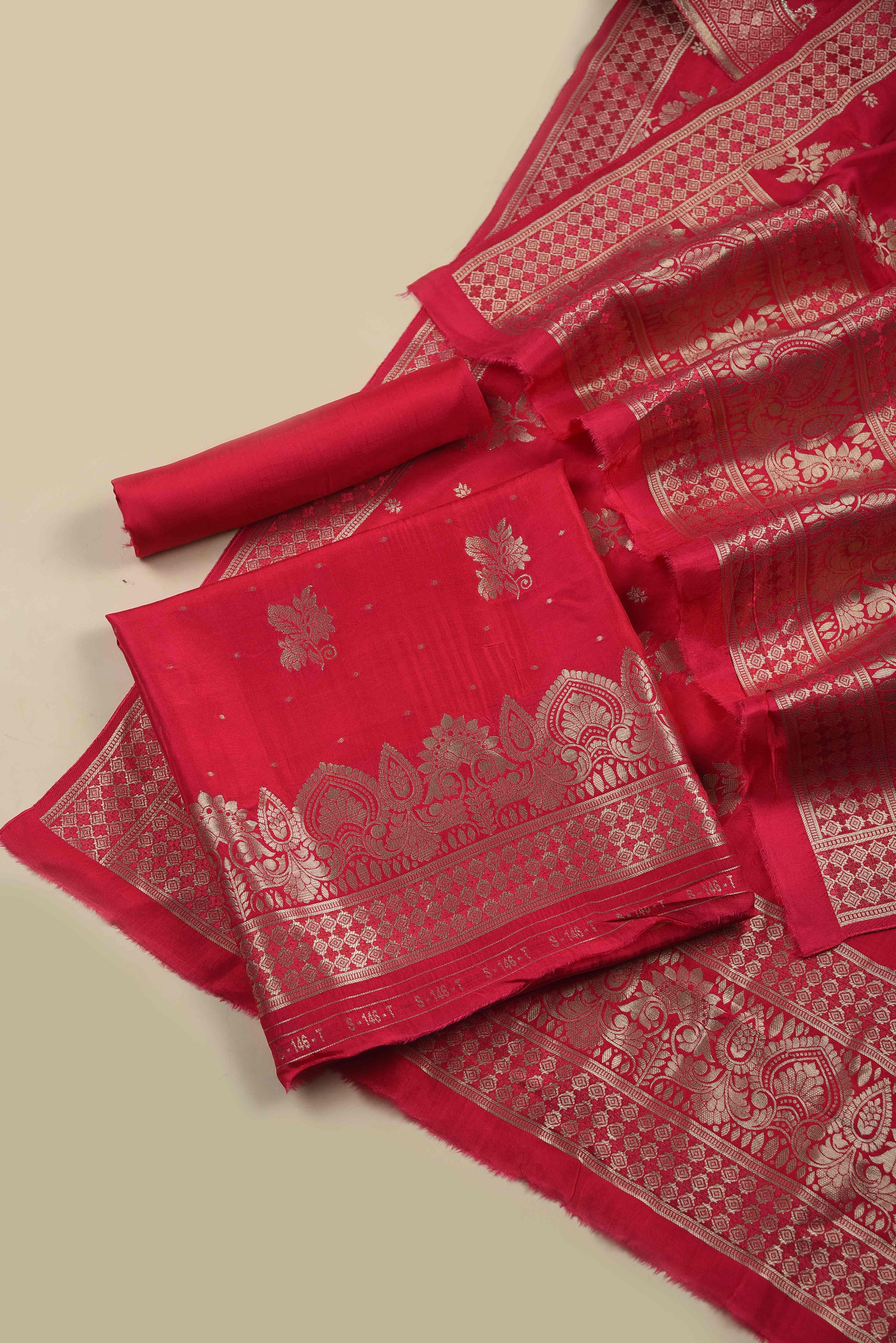 Red Linen Silk Blend Woven Unstitched Suit Fabric Set With Linen Silk Blend Woven Dupatta