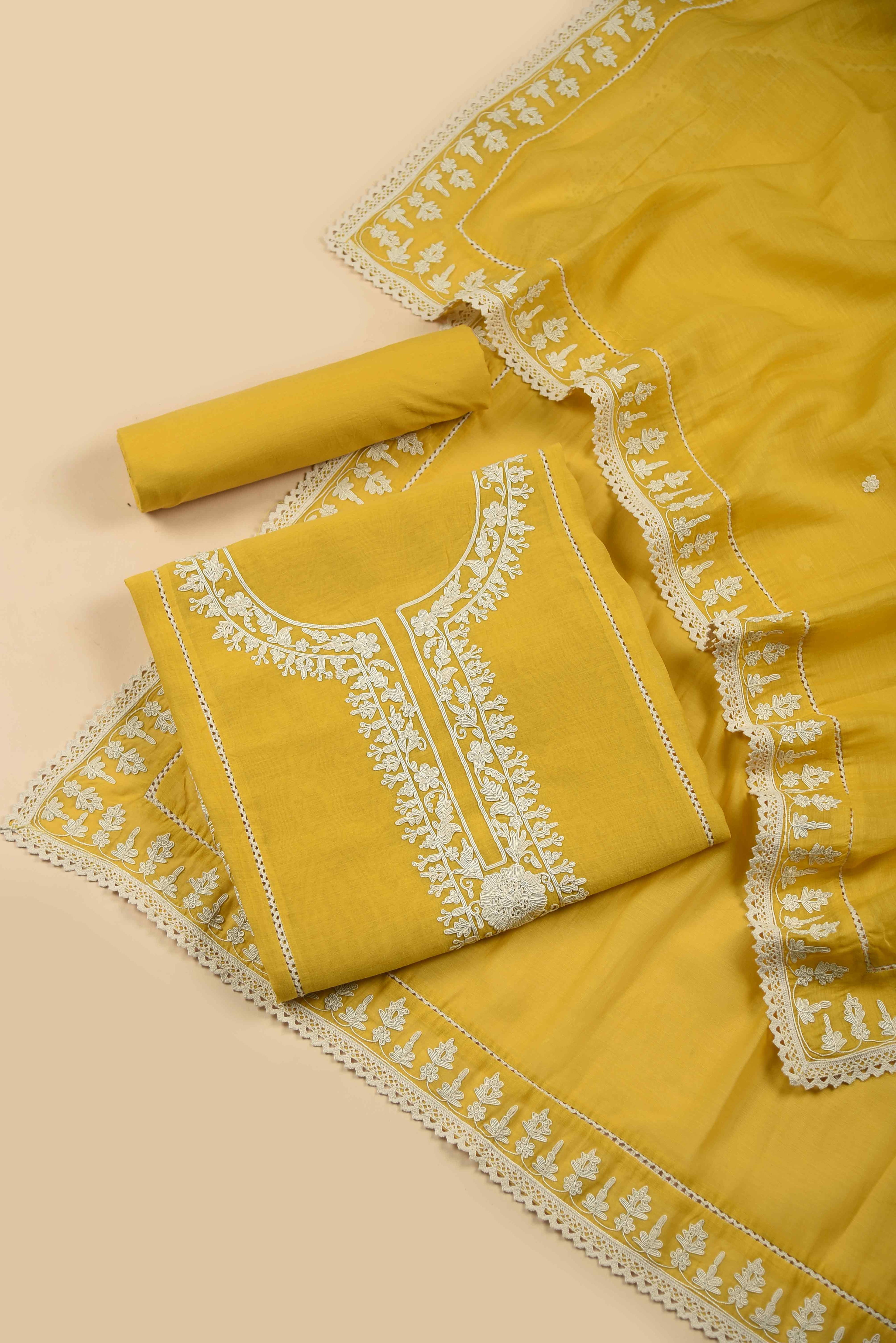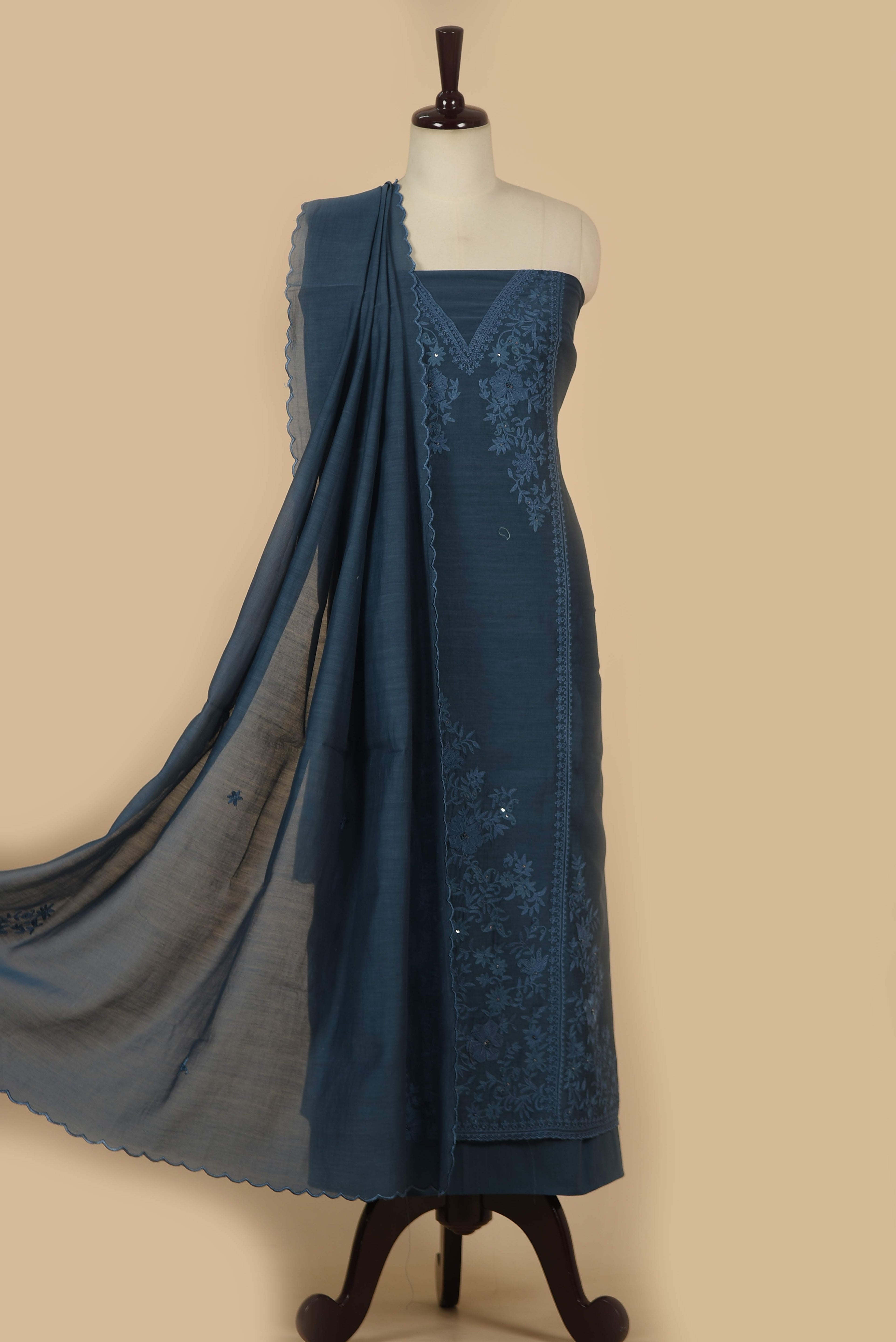 Black Cotton Printed Unstitched Suit Fabric Set With Printed Cotton Dupatta