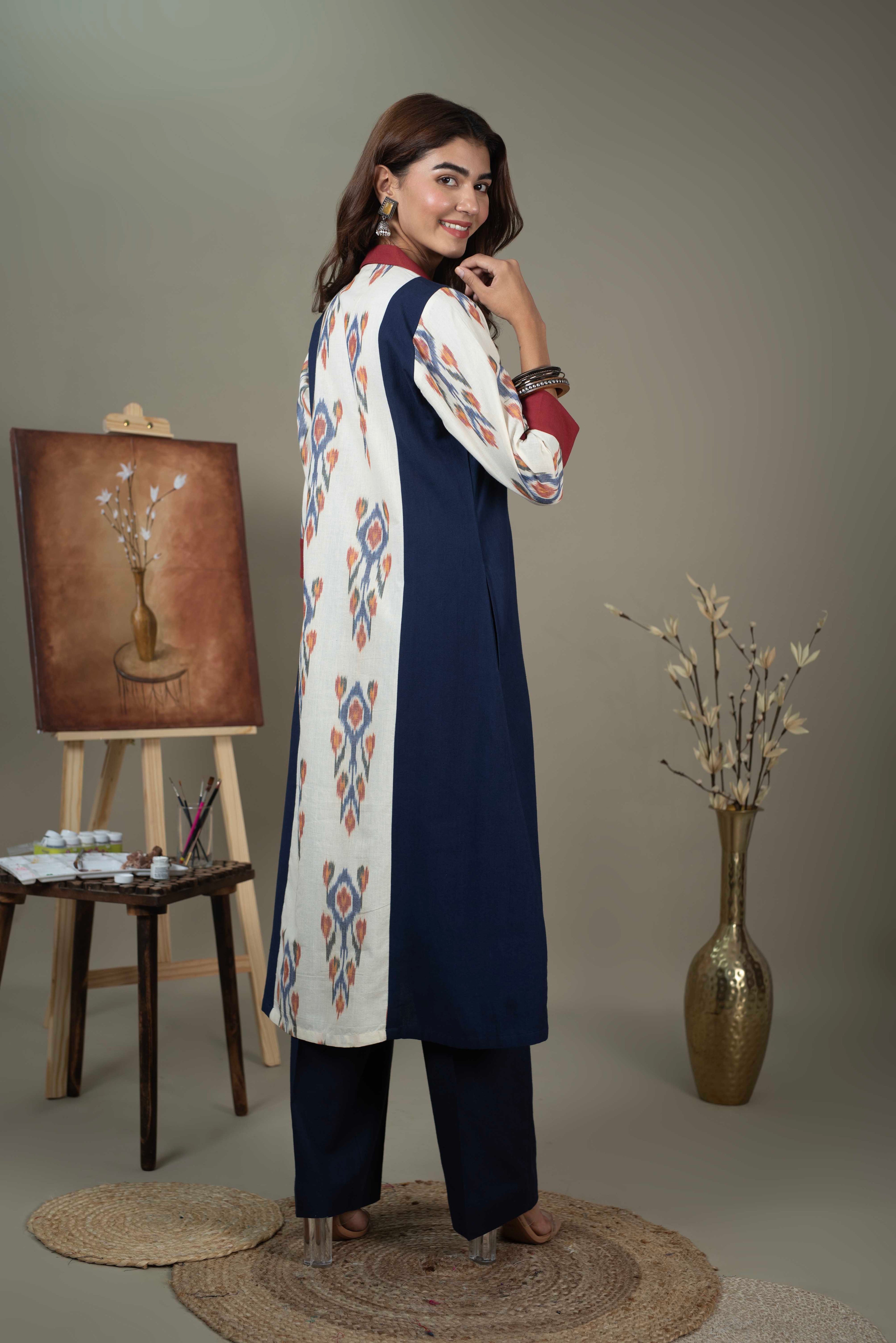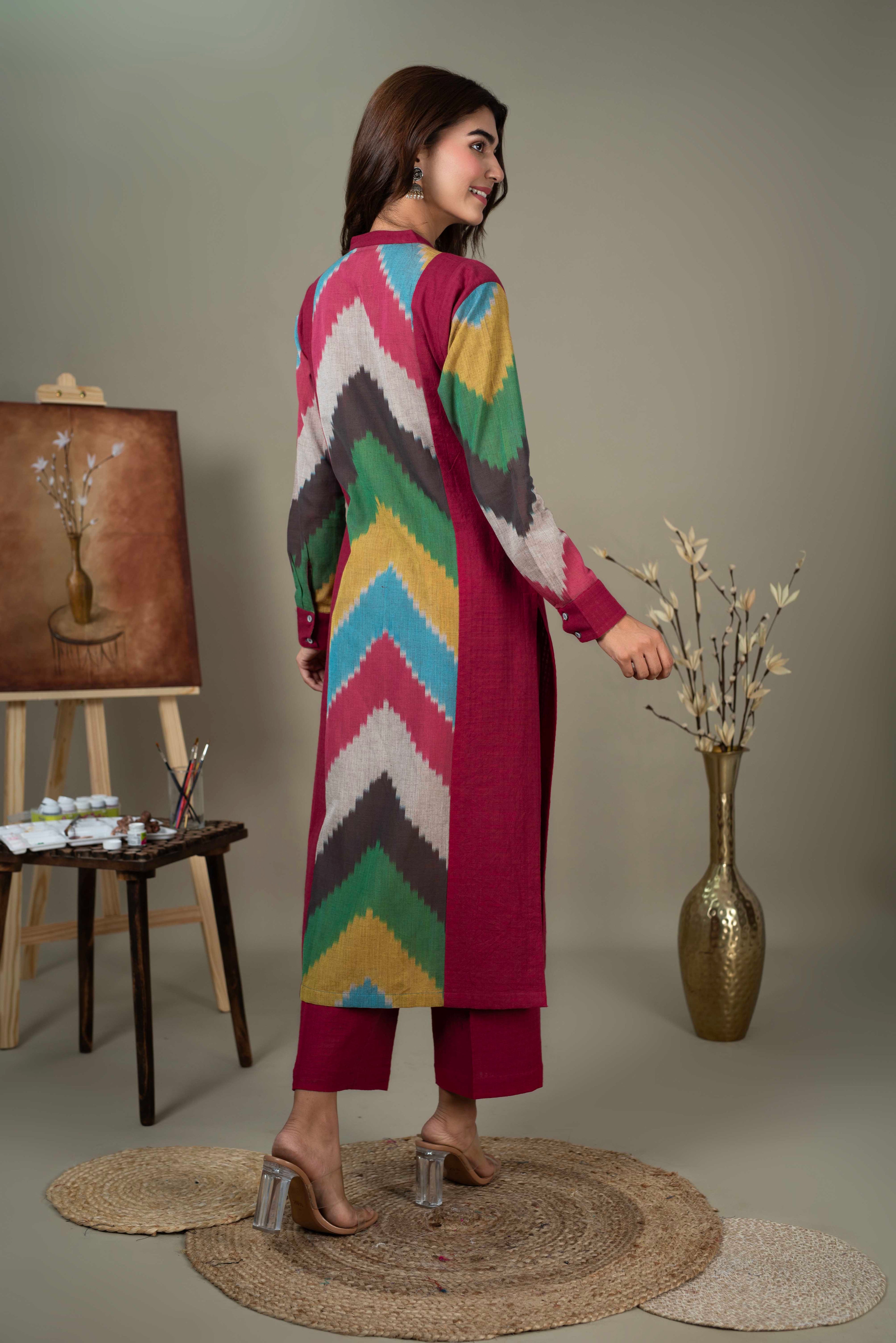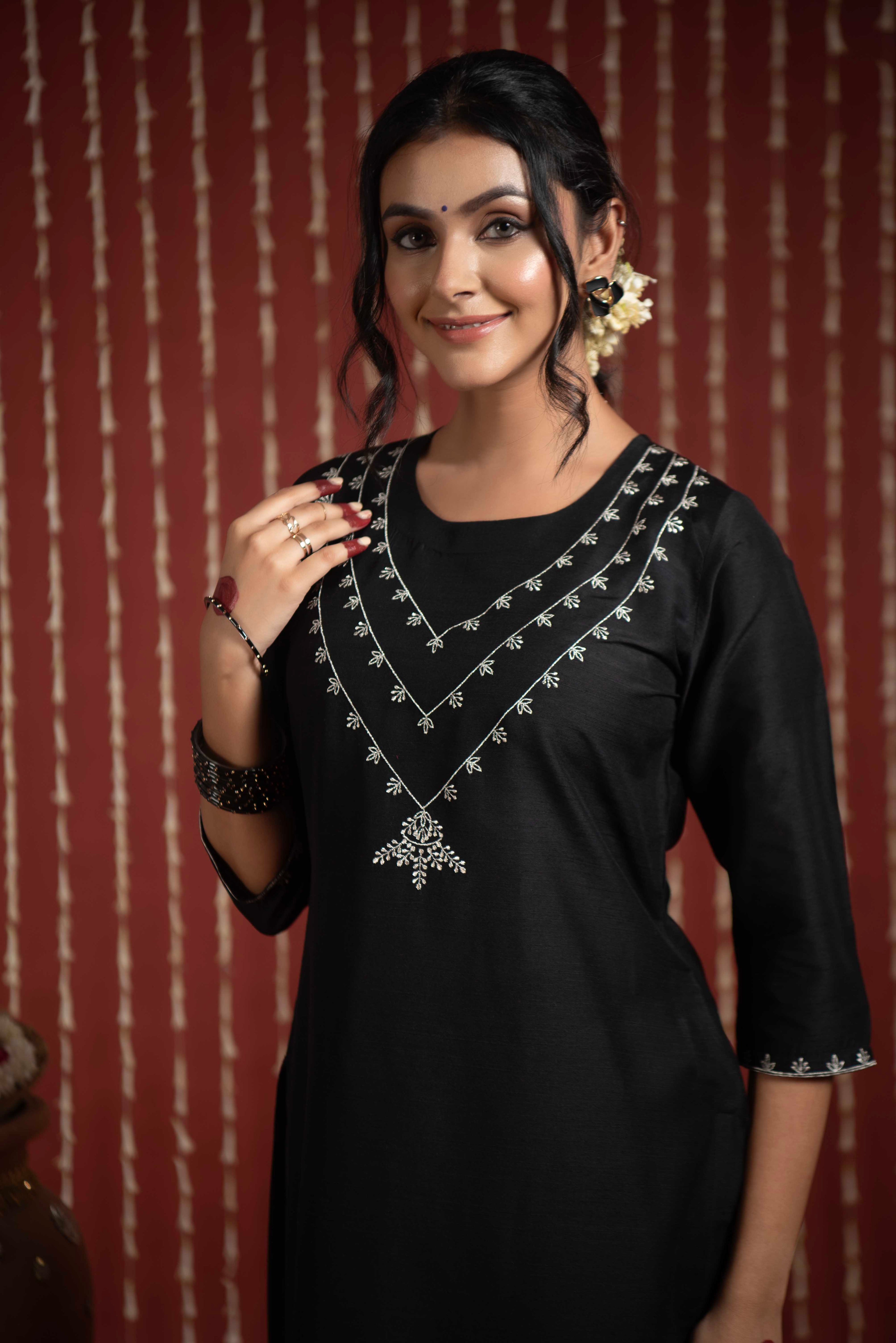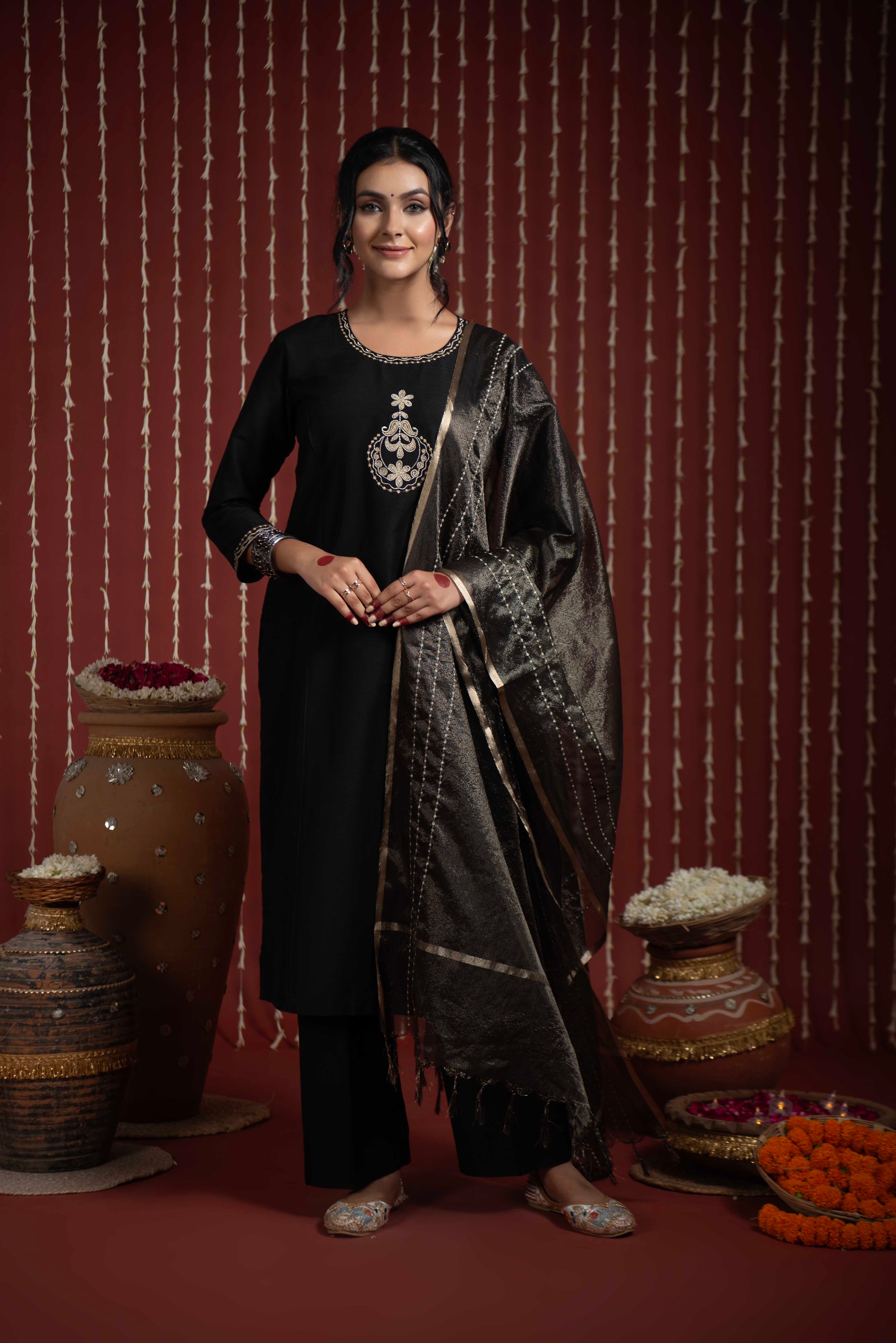 Black Winter Wear Wool Spun Blend Tribal Embroidered Co-ord Set-Regular Fit