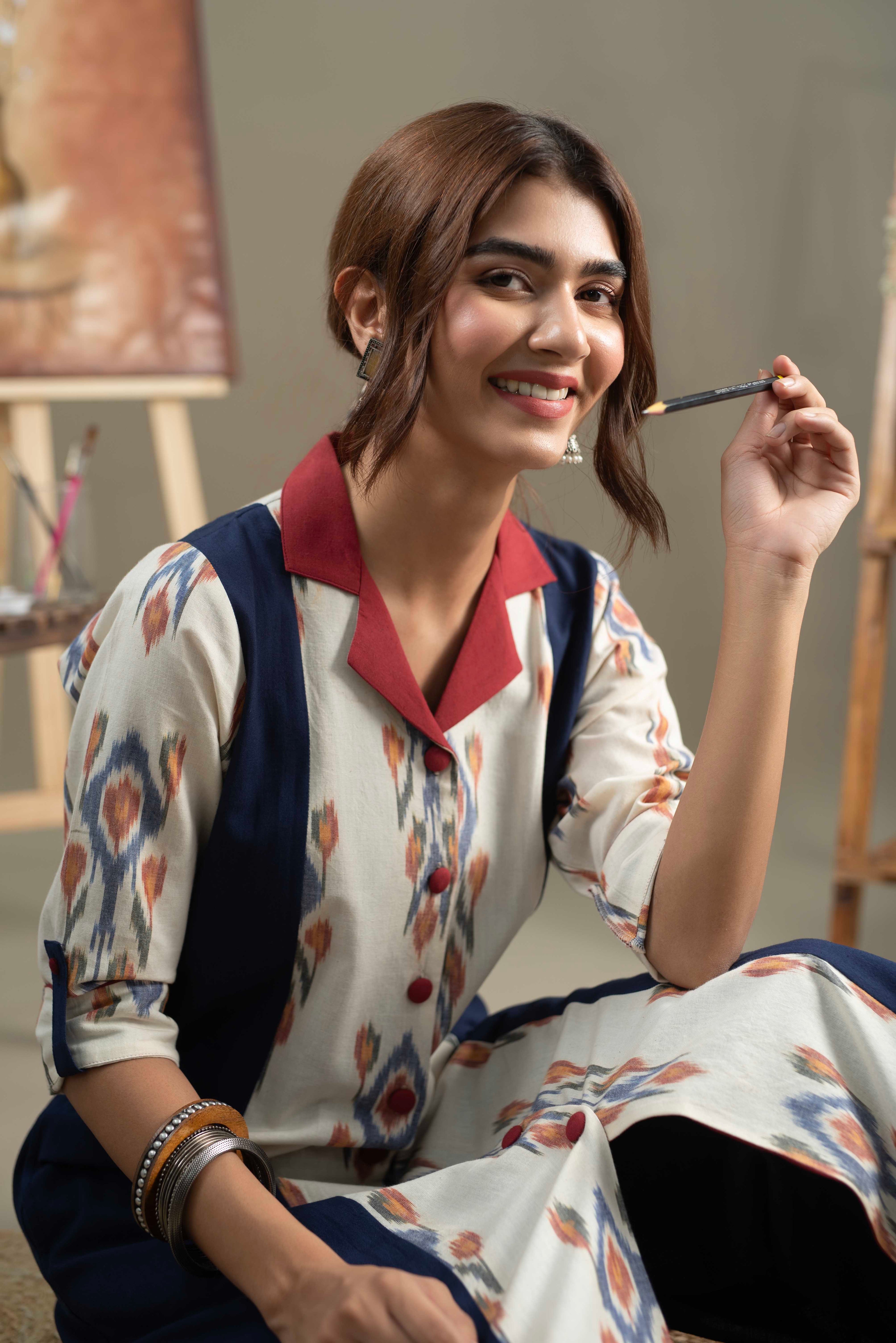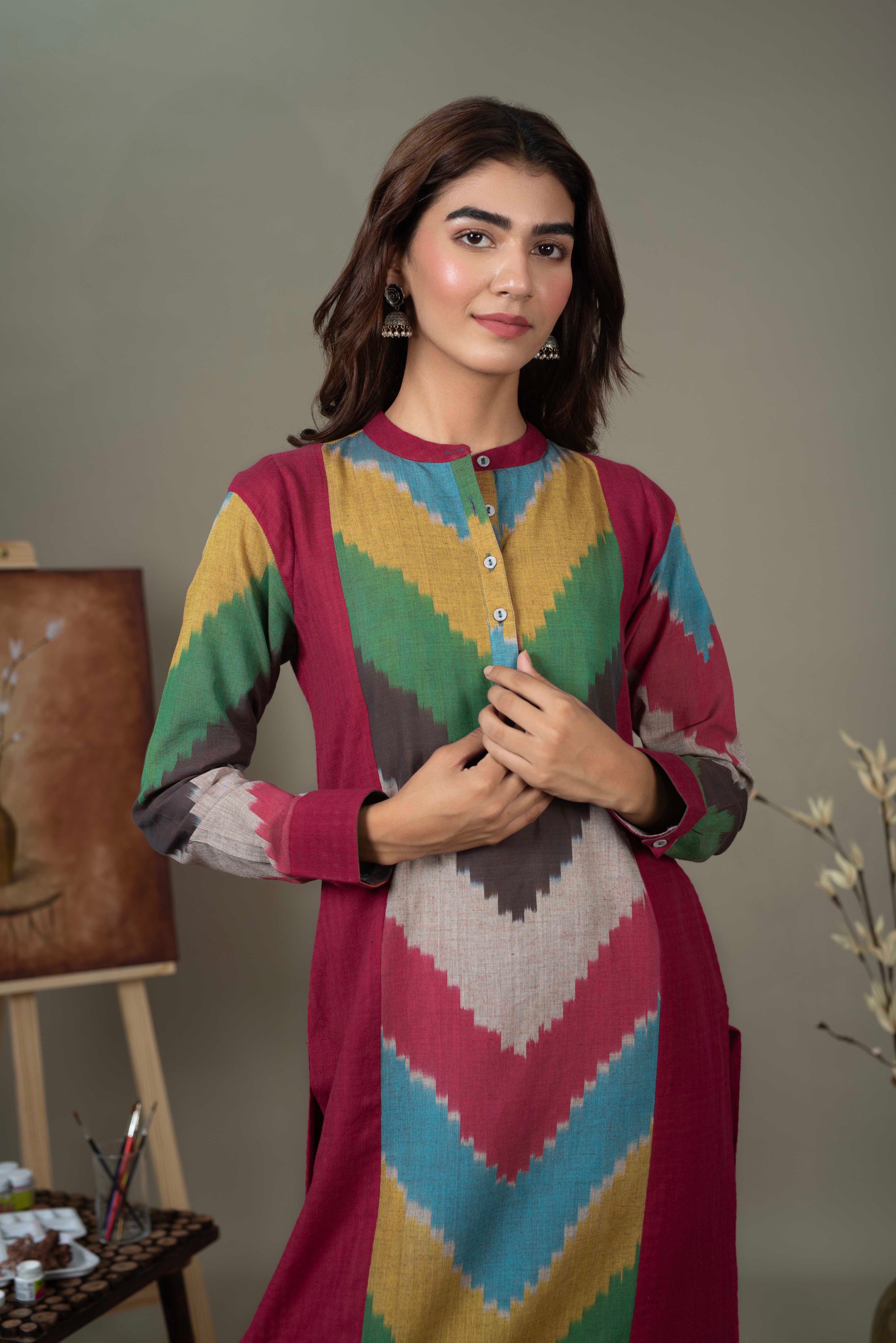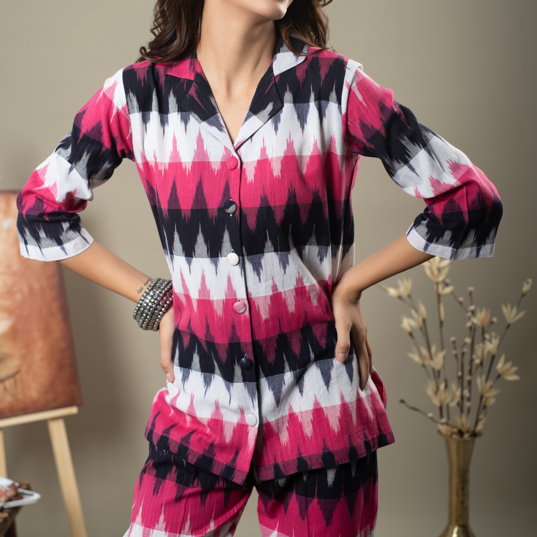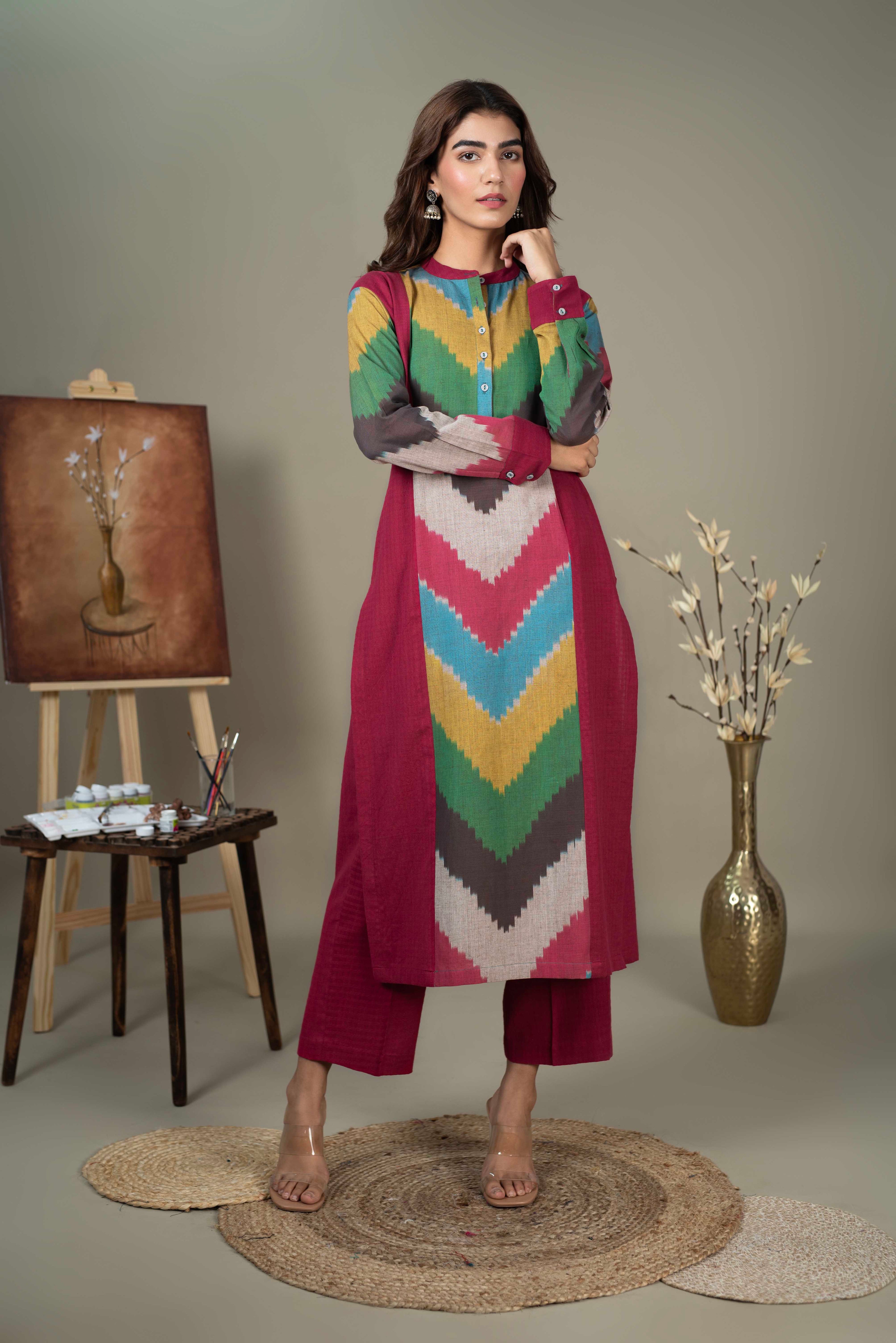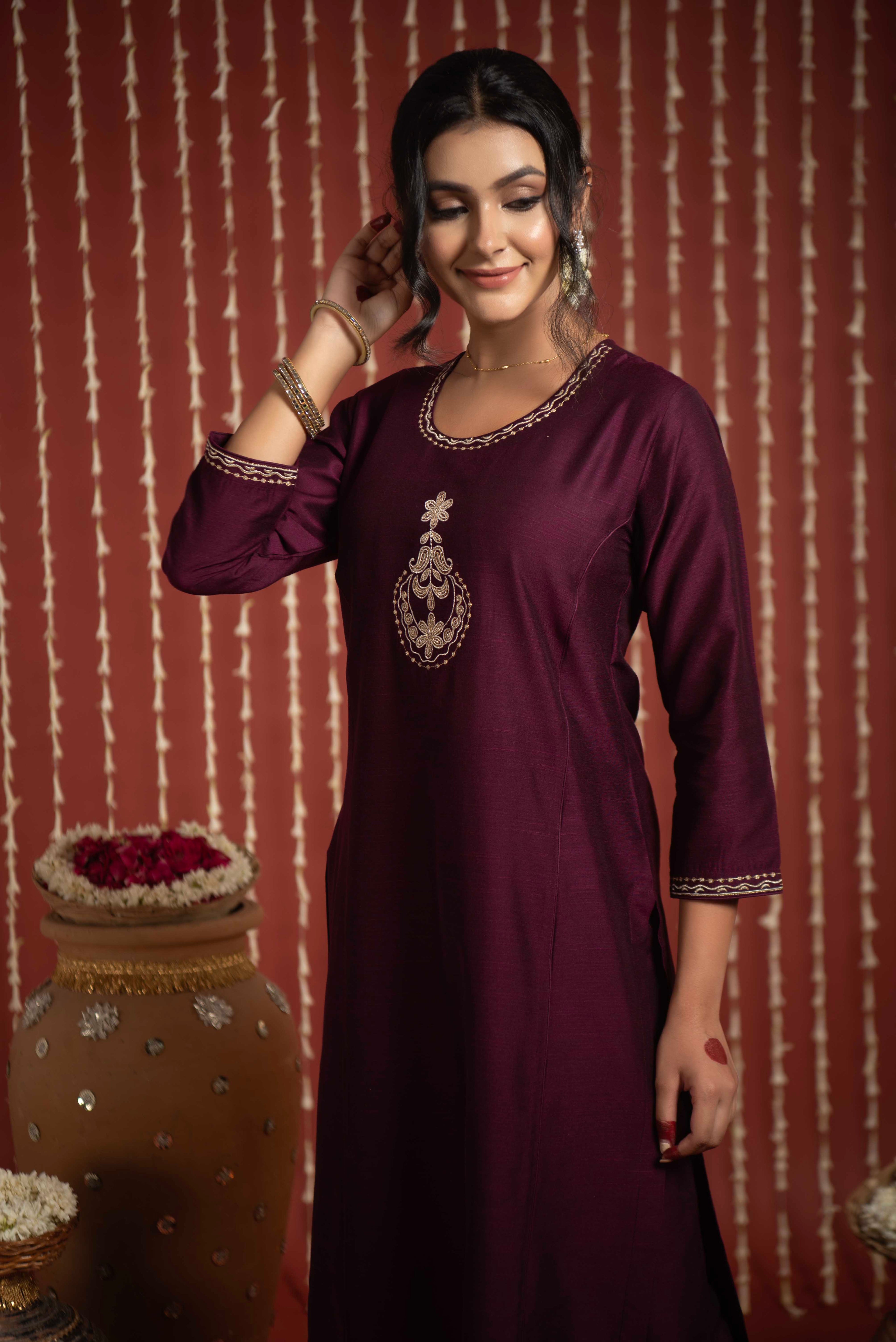 Black Winter Wear Wool Spun Blend Tribal Embroidered Co-ord Set-Regular Fit