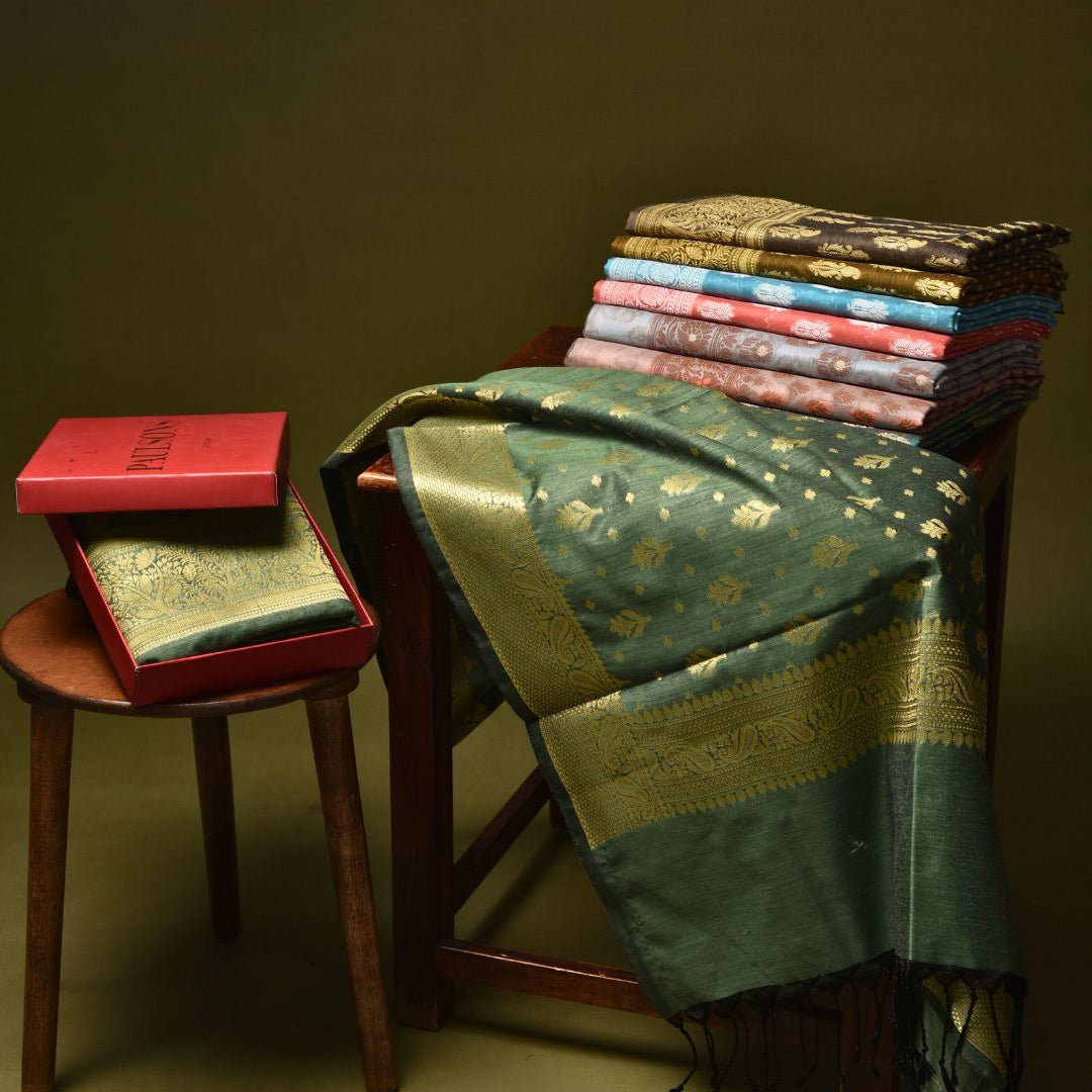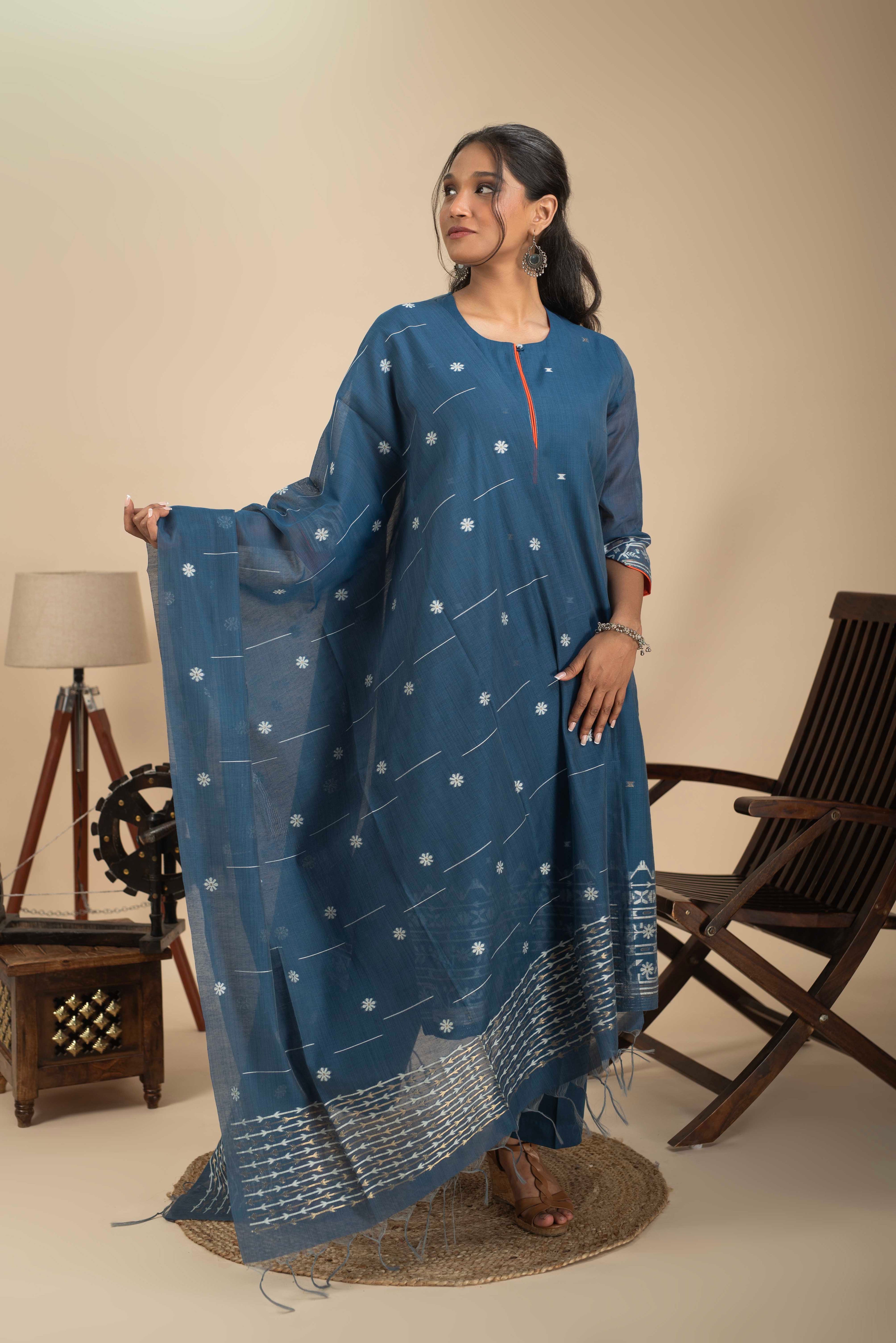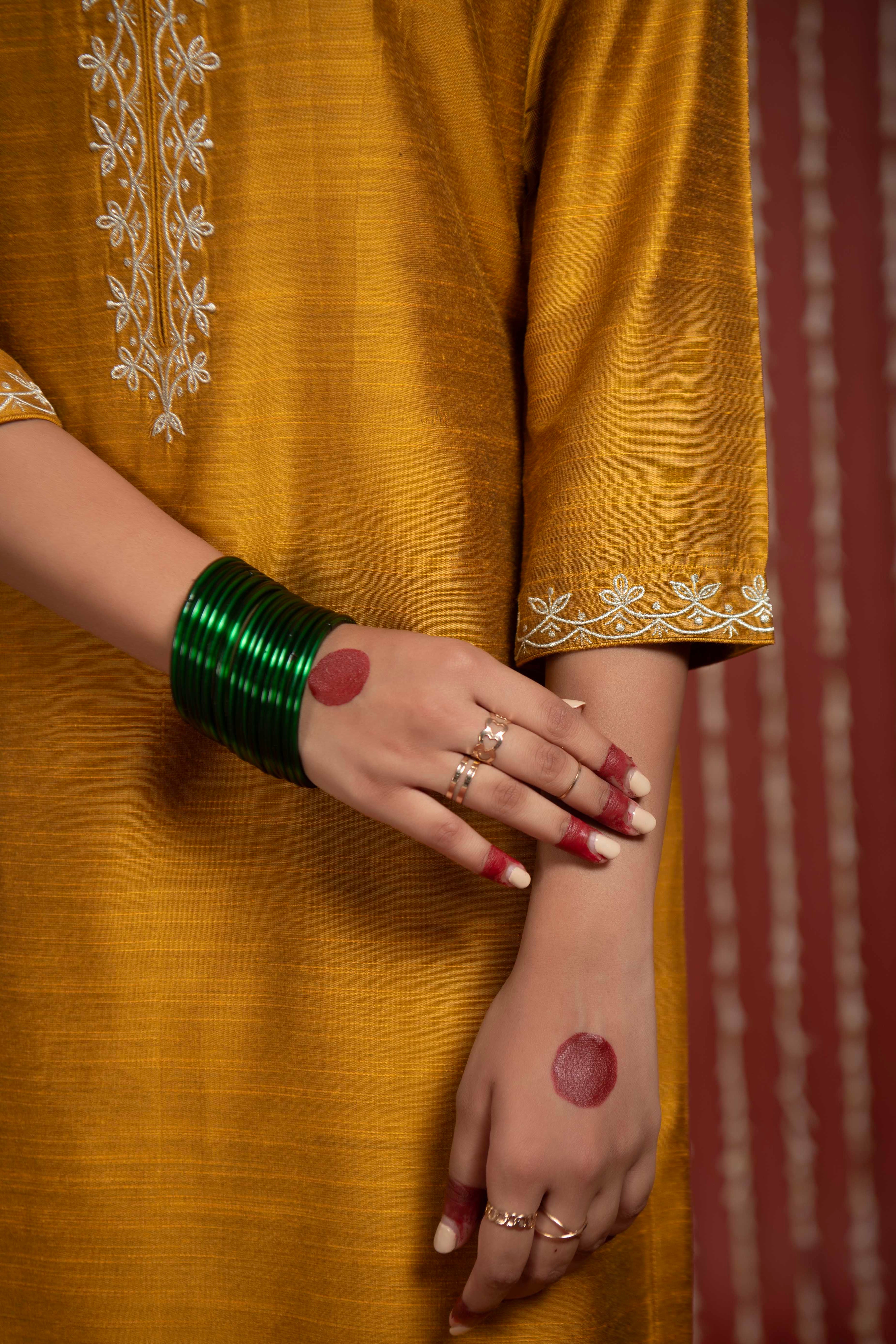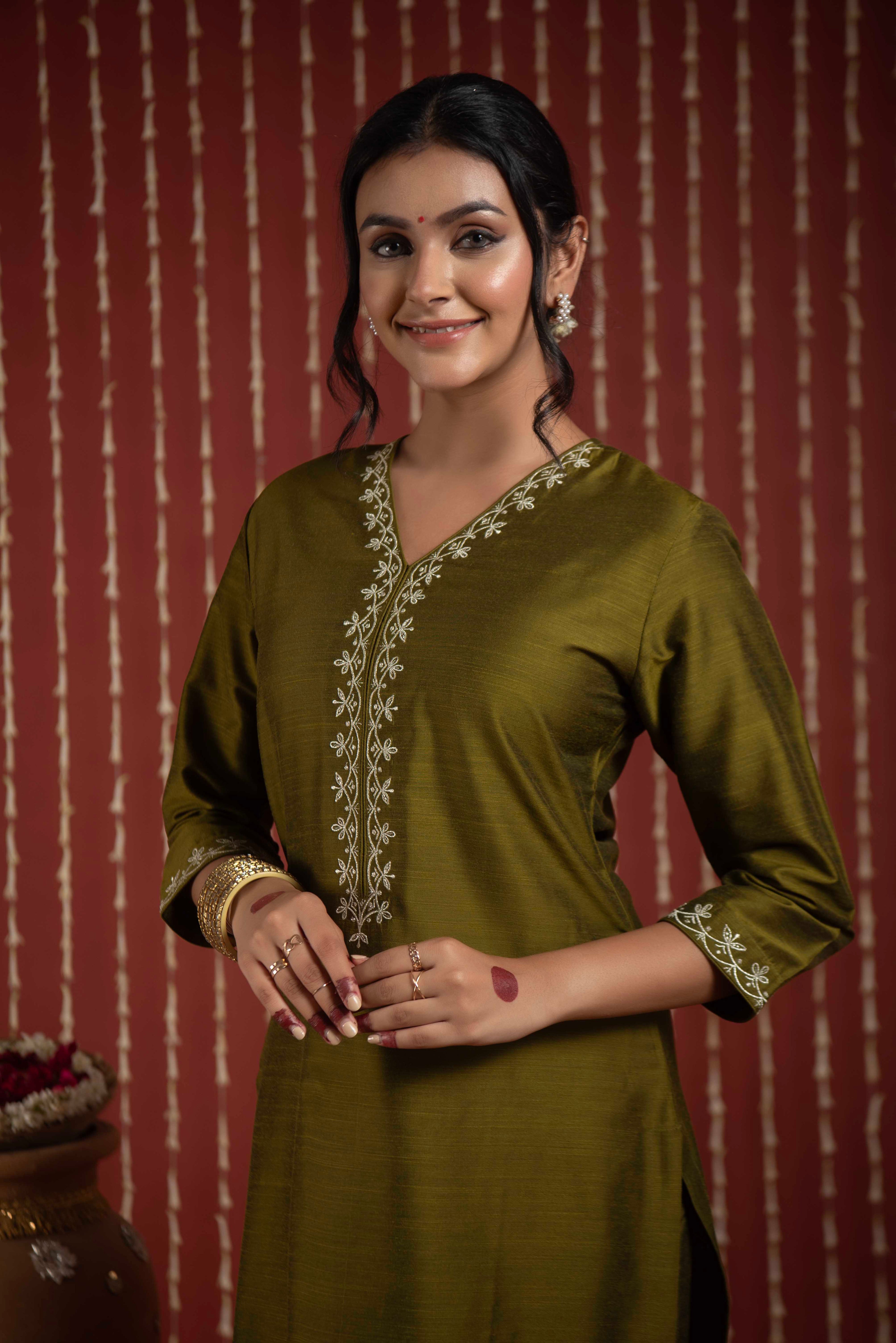 Green Cotton Silk Zari Work A-Line Kurta Set Regular Fit
