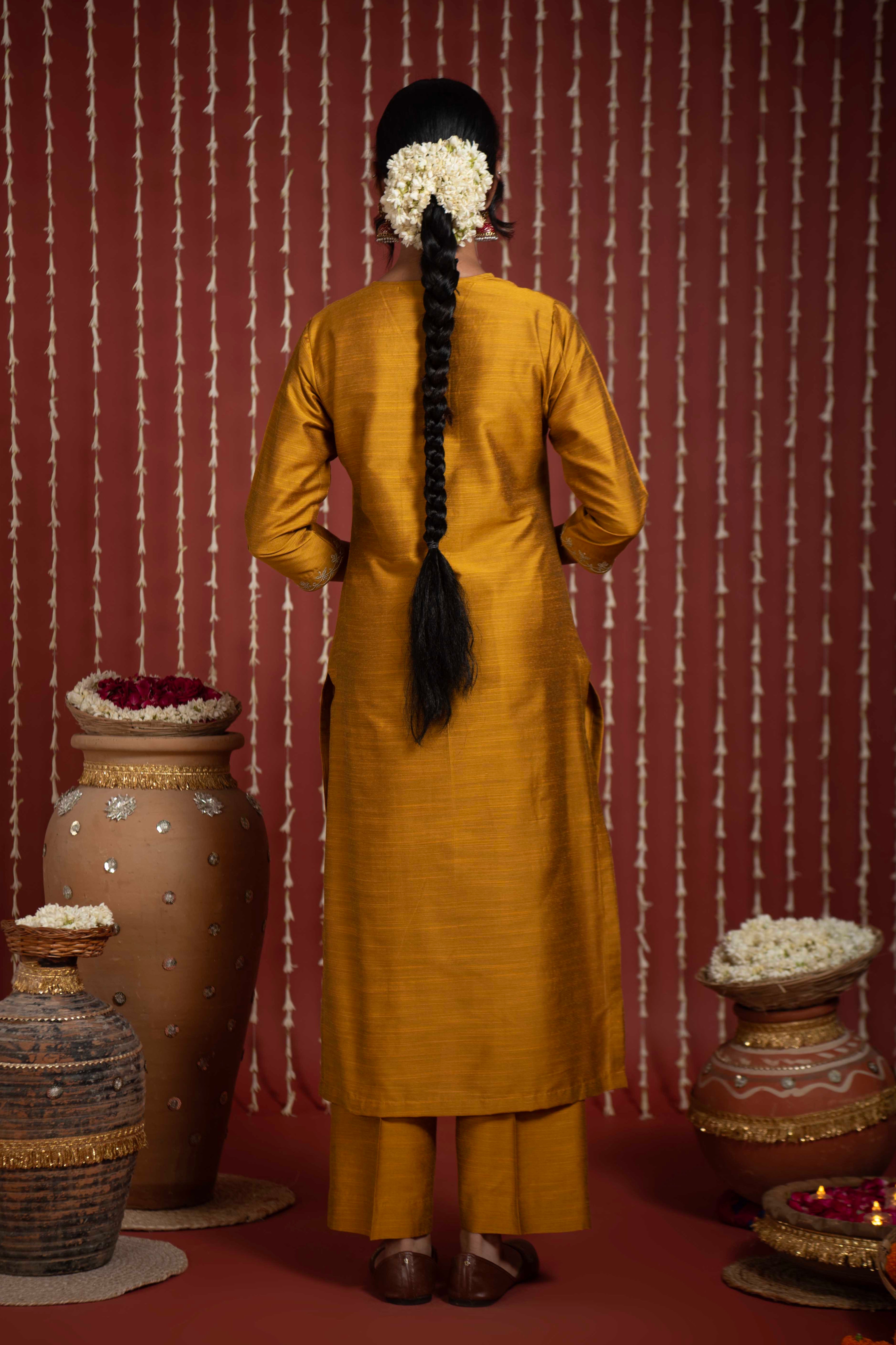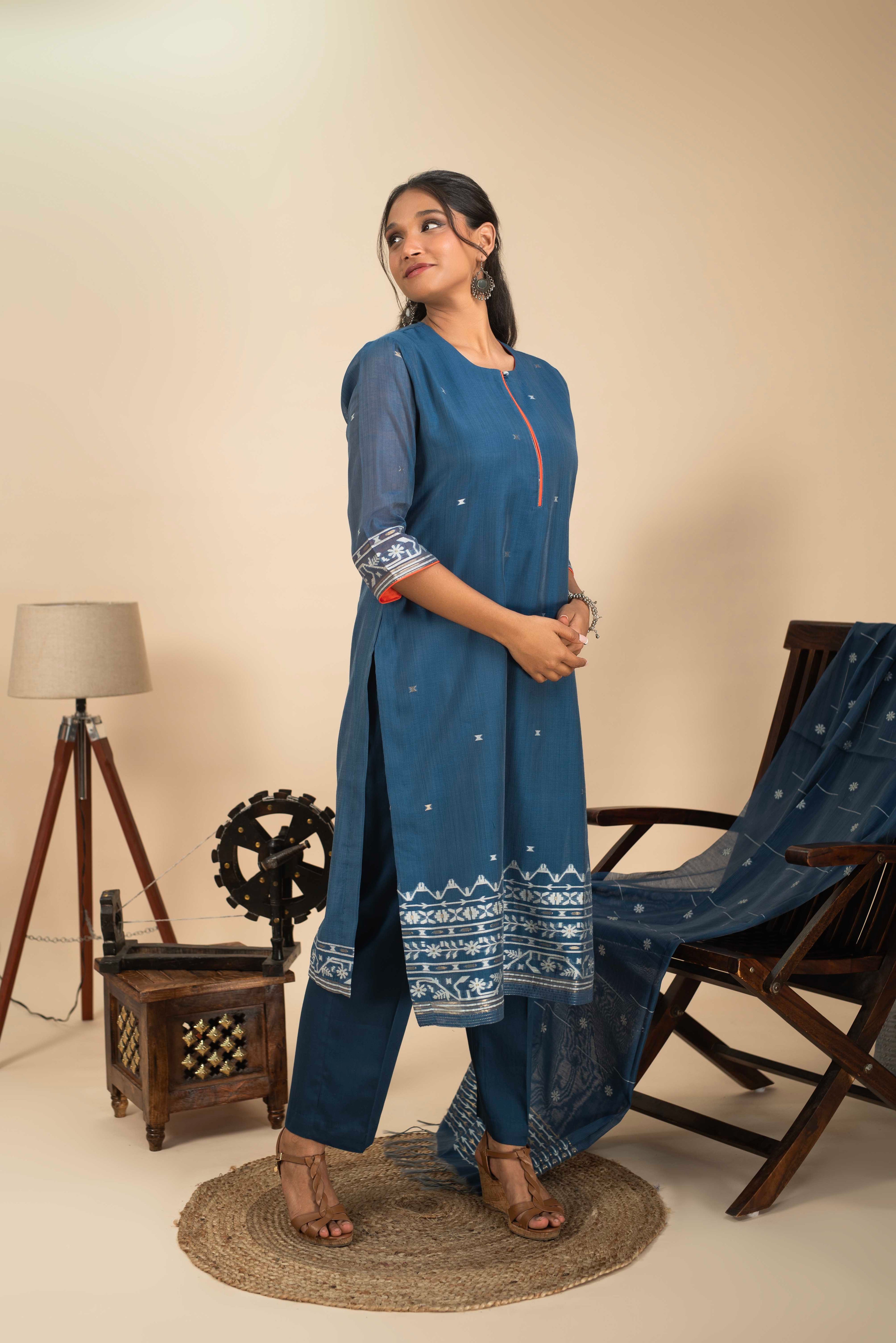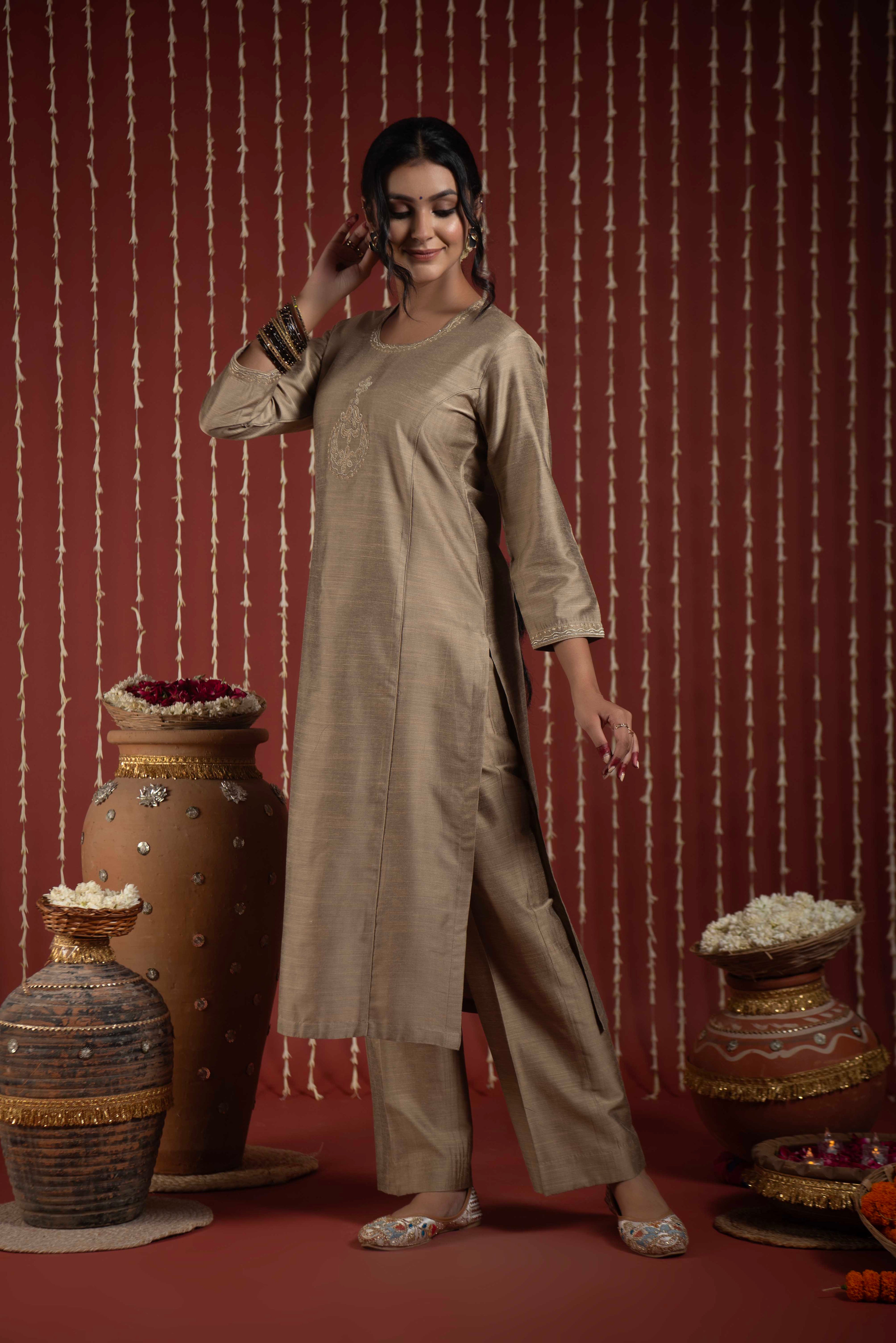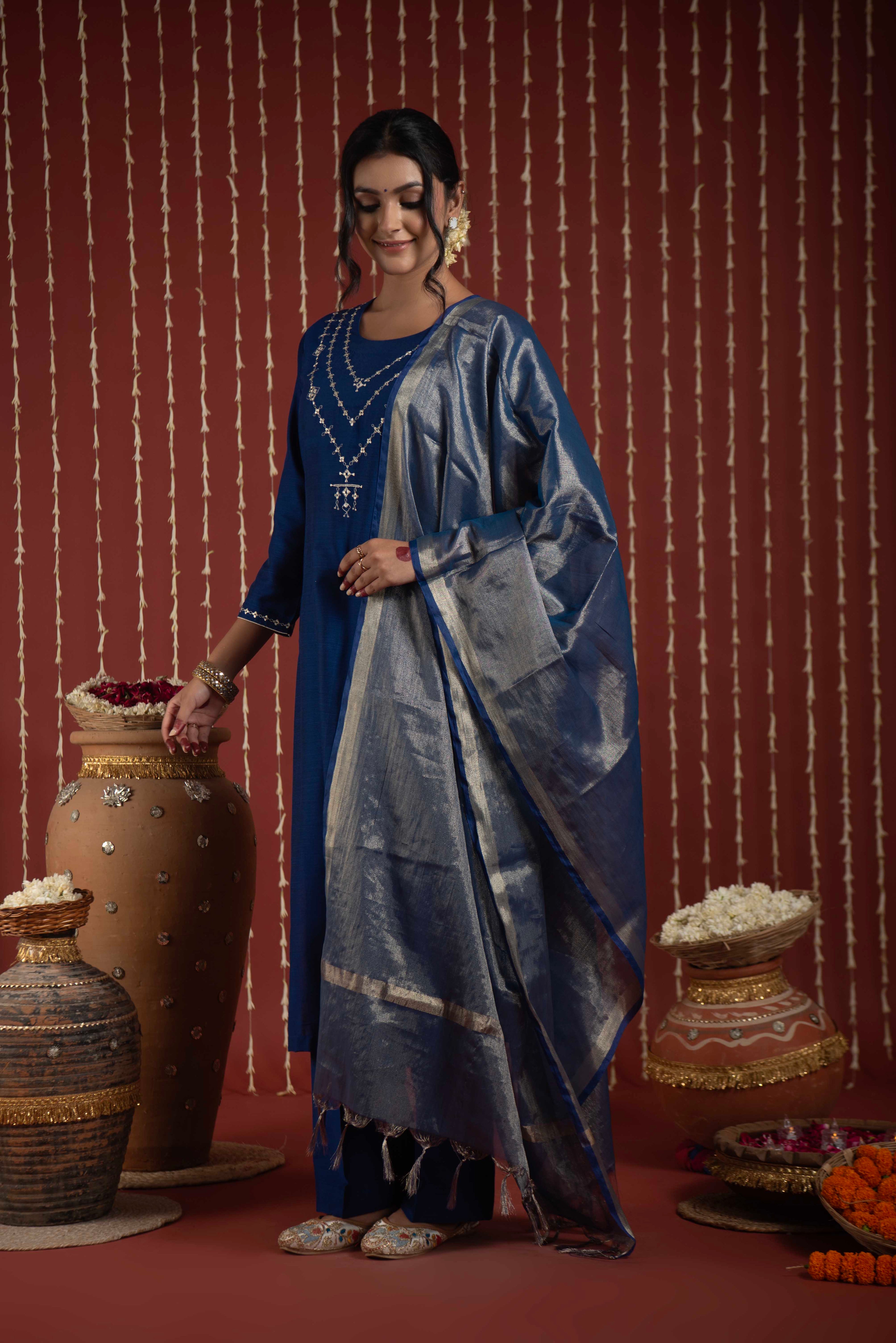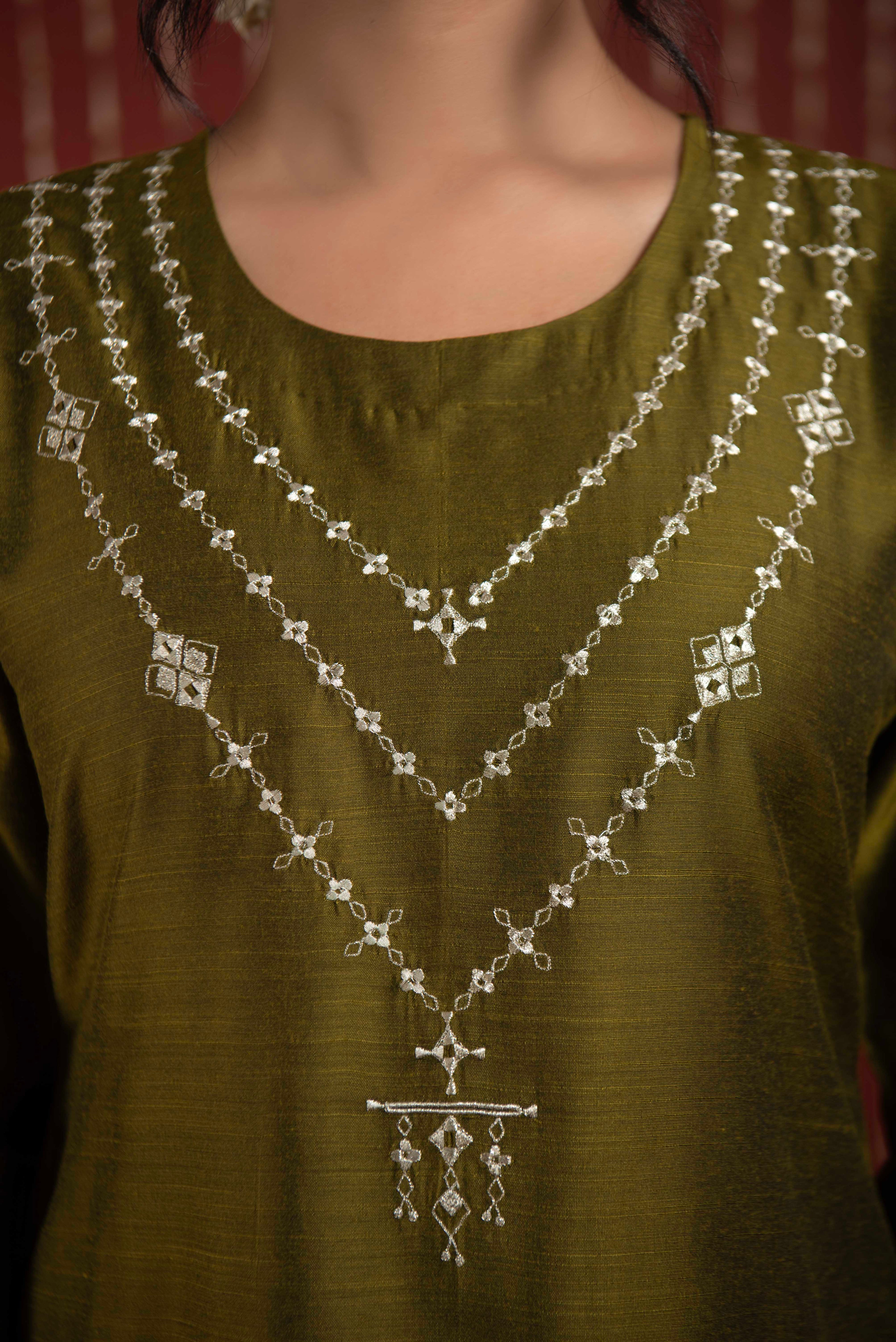 Green Cotton Silk Zari Work A-Line Kurta Set Regular Fit