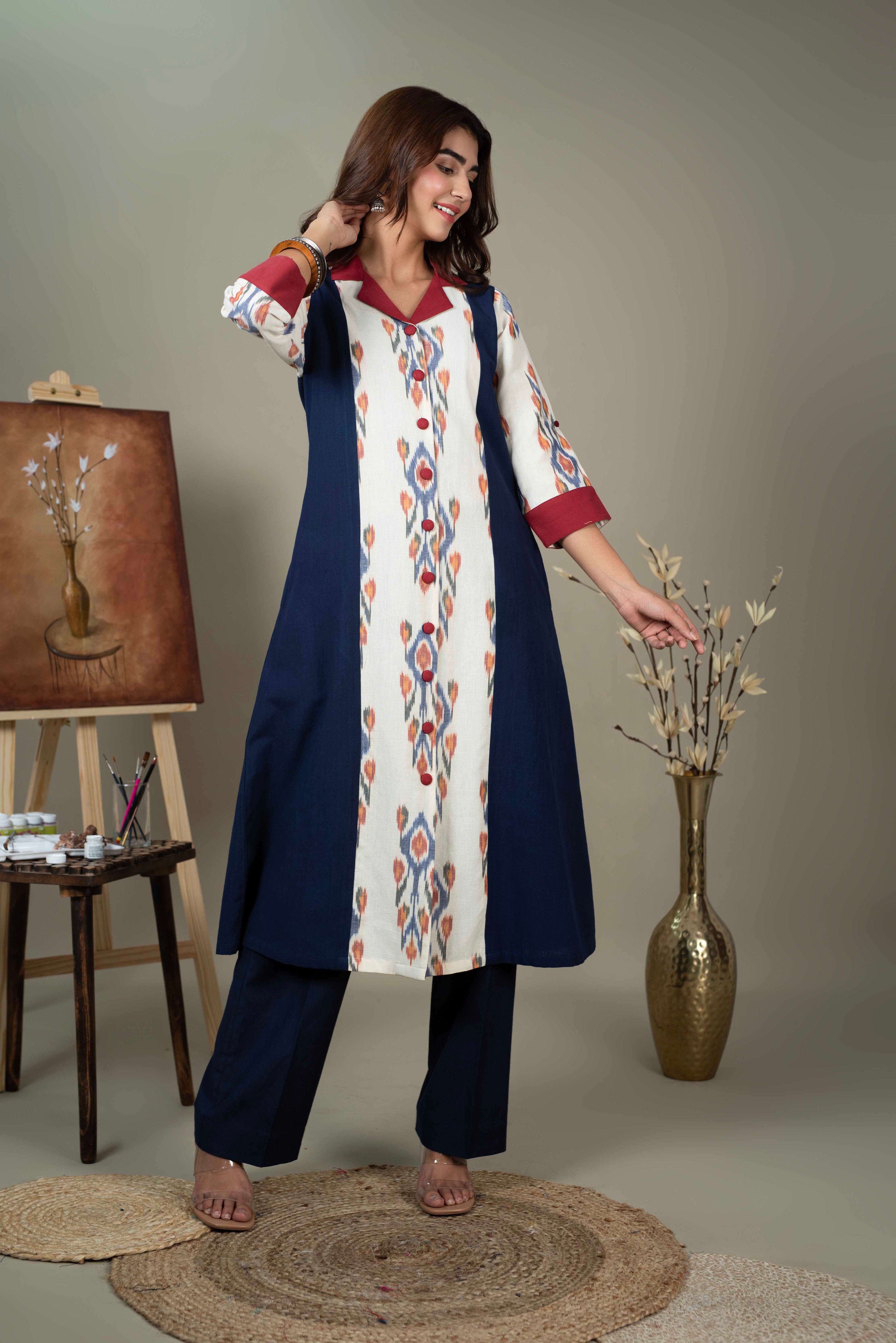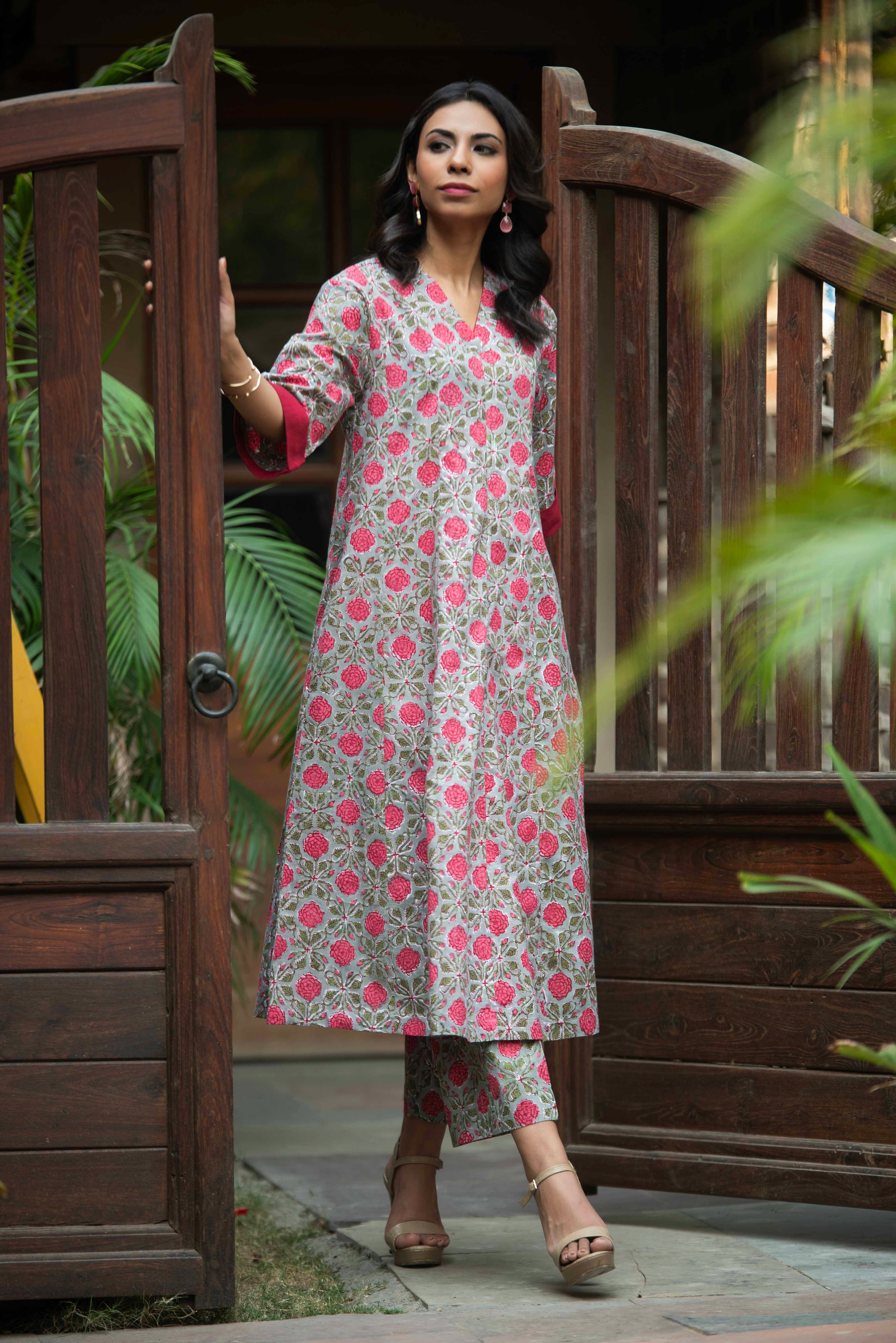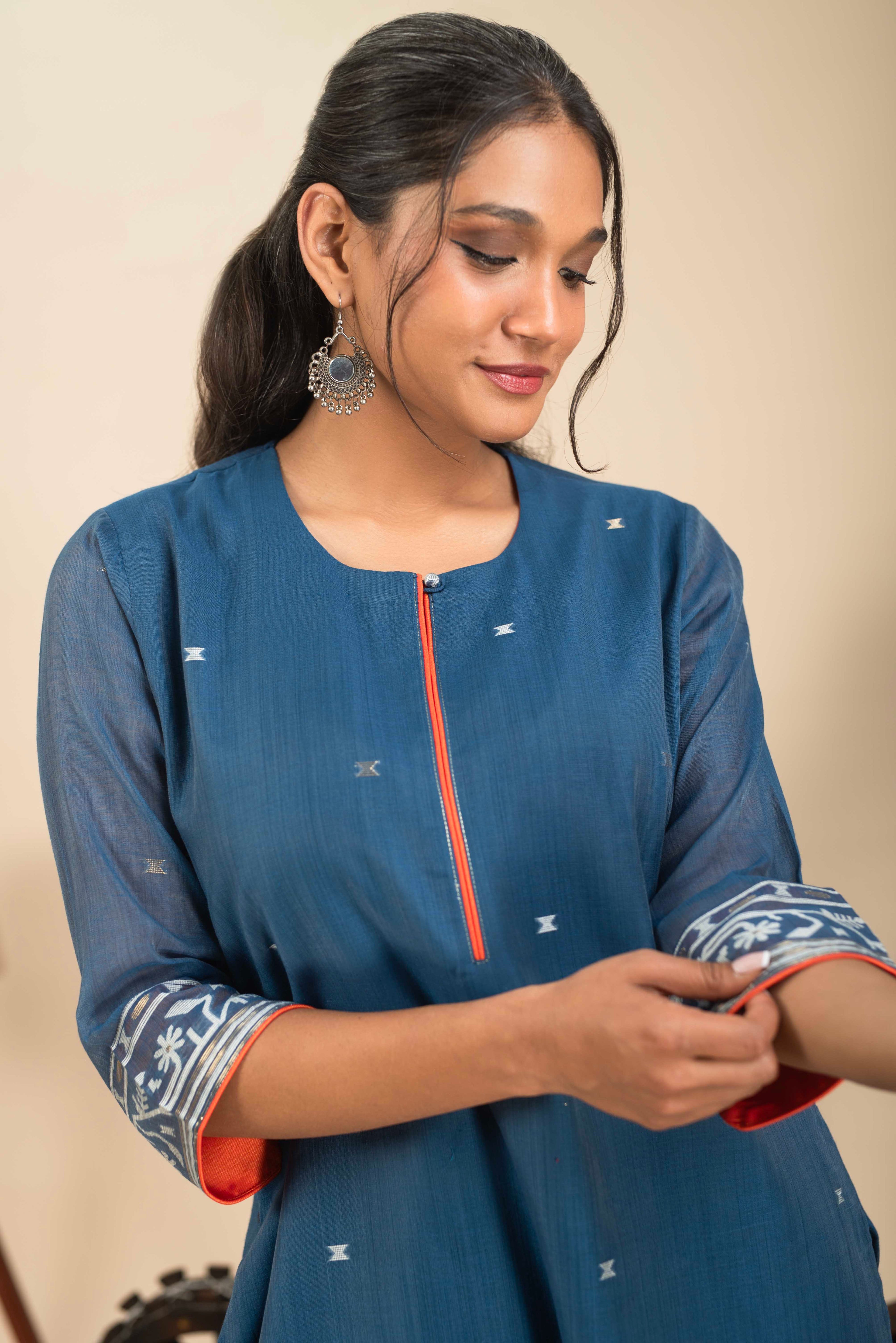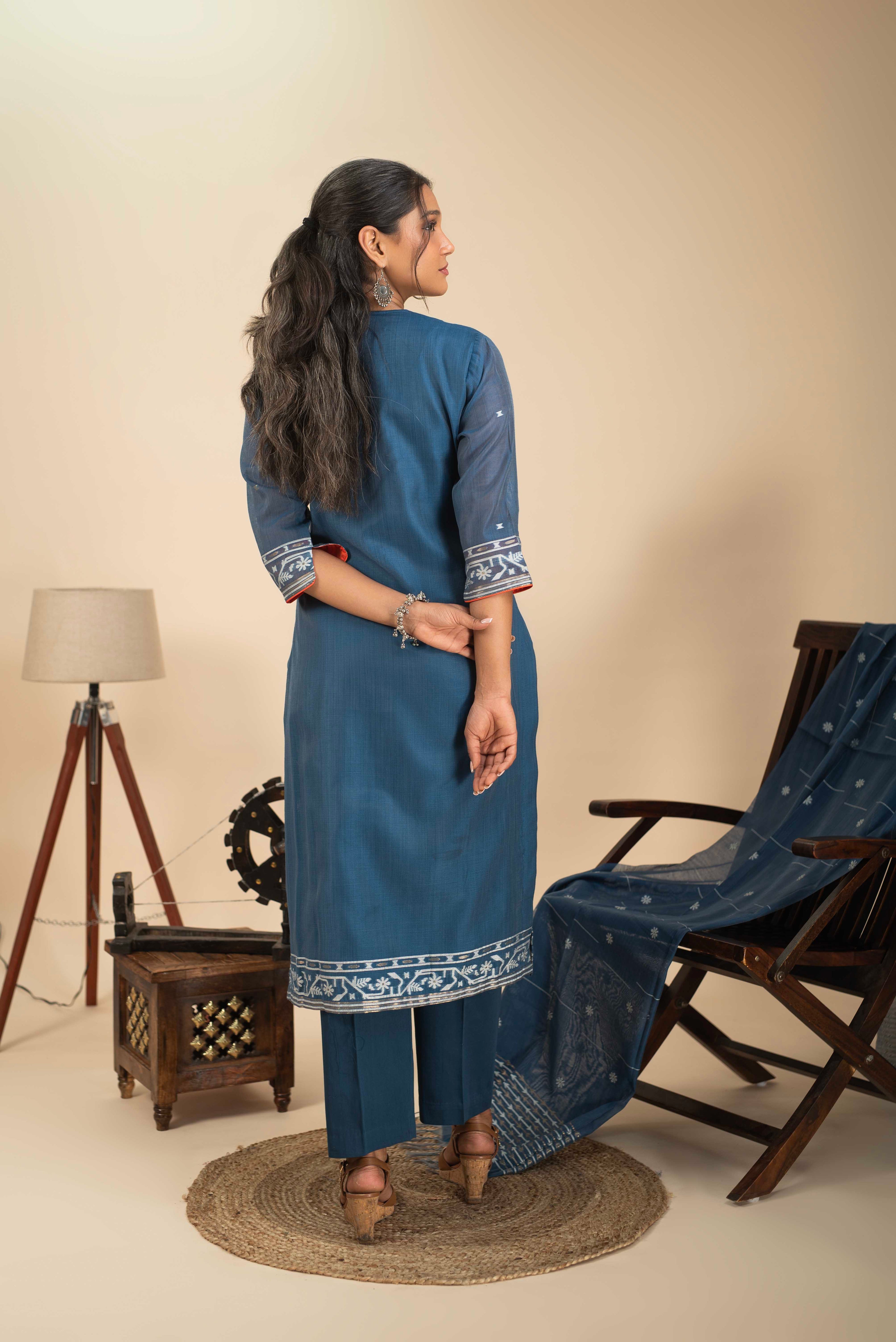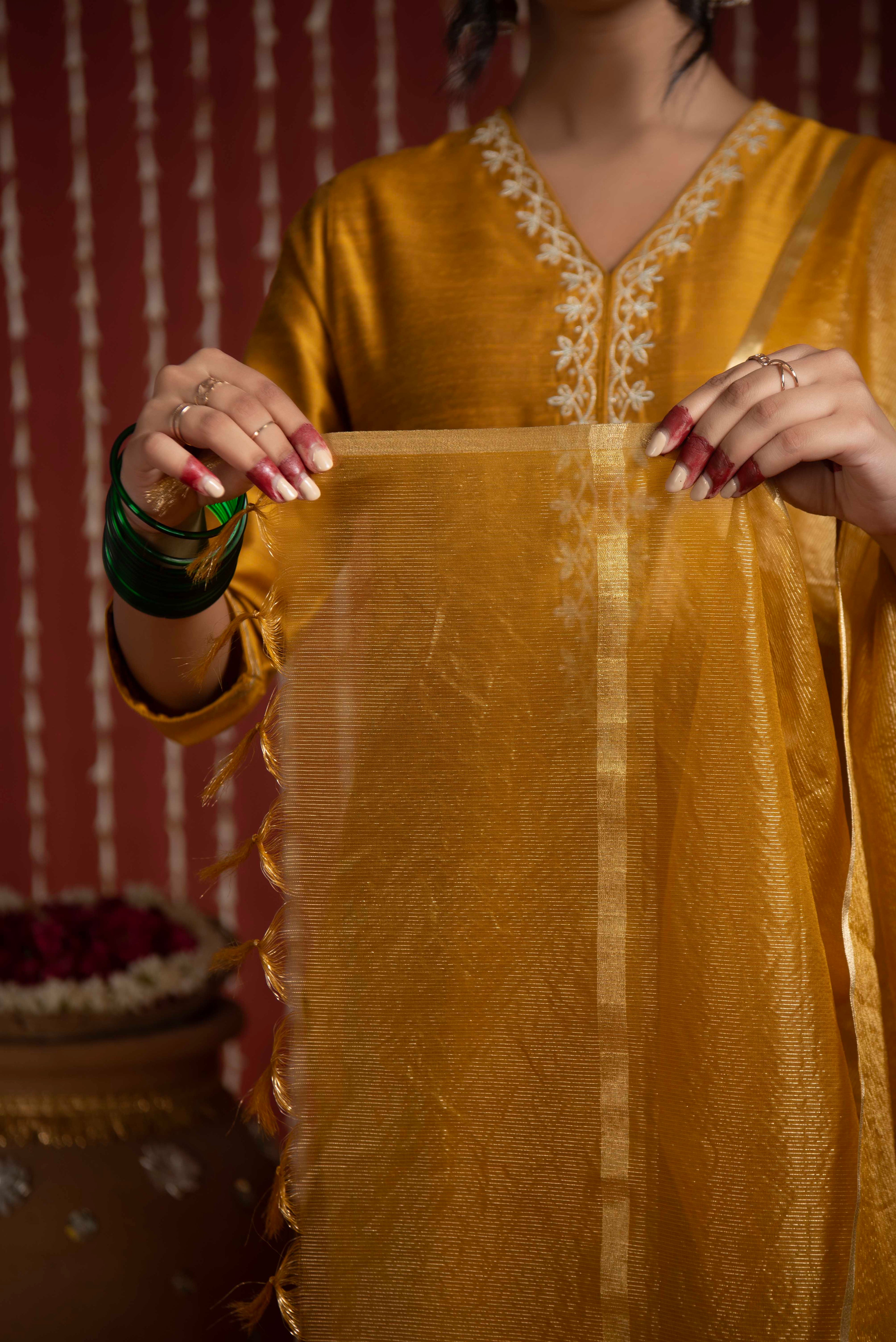 Green Cotton Silk Zari Work A-Line Kurta Set Regular Fit