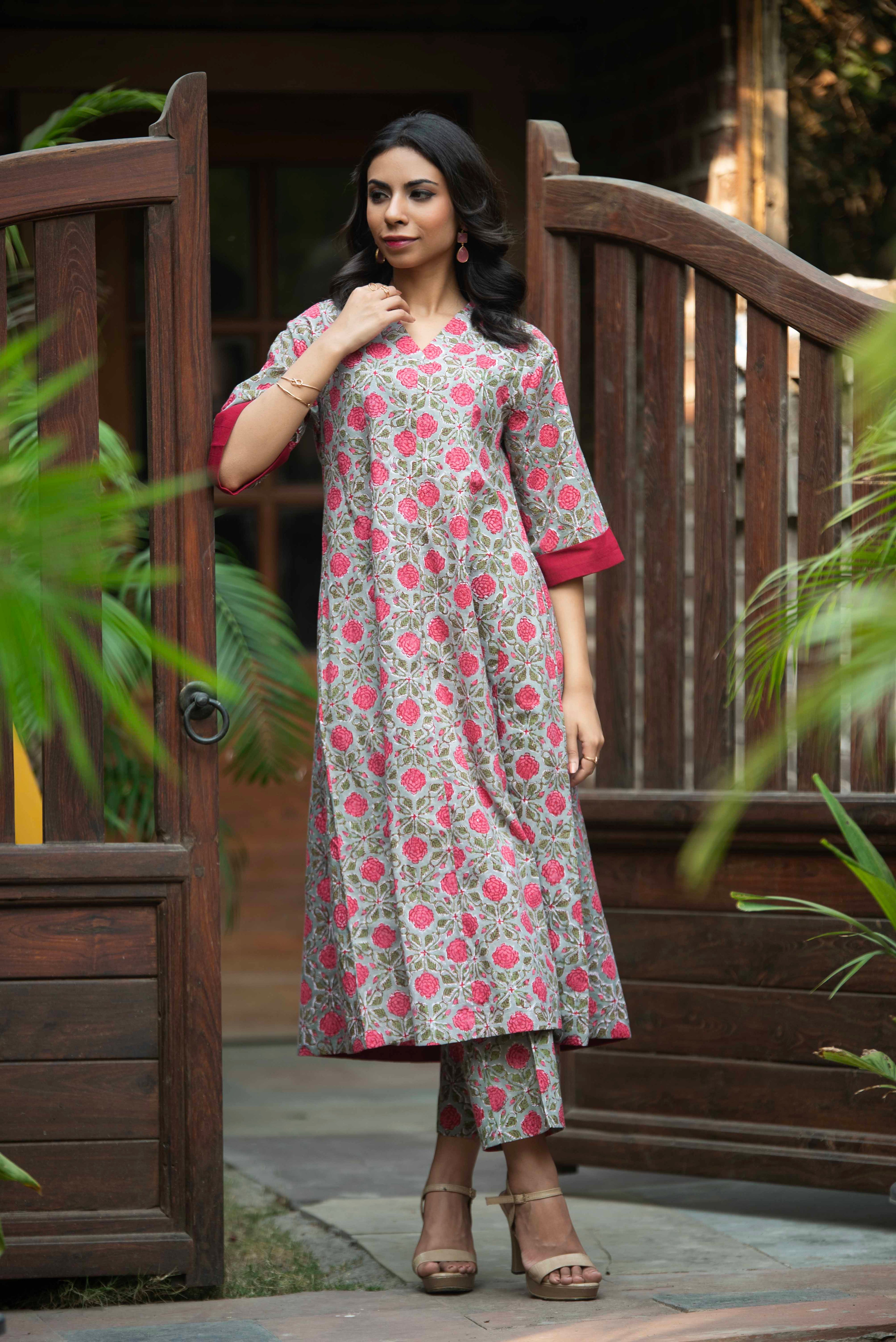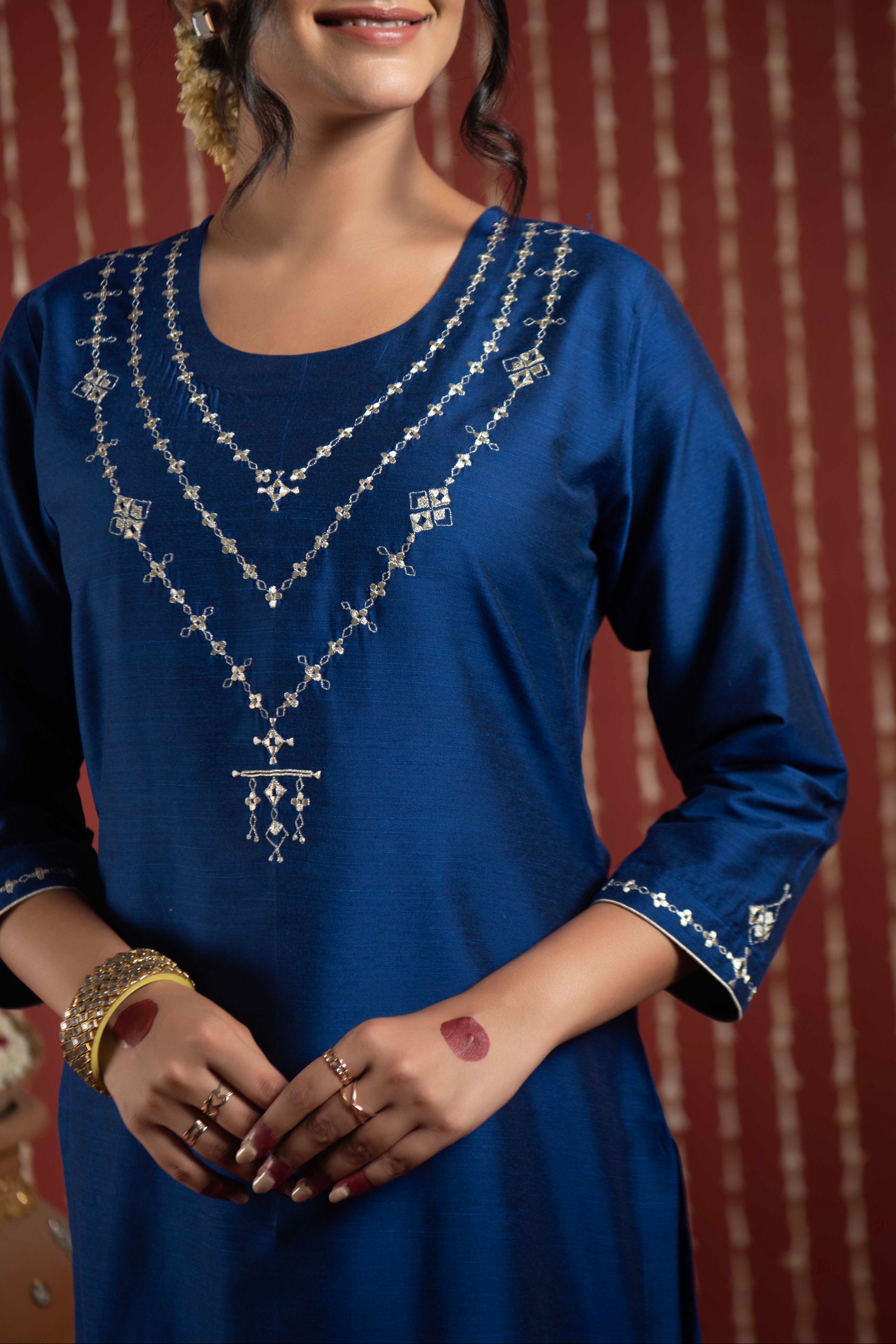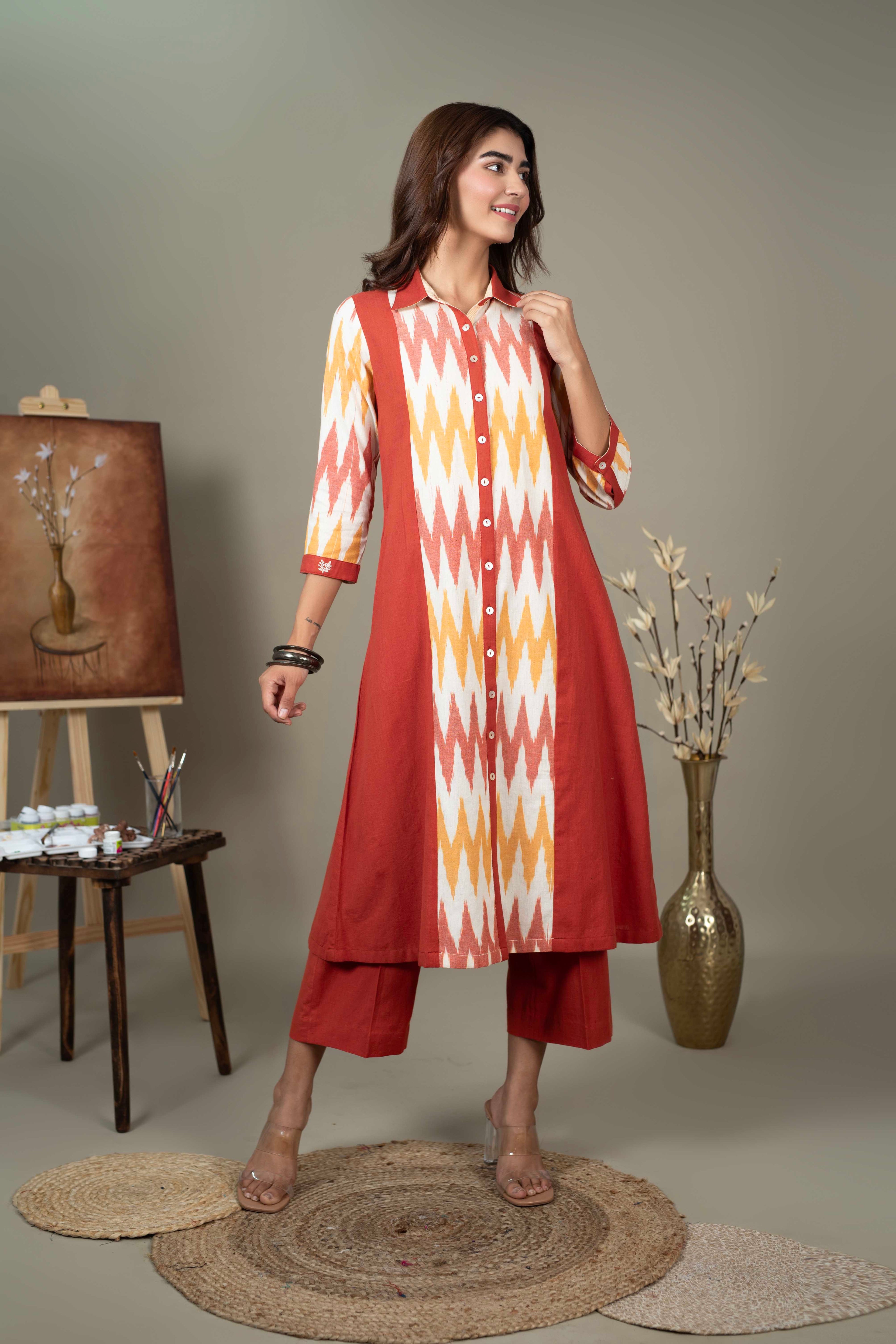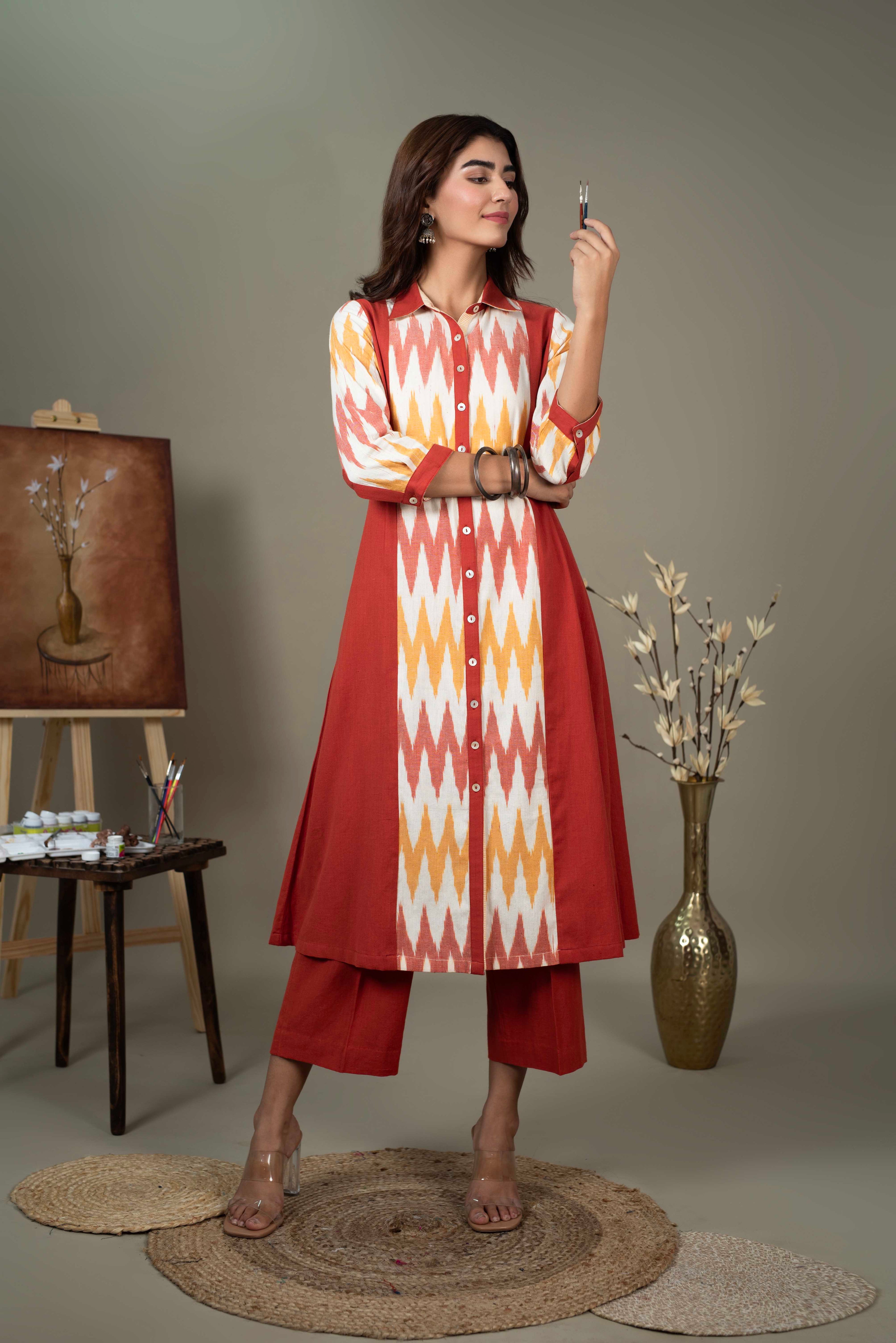 Green Cotton Silk Zari Work A-Line Kurta Set Regular Fit