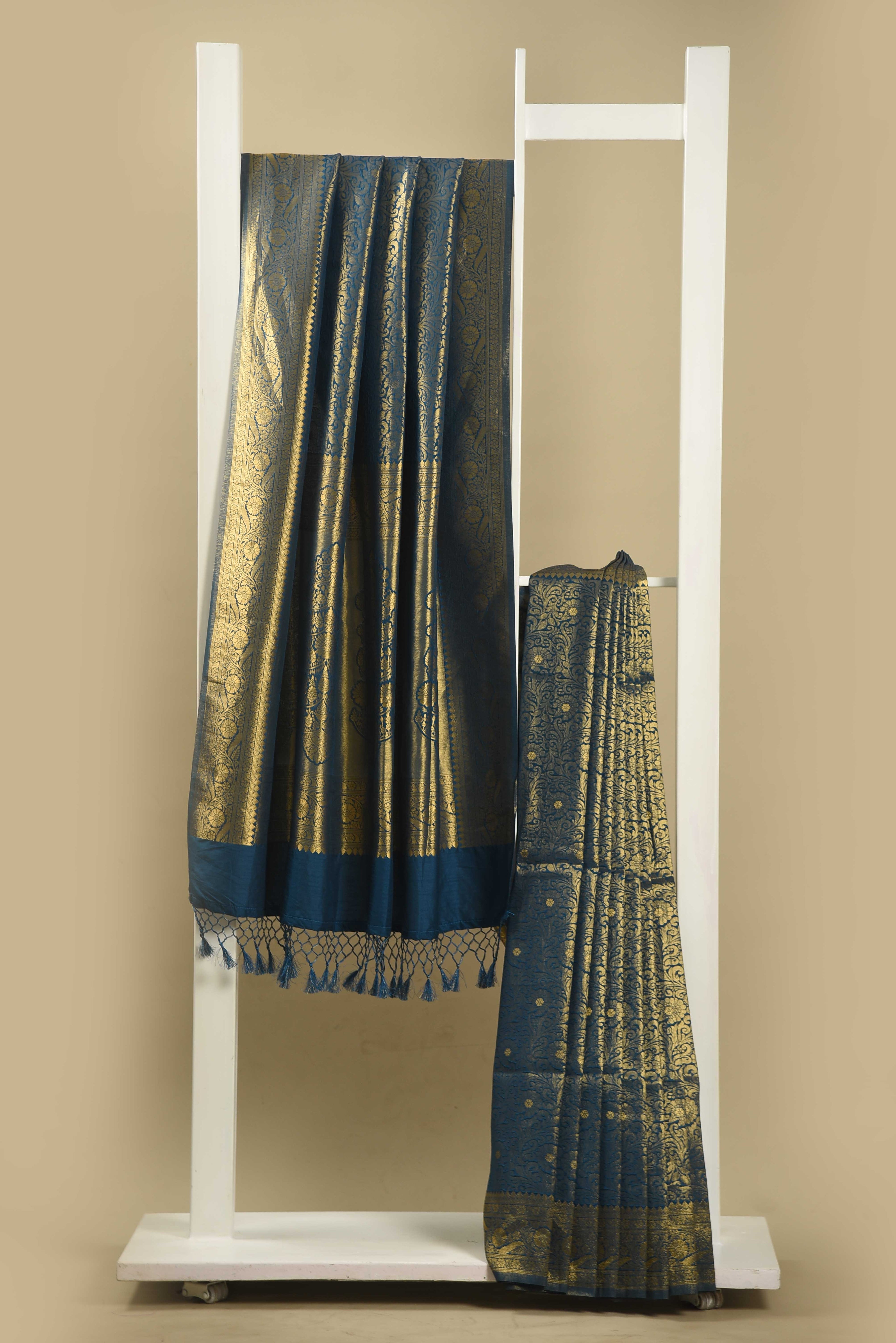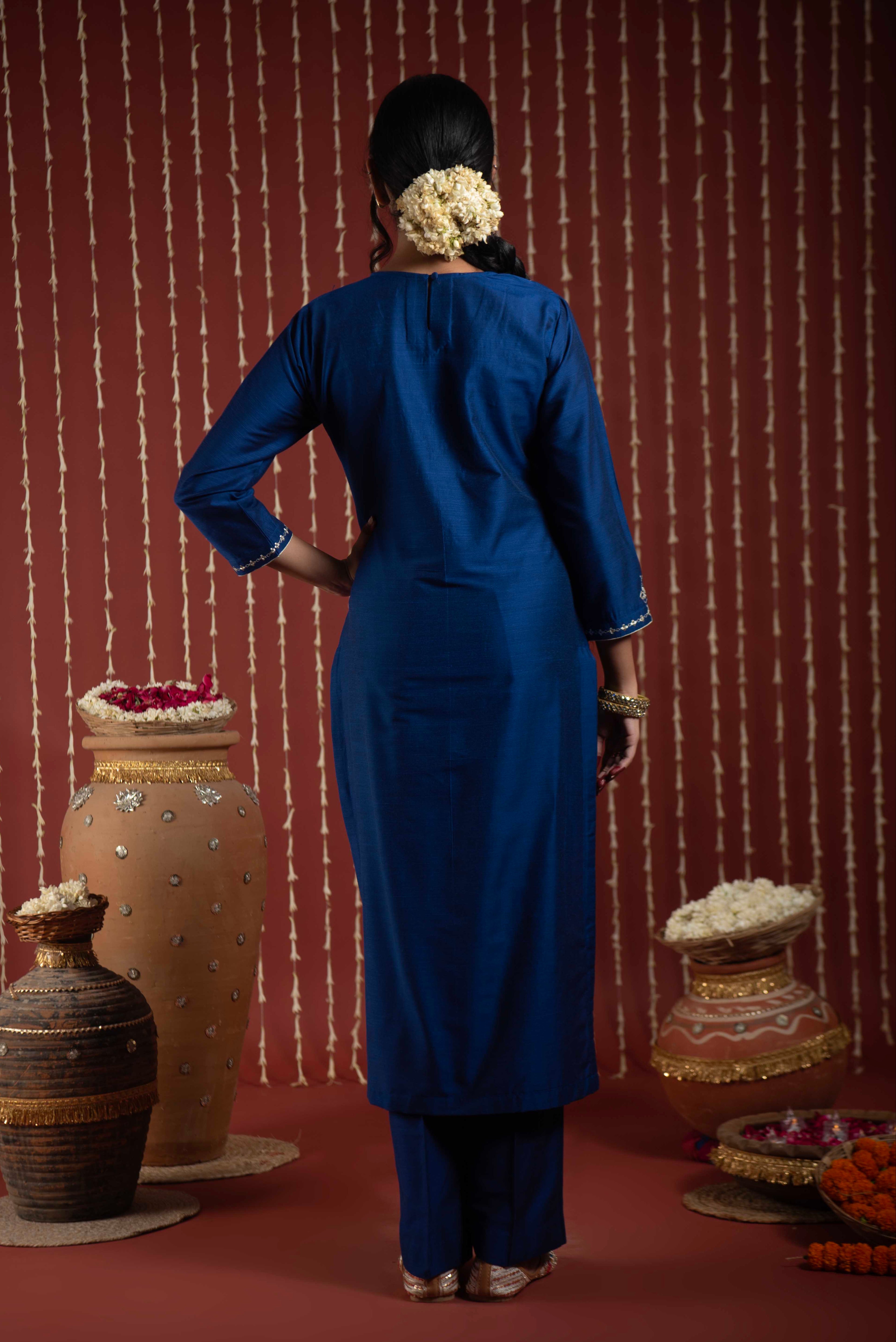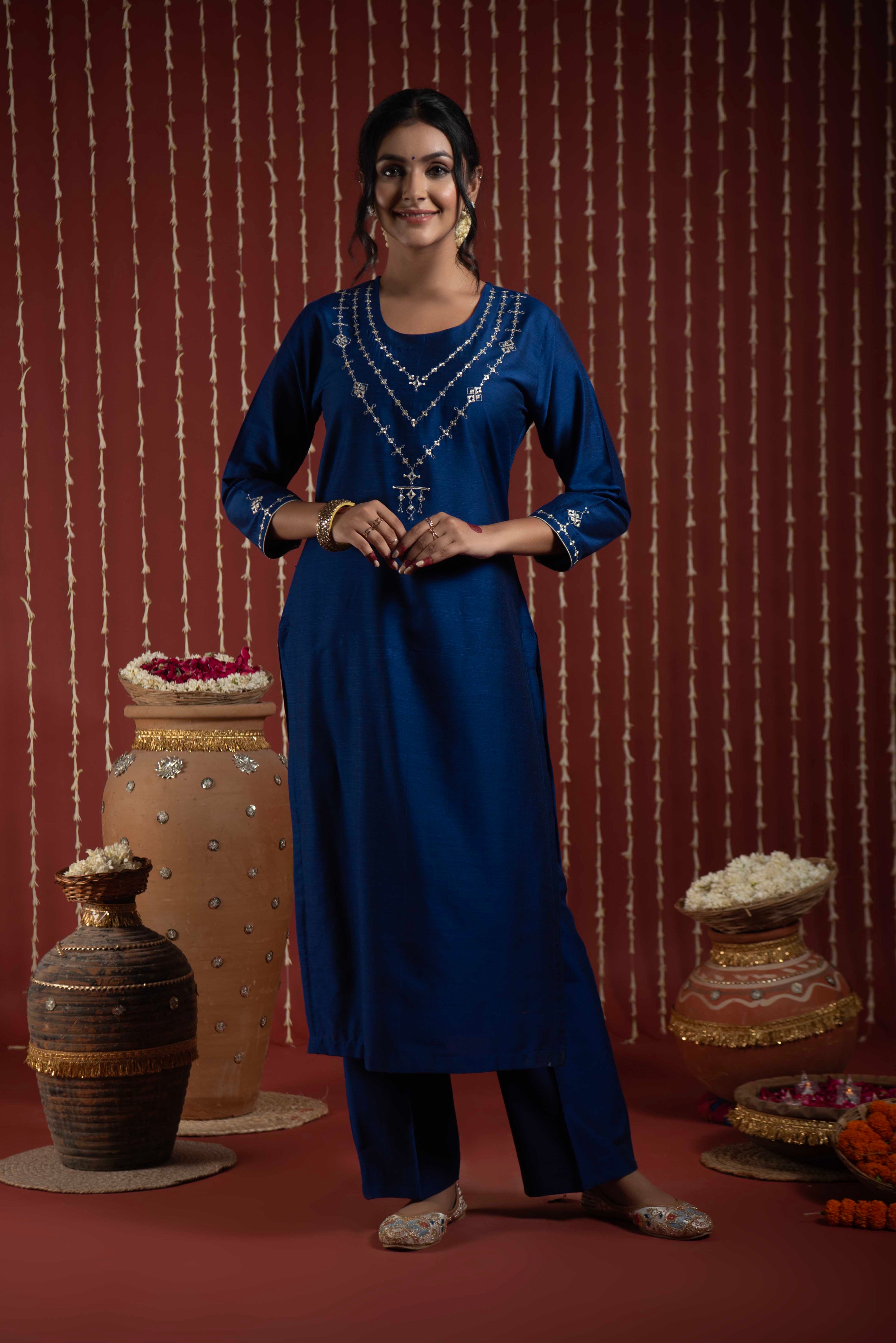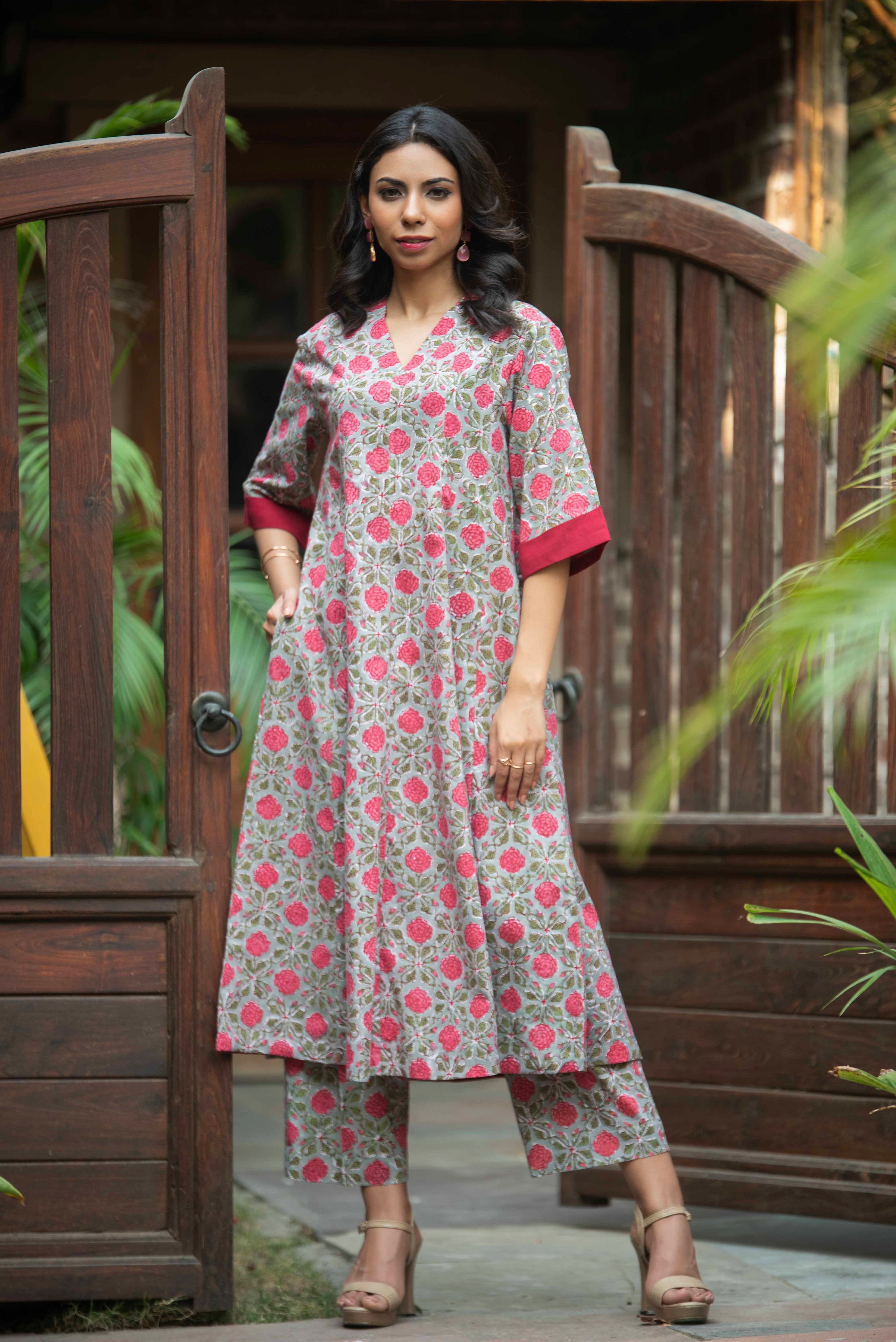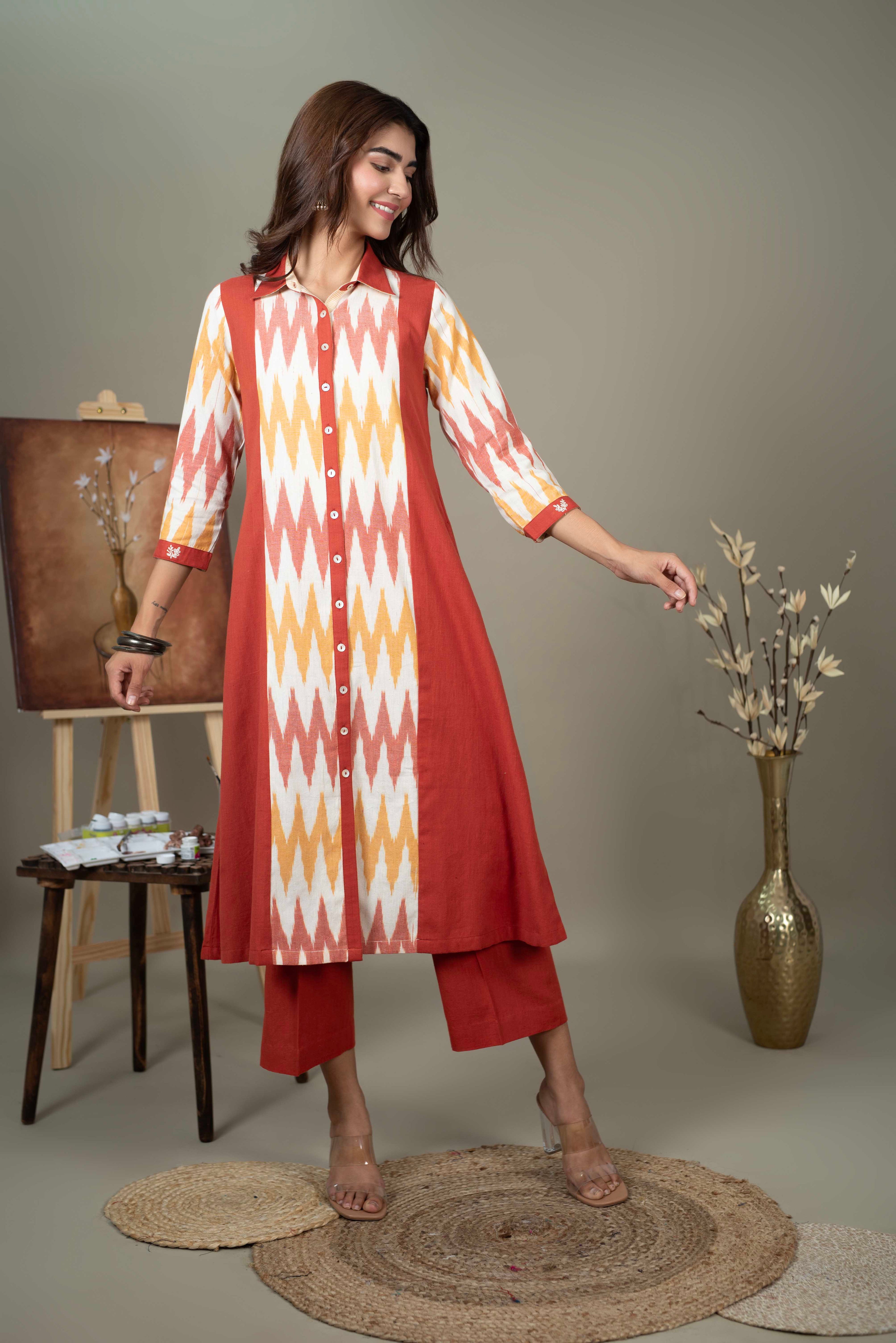 Green Cotton Silk Zari Work A-Line Kurta Set Regular Fit