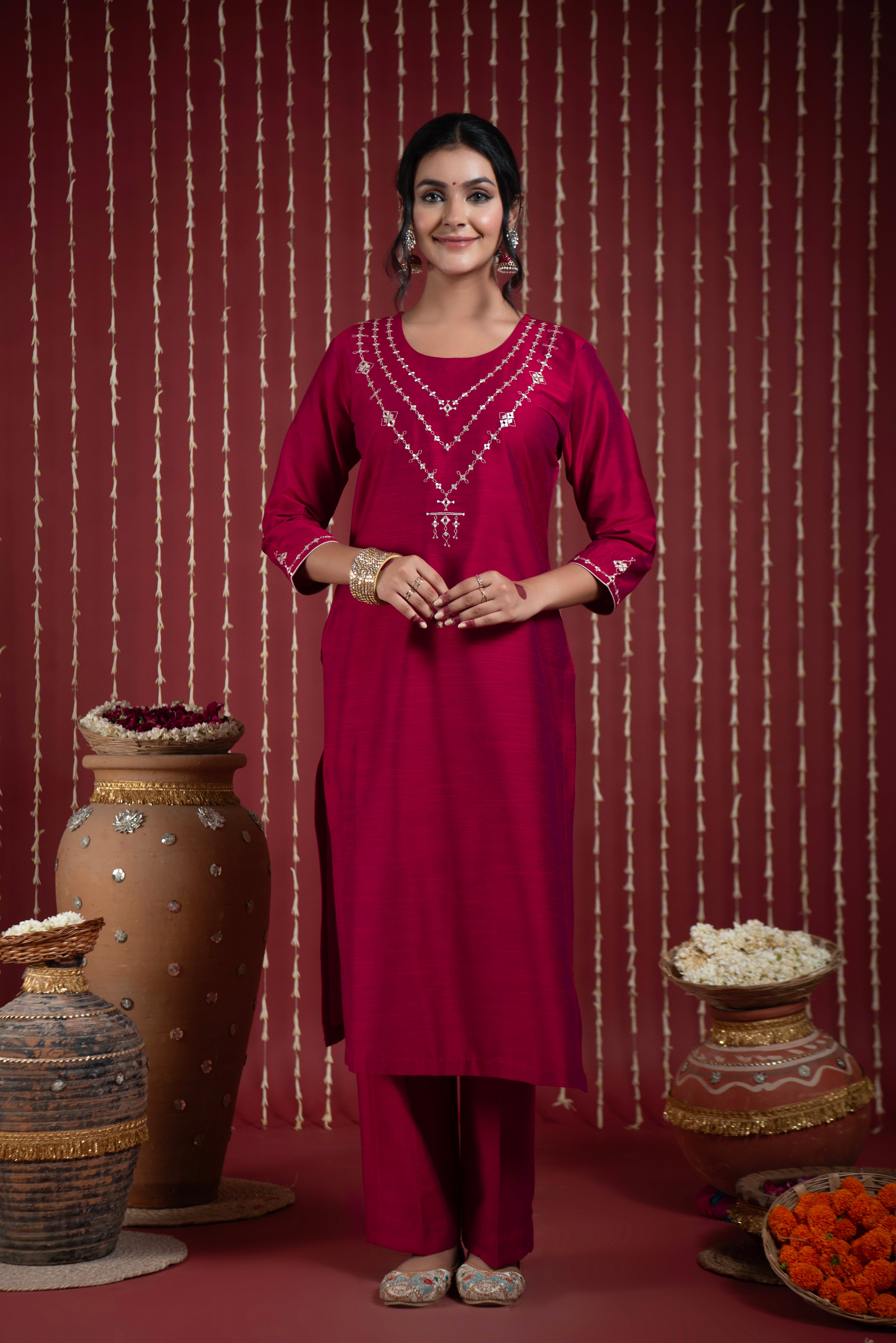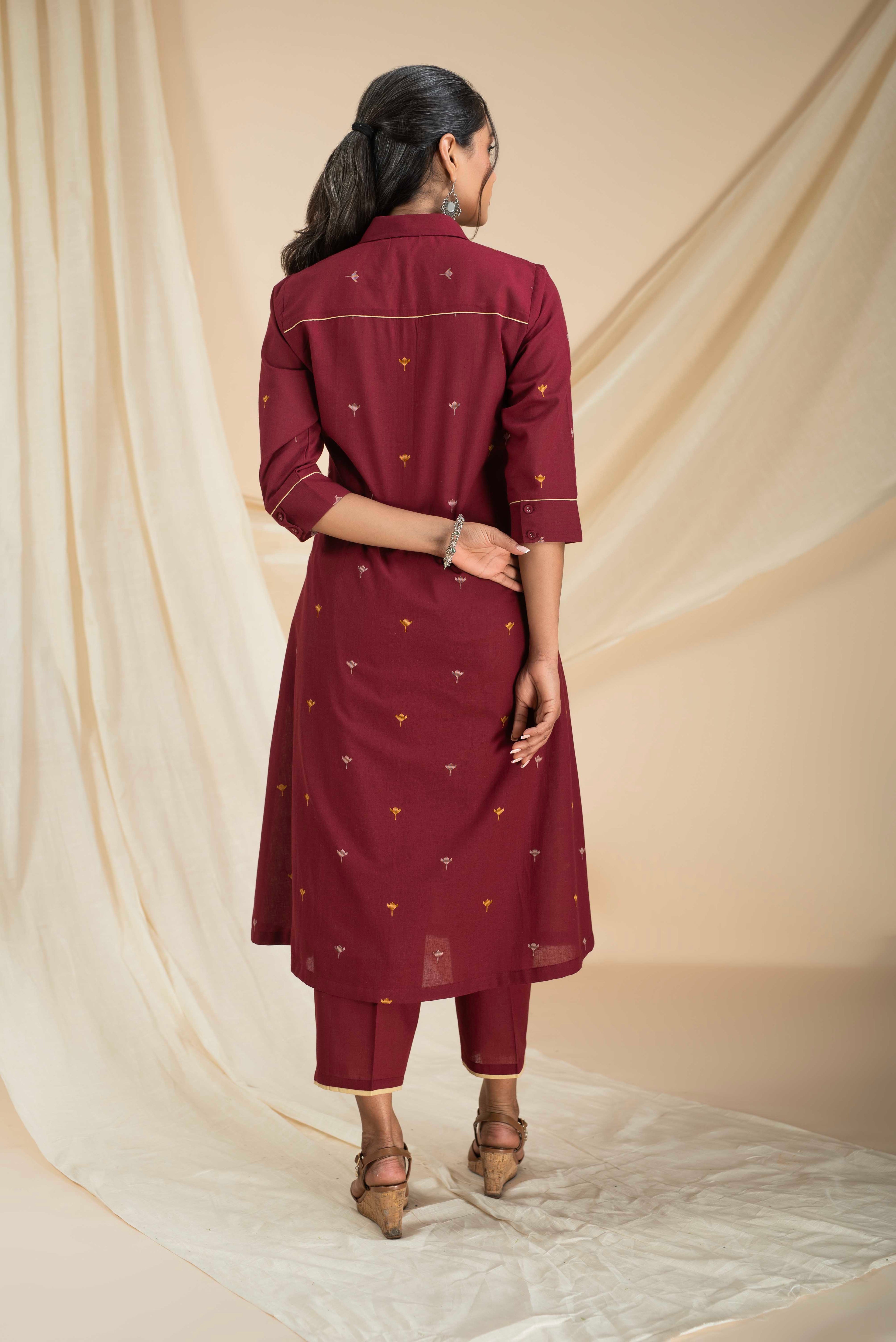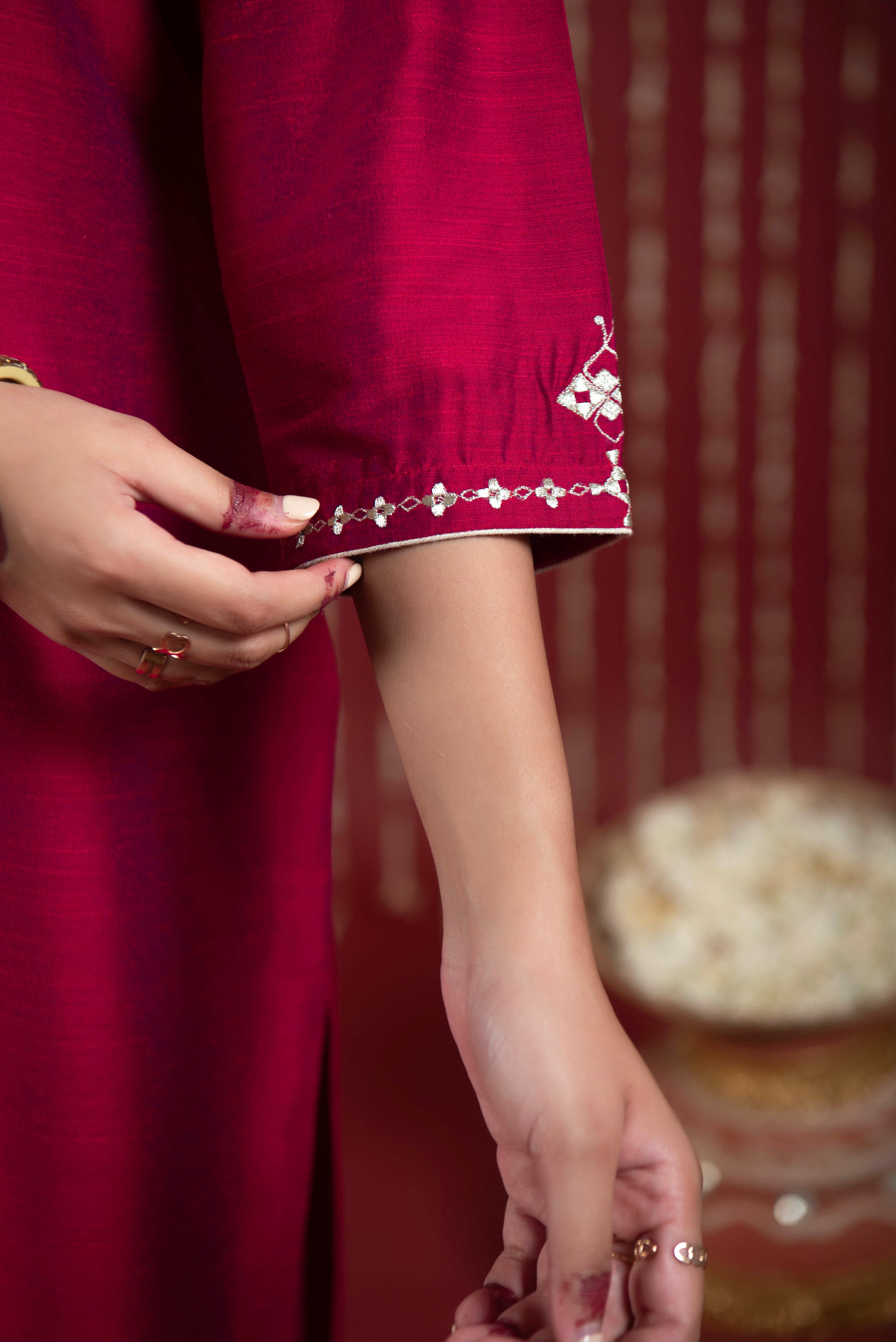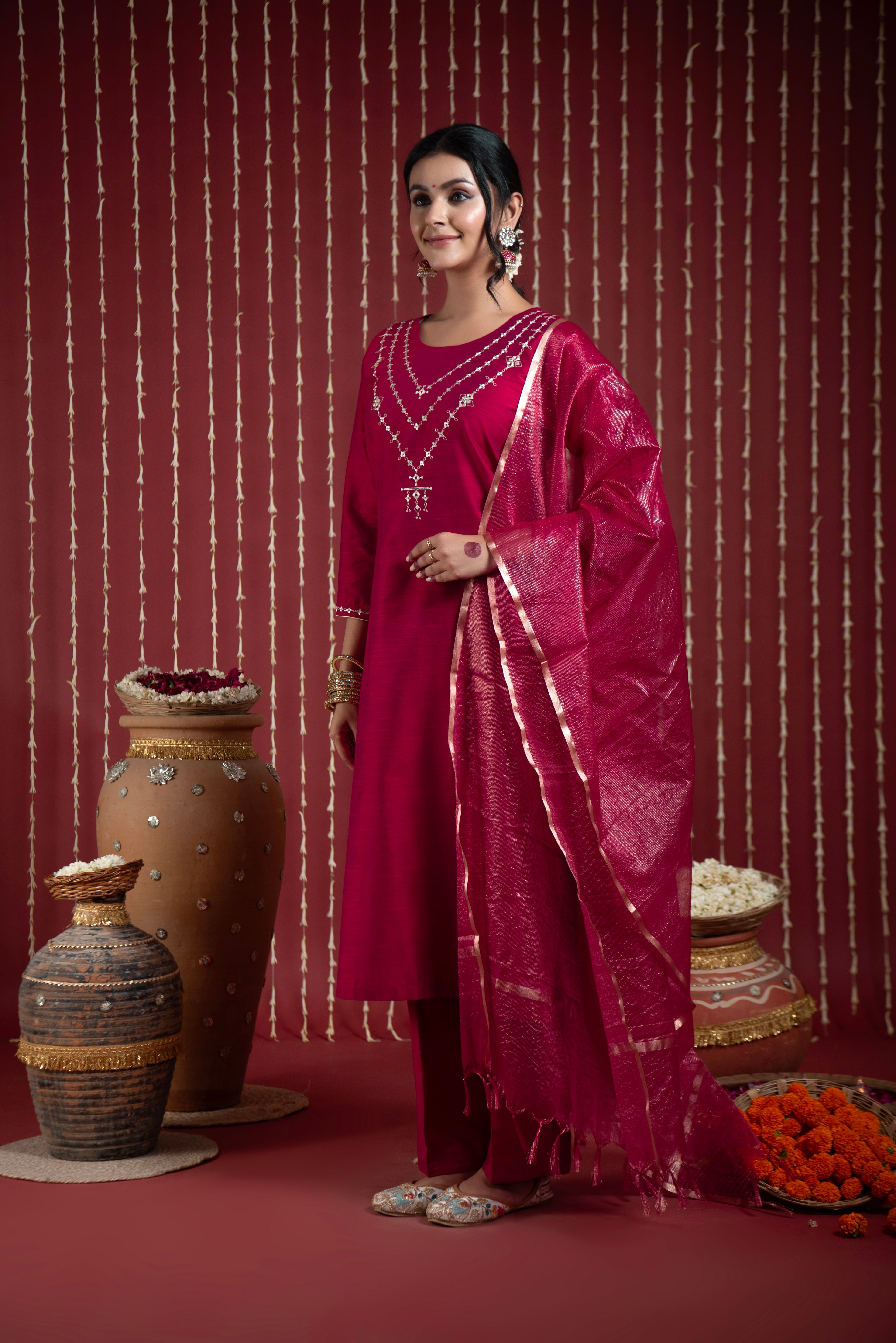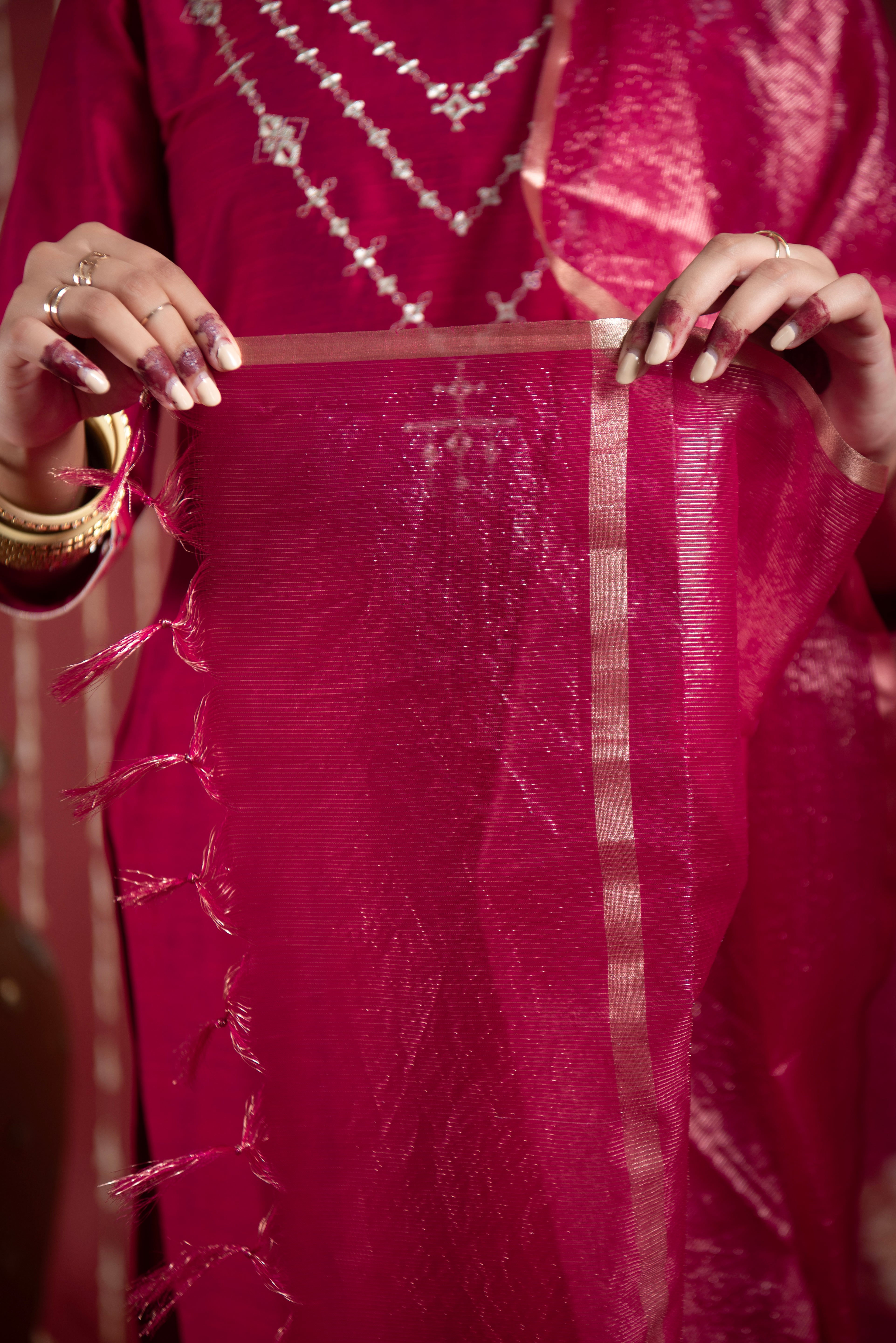 Red Linen Silk Blend Woven Unstitched Suit Fabric Set With Linen Silk Blend Woven Dupatta