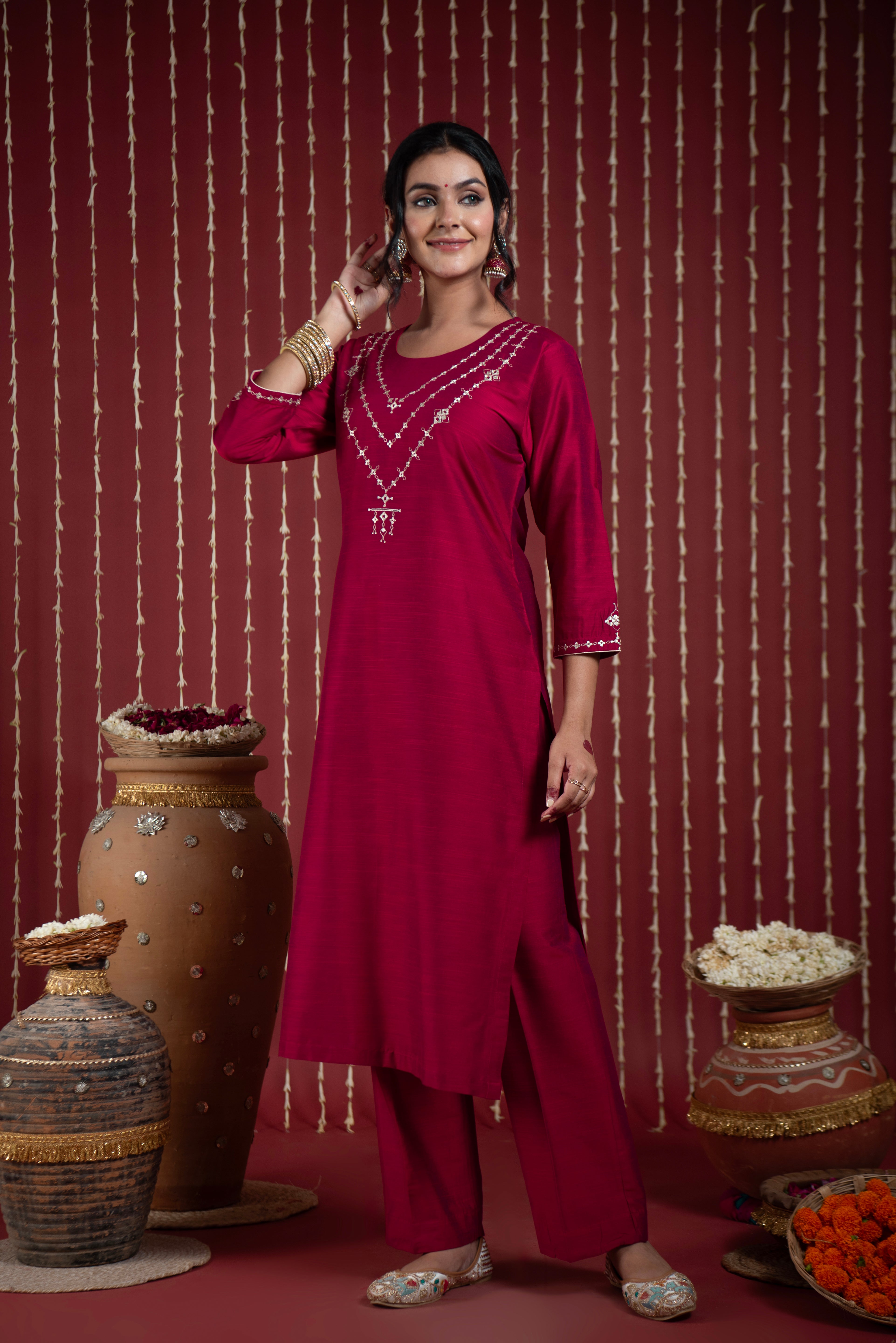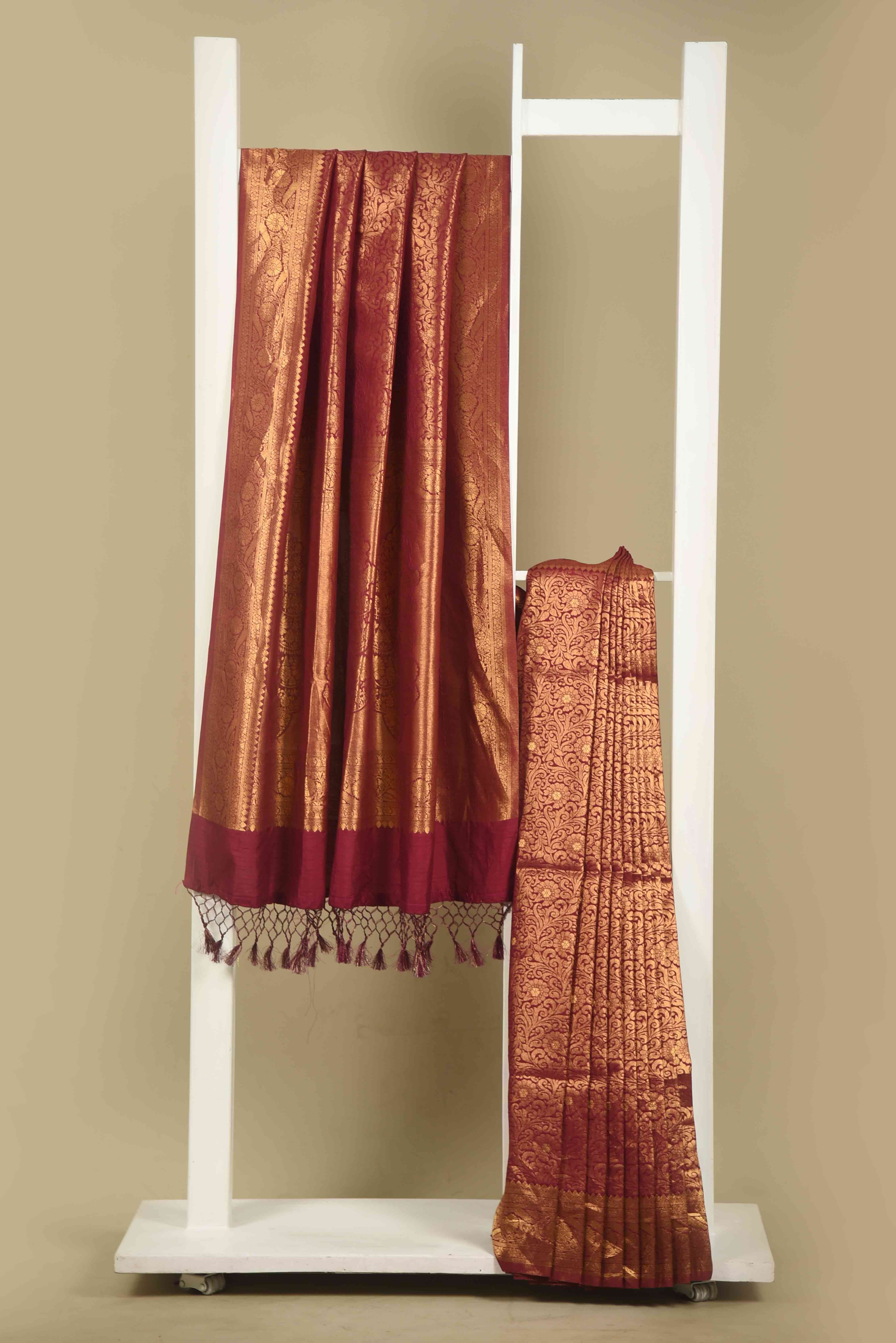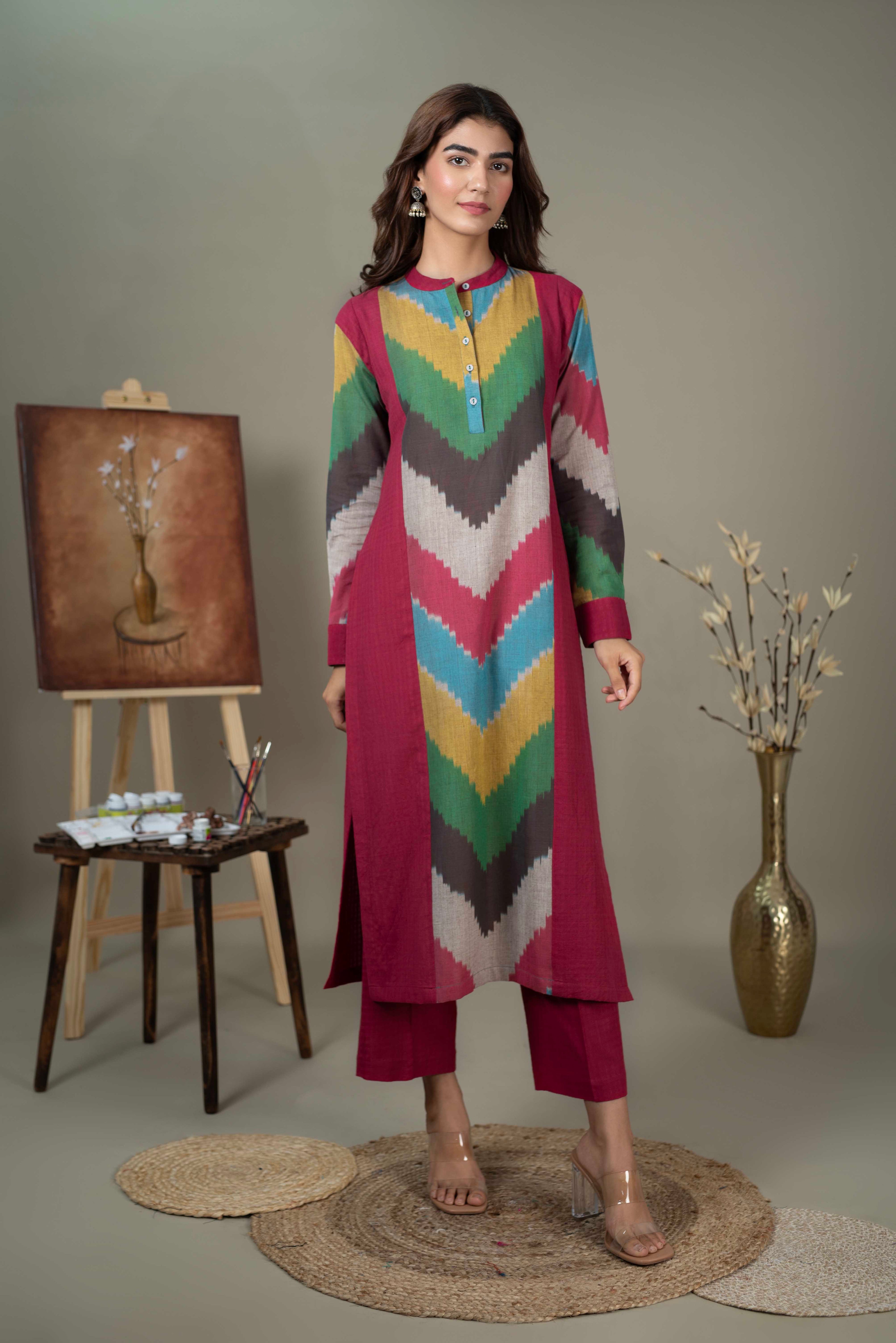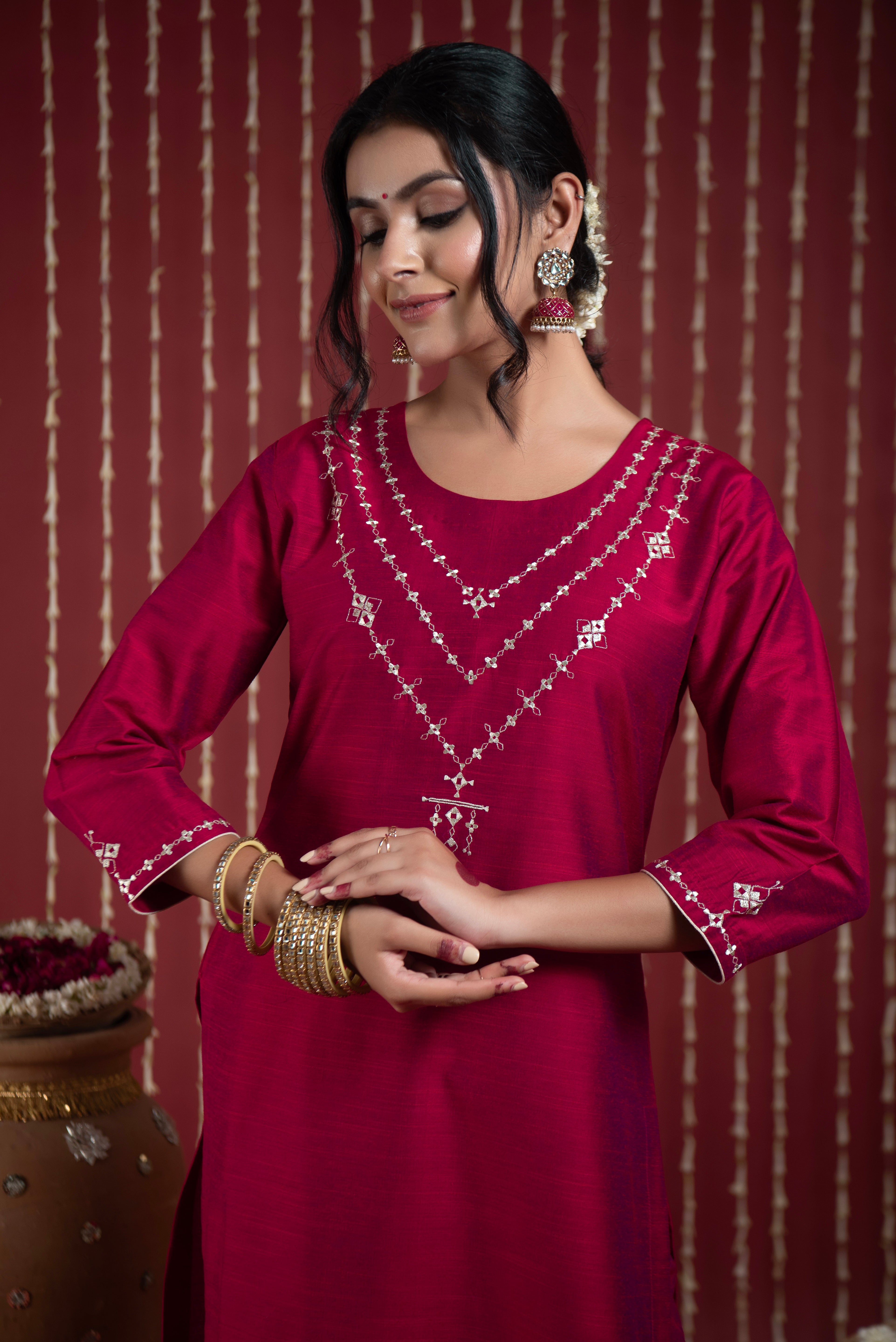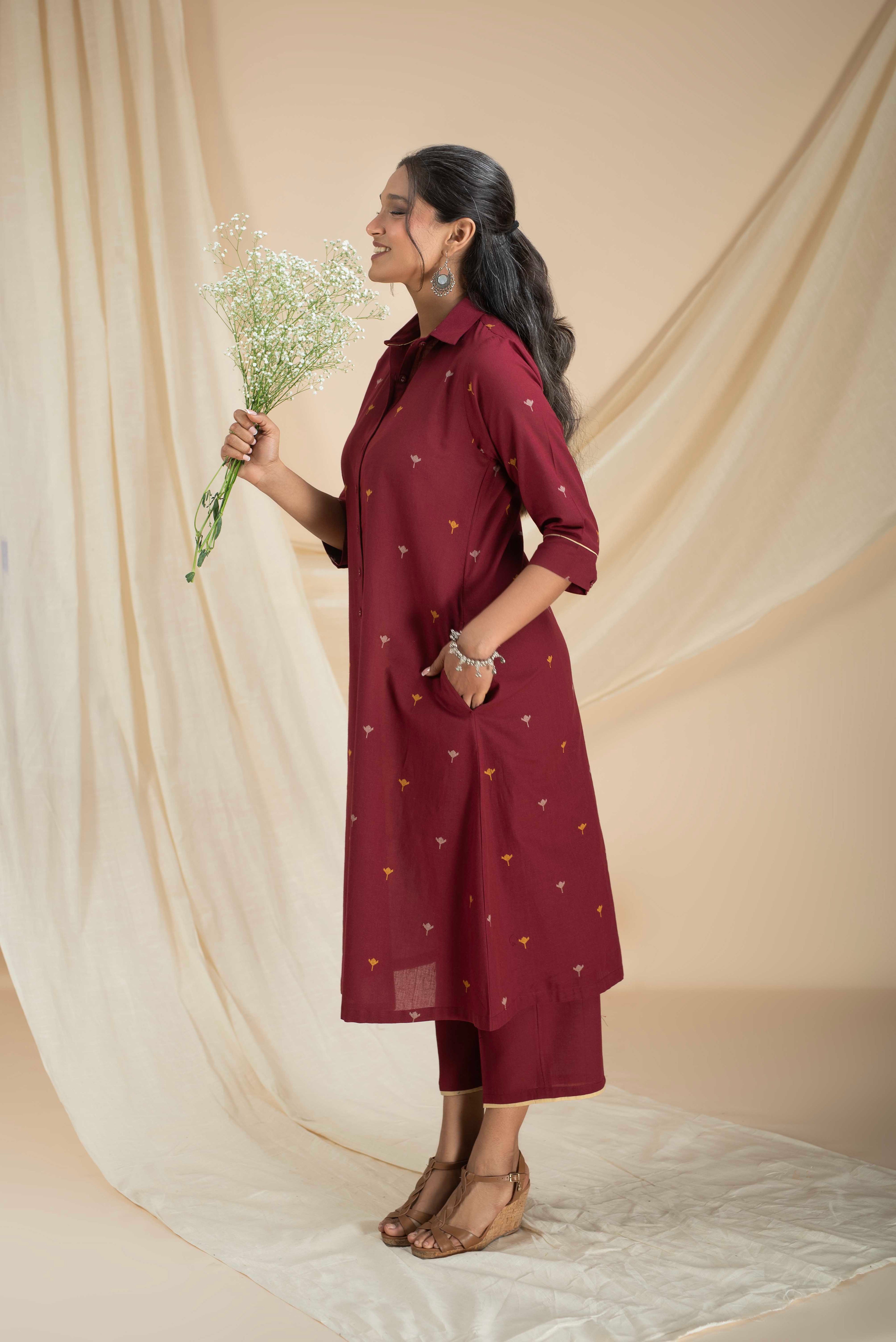 Red Linen Silk Blend Woven Unstitched Suit Fabric Set With Linen Silk Blend Woven Dupatta