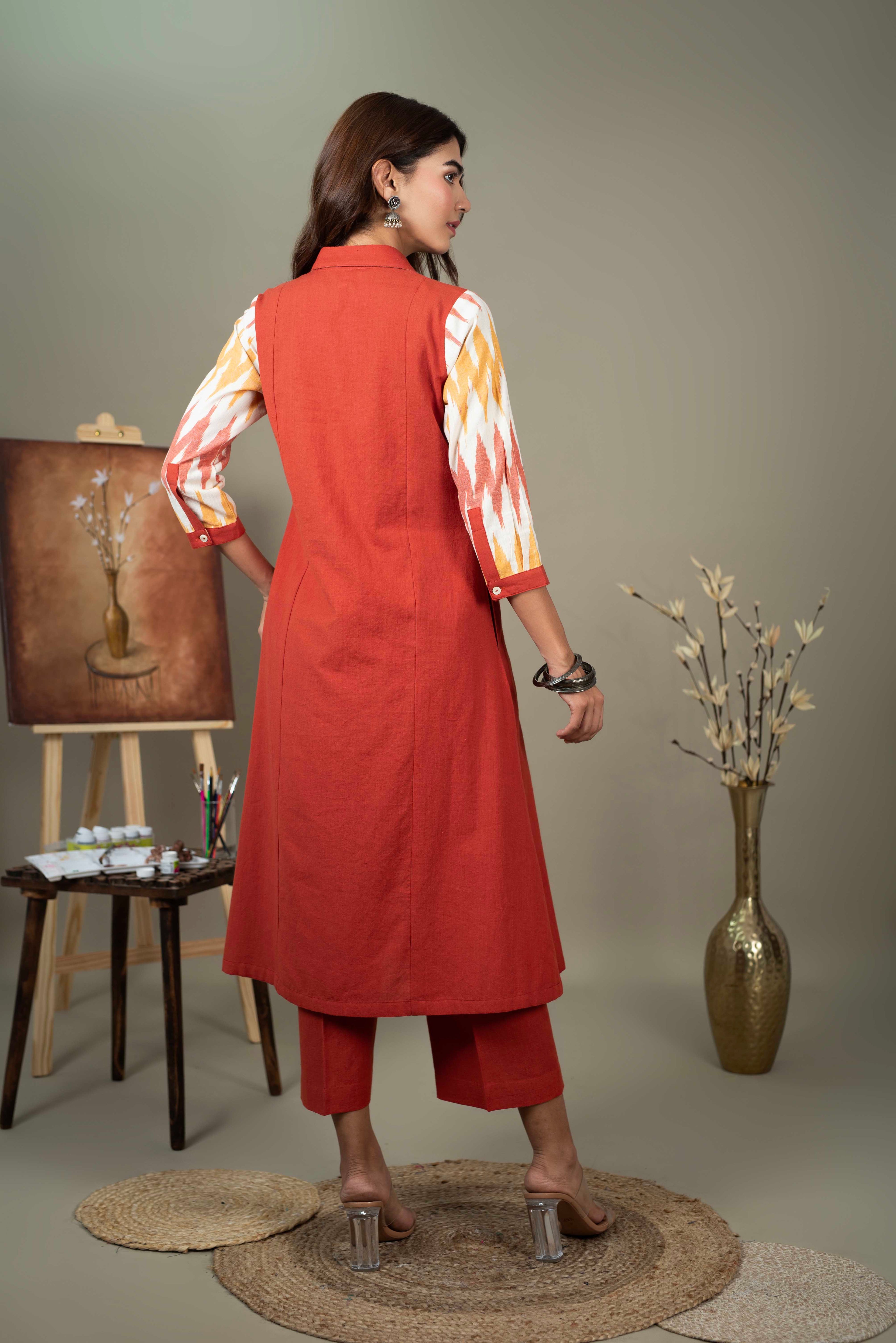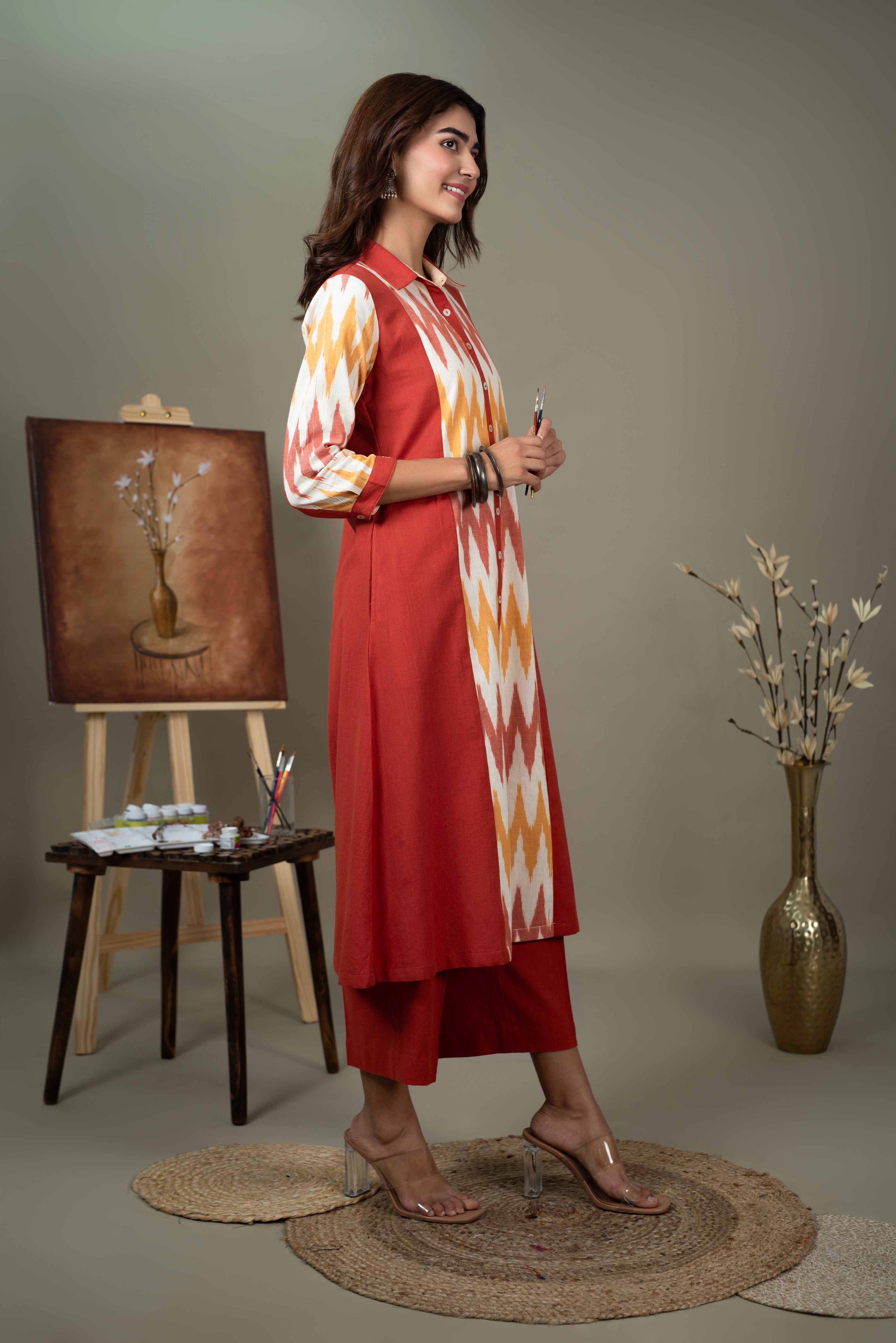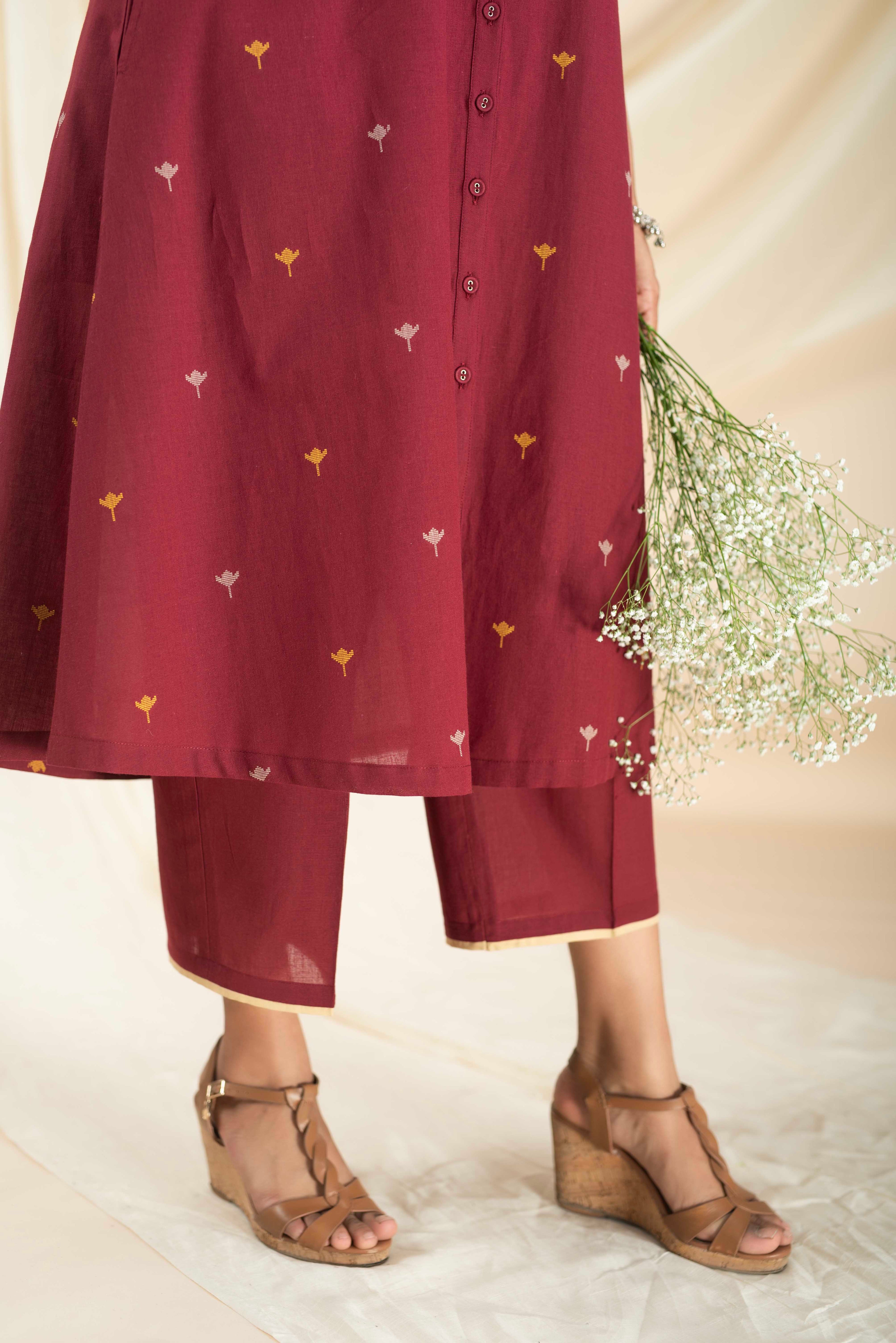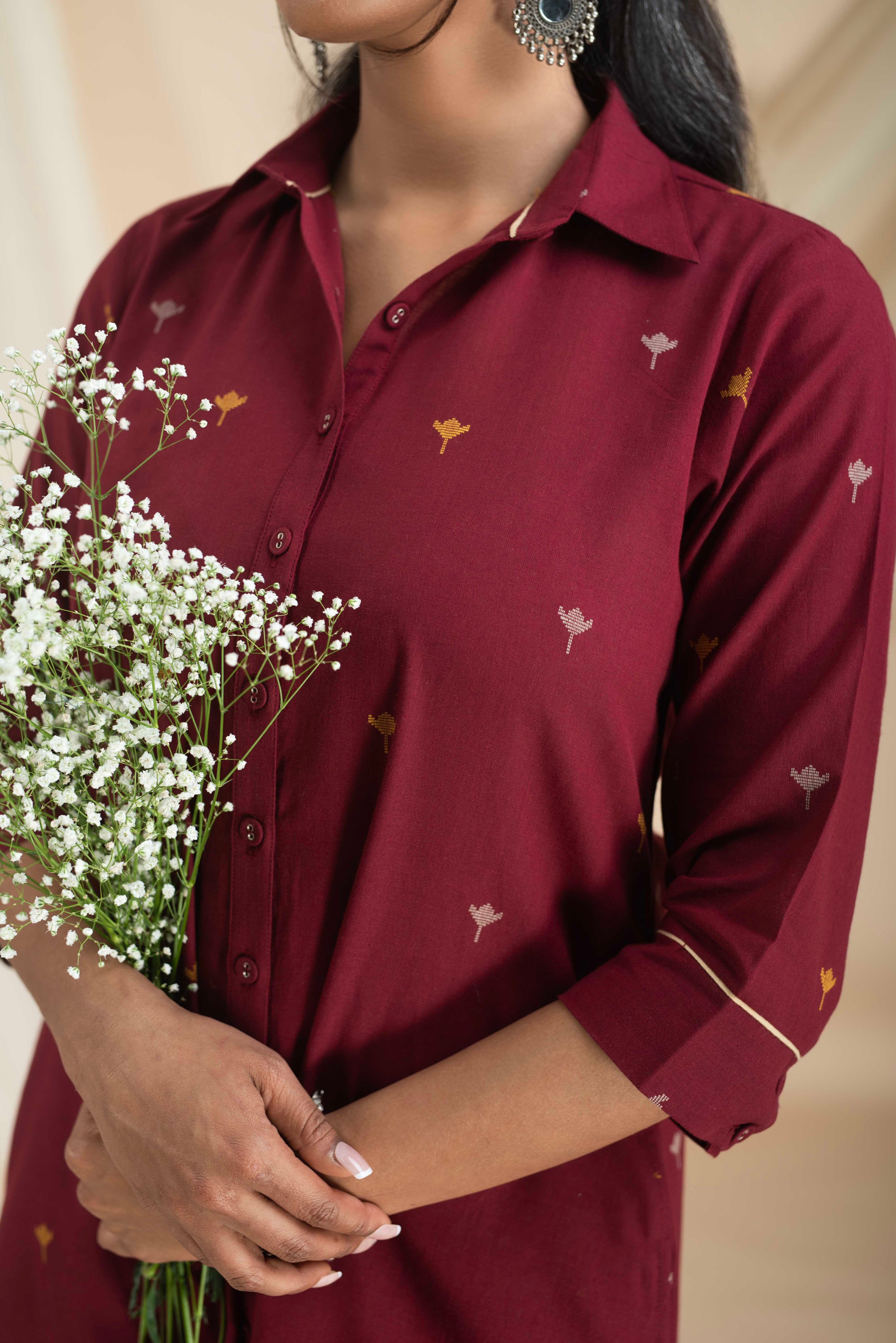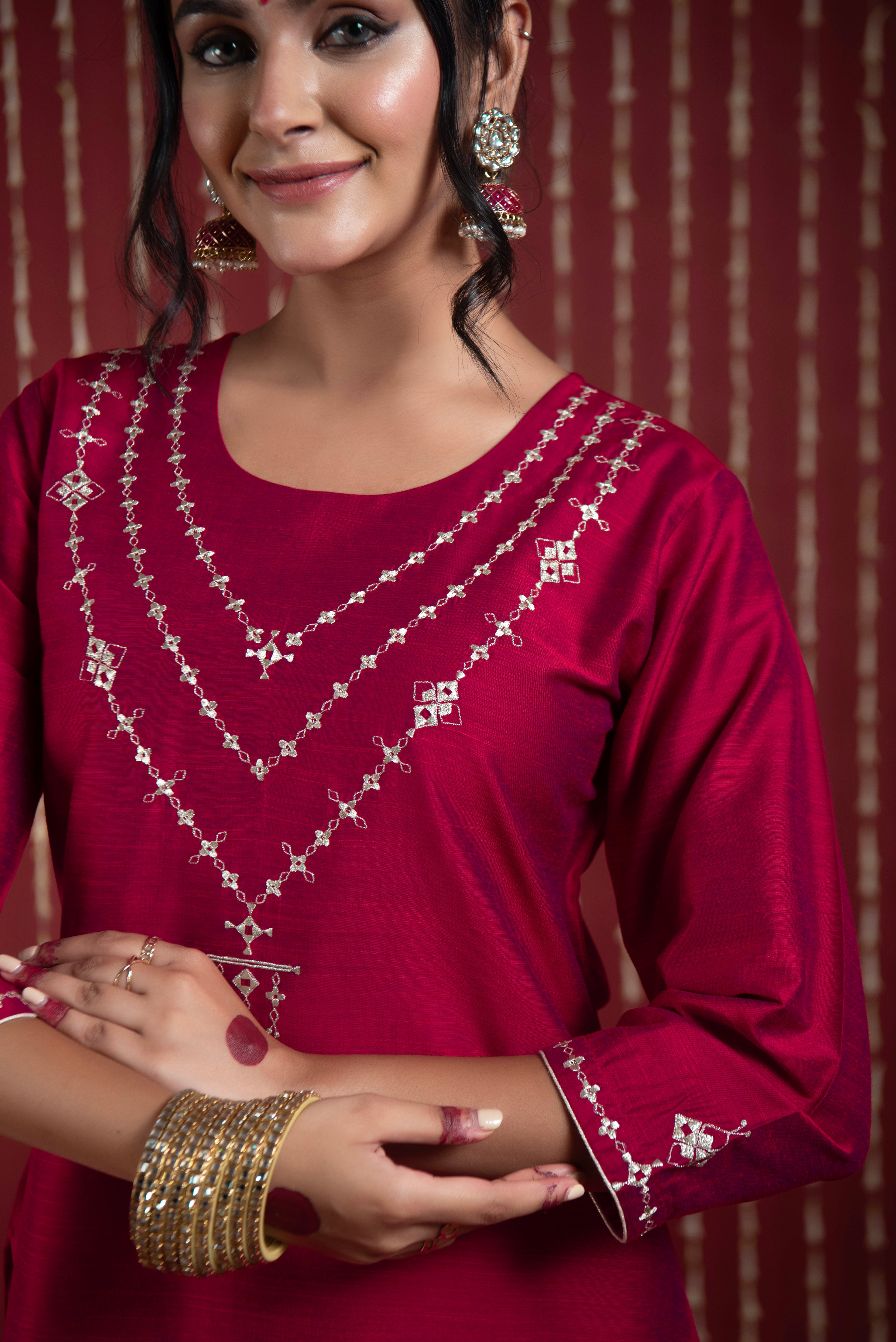 Red Linen Silk Blend Woven Unstitched Suit Fabric Set With Linen Silk Blend Woven Dupatta