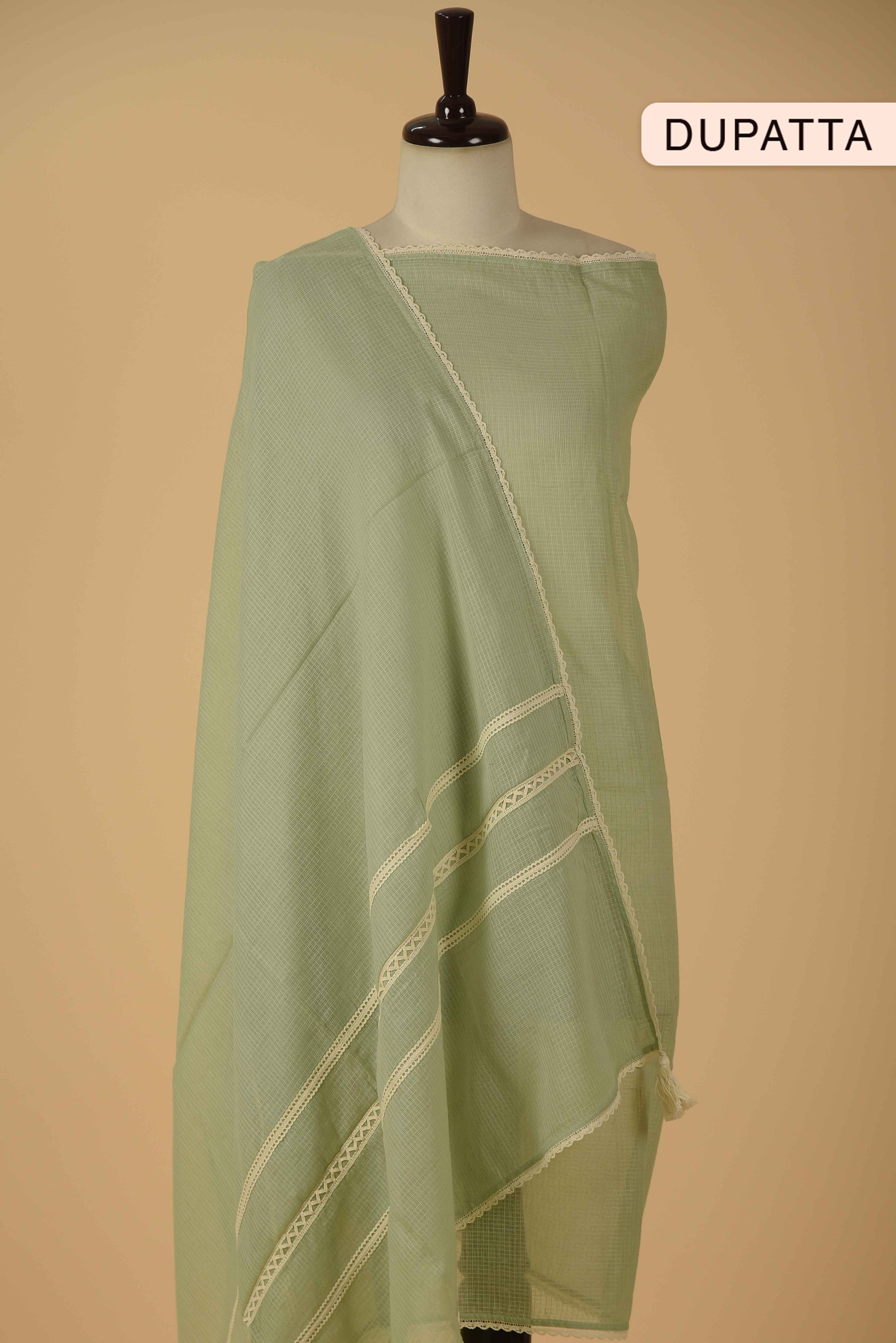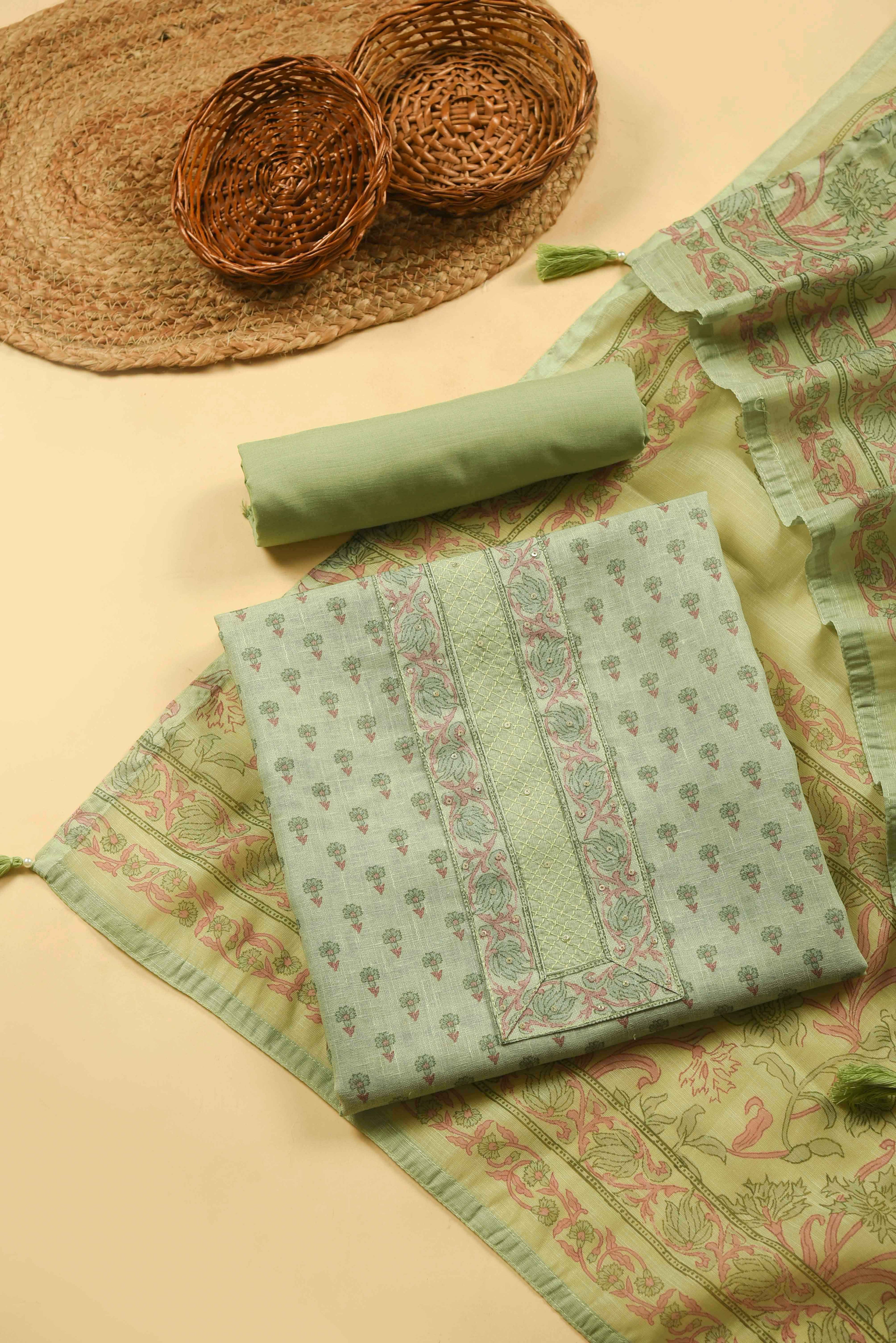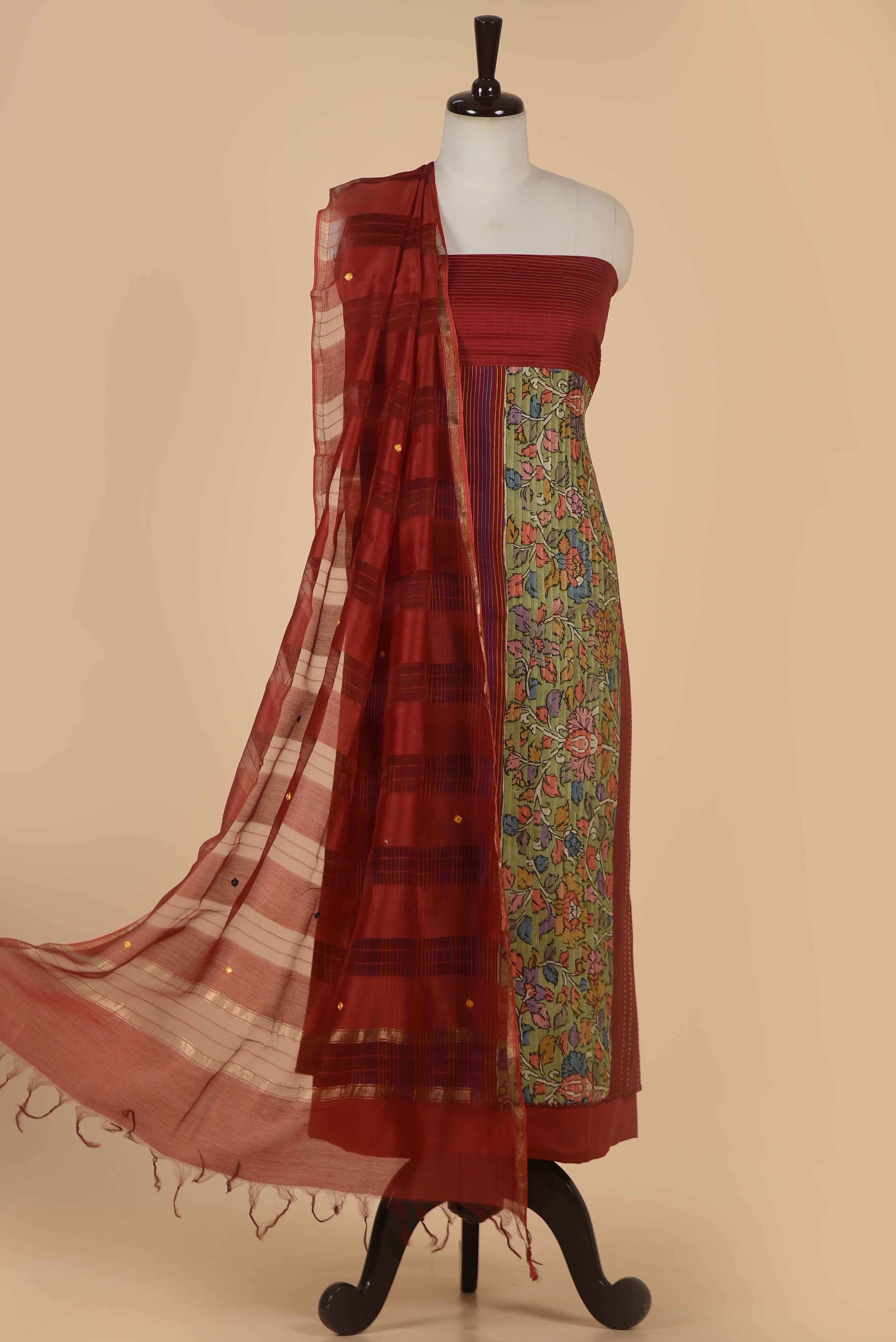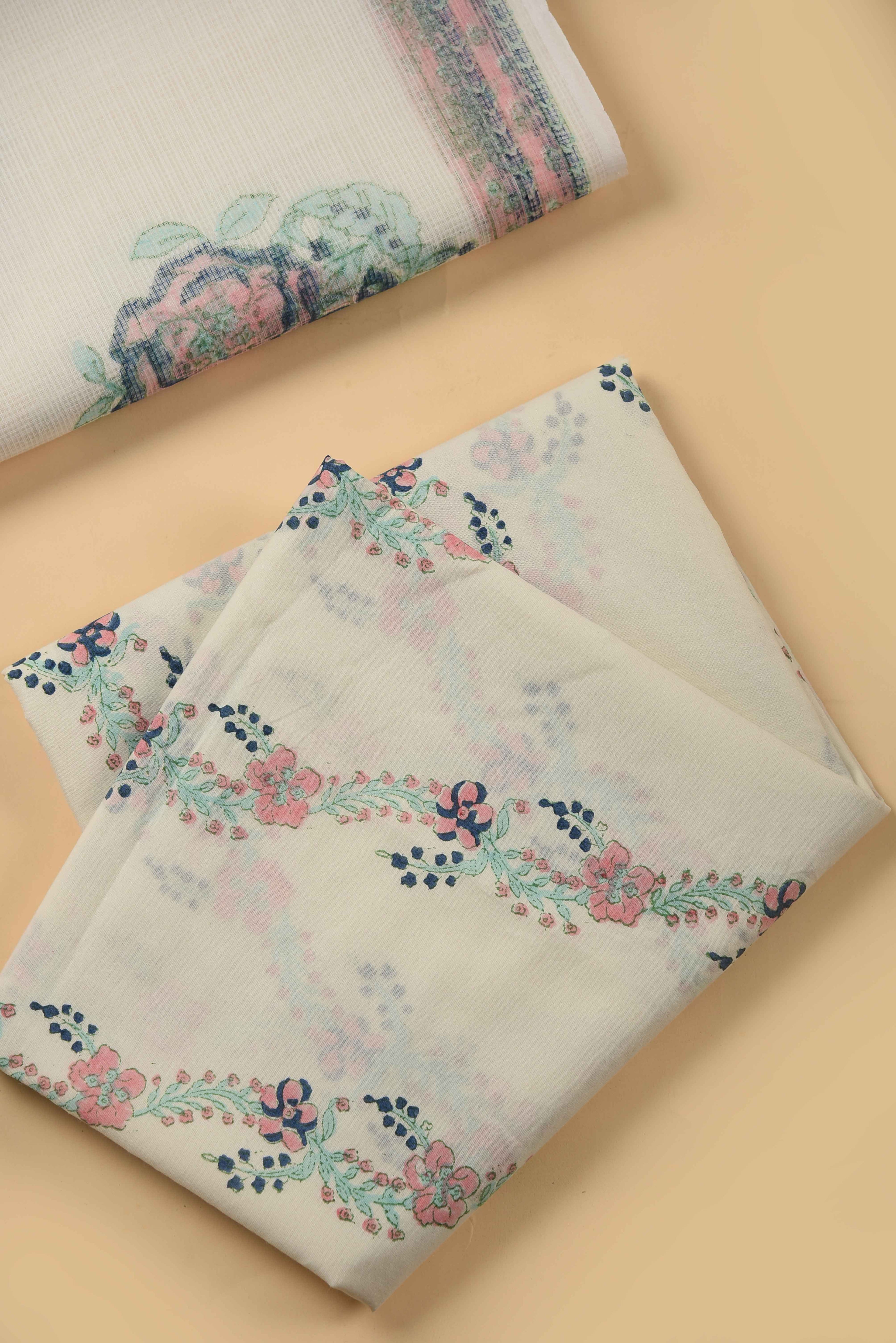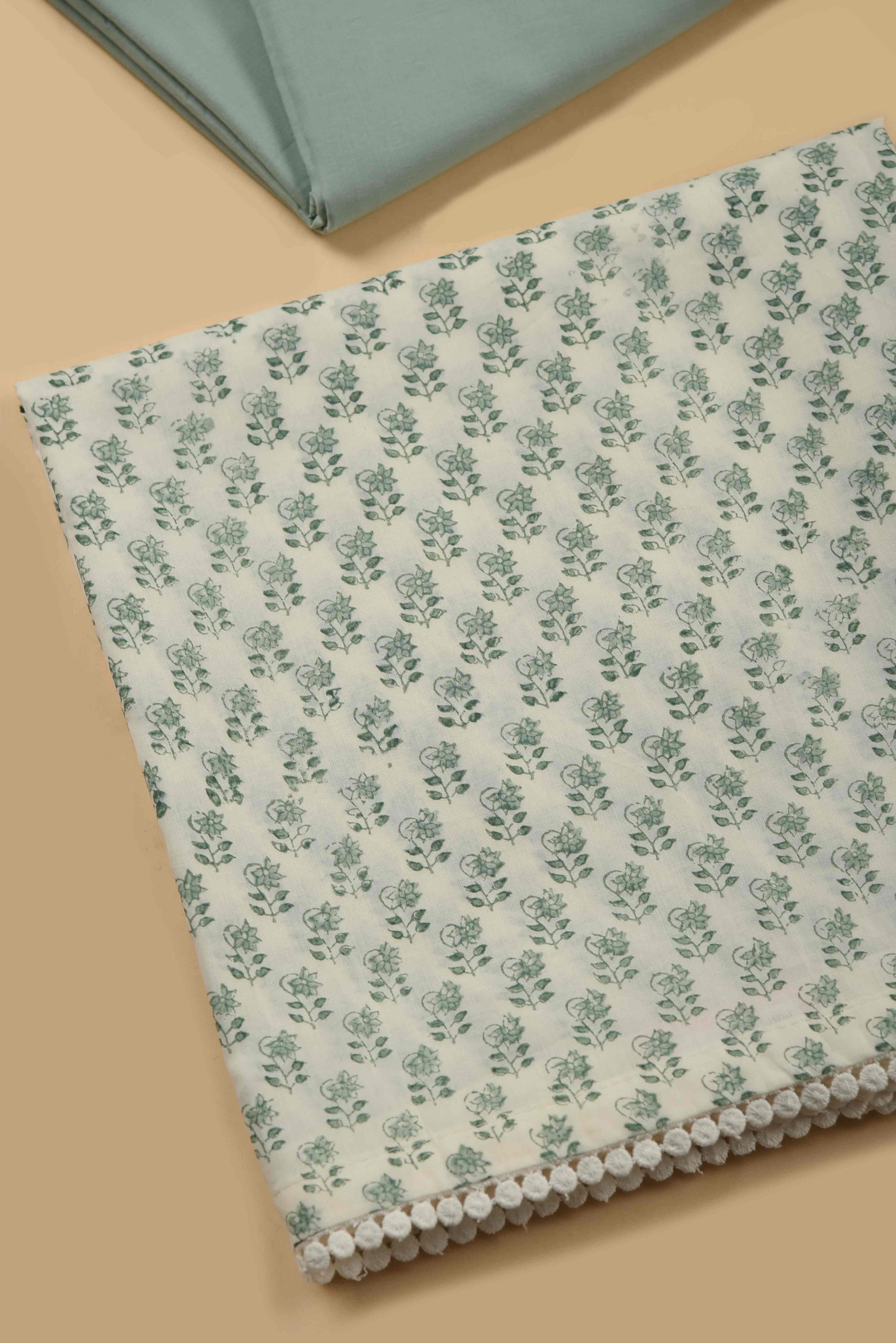 Black With Green Kota Hand Block Printed Unstitched Suit Fabric Set With Kota Hand Block Printed Dupatta