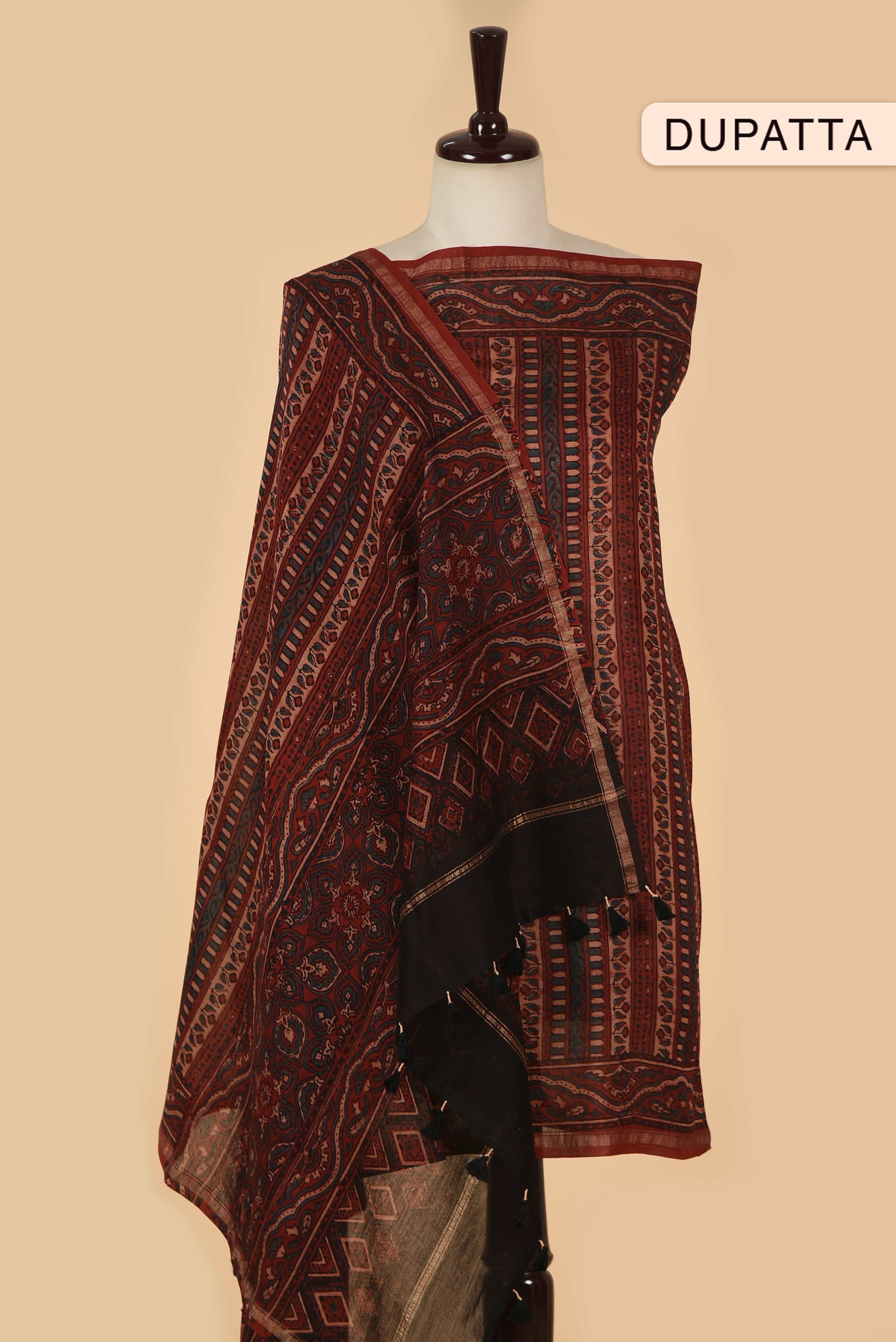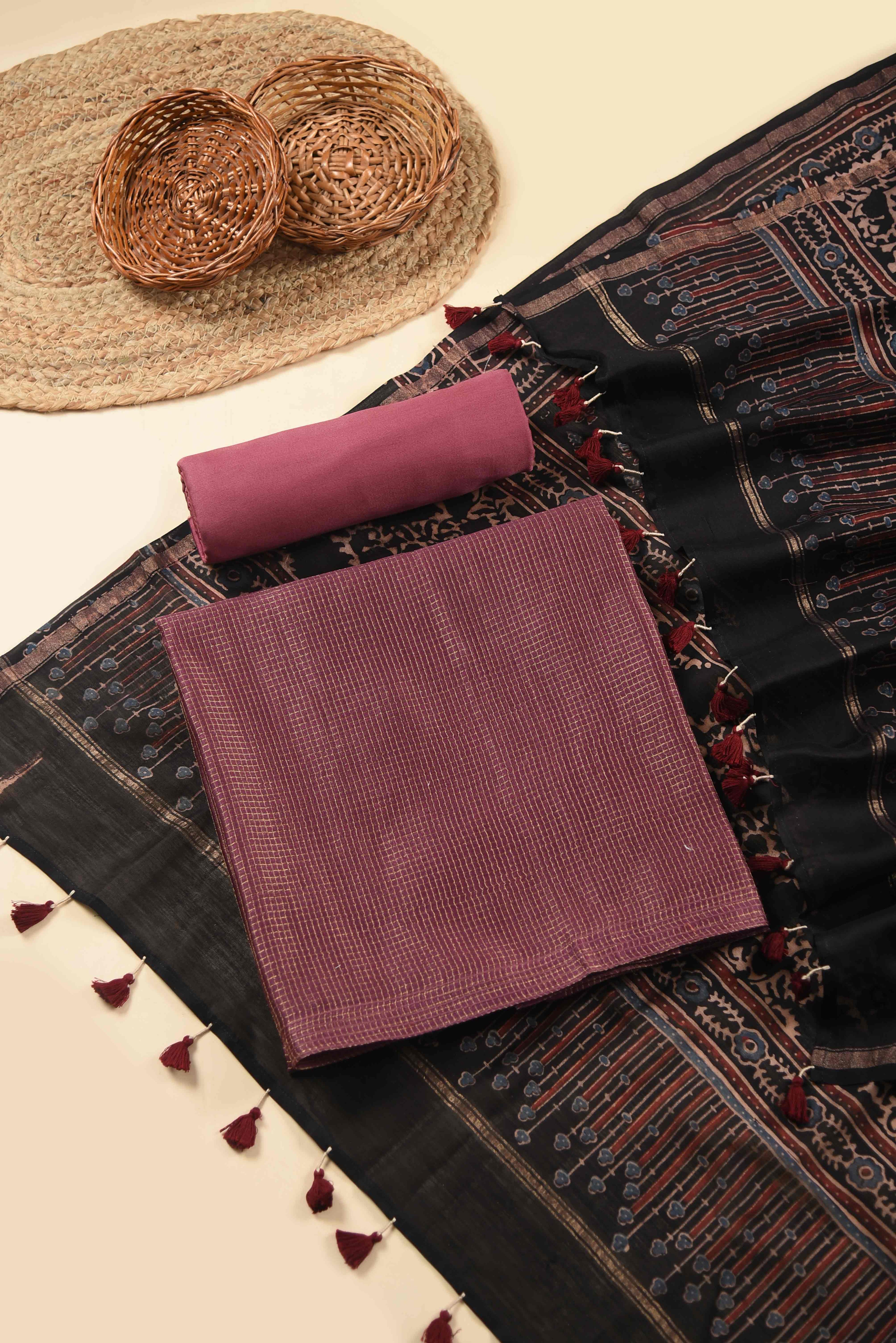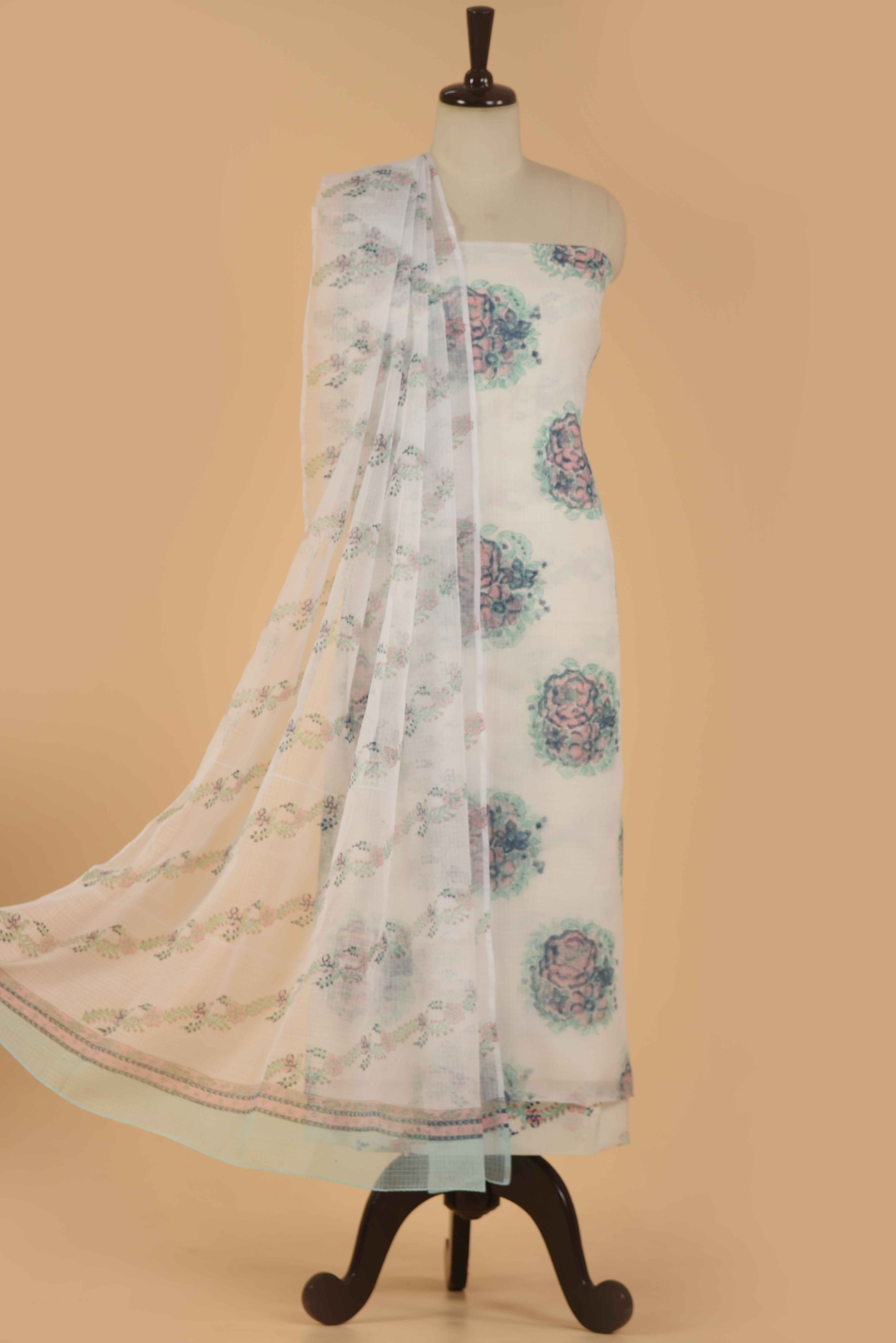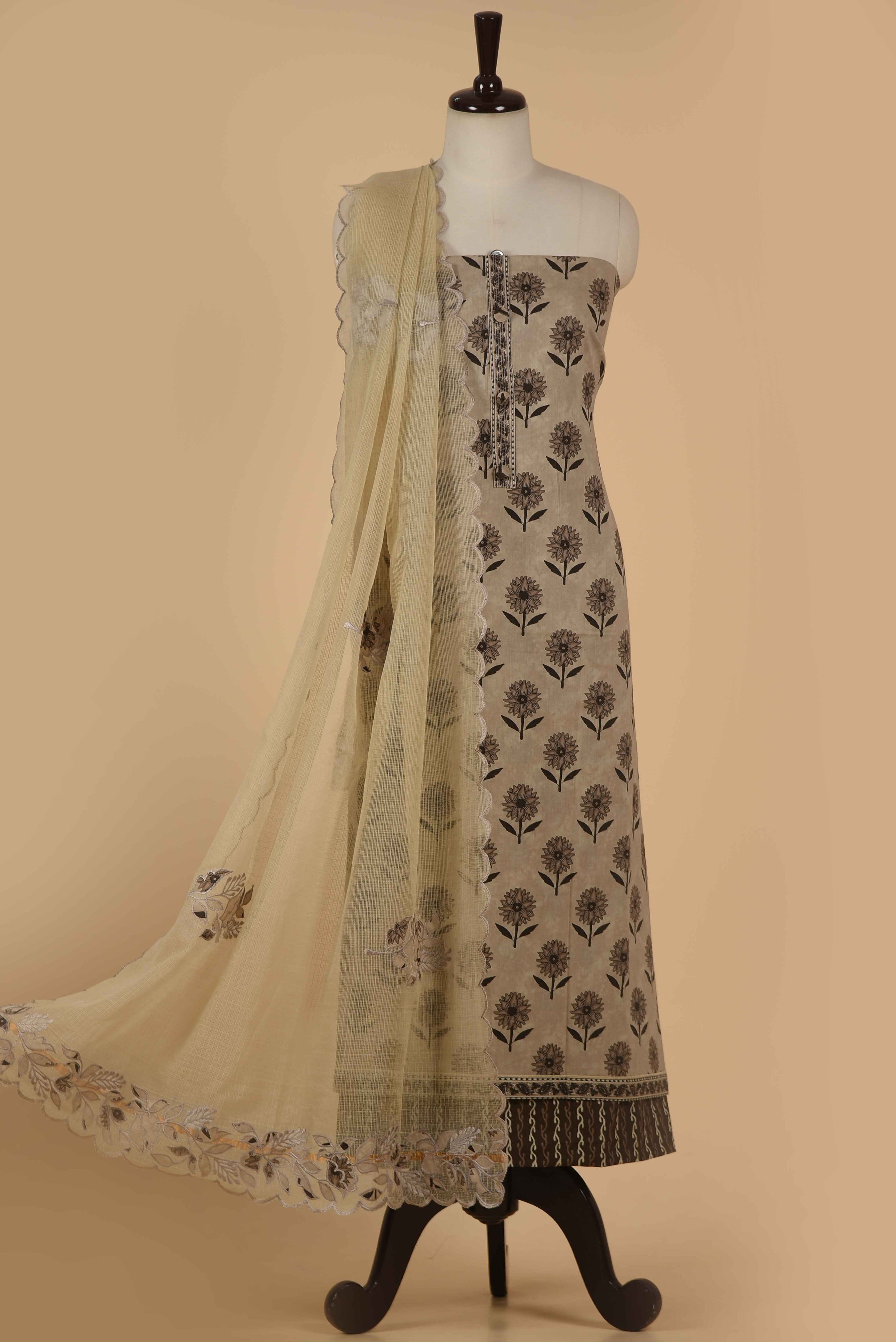 Black With Green Kota Hand Block Printed Unstitched Suit Fabric Set With Kota Hand Block Printed Dupatta