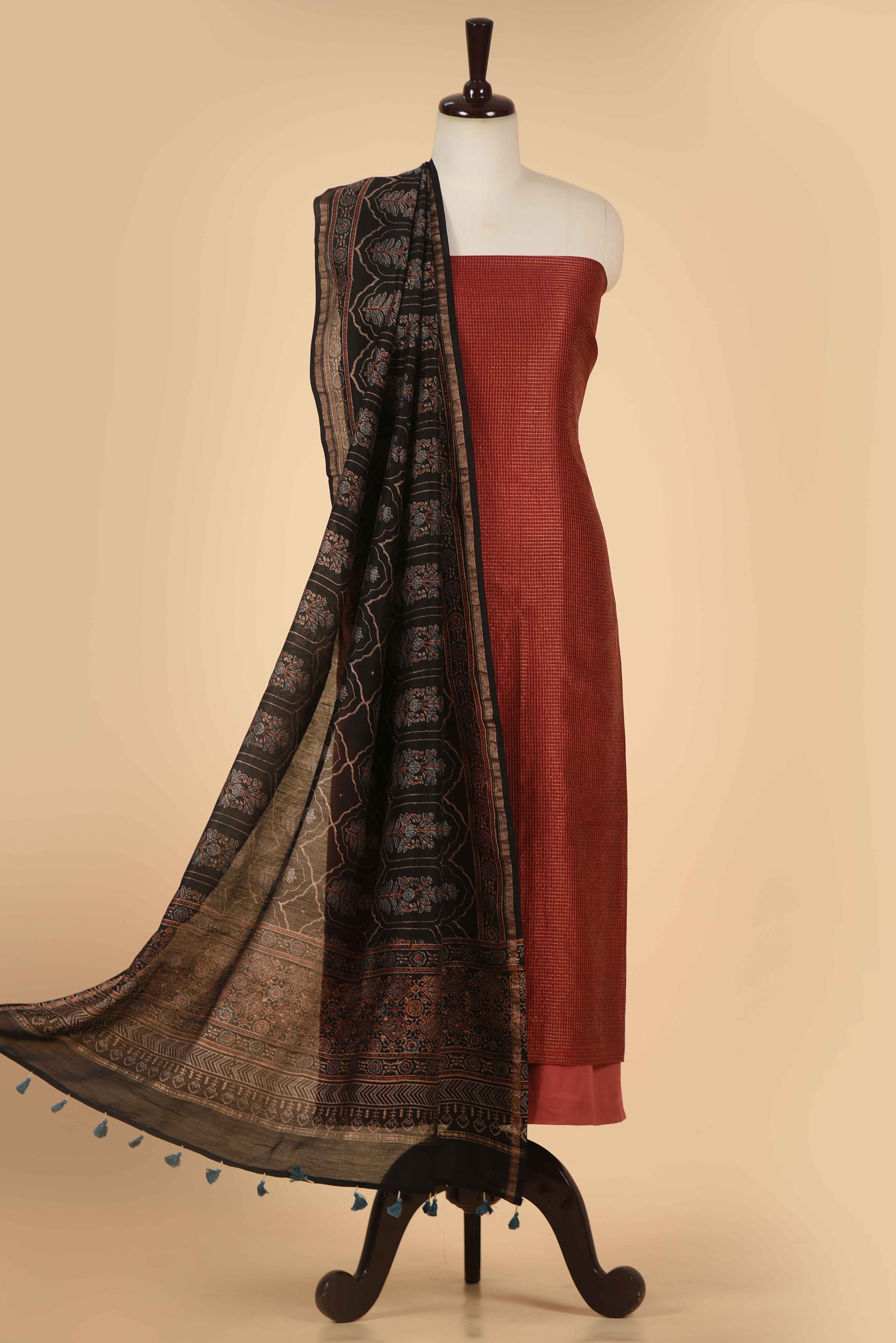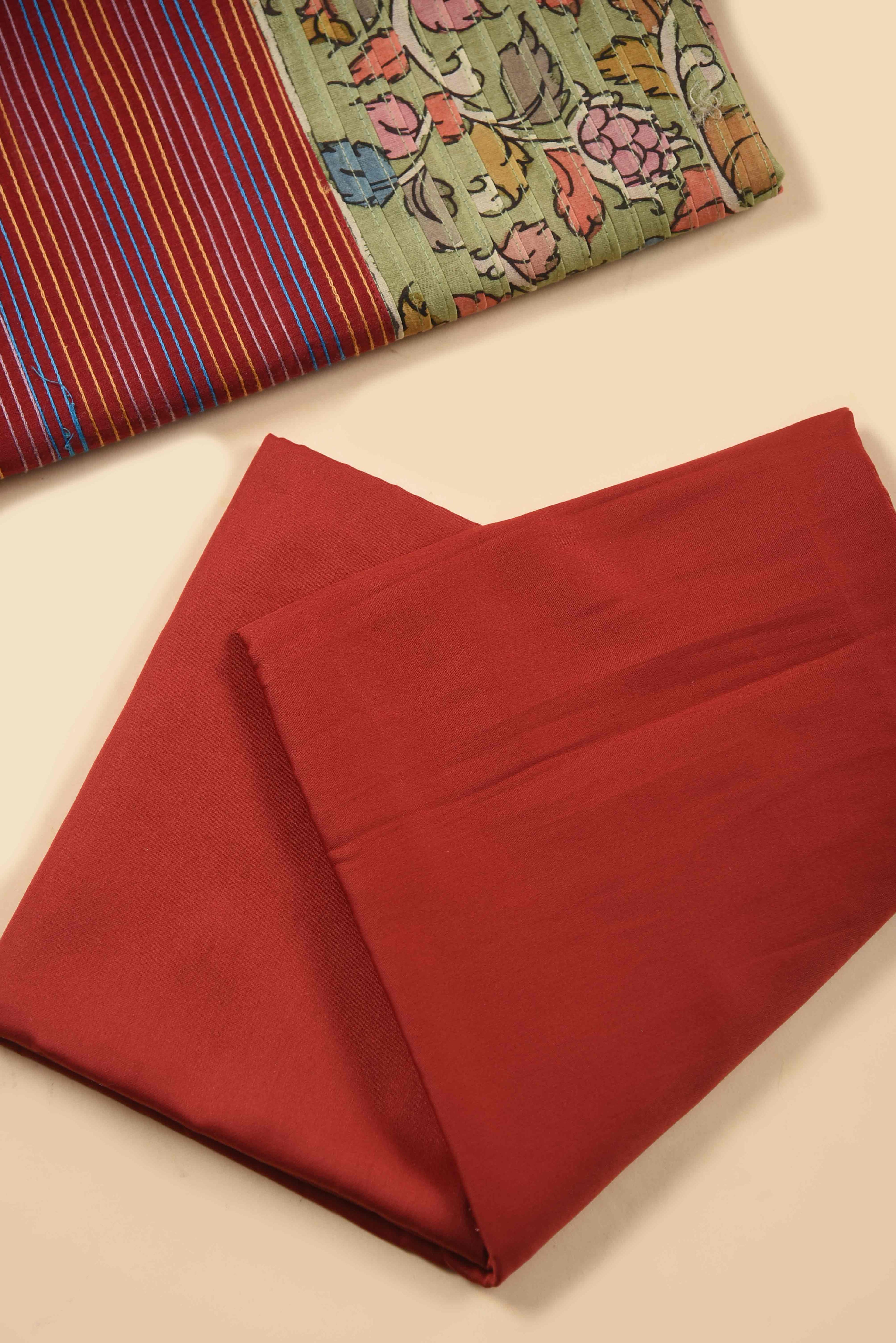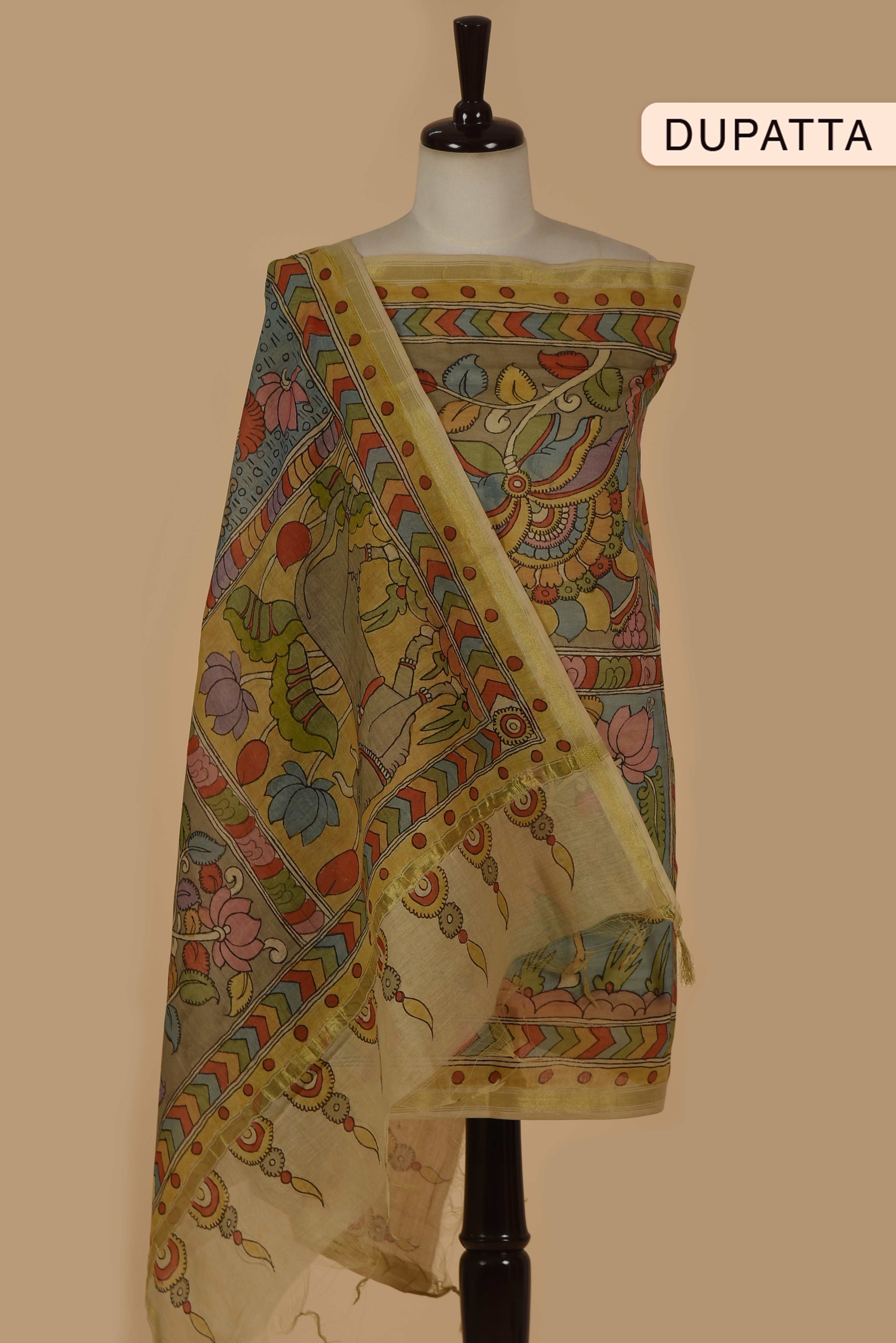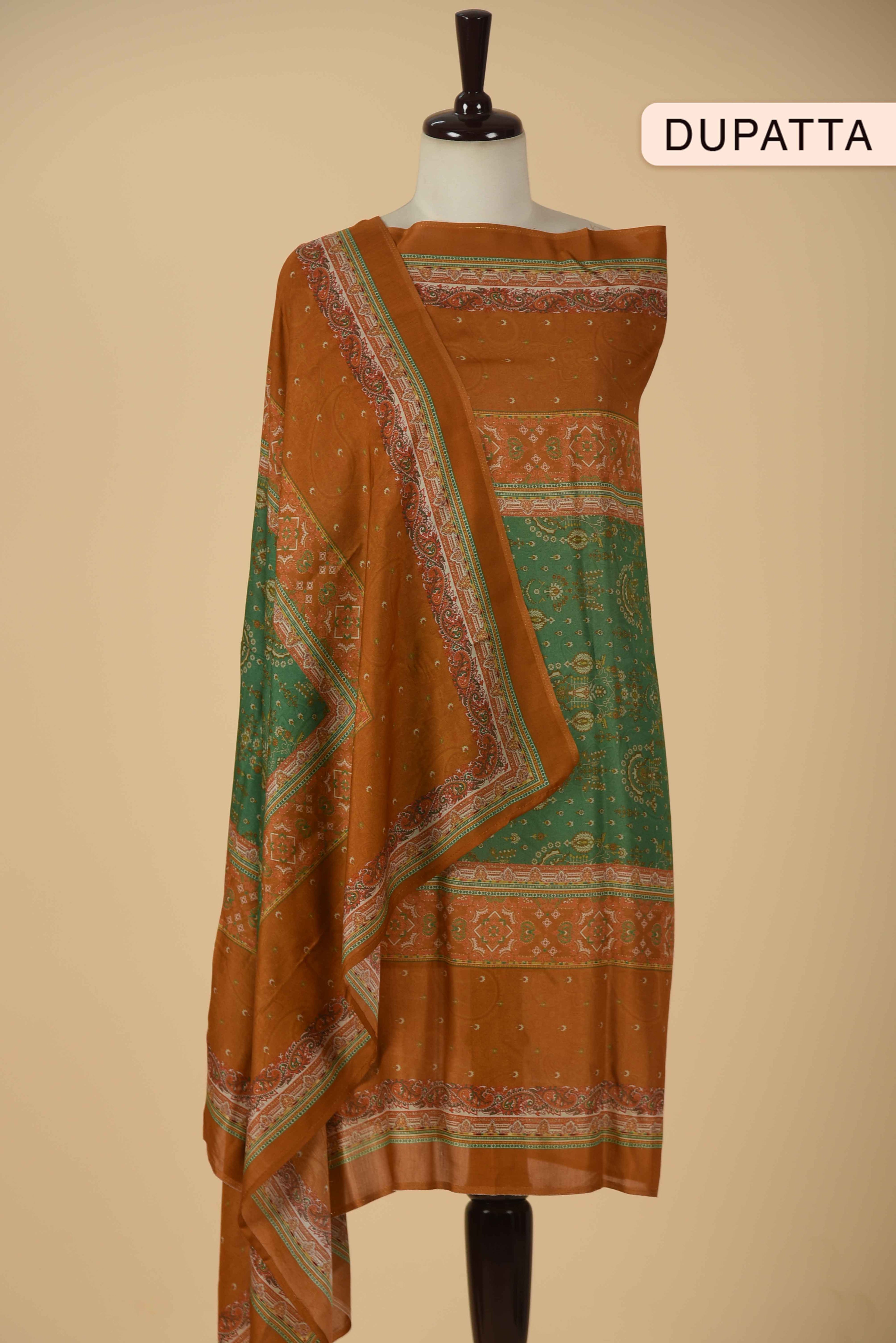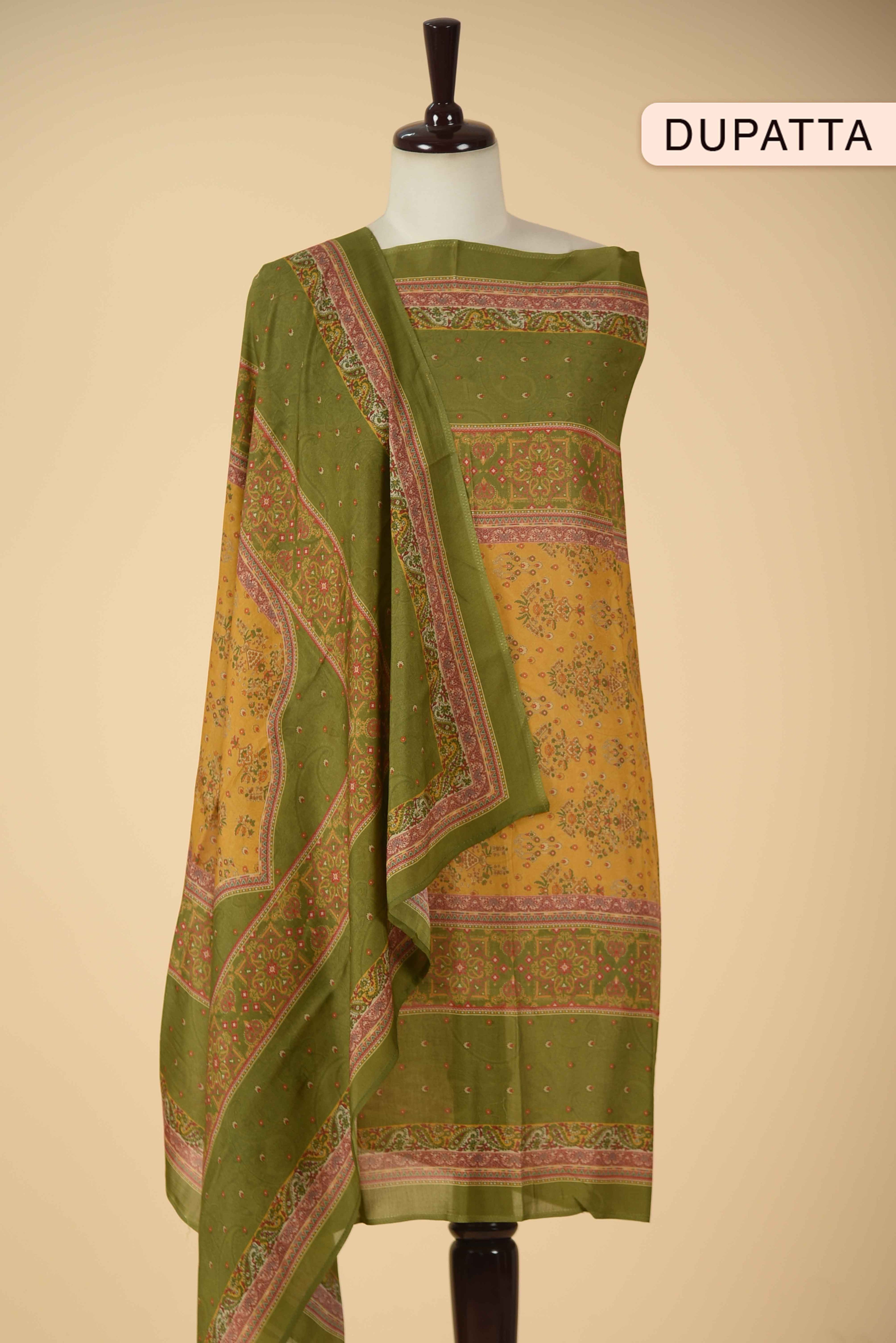 Black With Green Kota Hand Block Printed Unstitched Suit Fabric Set With Kota Hand Block Printed Dupatta