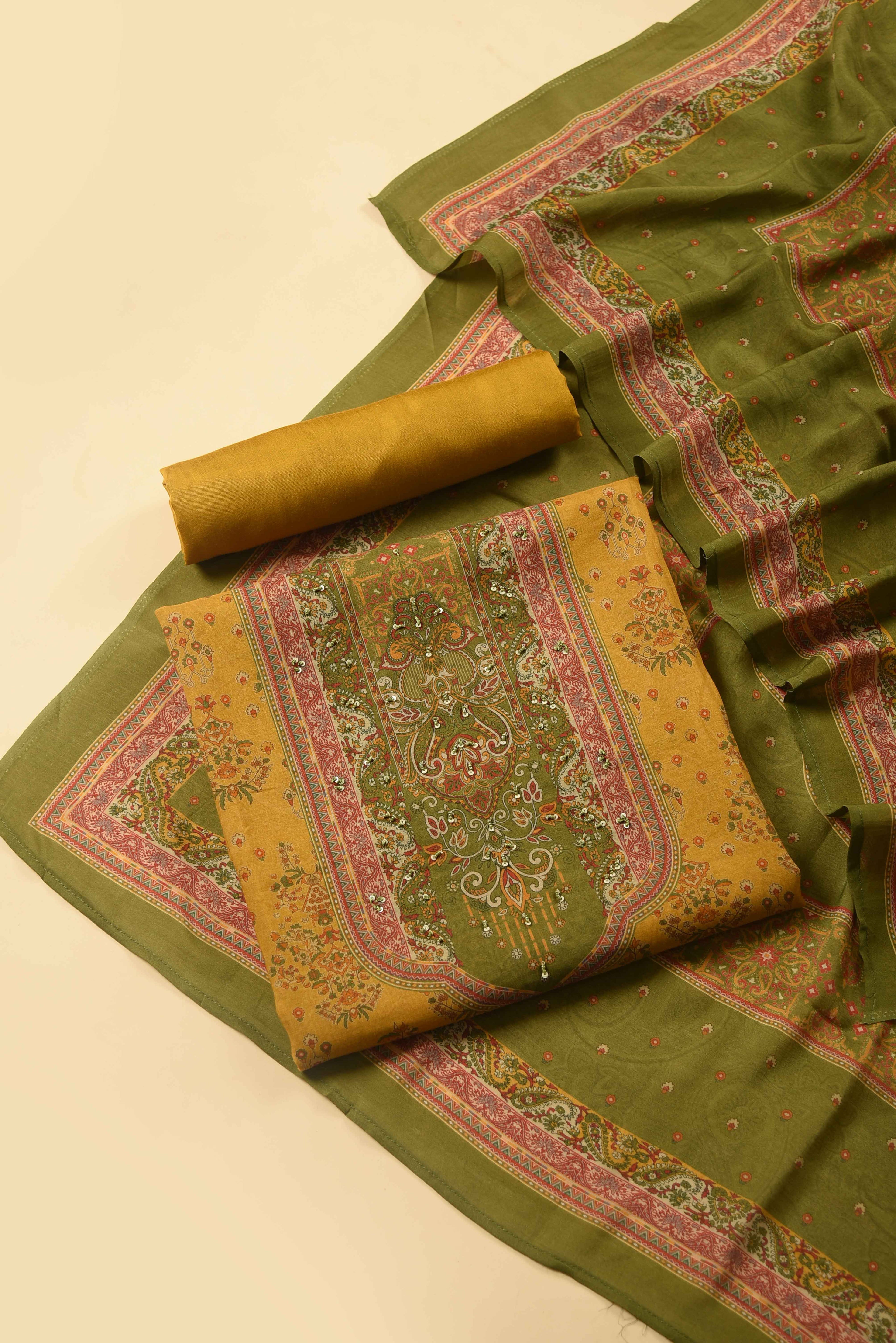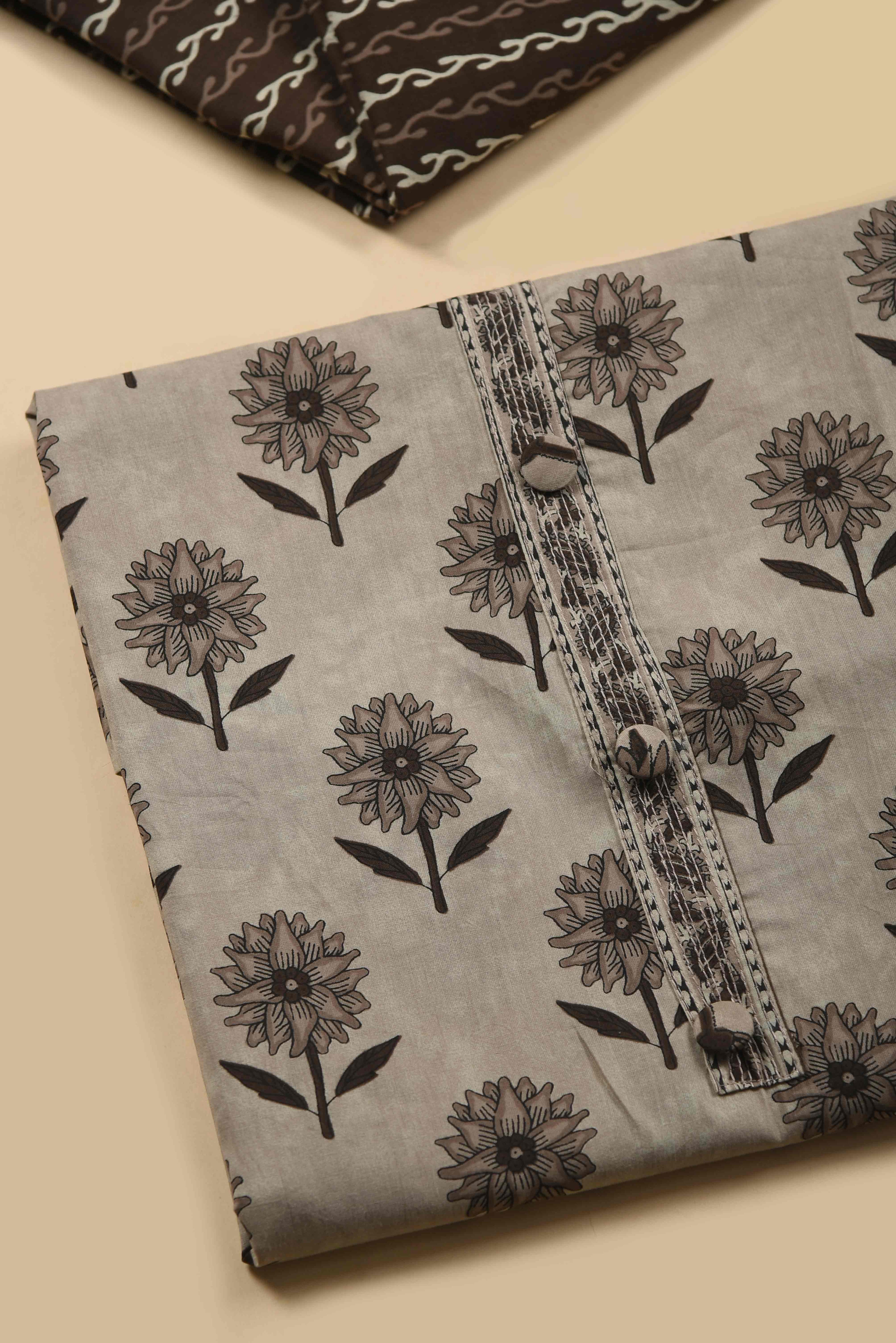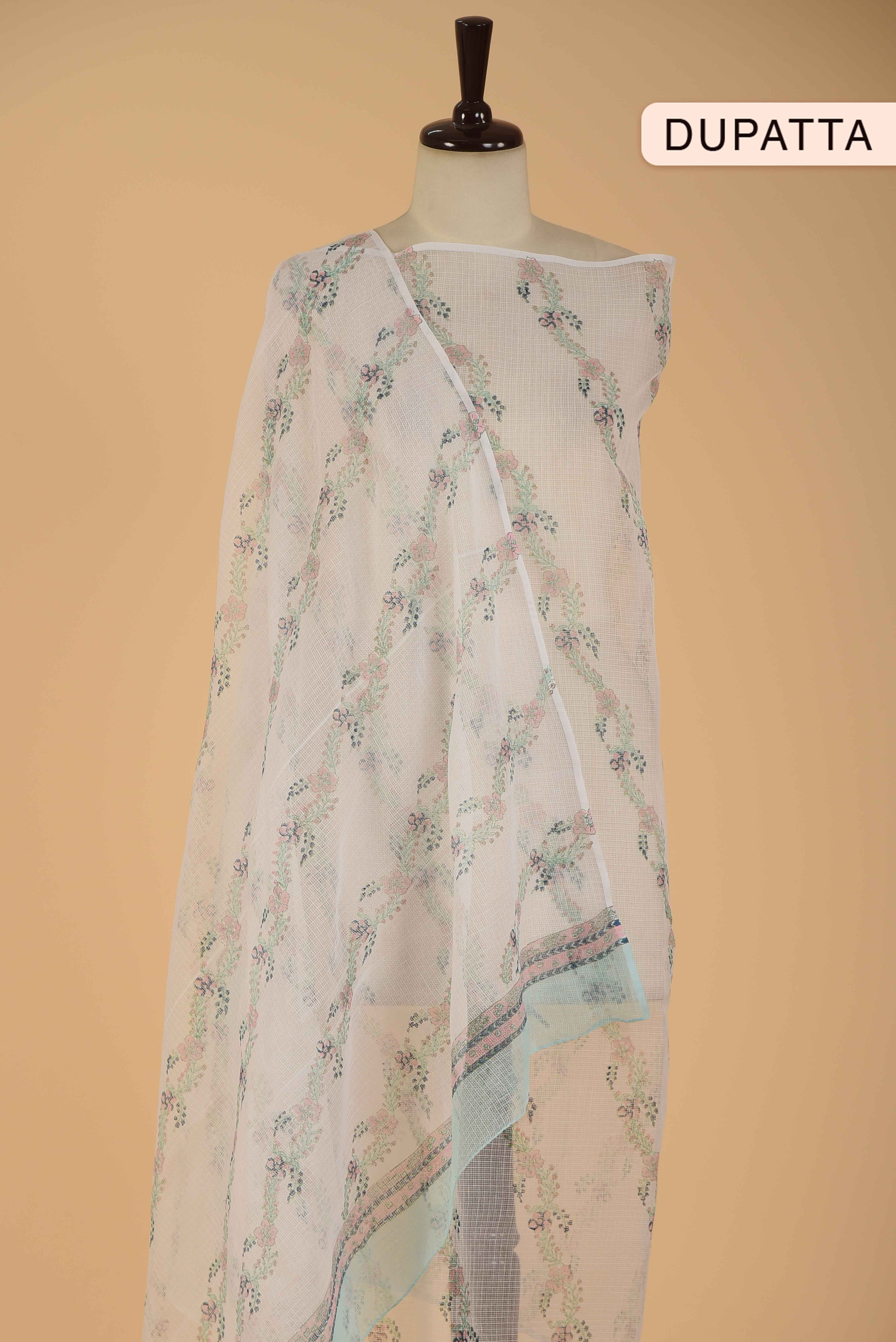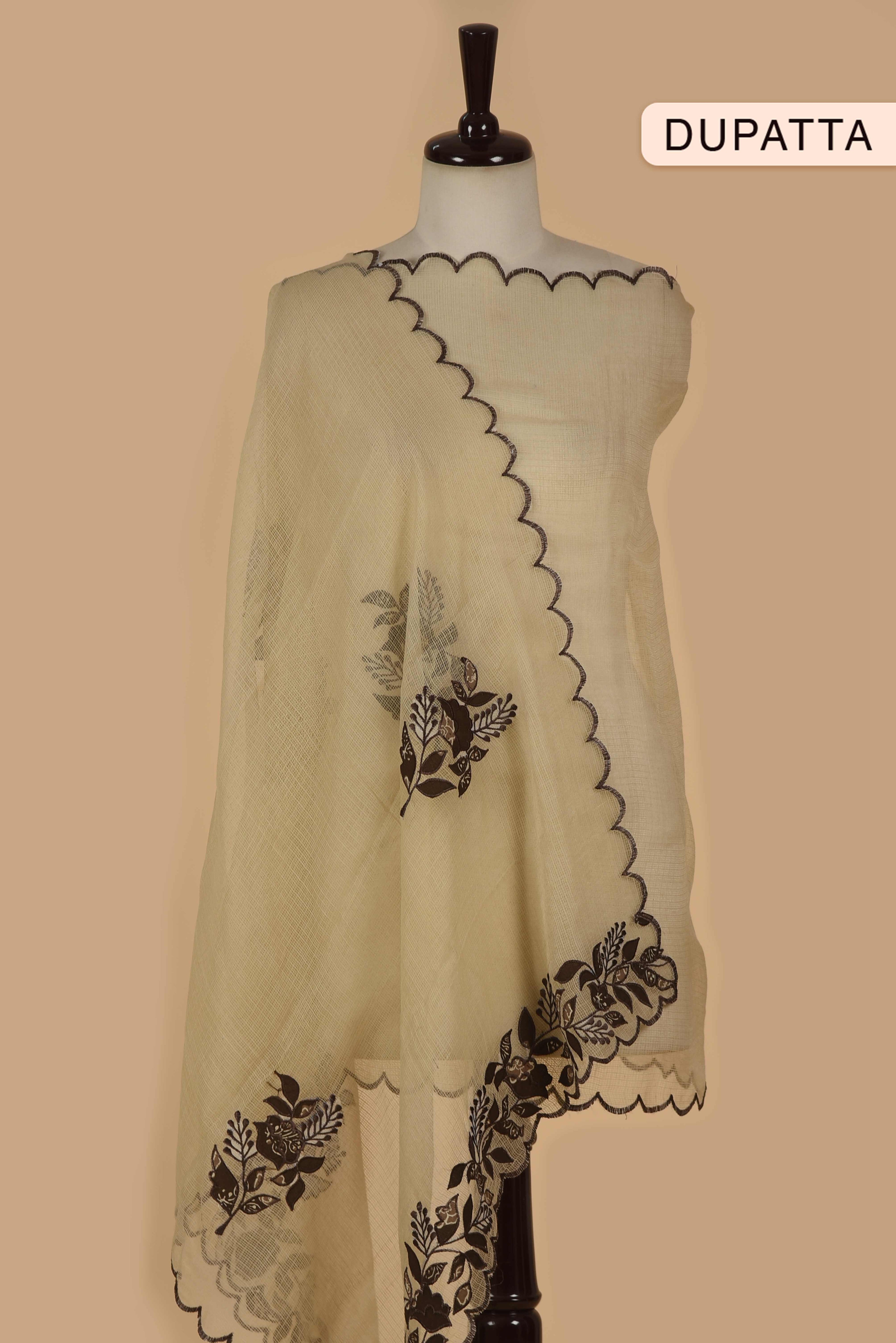 Black With Green Kota Hand Block Printed Unstitched Suit Fabric Set With Kota Hand Block Printed Dupatta