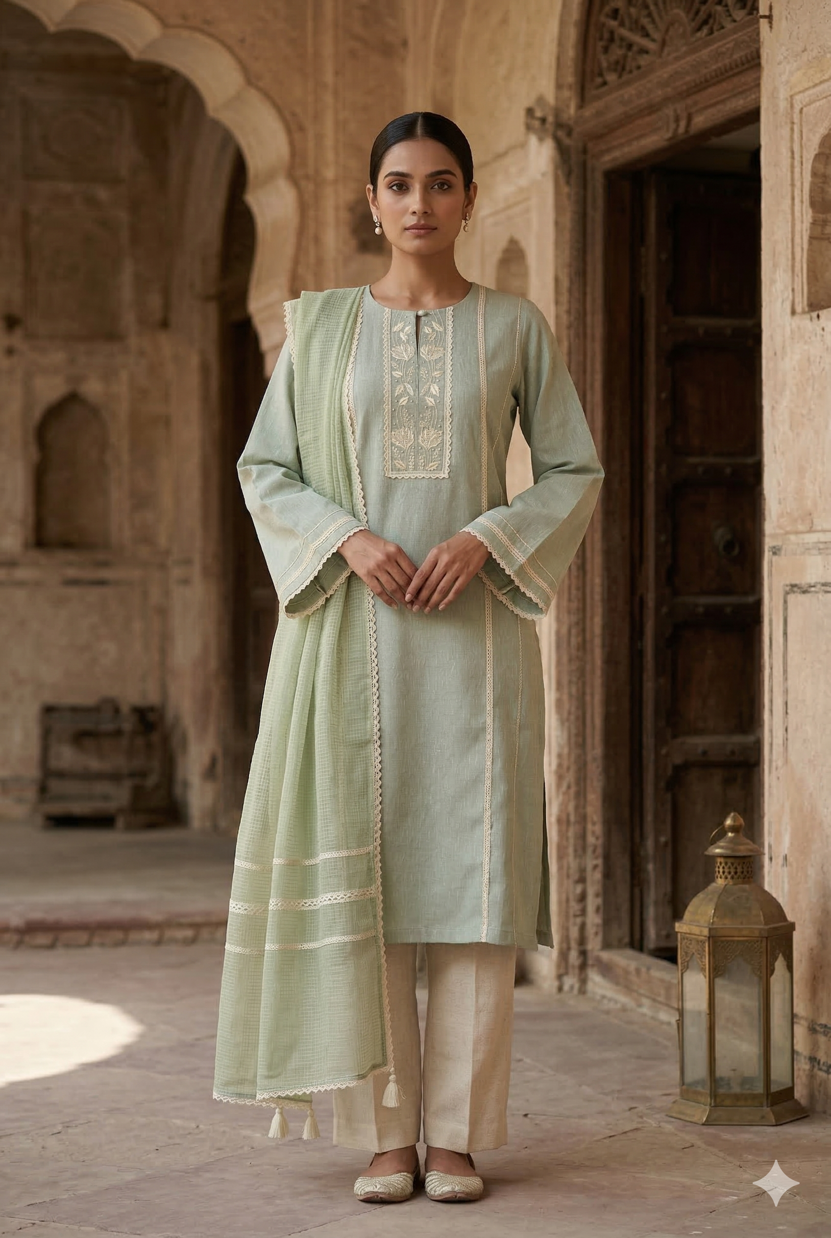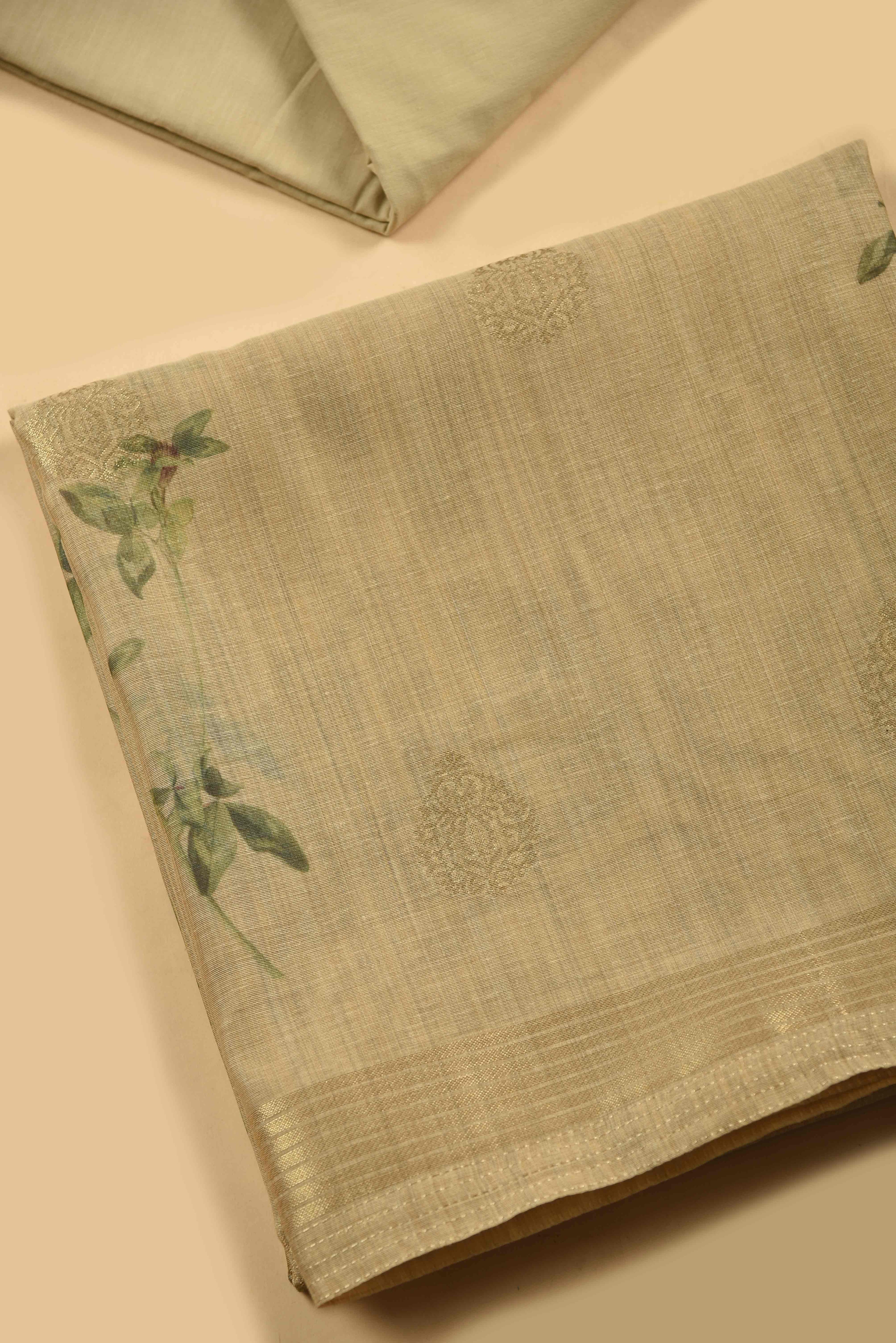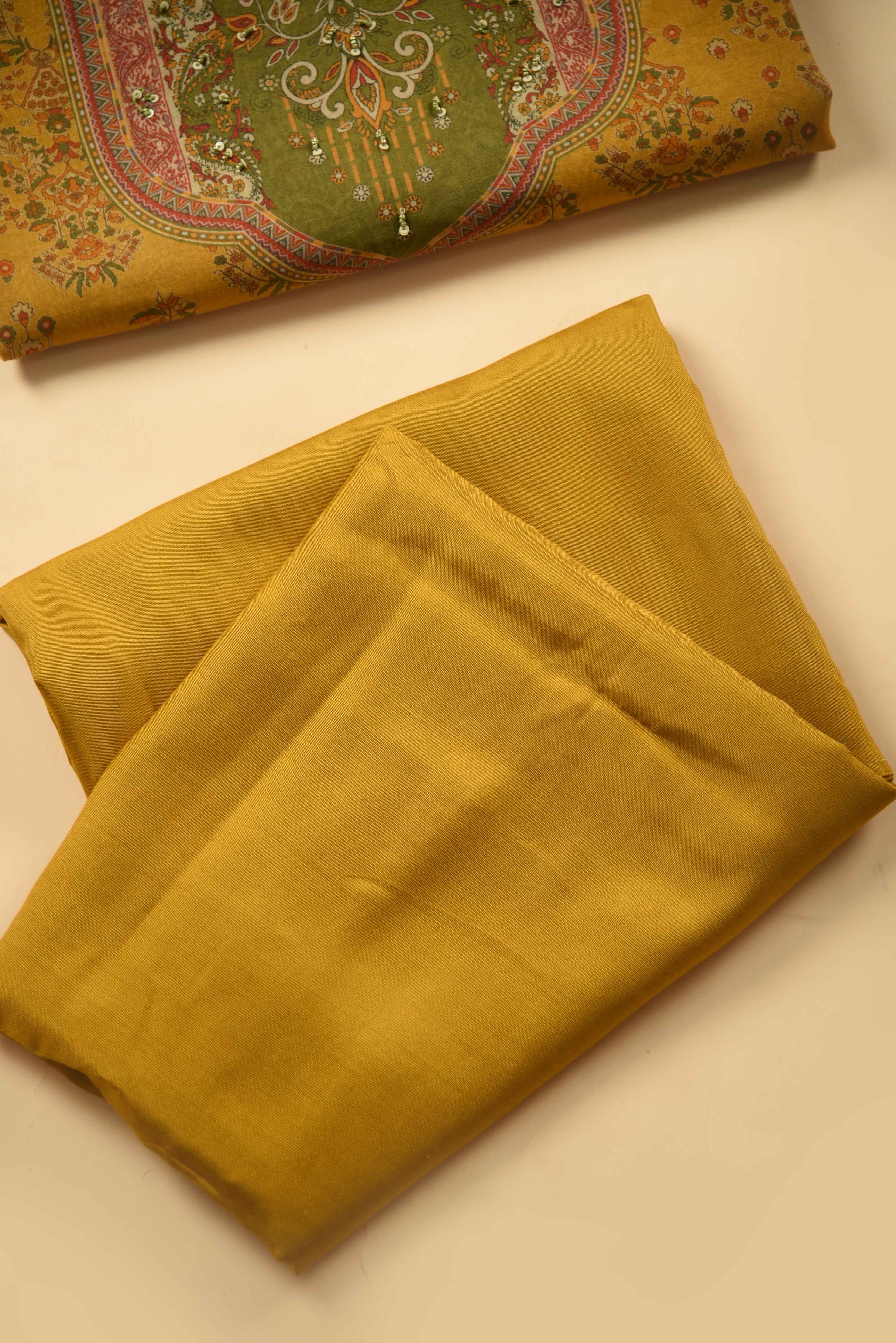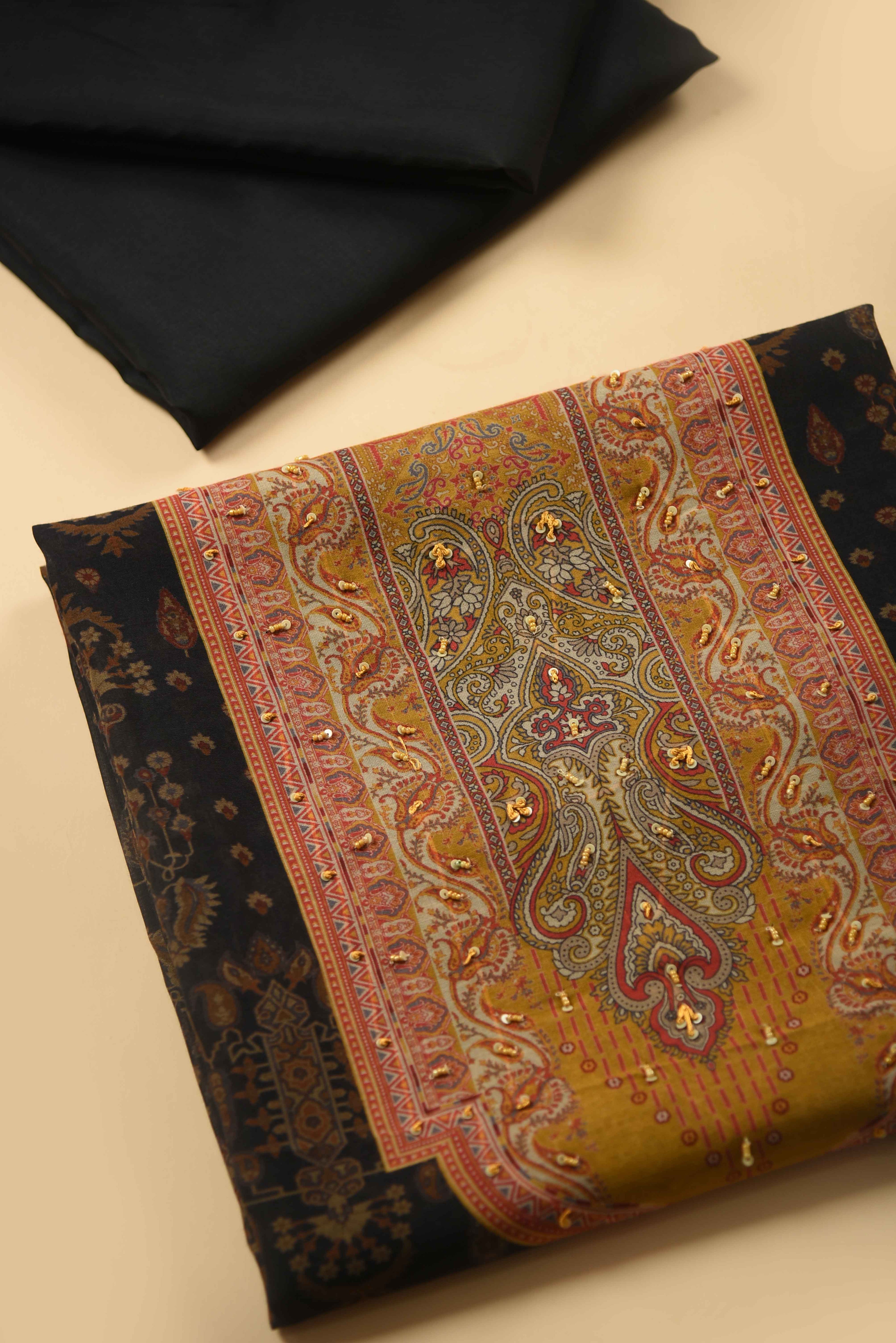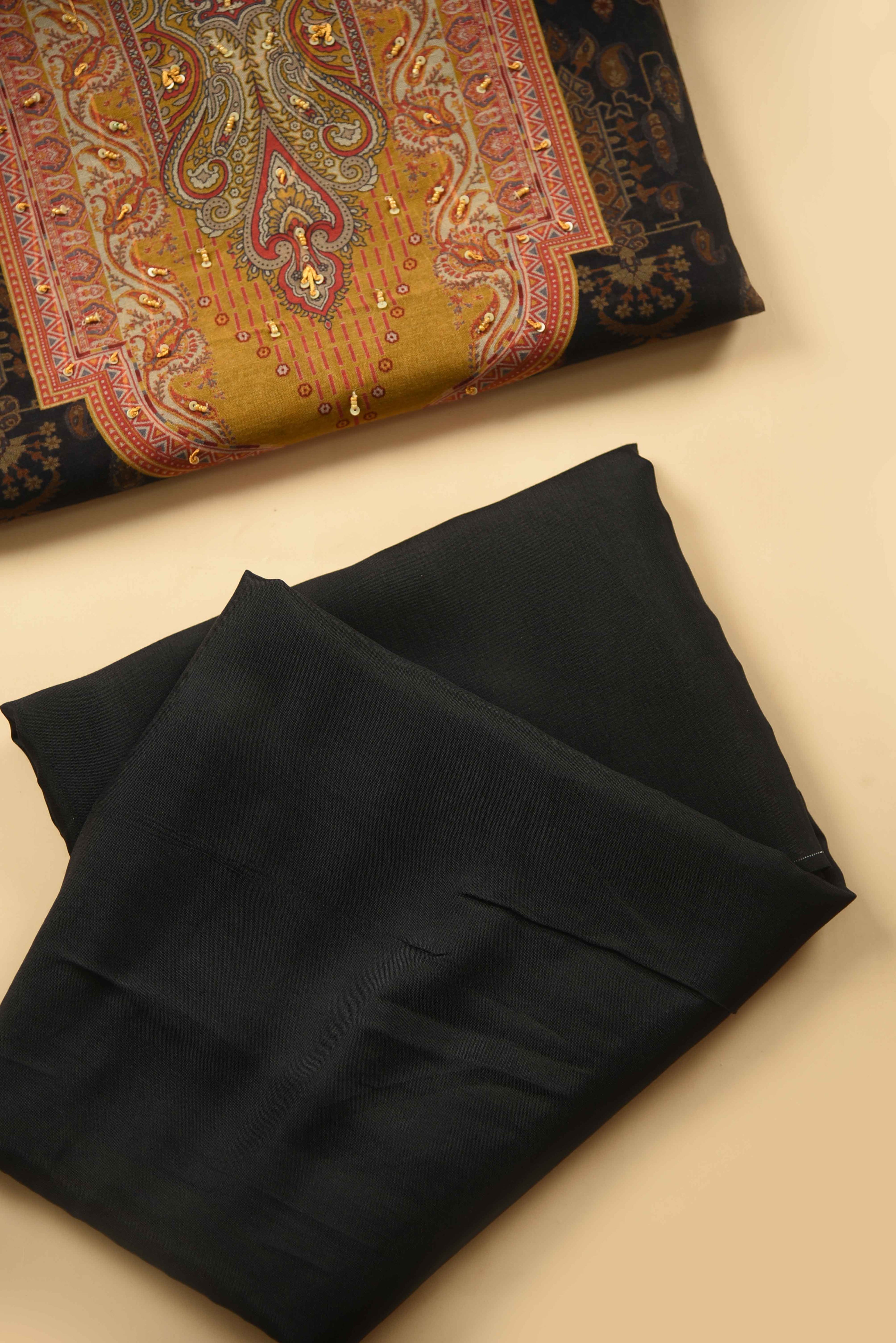 Black With Green Kota Hand Block Printed Unstitched Suit Fabric Set With Kota Hand Block Printed Dupatta