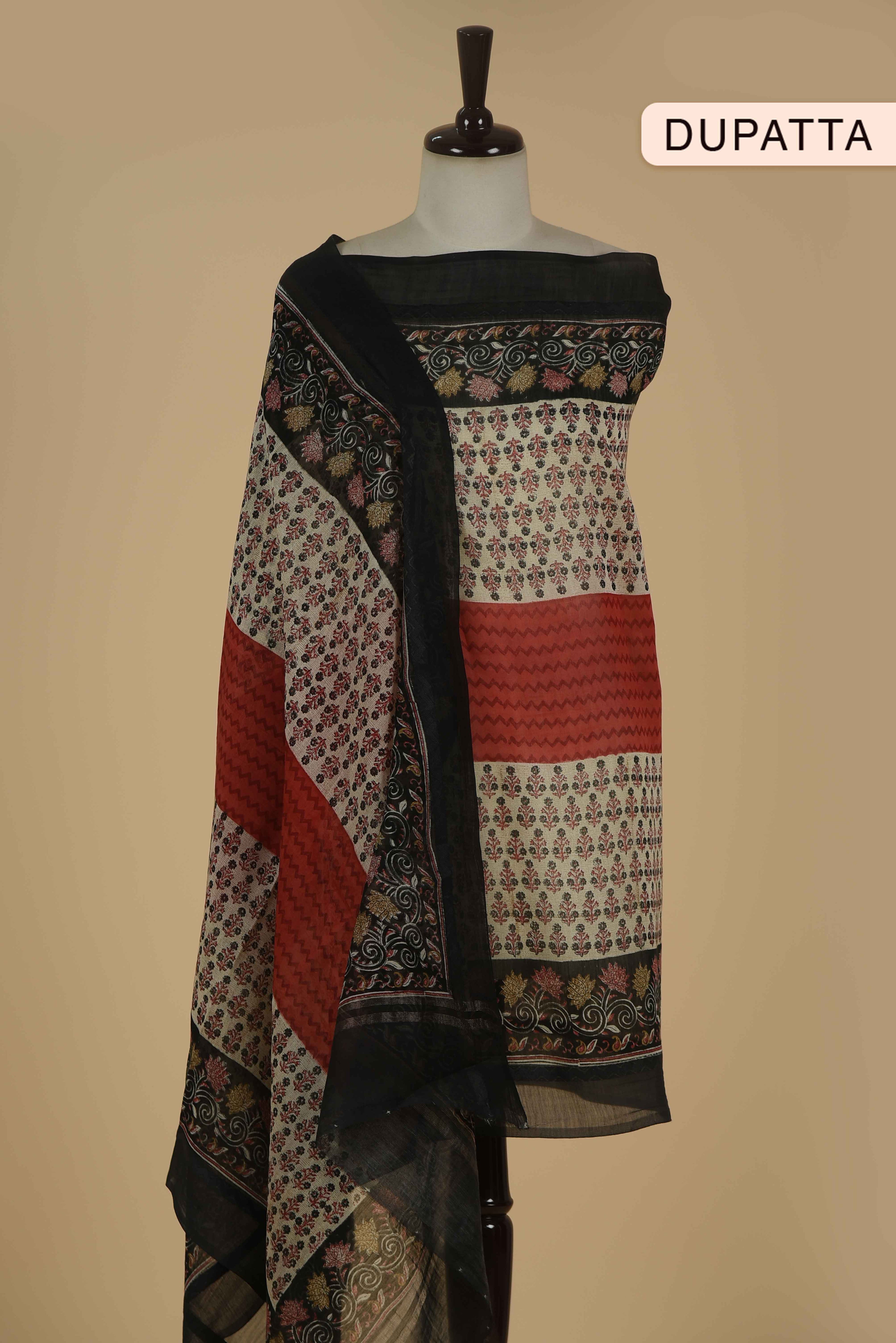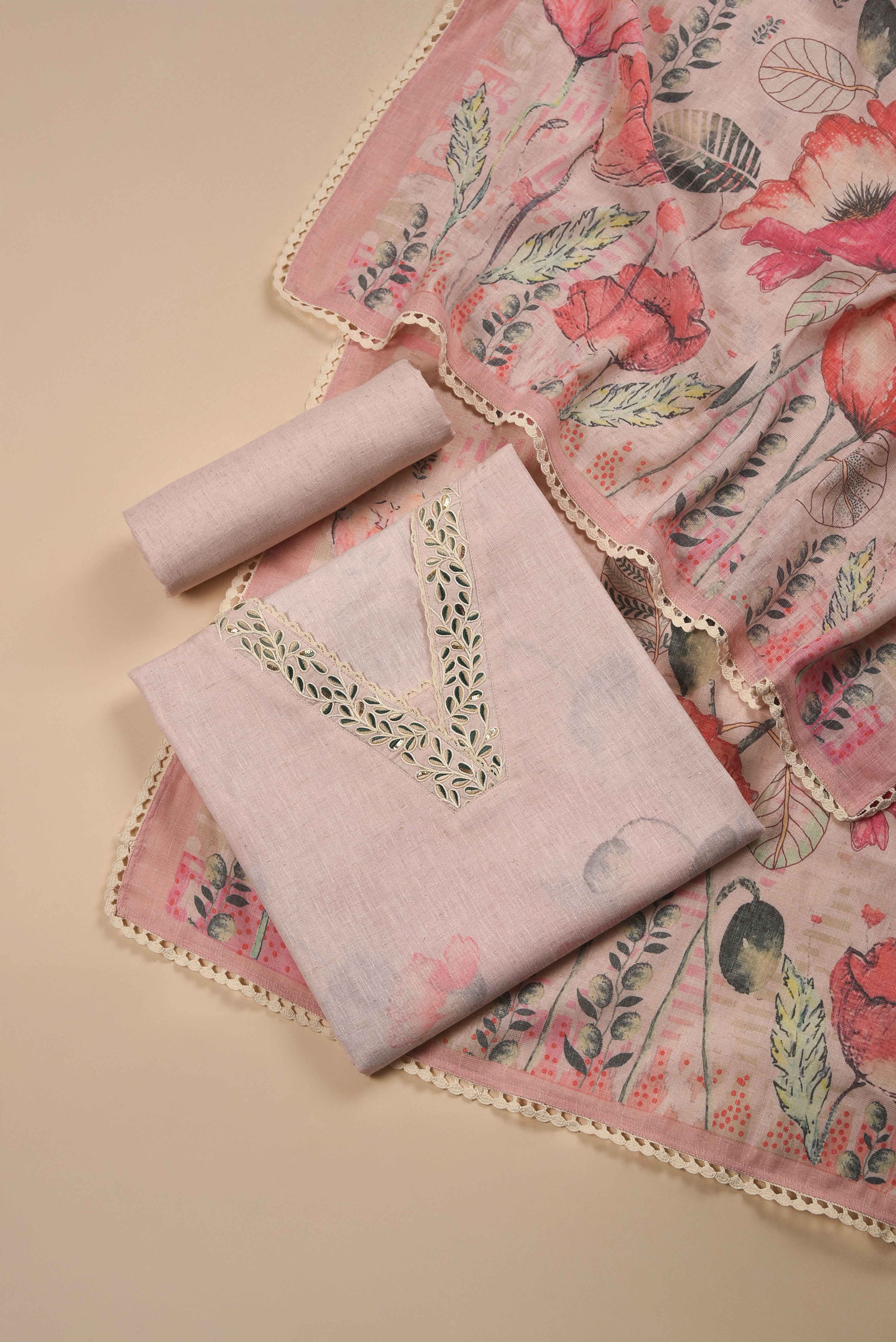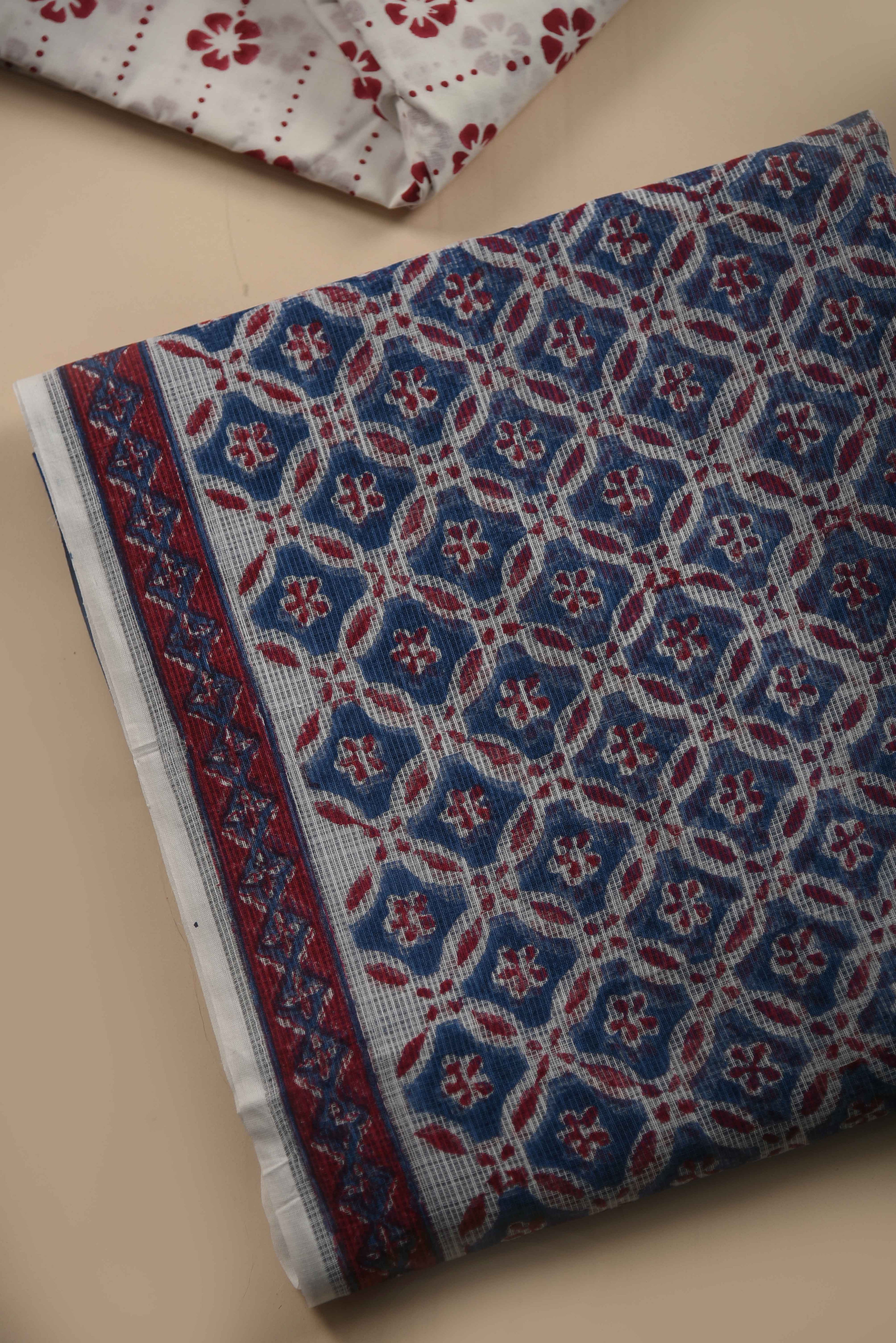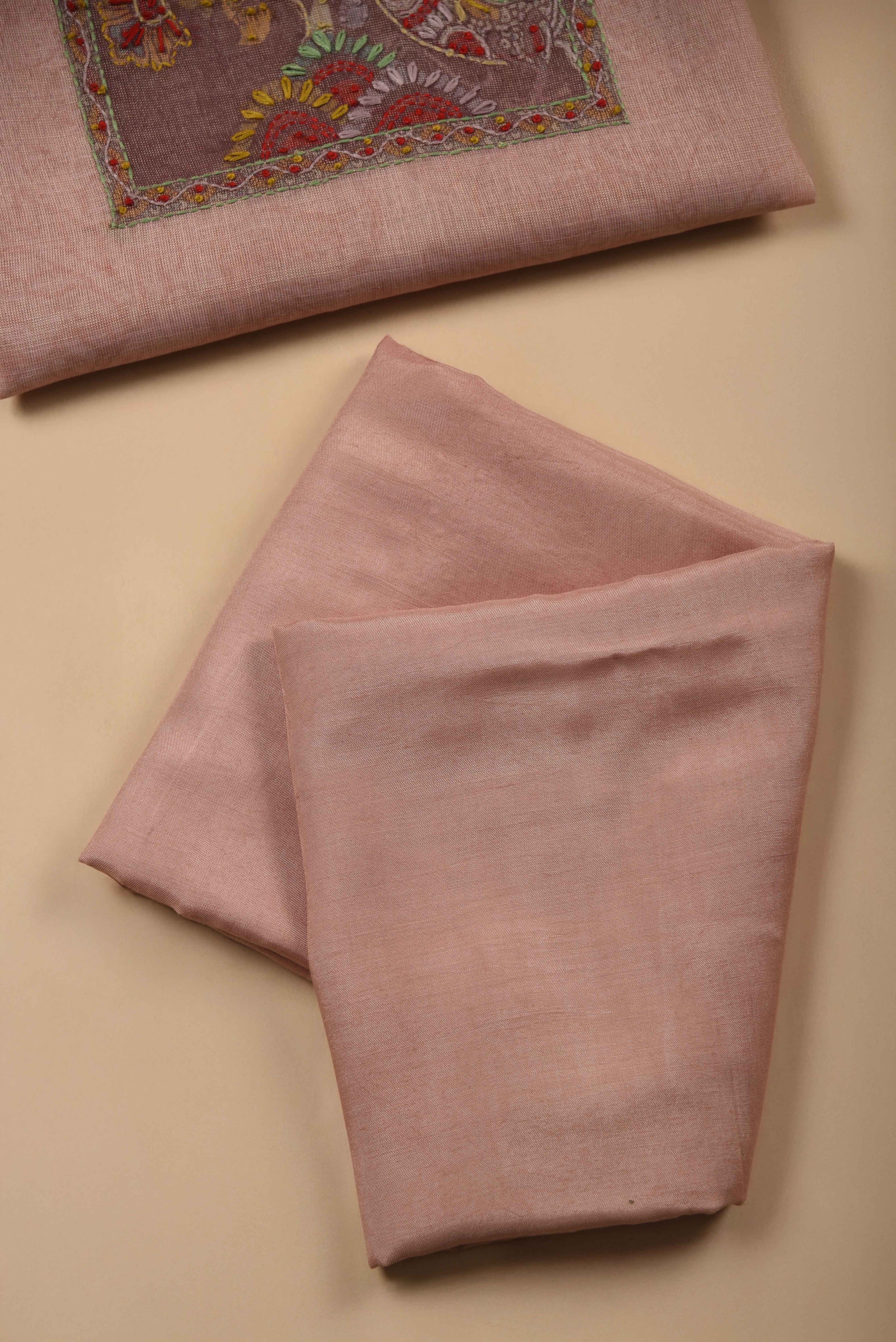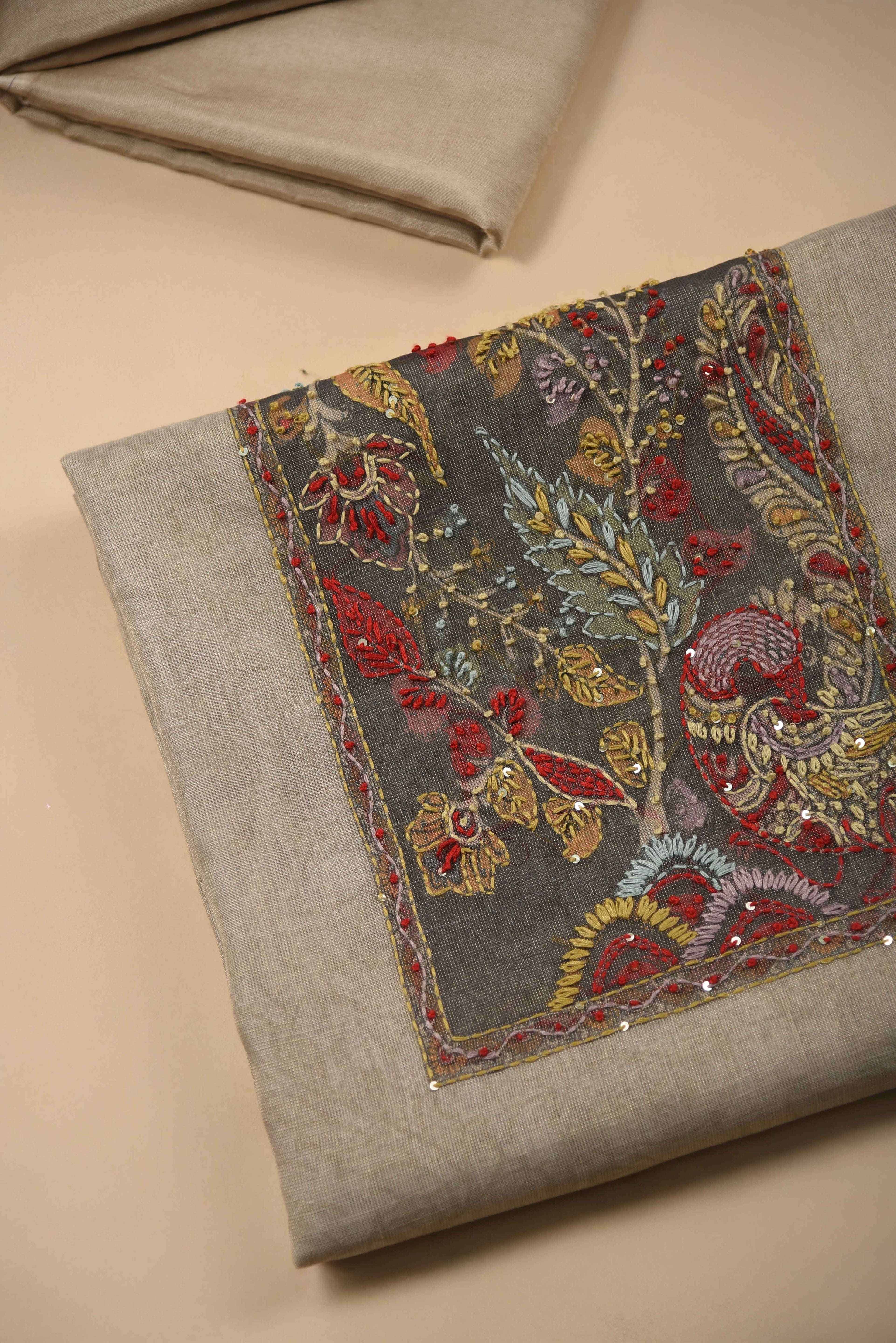 Red Mul chanderi Embroidered Unstitched Suit Fabric Set With Mul Chanderi Embroidered Dupatta