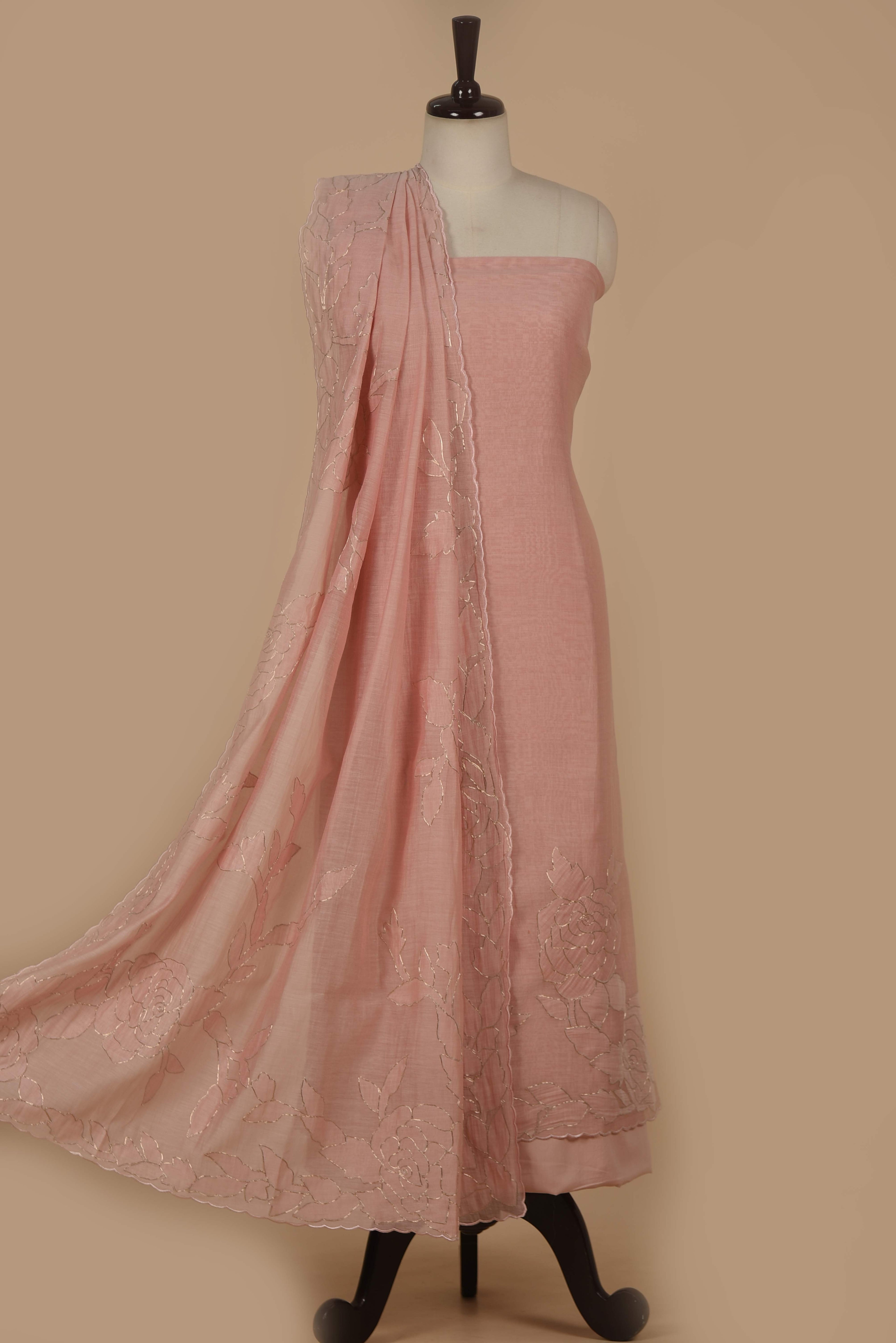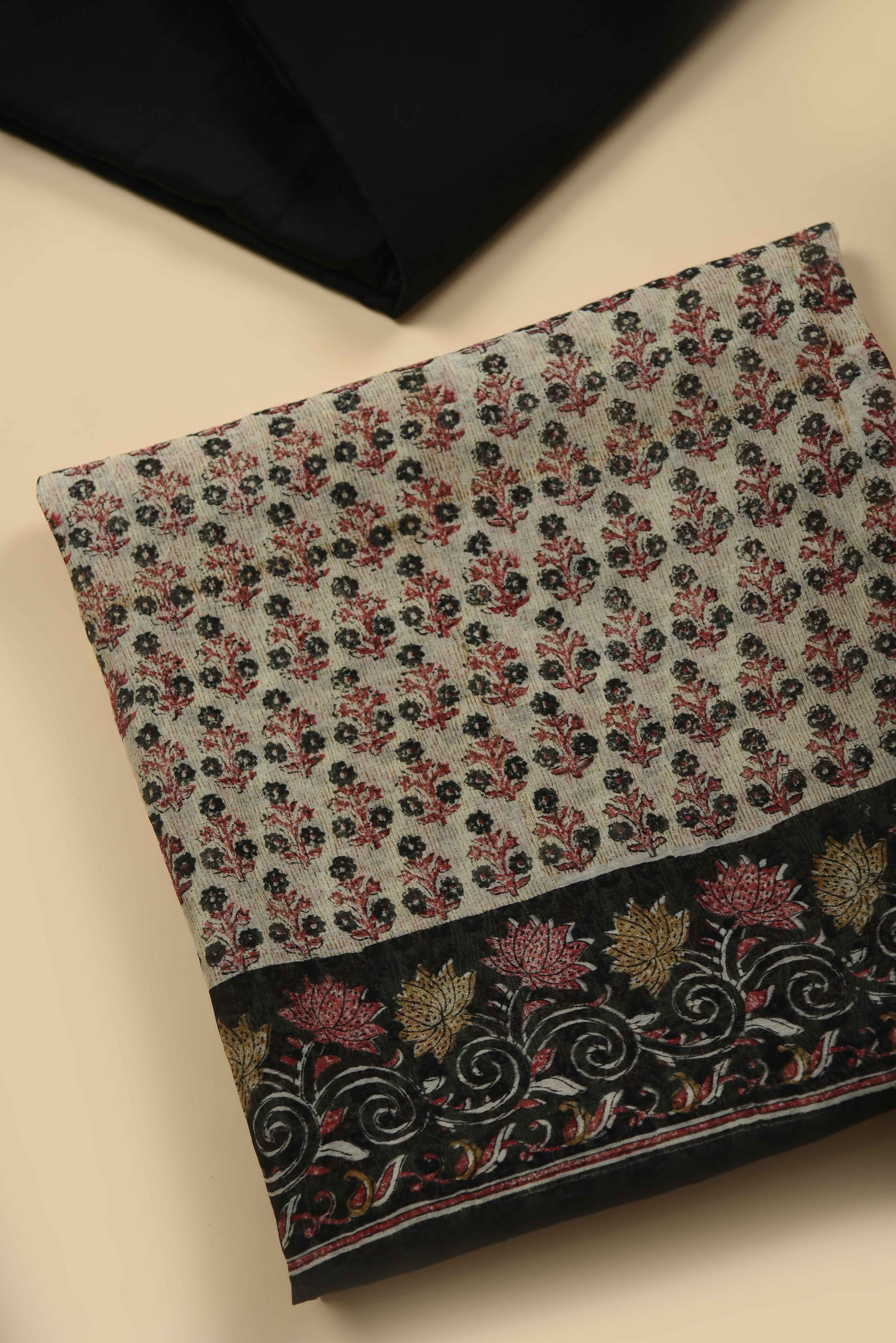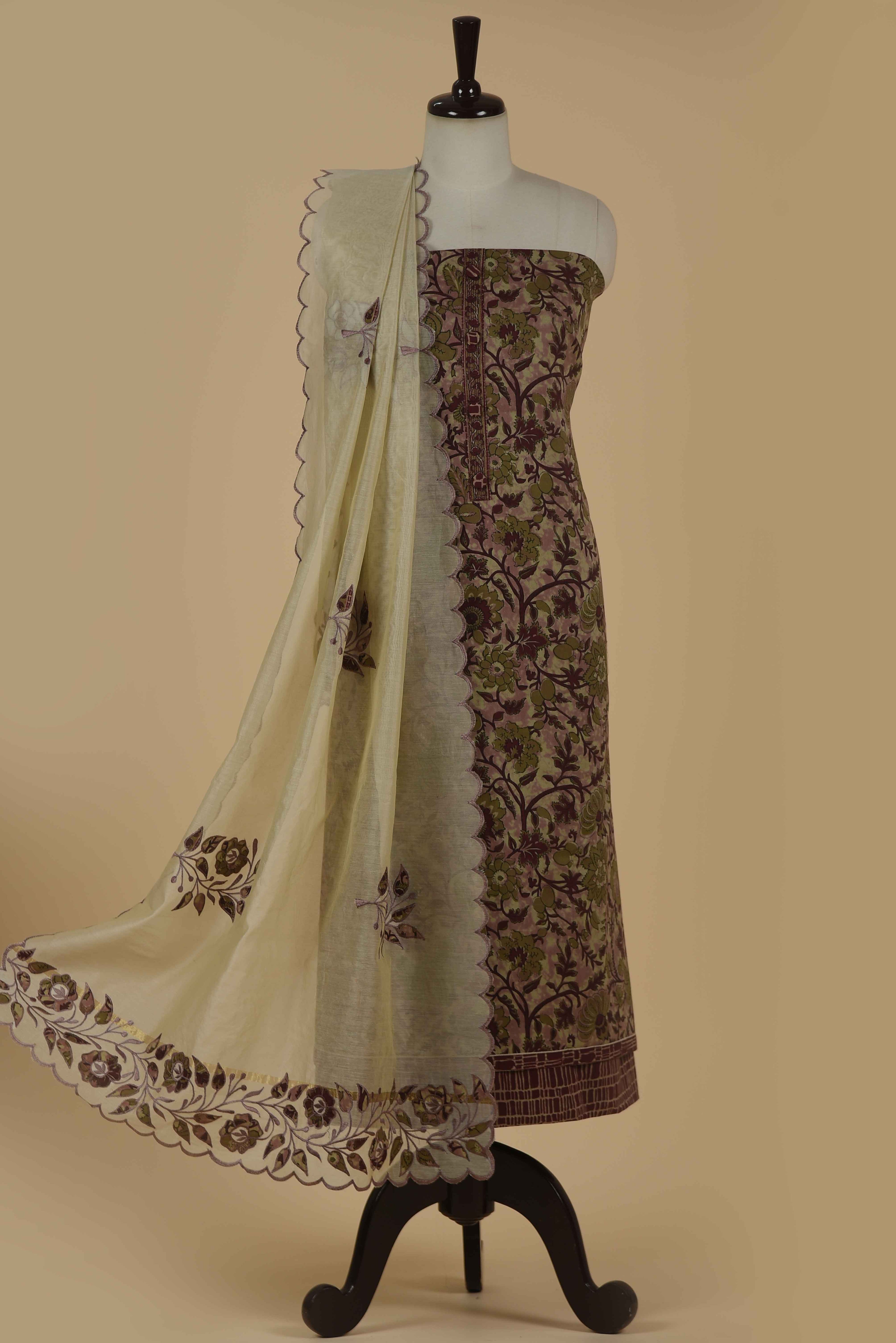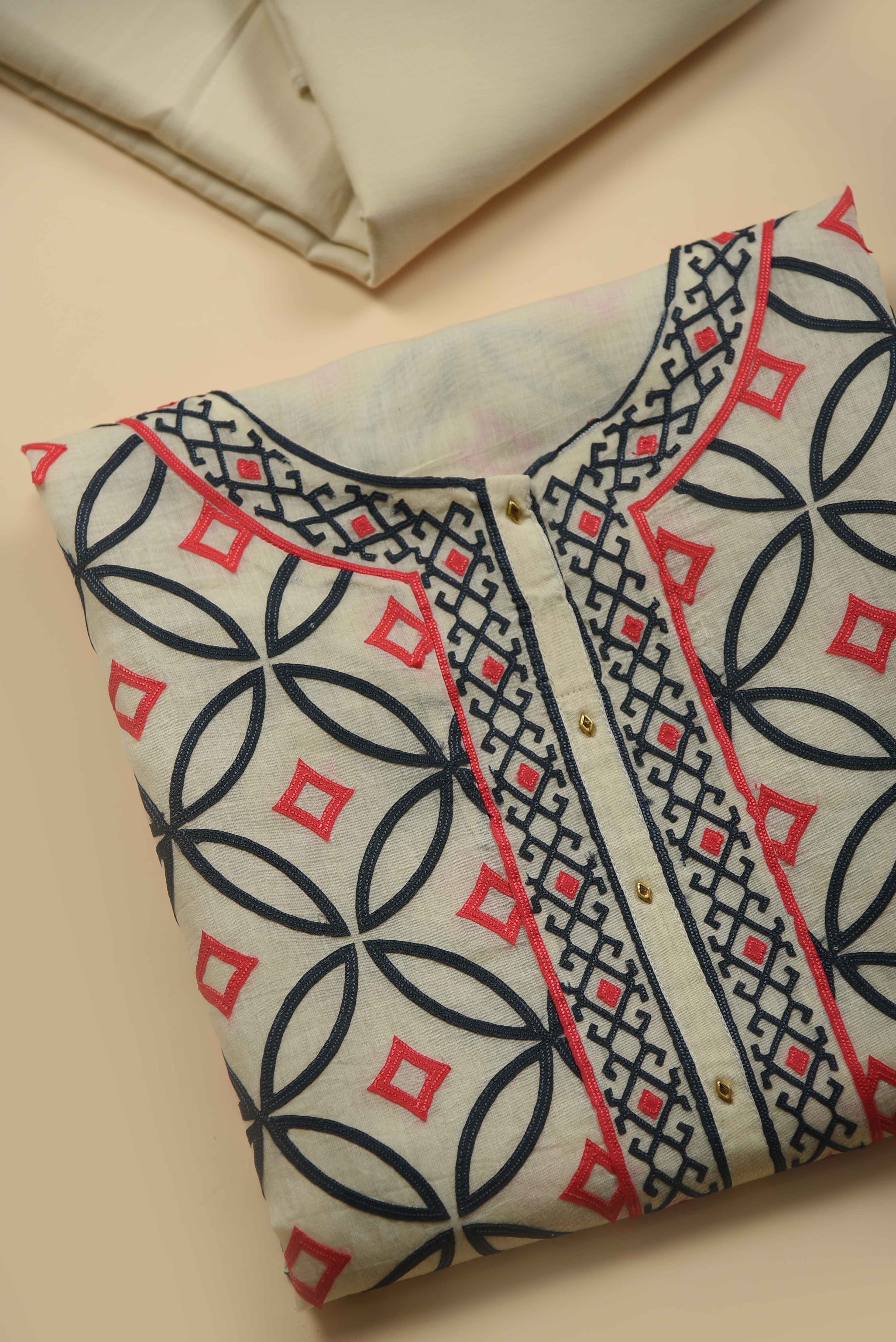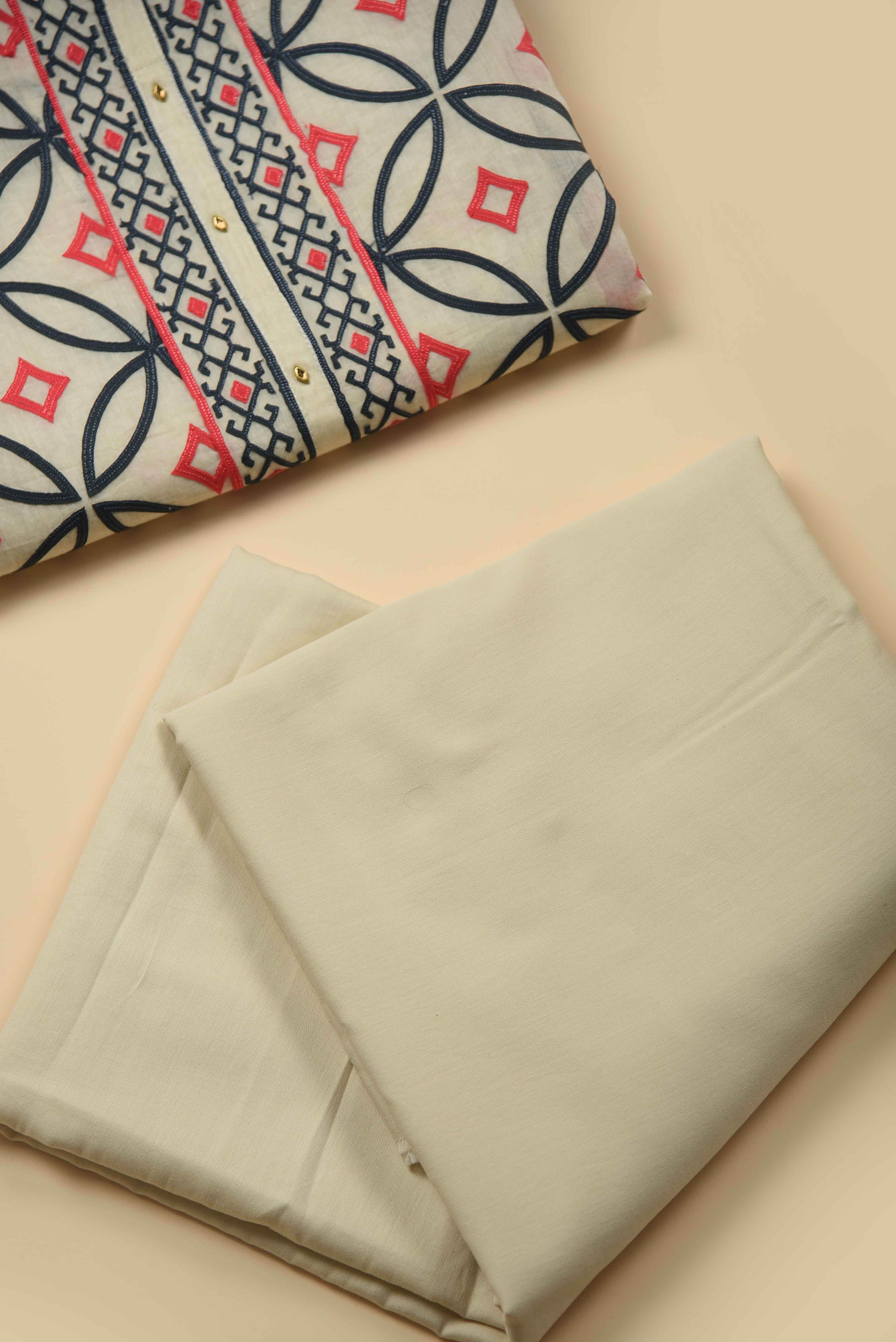 Red Mul chanderi Embroidered Unstitched Suit Fabric Set With Mul Chanderi Embroidered Dupatta