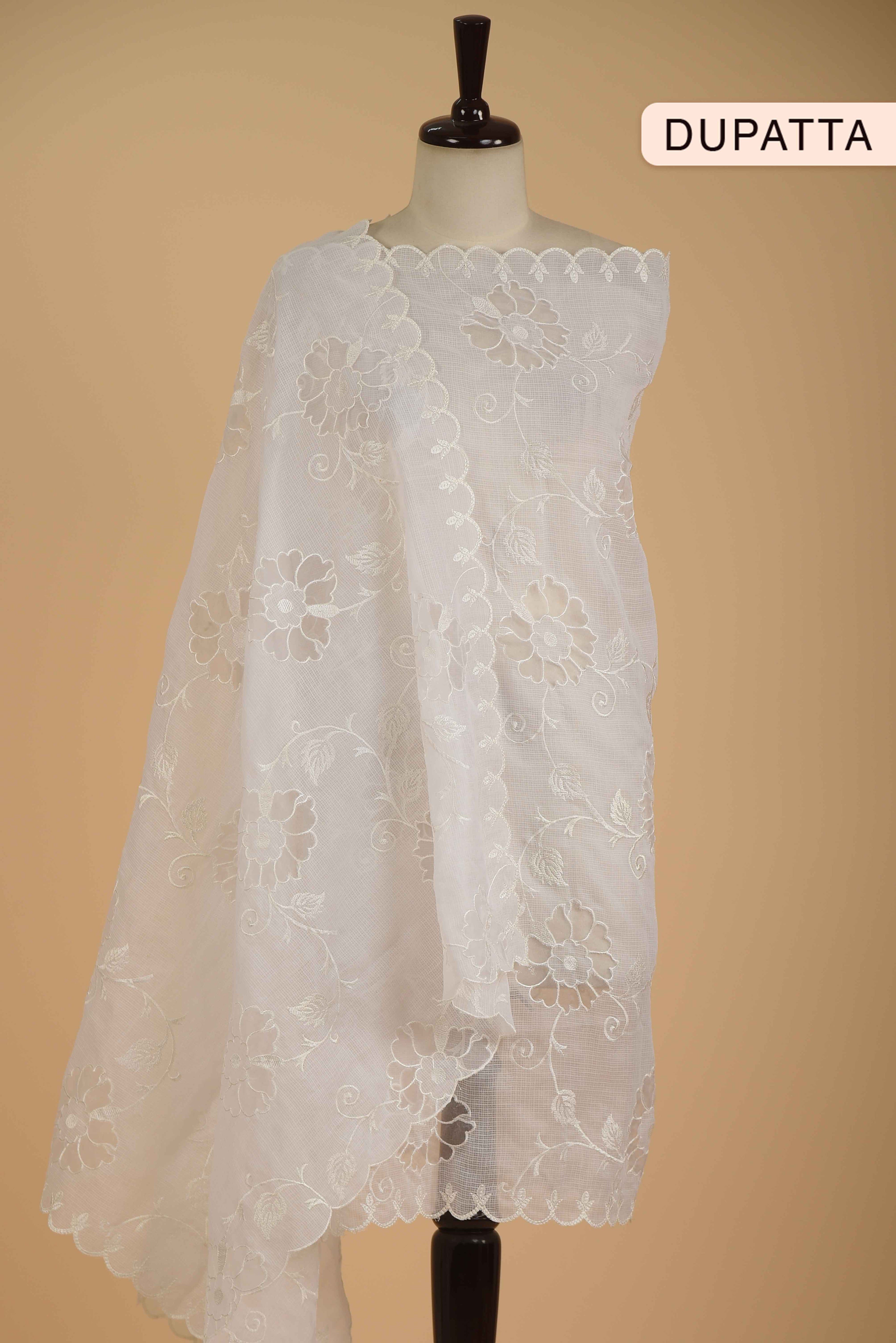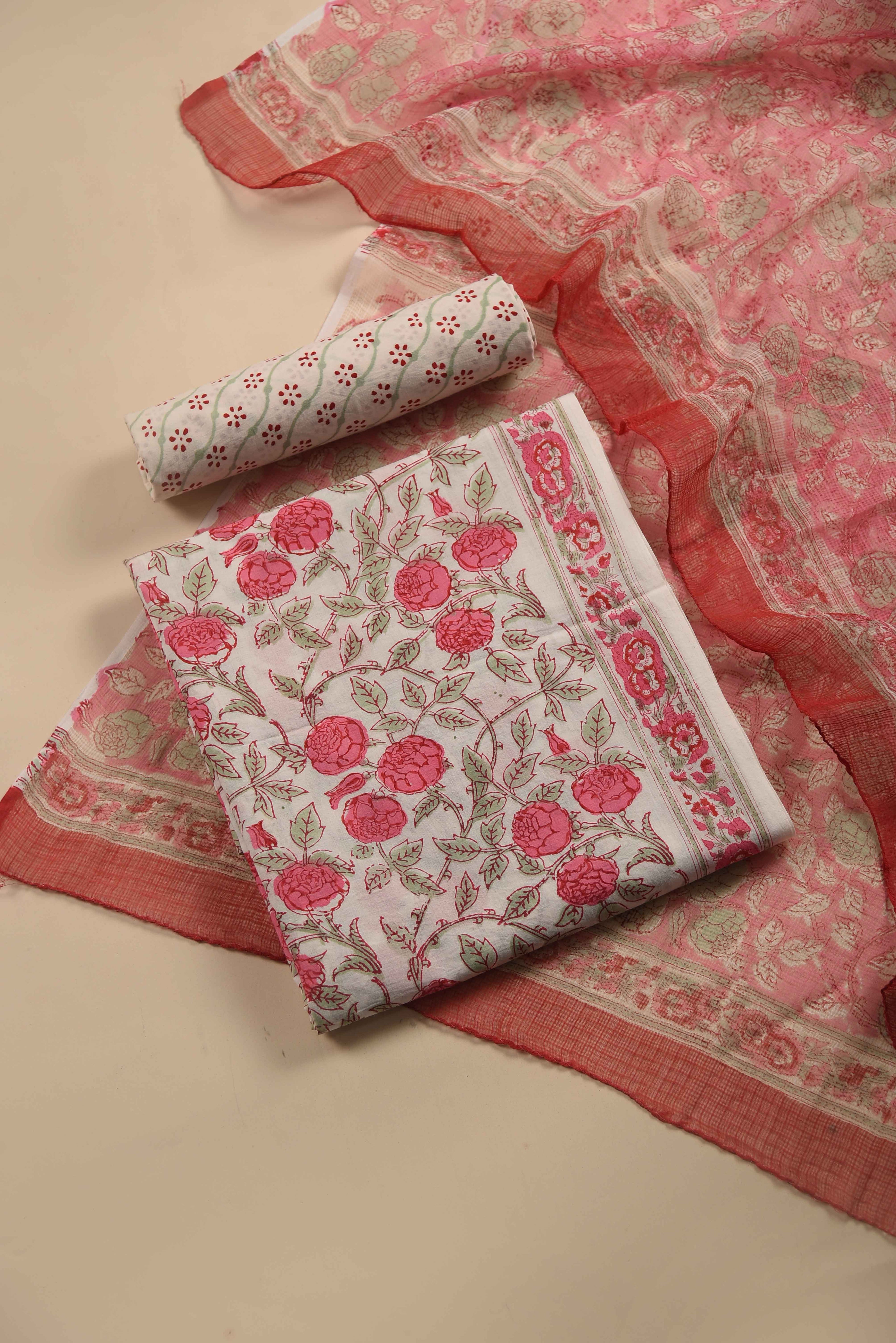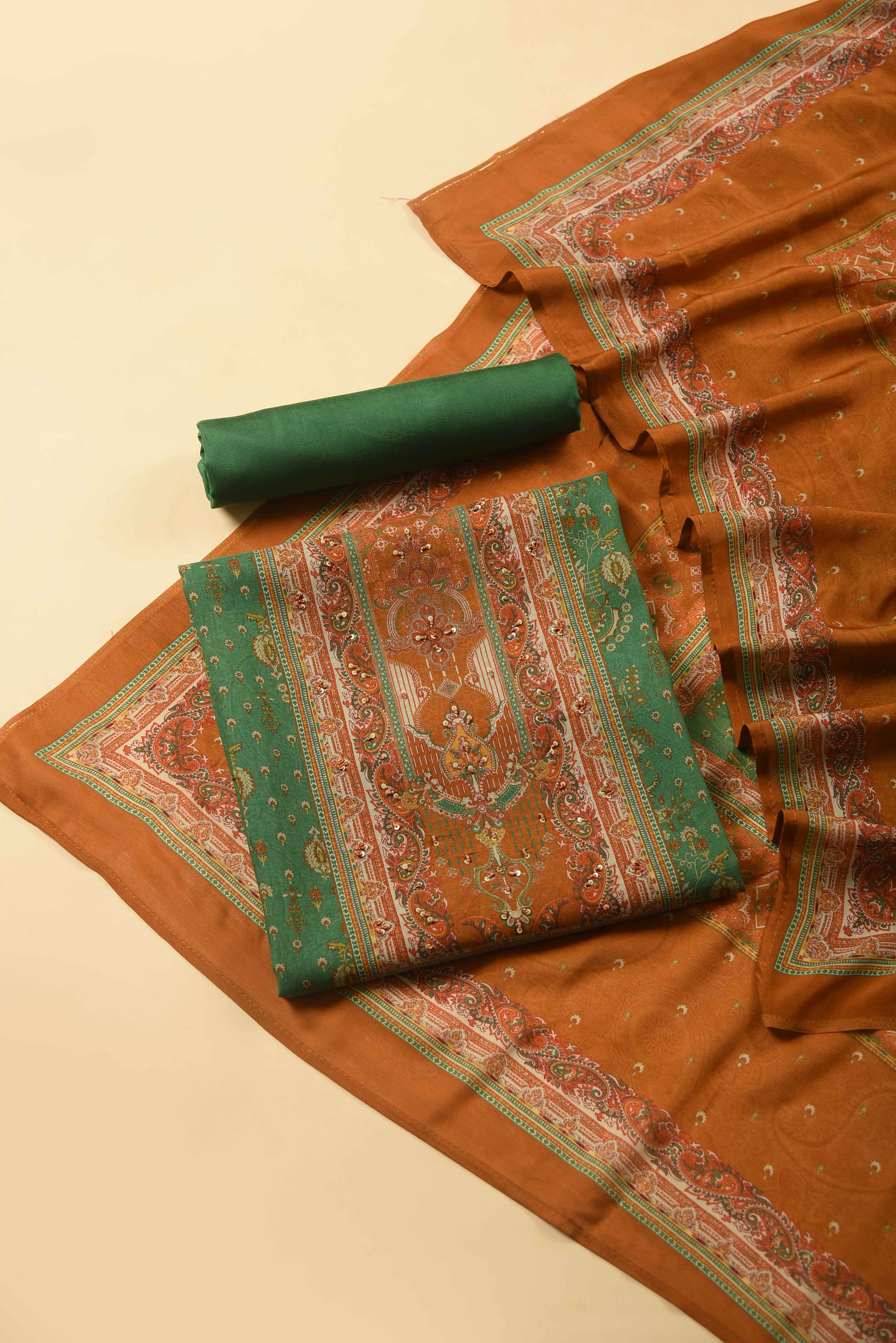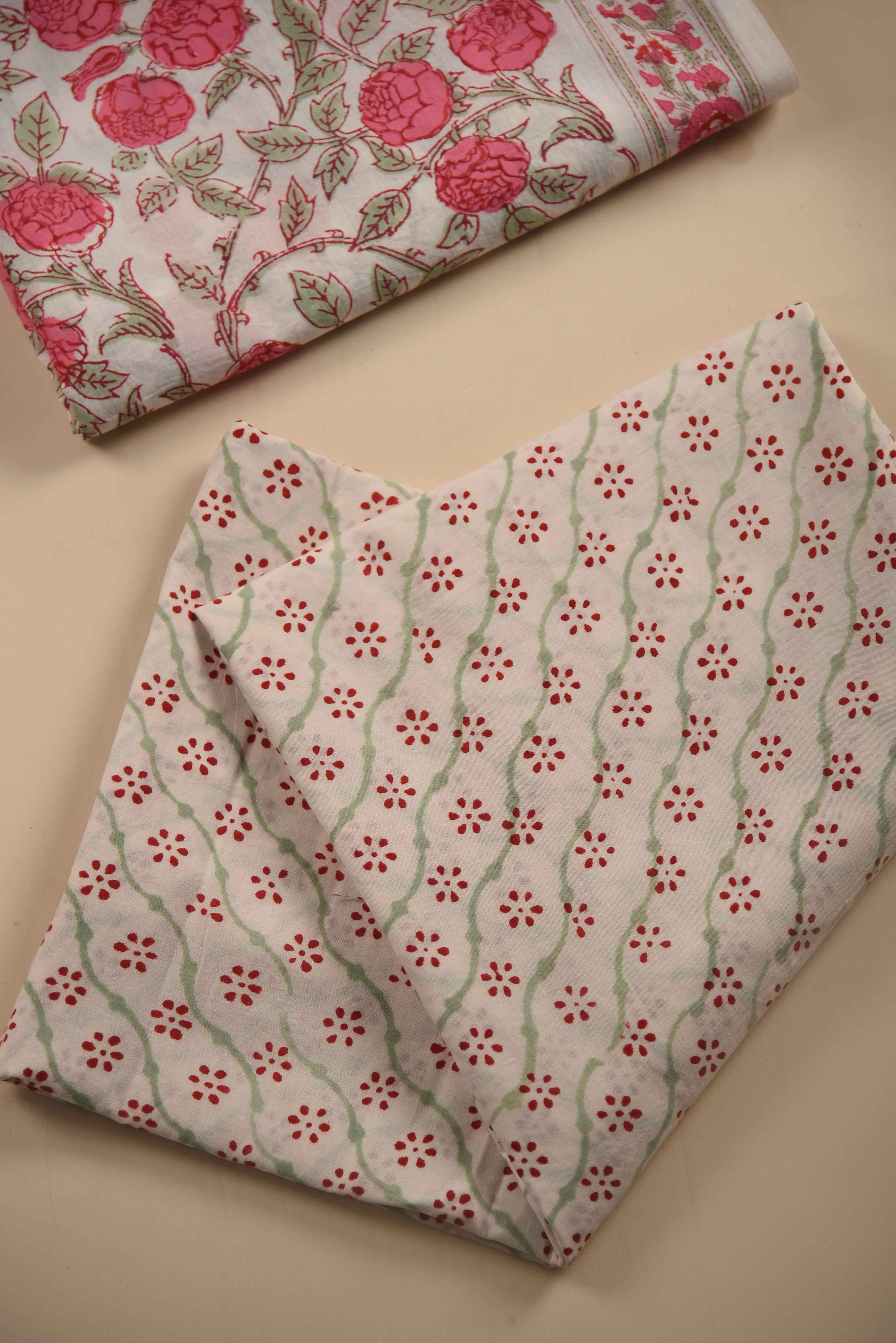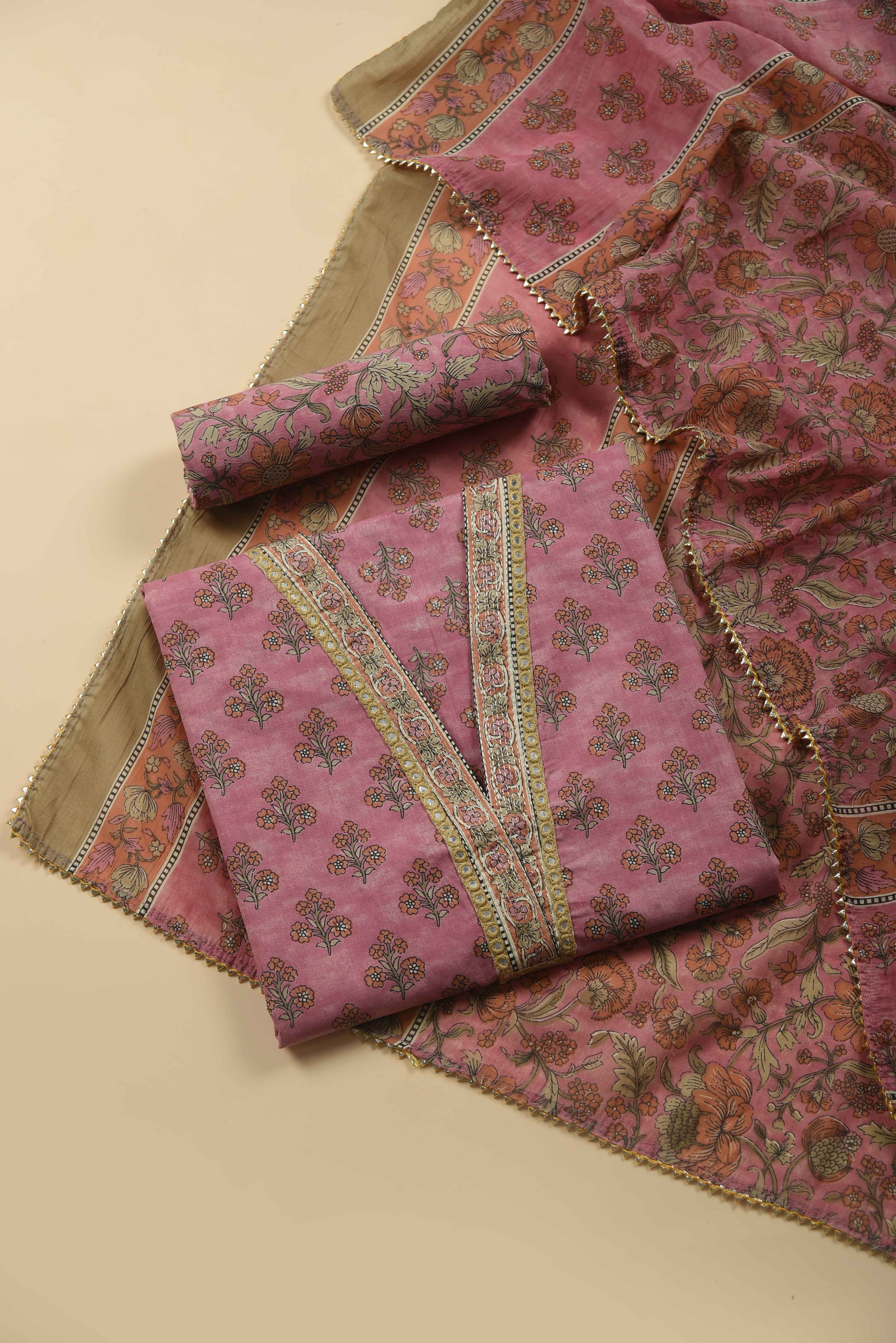 Red Mul chanderi Embroidered Unstitched Suit Fabric Set With Mul Chanderi Embroidered Dupatta