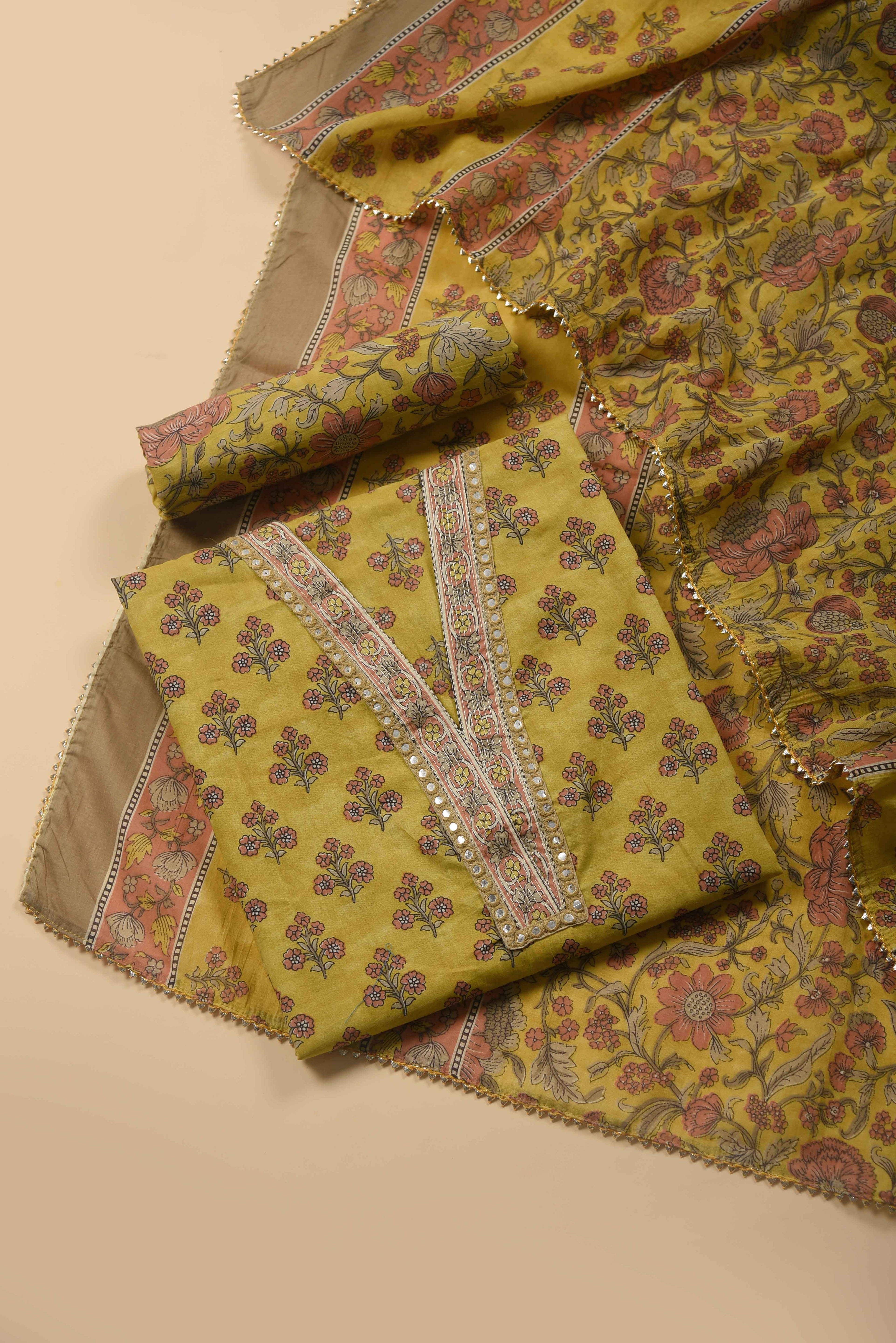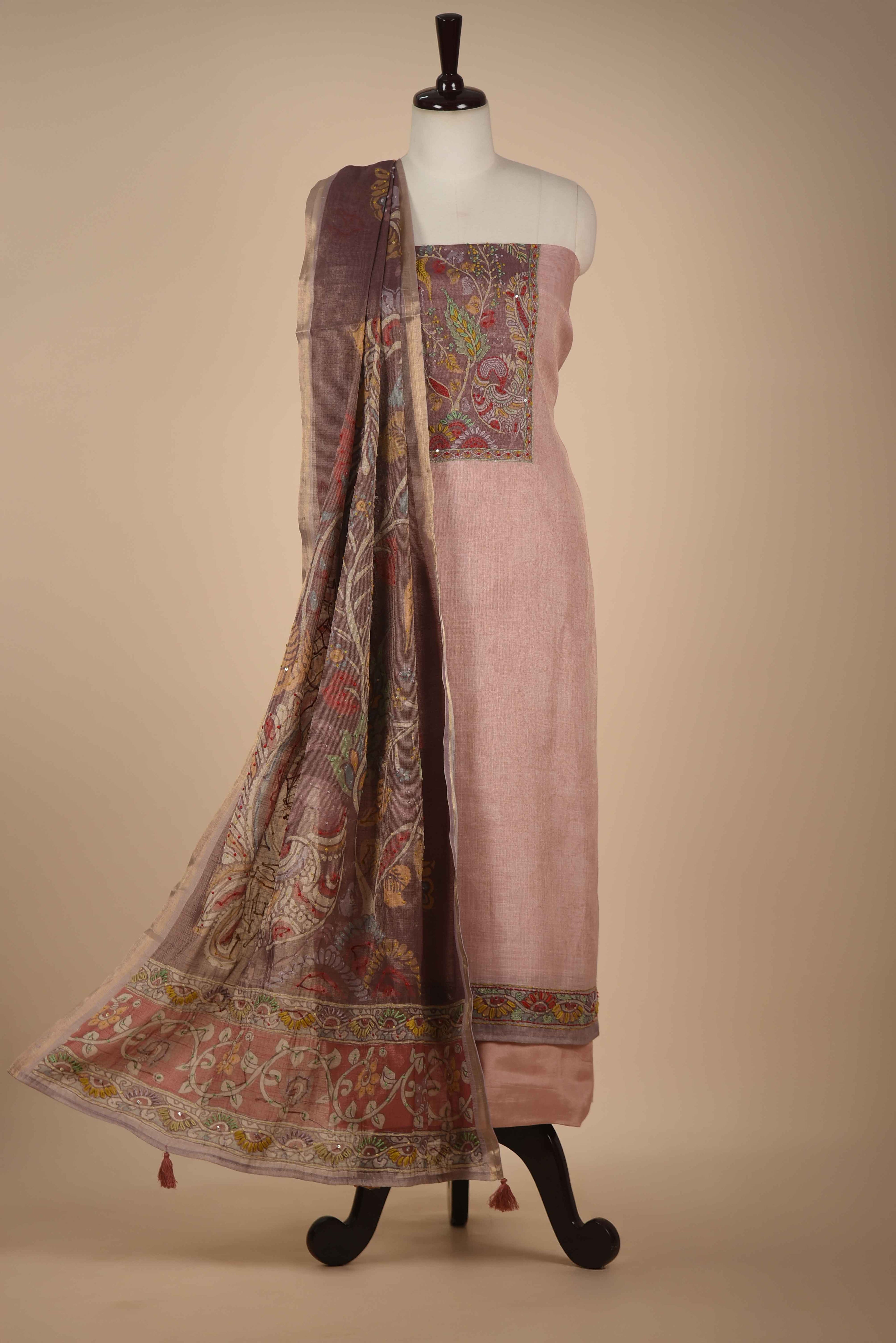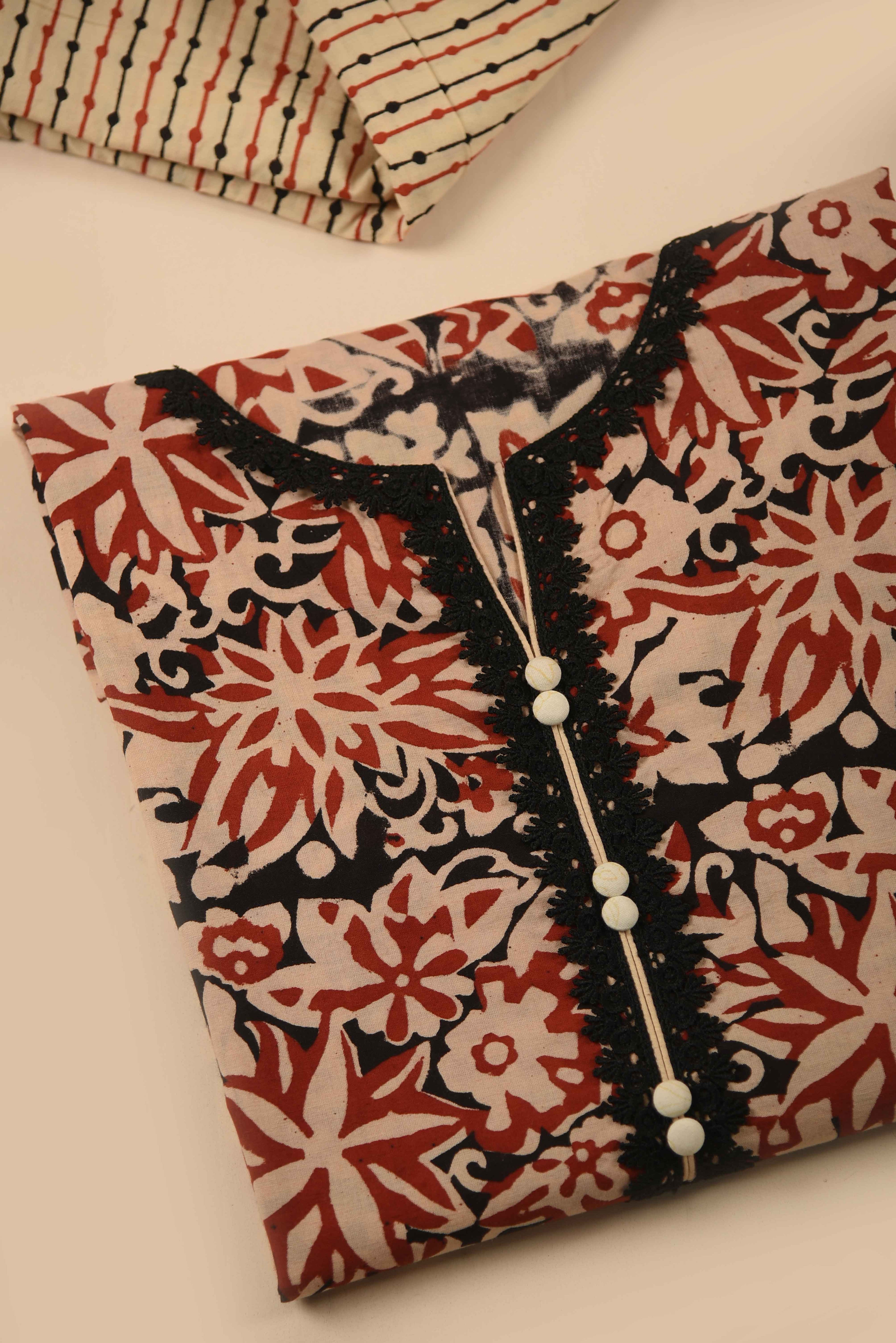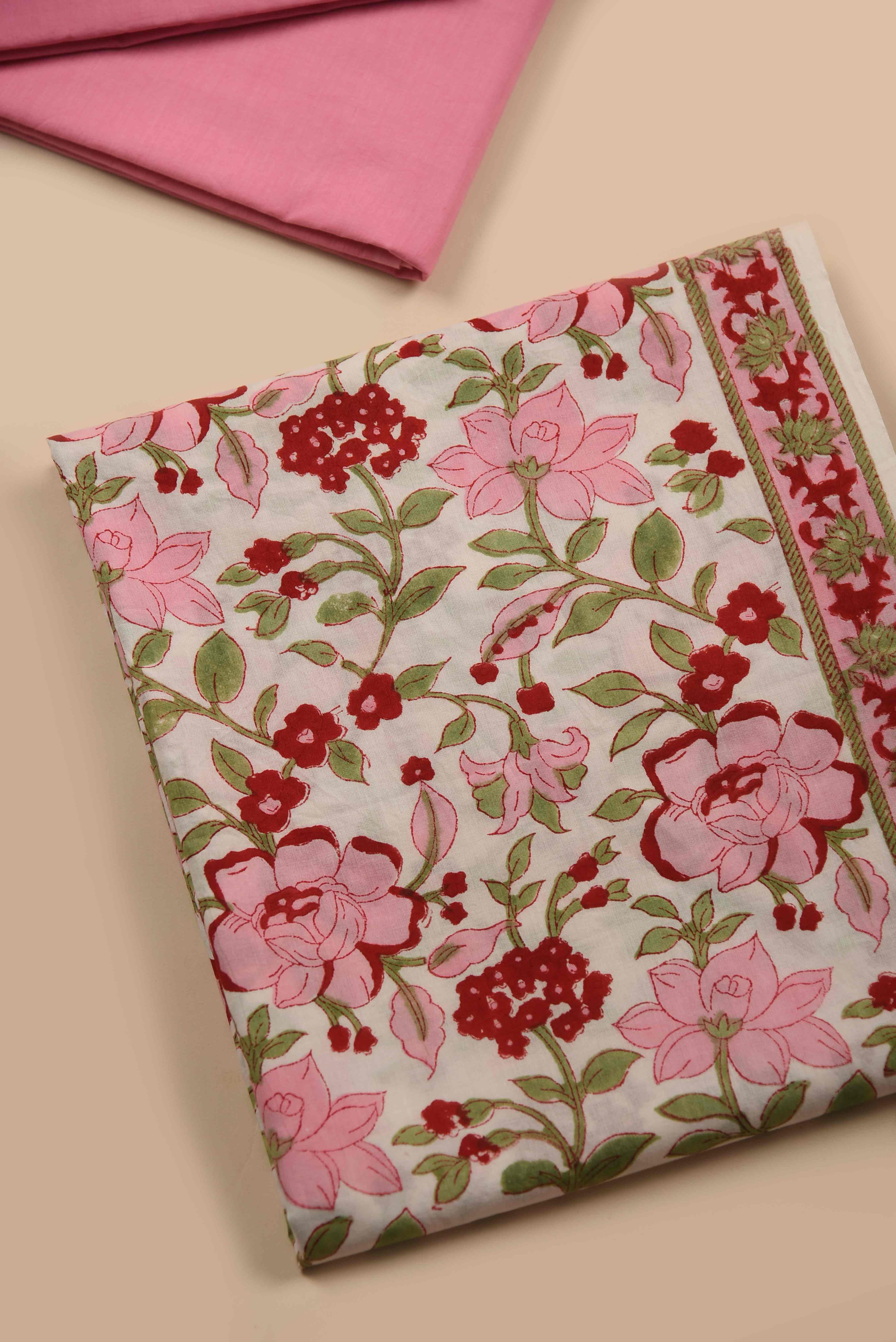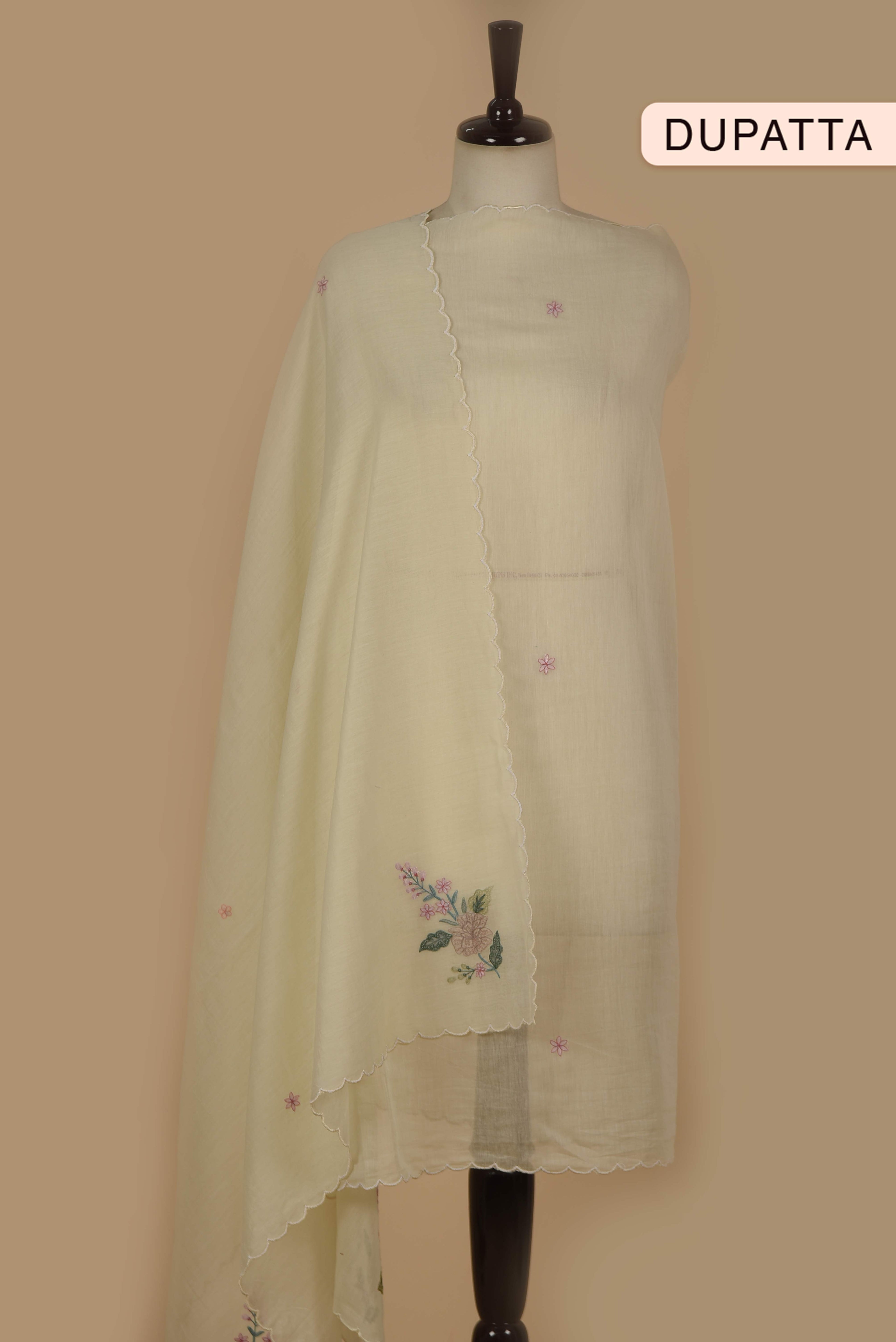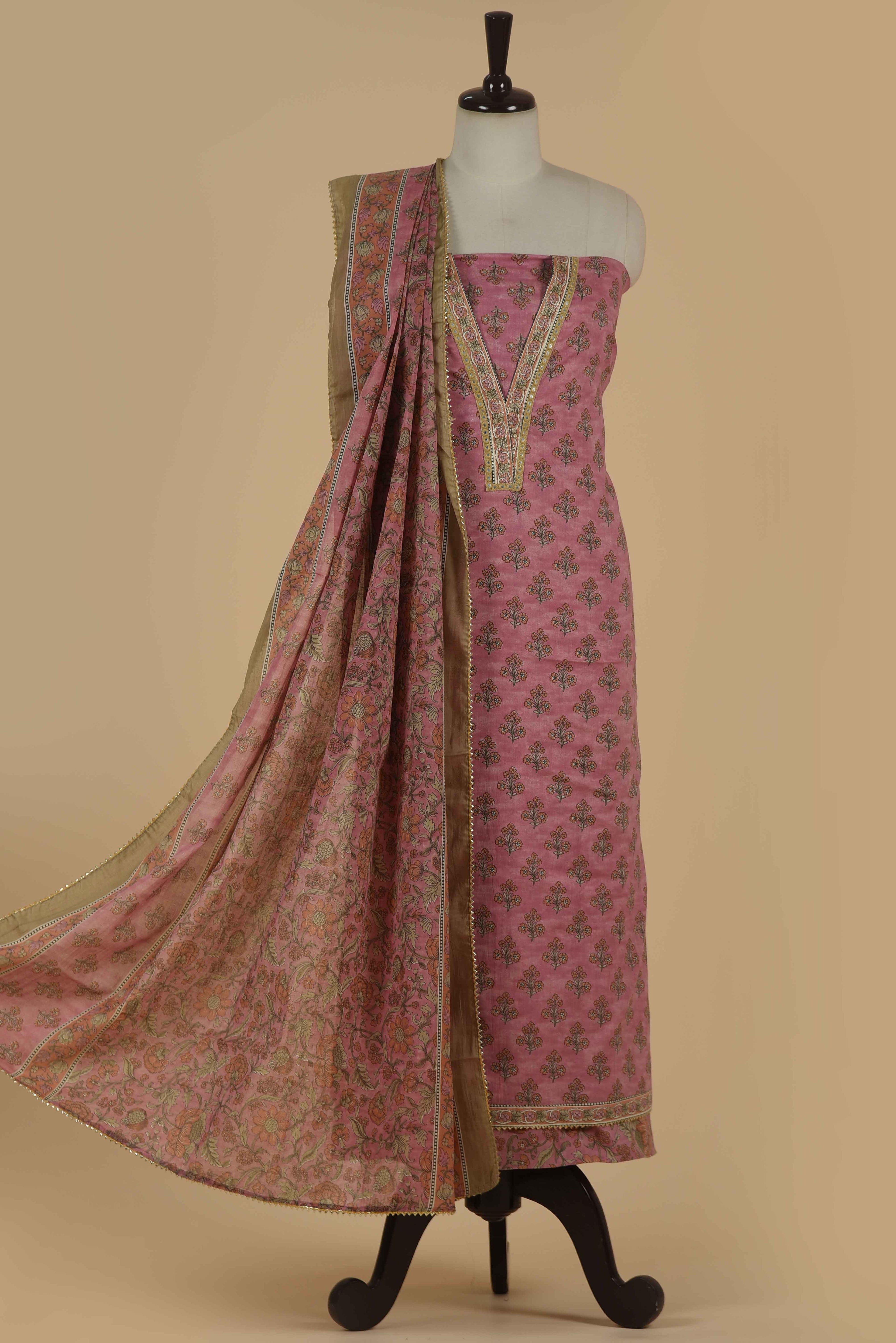 Red Mul chanderi Embroidered Unstitched Suit Fabric Set With Mul Chanderi Embroidered Dupatta