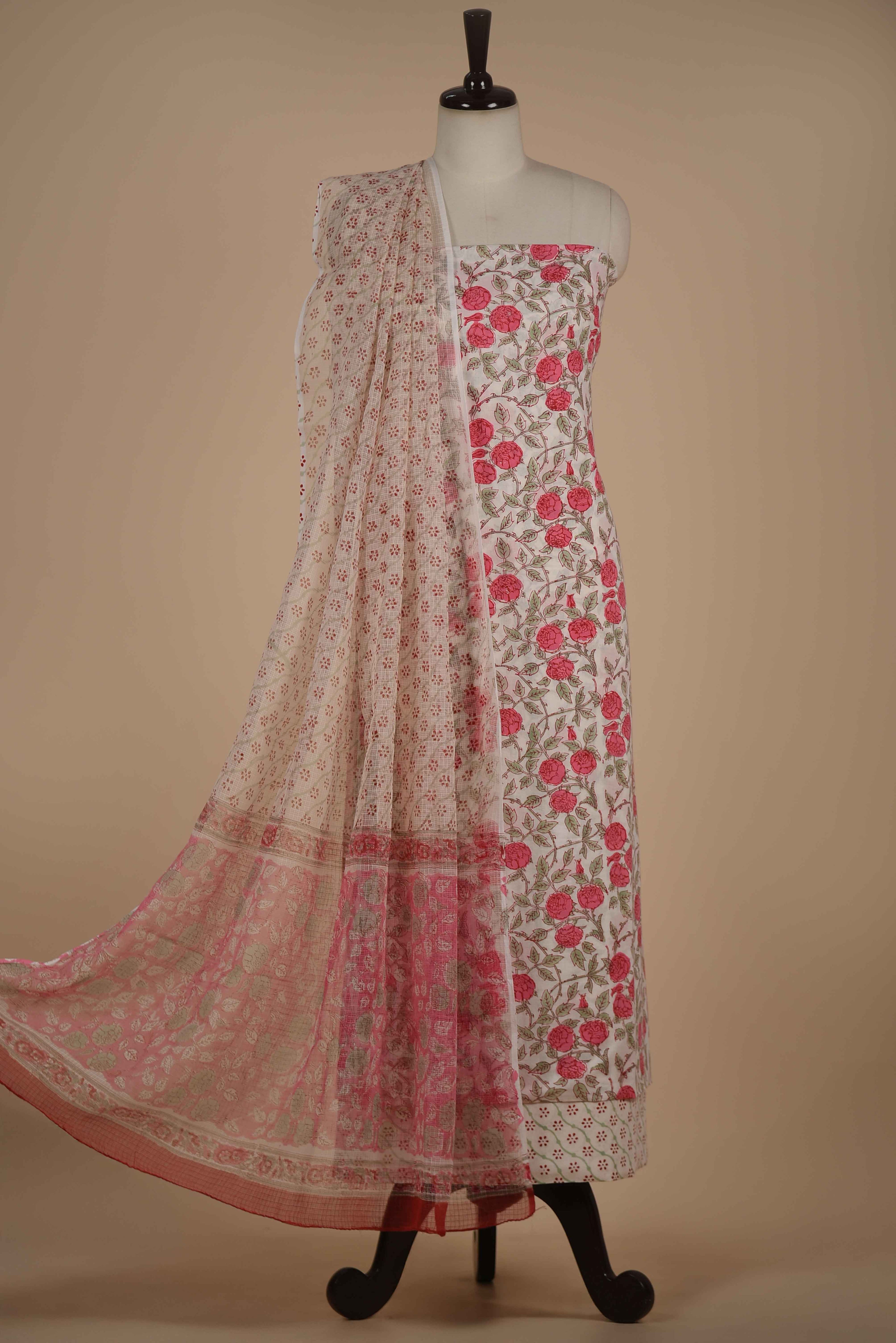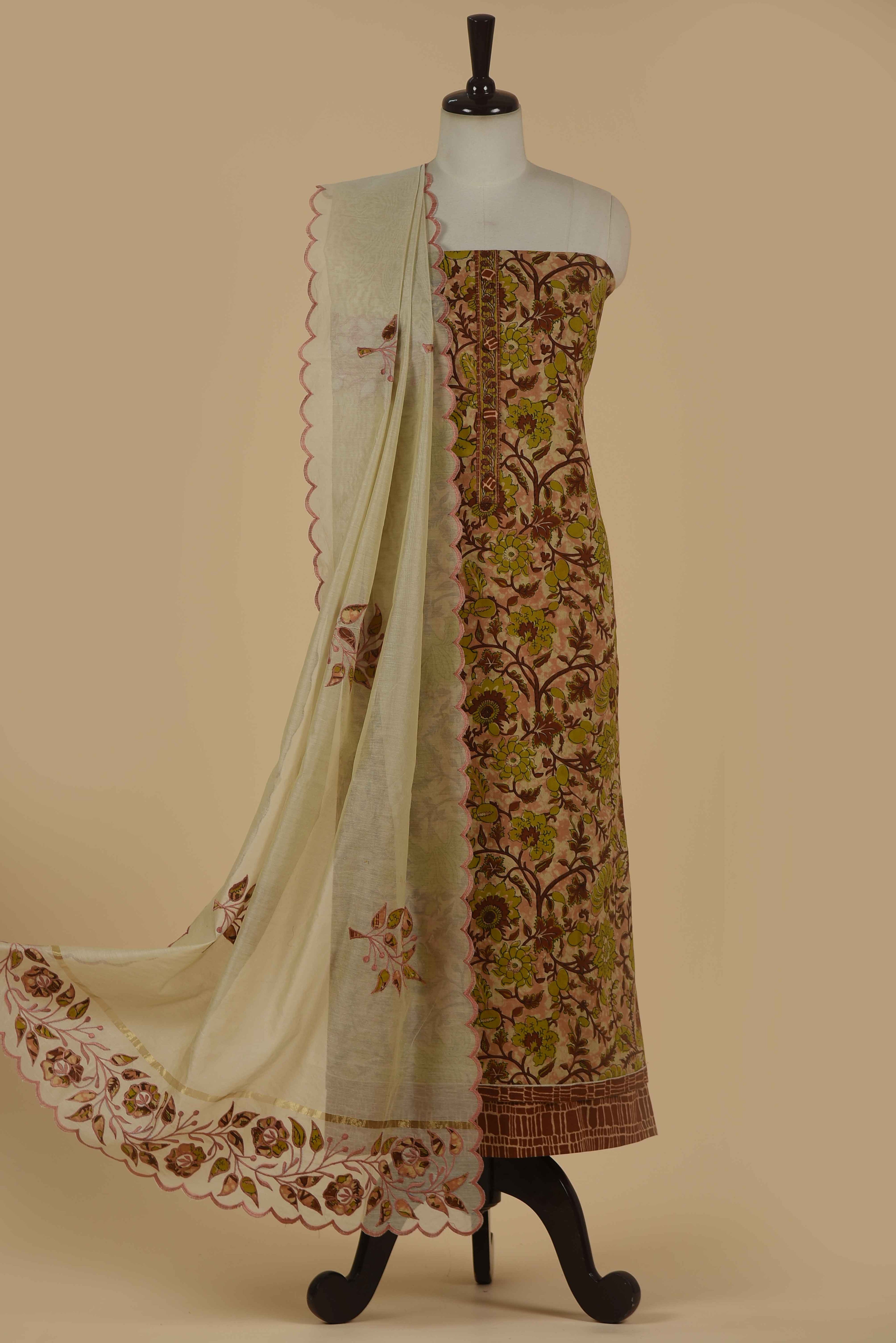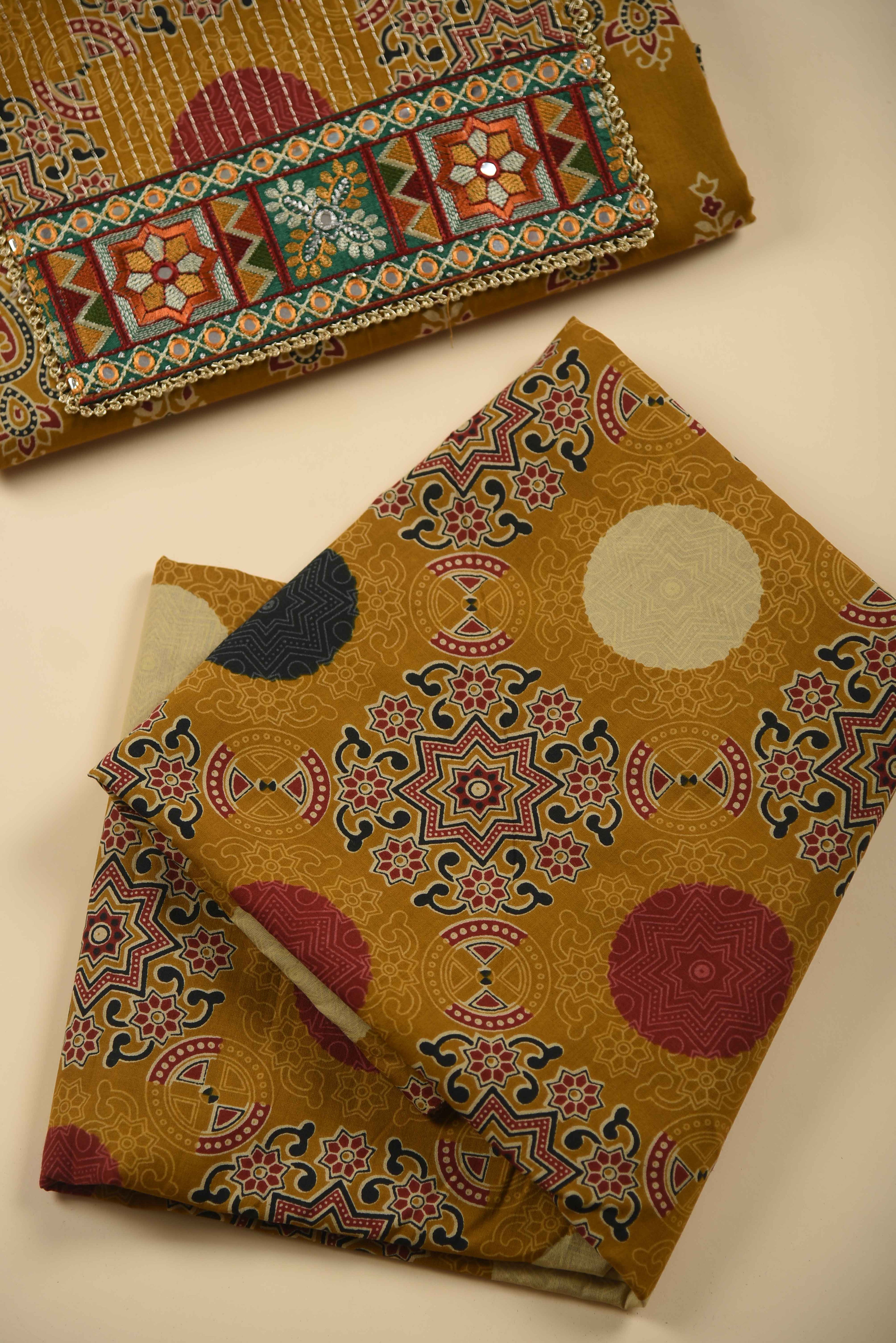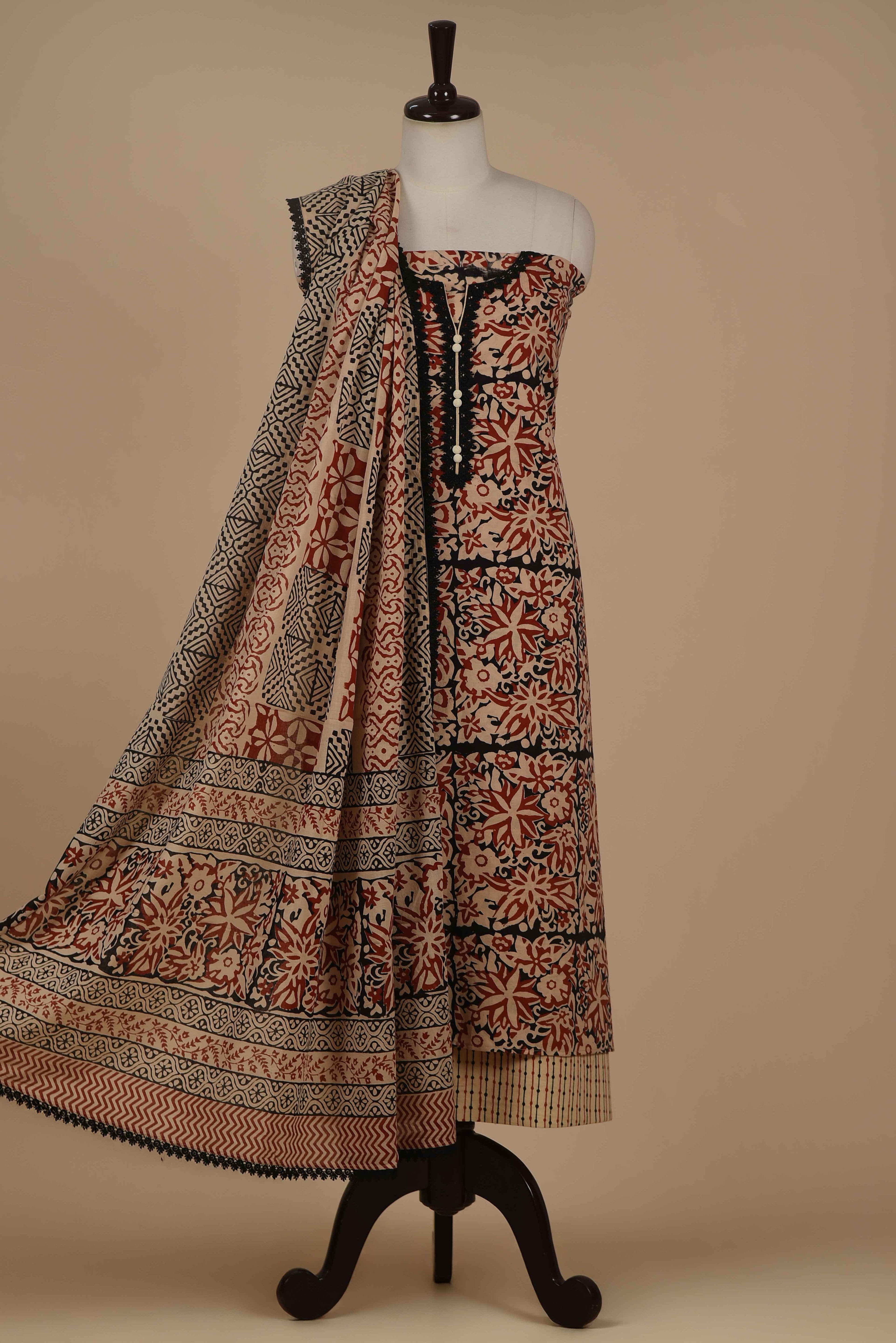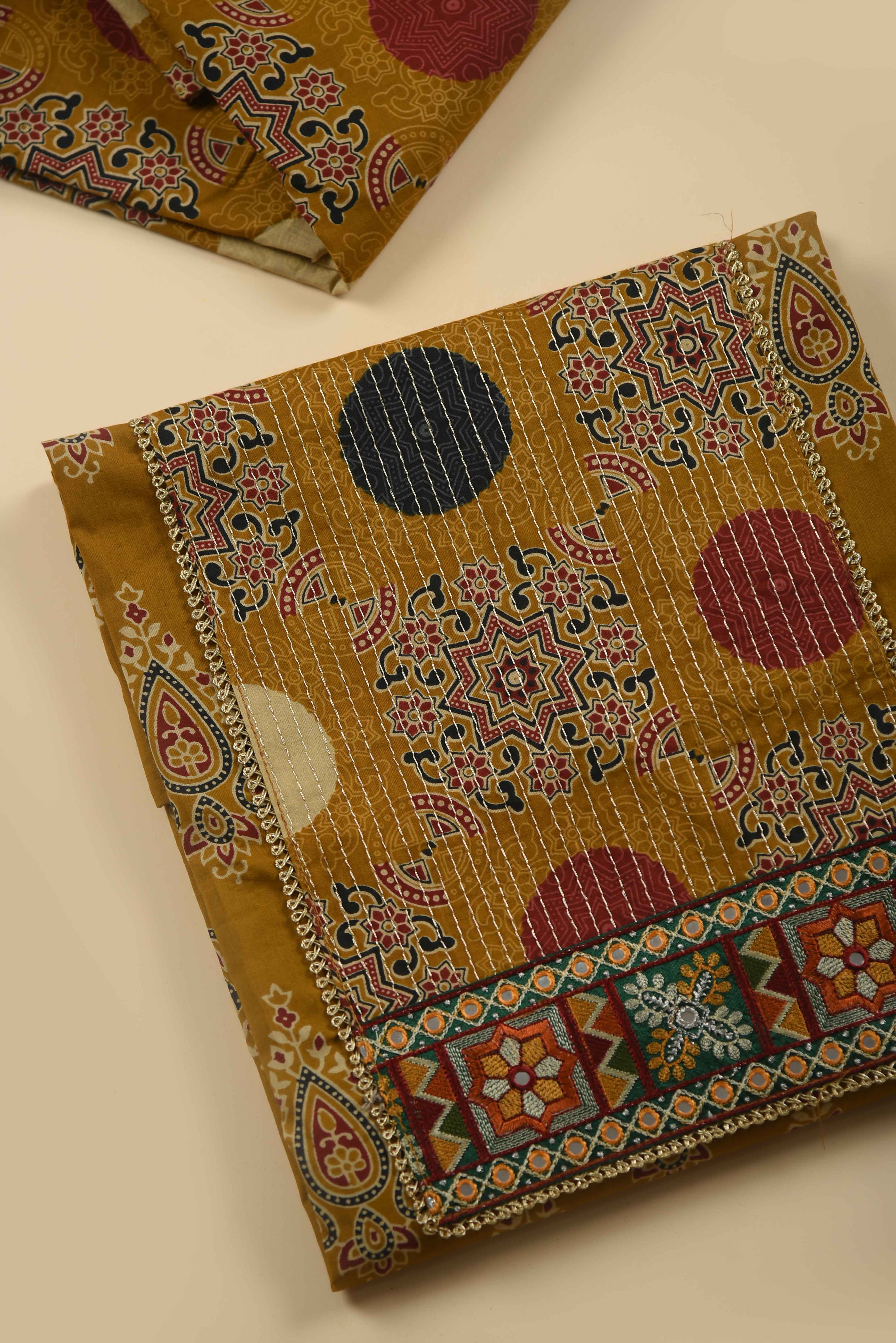Red Mul chanderi Embroidered Unstitched Suit Fabric Set With Mul Chanderi Embroidered Dupatta