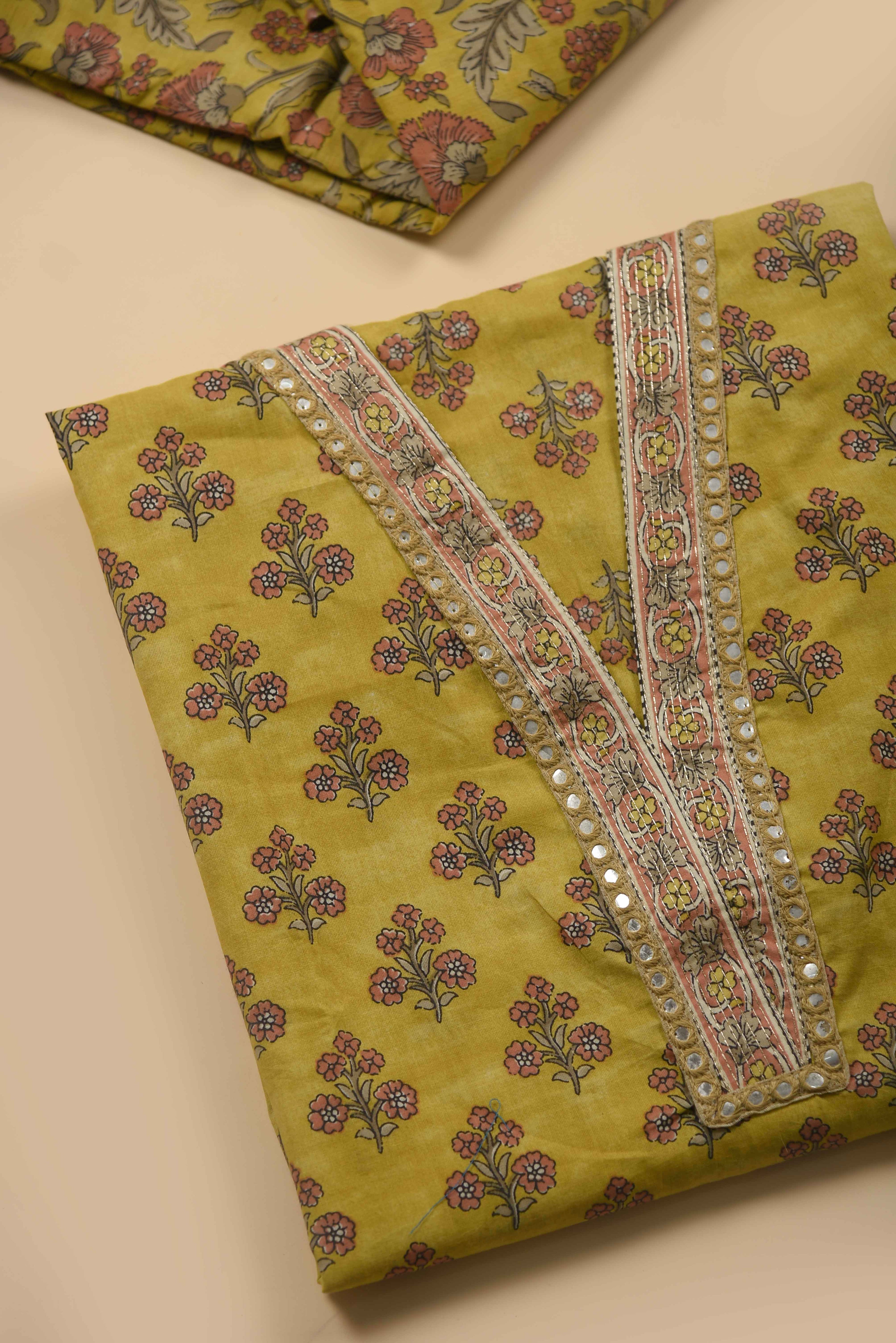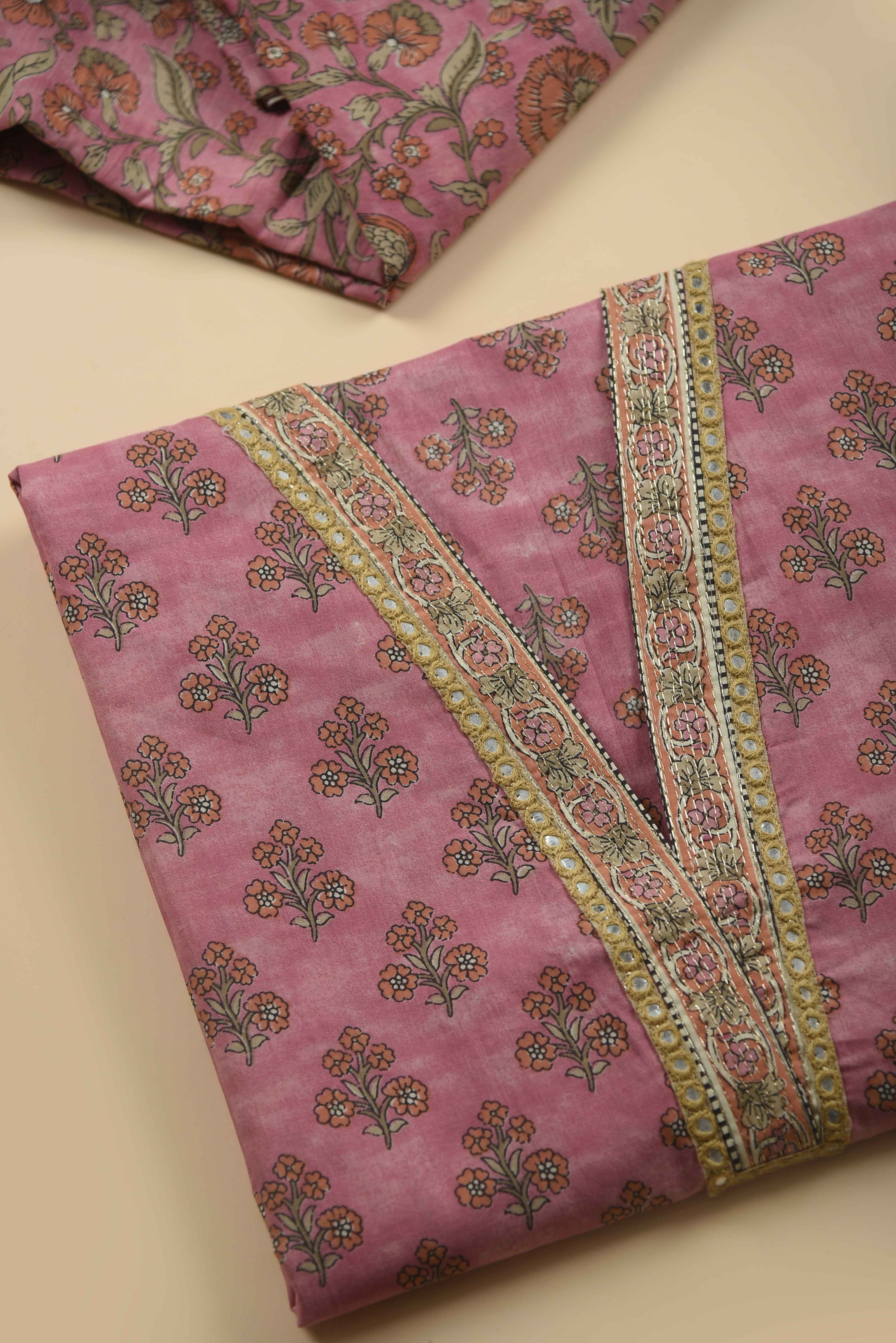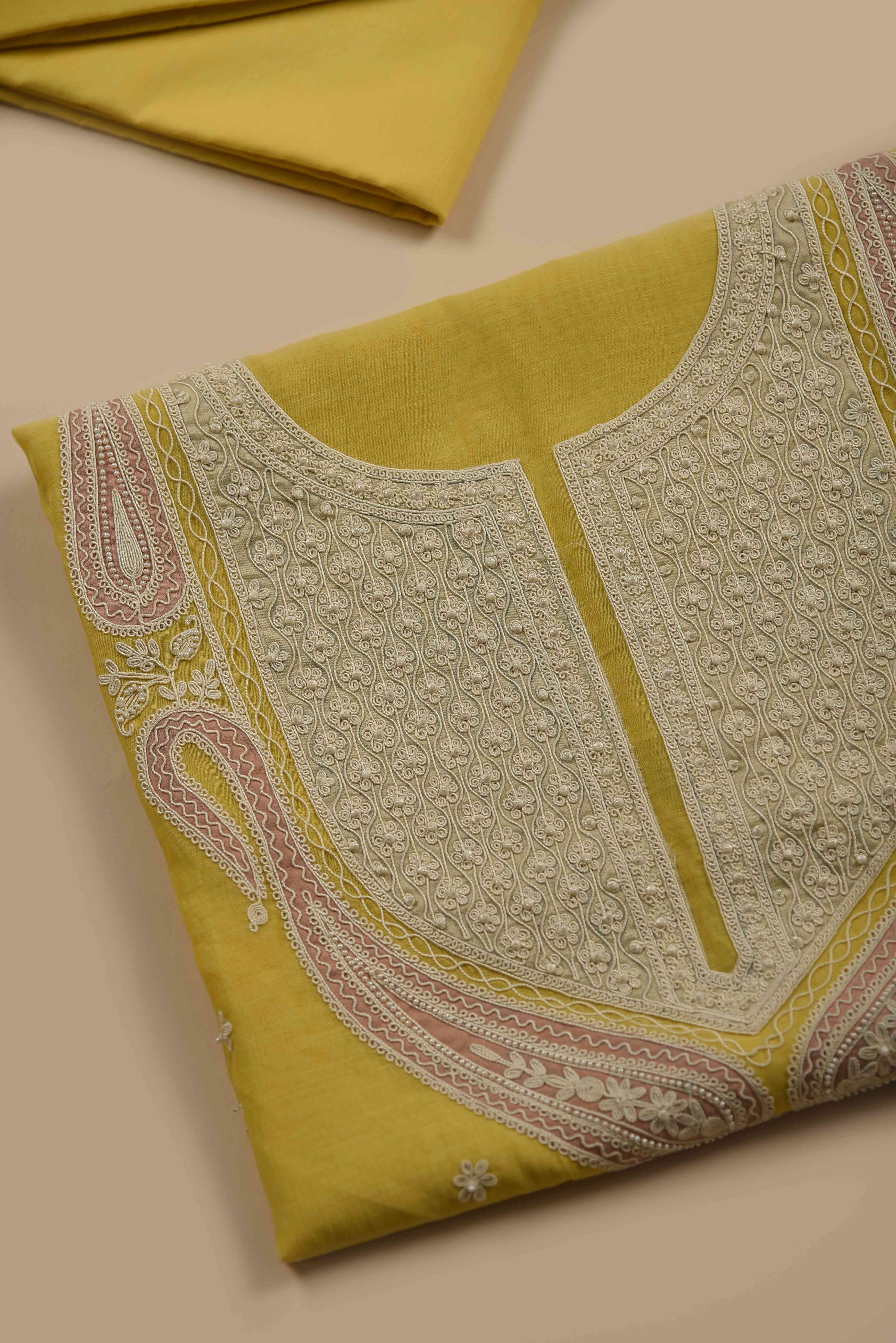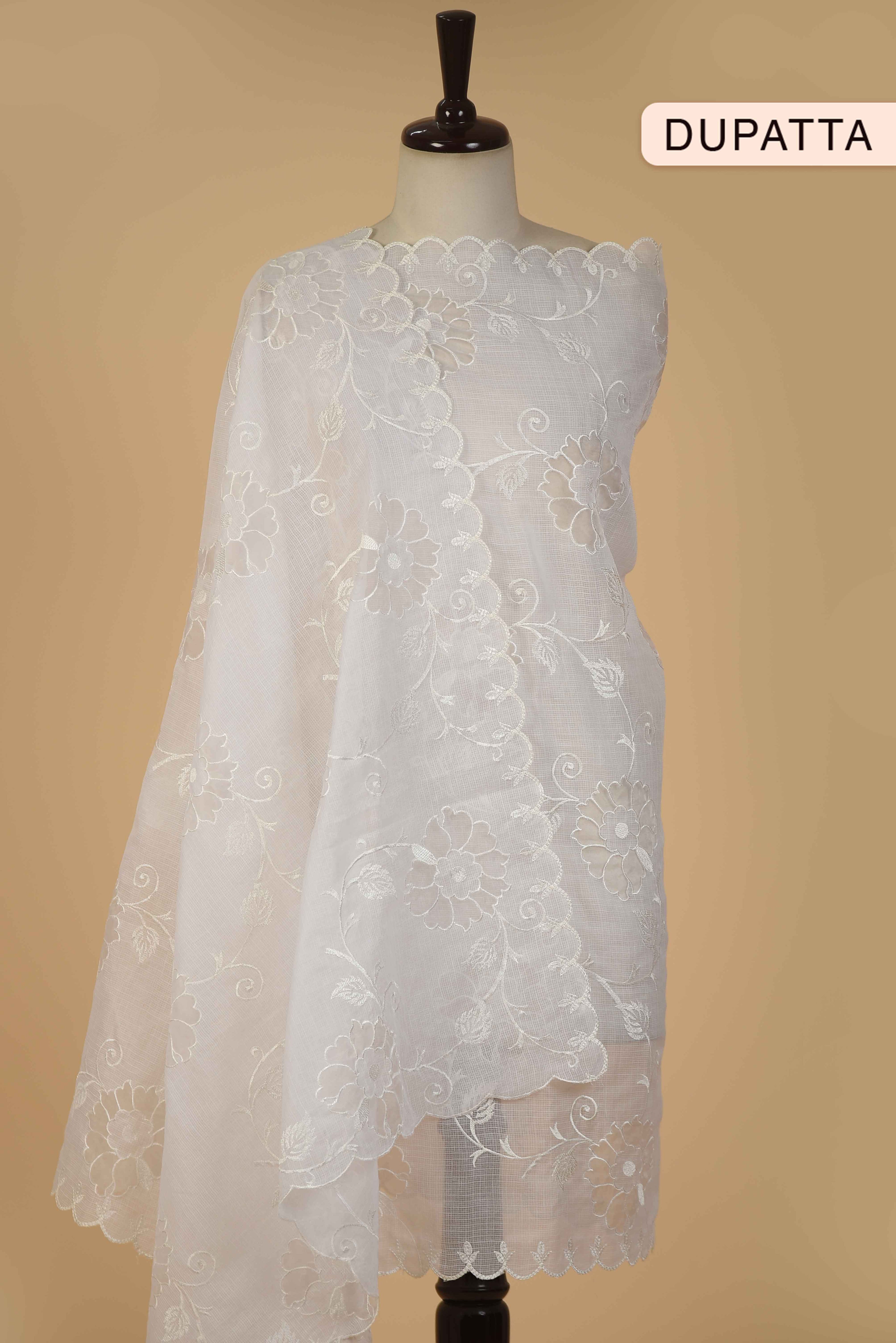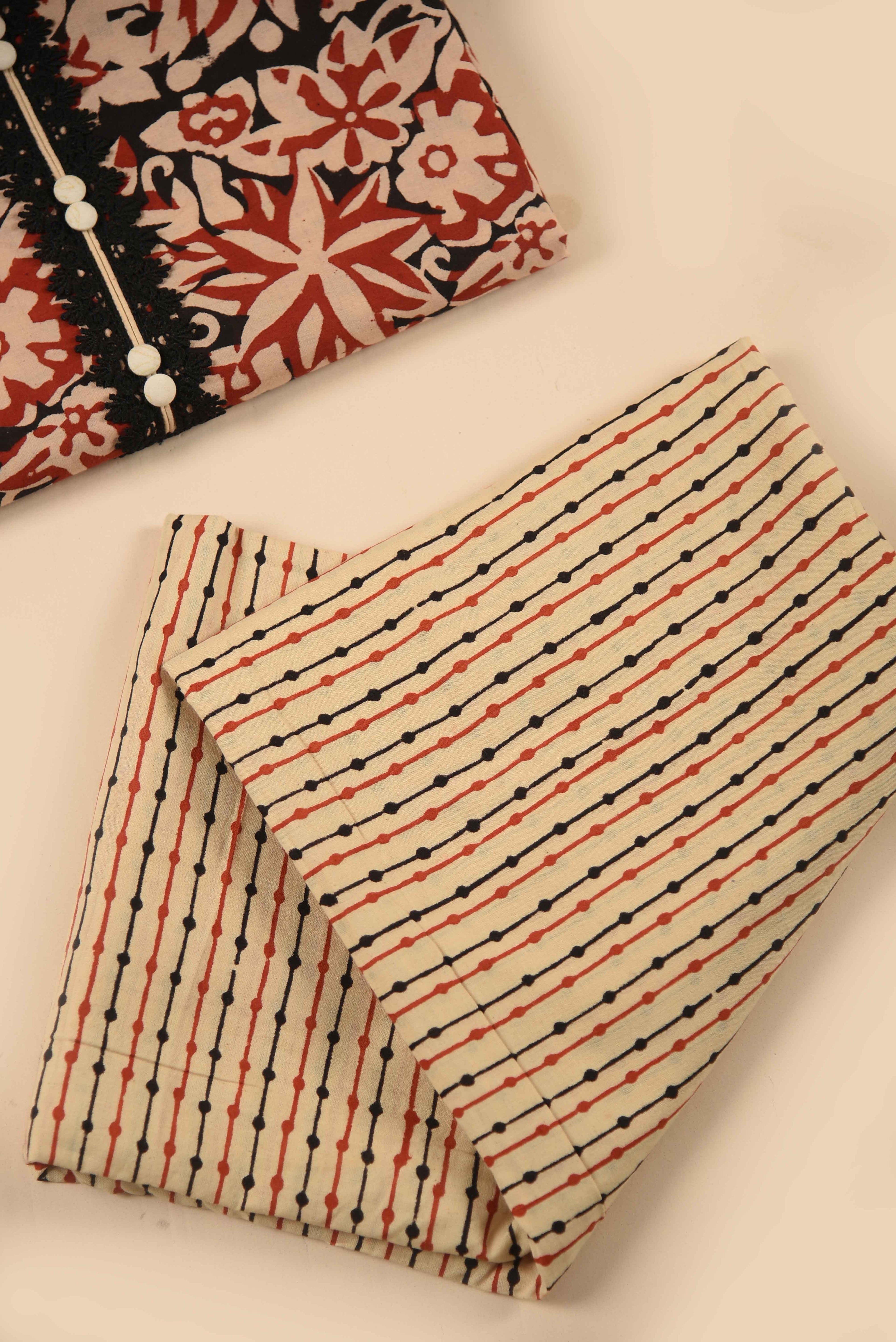 Red Mul chanderi Embroidered Unstitched Suit Fabric Set With Mul Chanderi Embroidered Dupatta