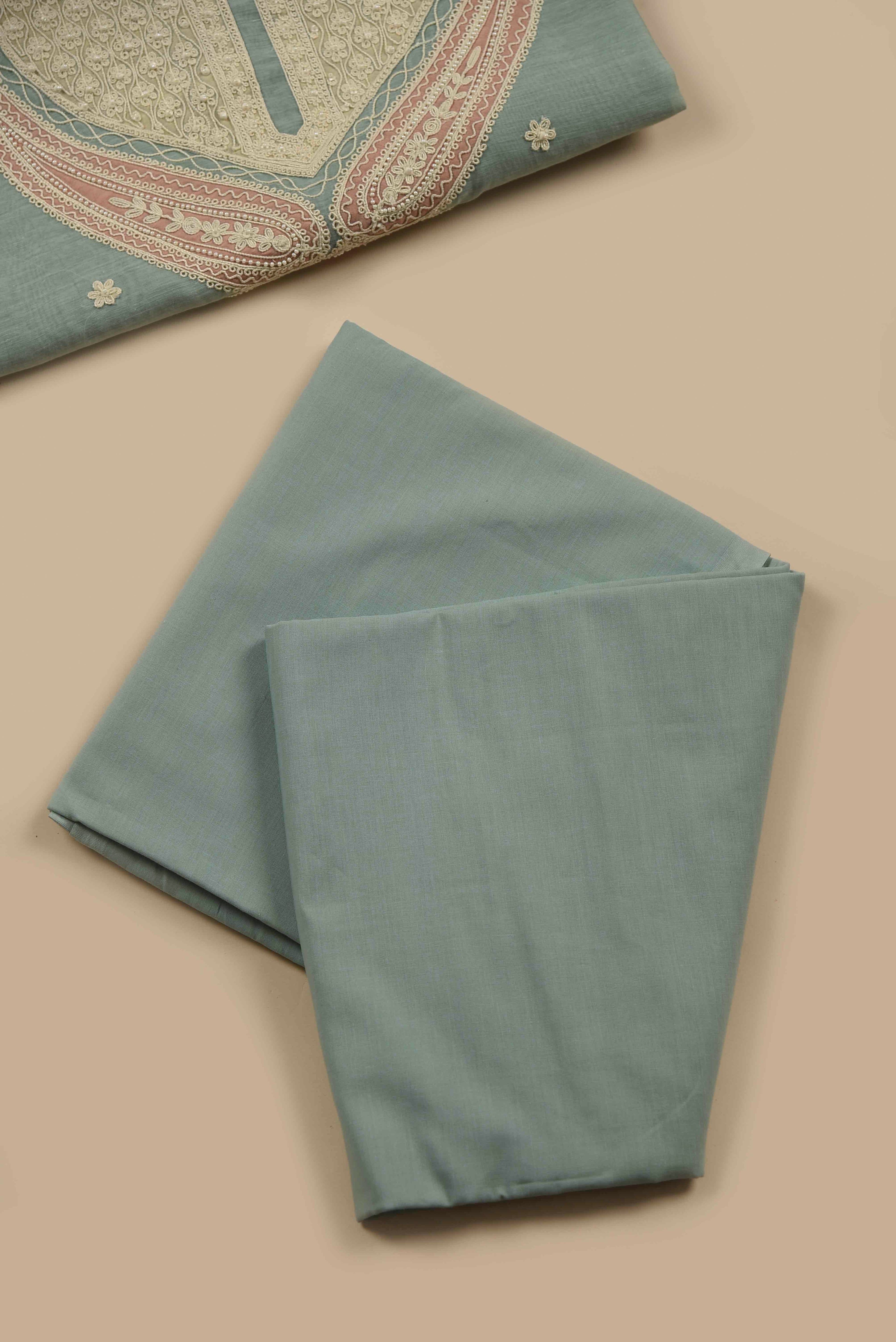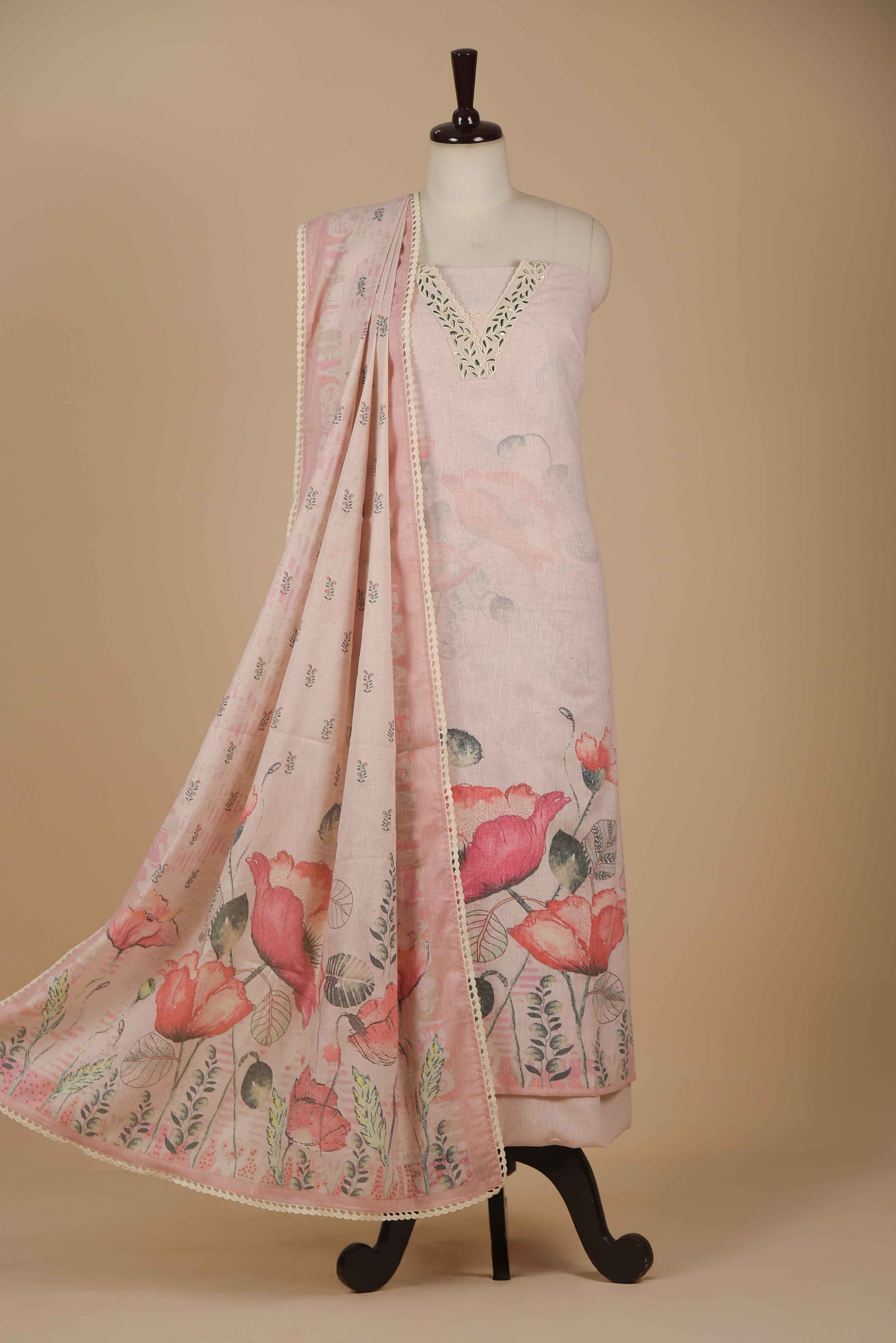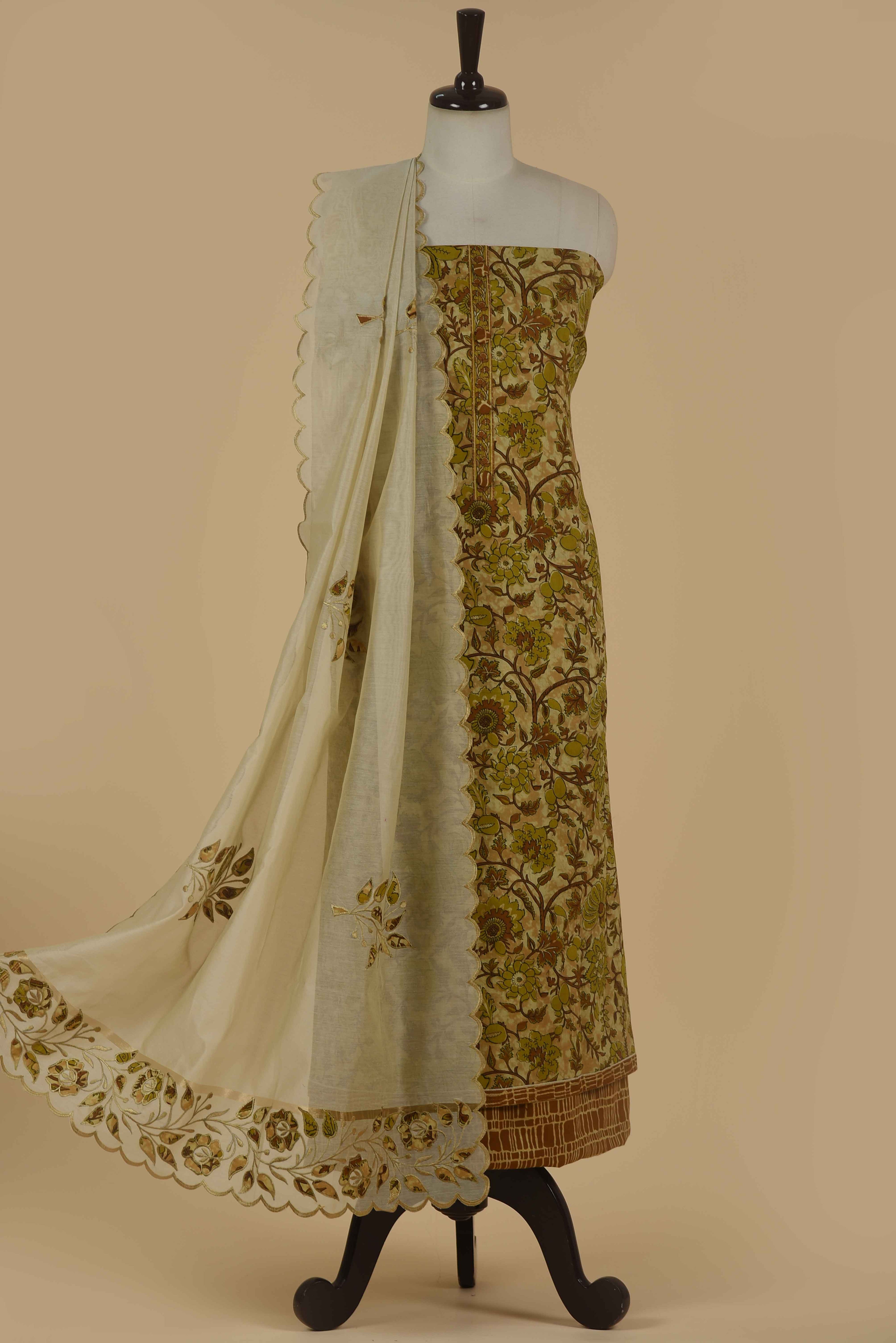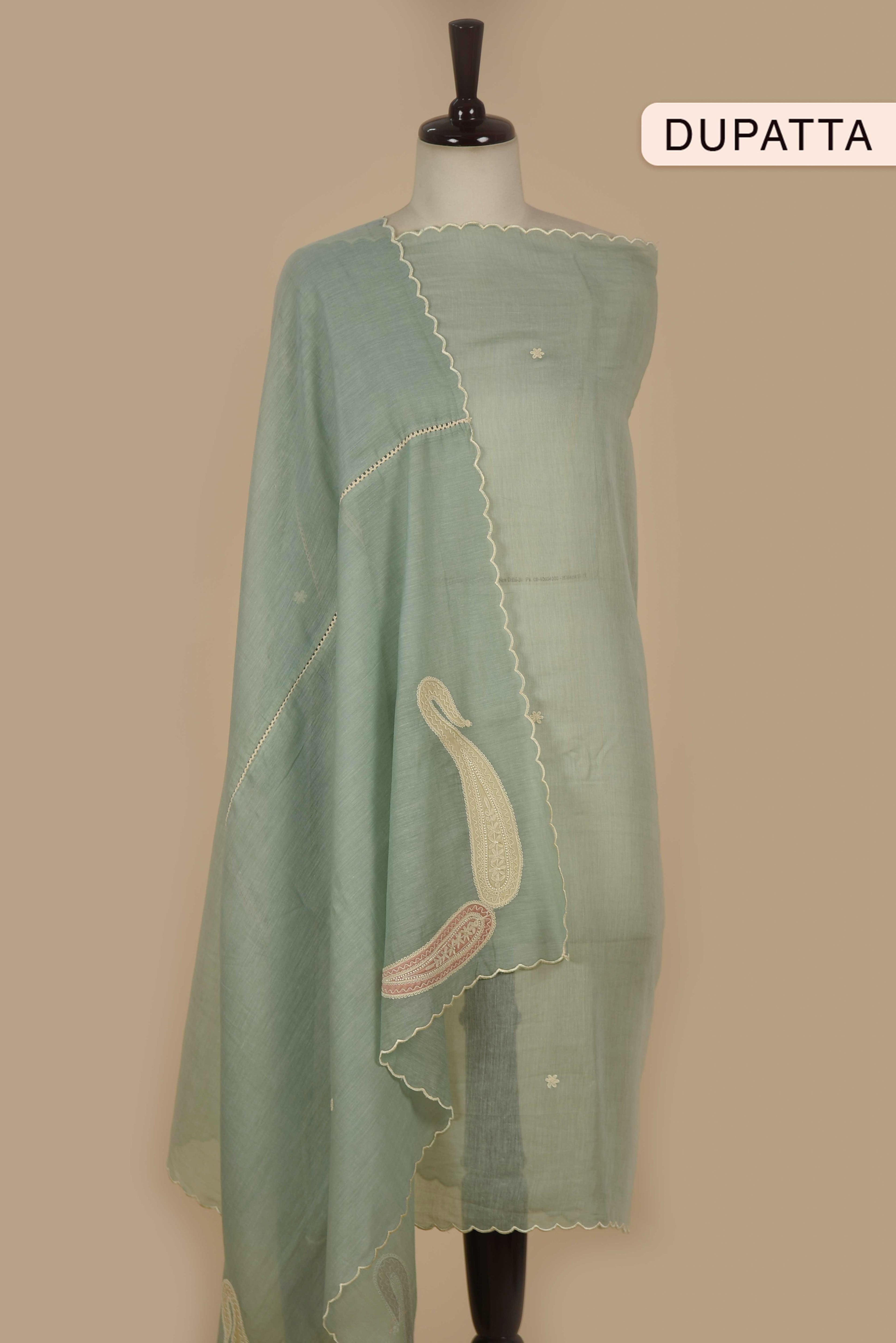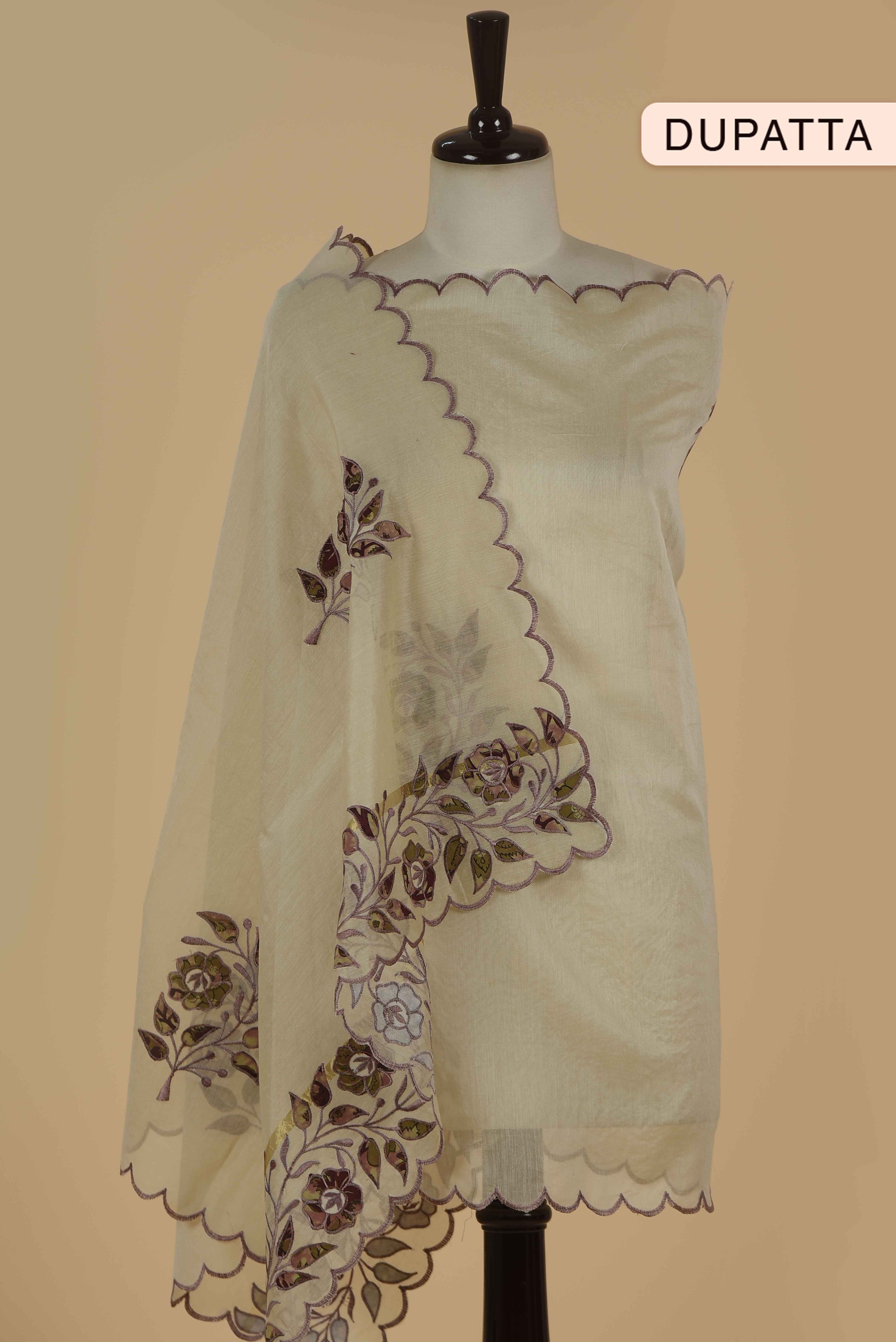 Red Mul chanderi Embroidered Unstitched Suit Fabric Set With Mul Chanderi Embroidered Dupatta
