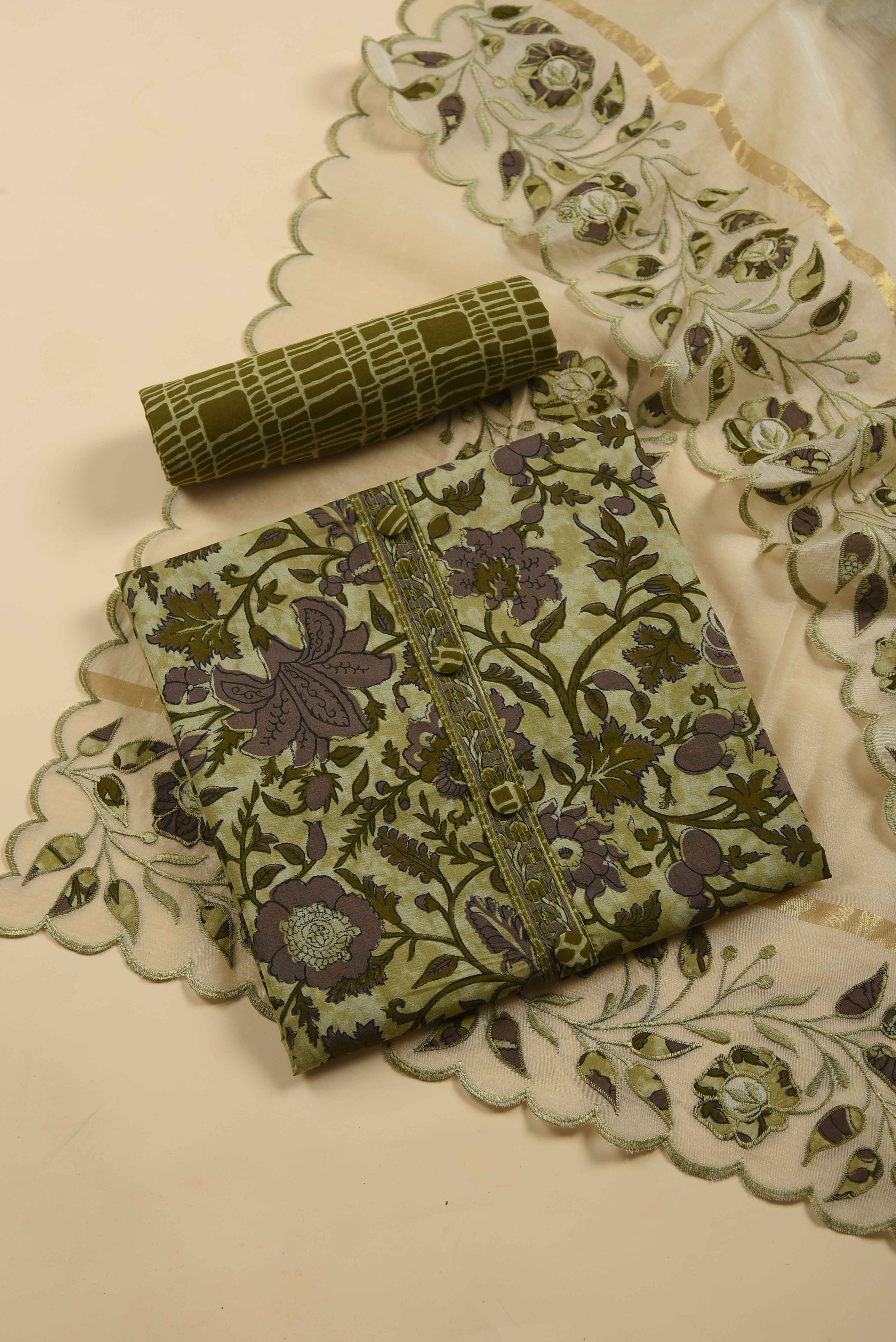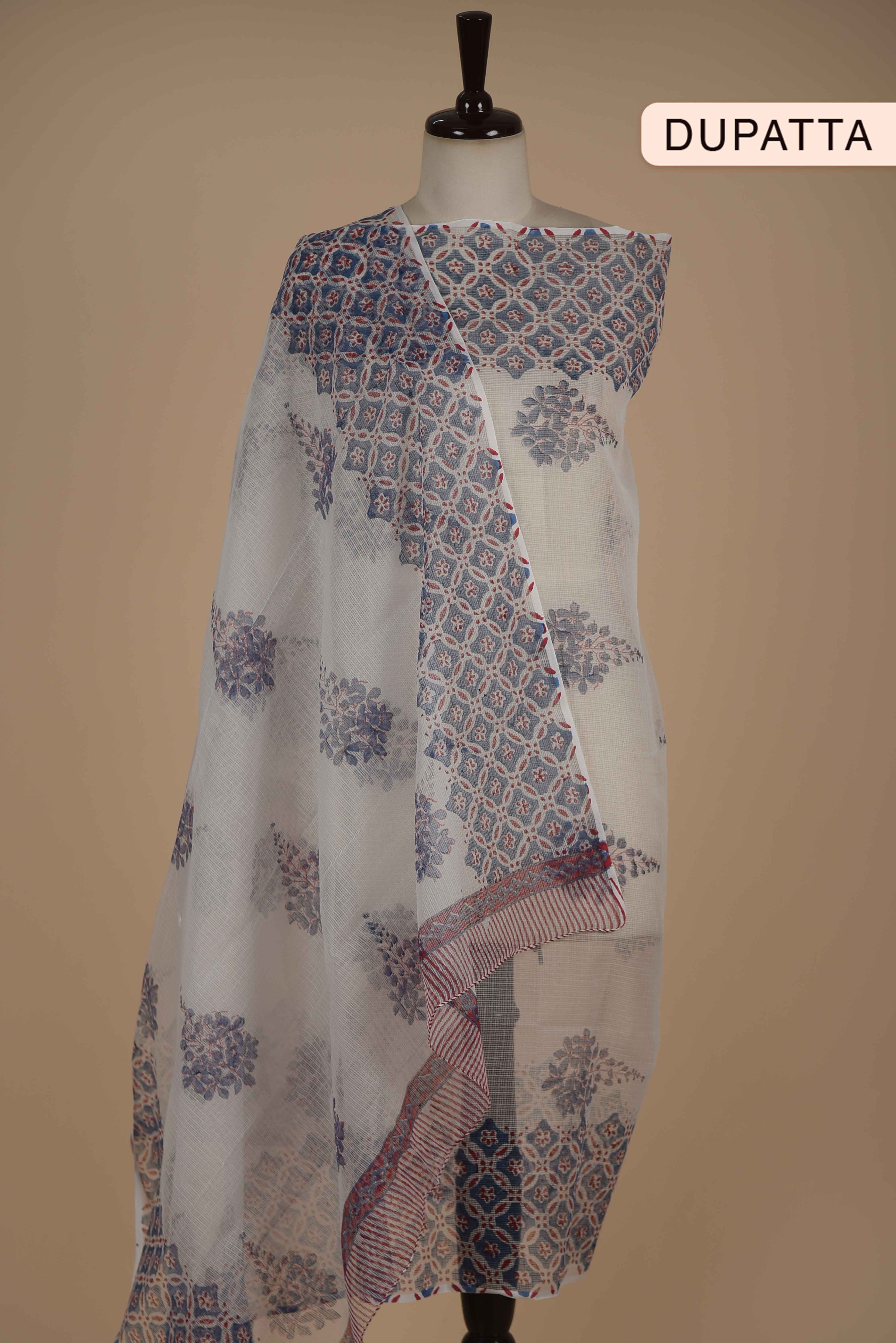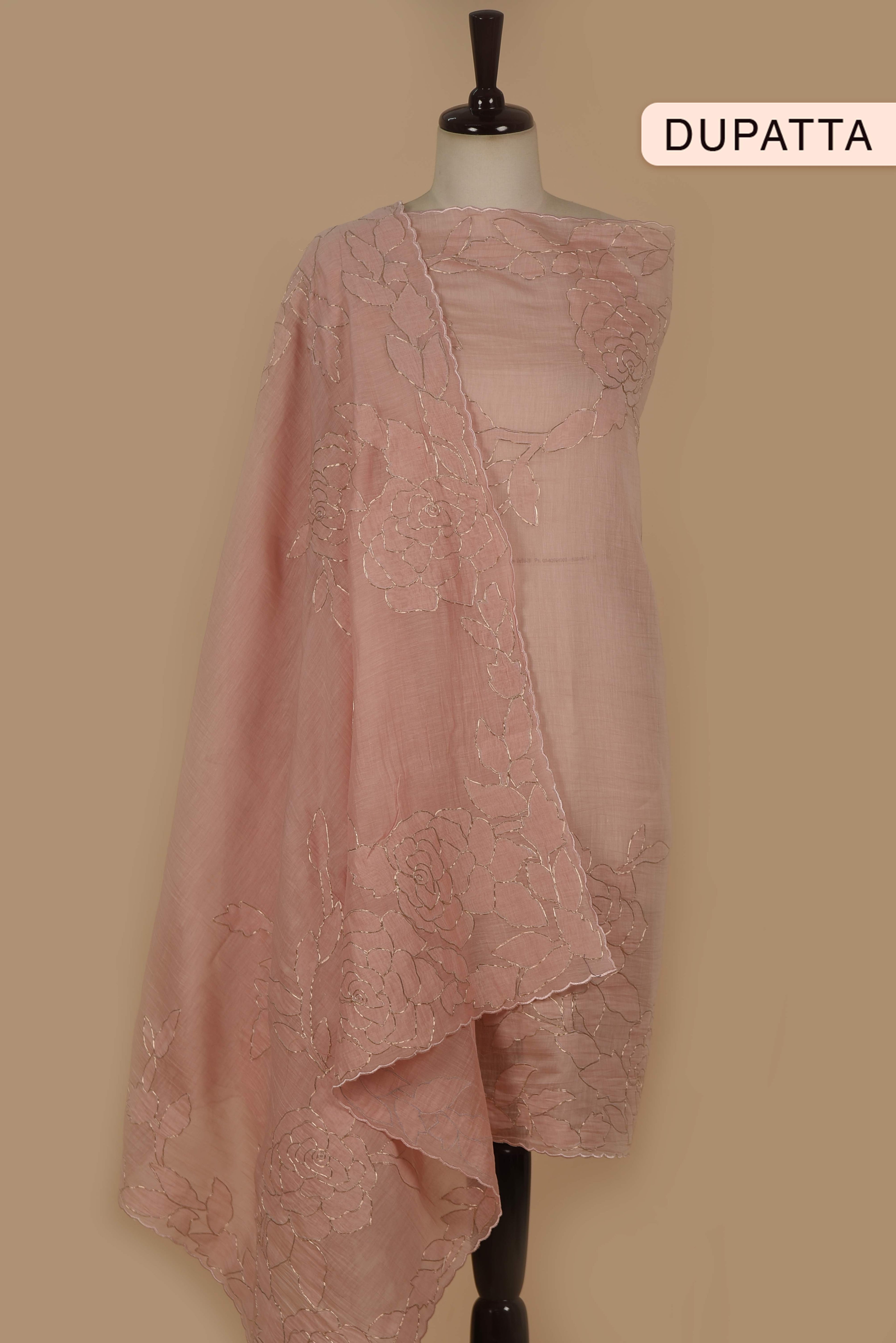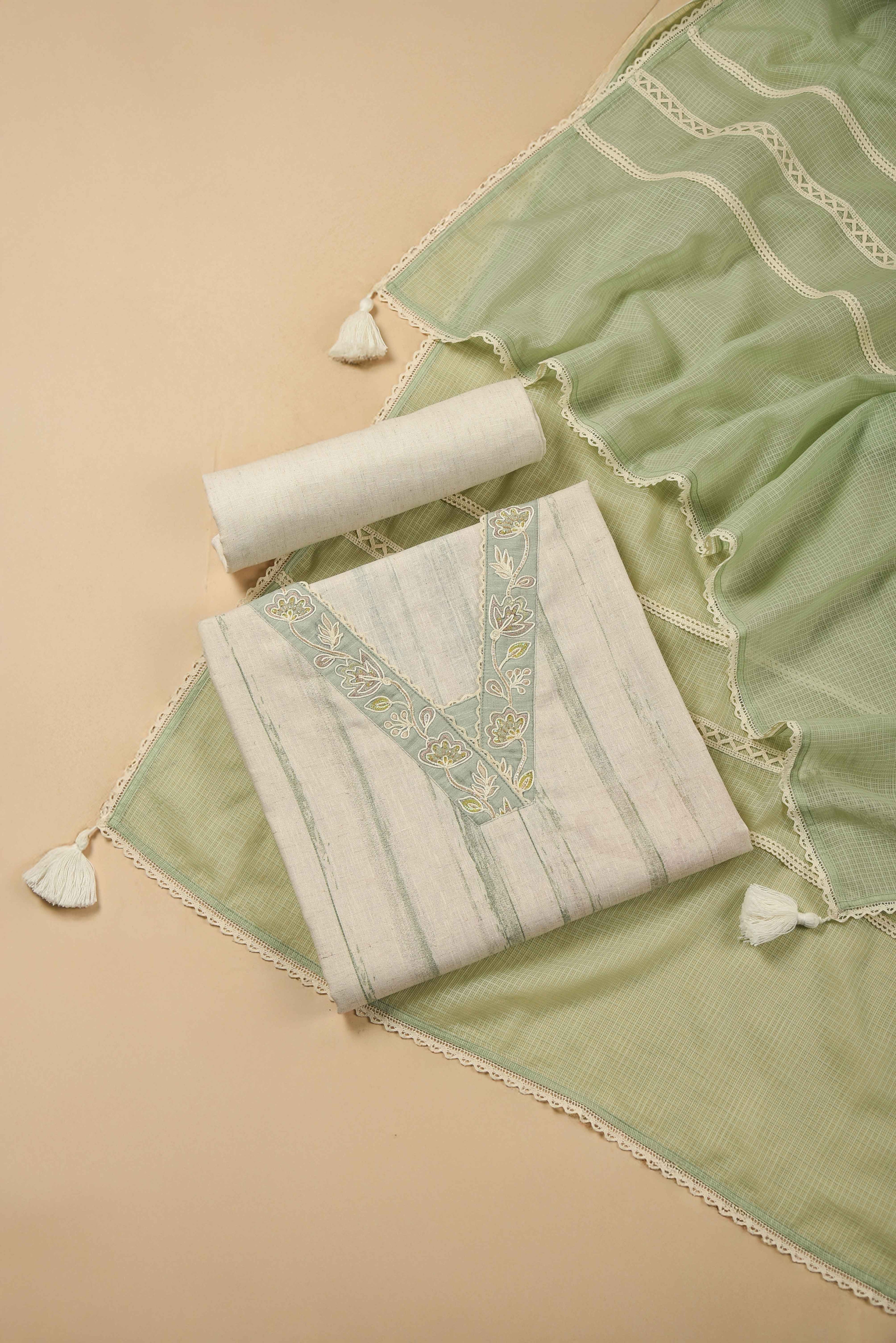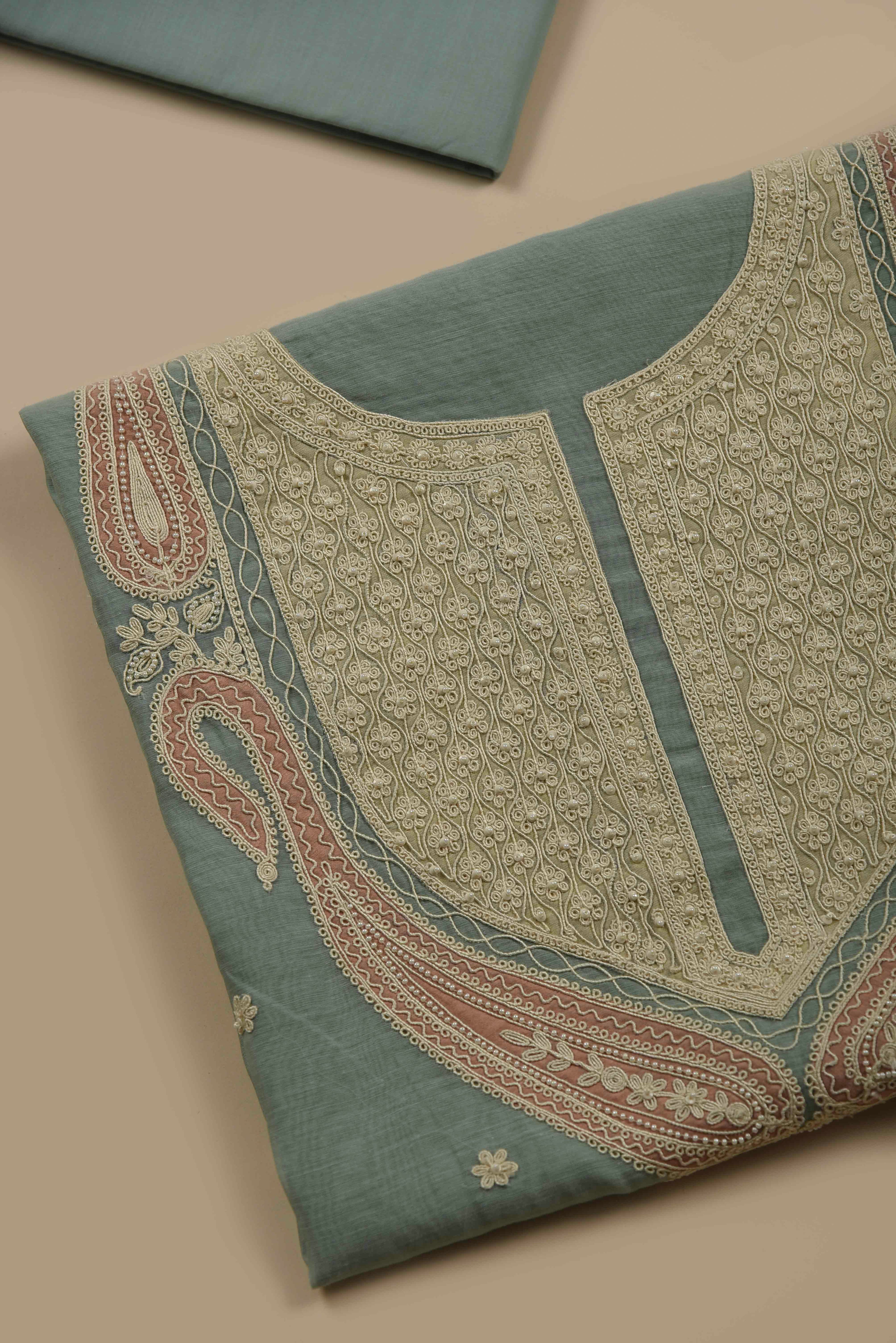 Red Mul chanderi Embroidered Unstitched Suit Fabric Set With Mul Chanderi Embroidered Dupatta