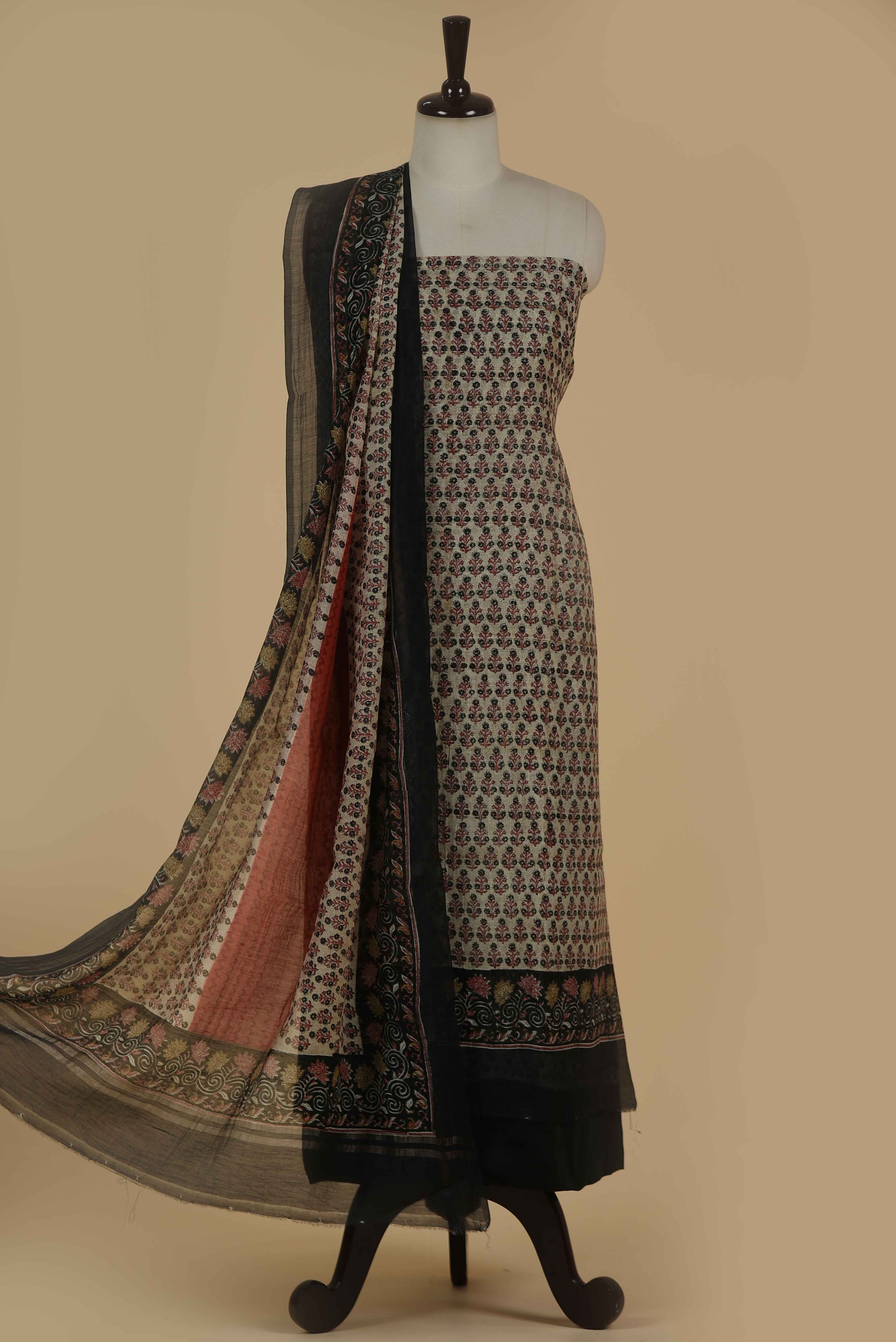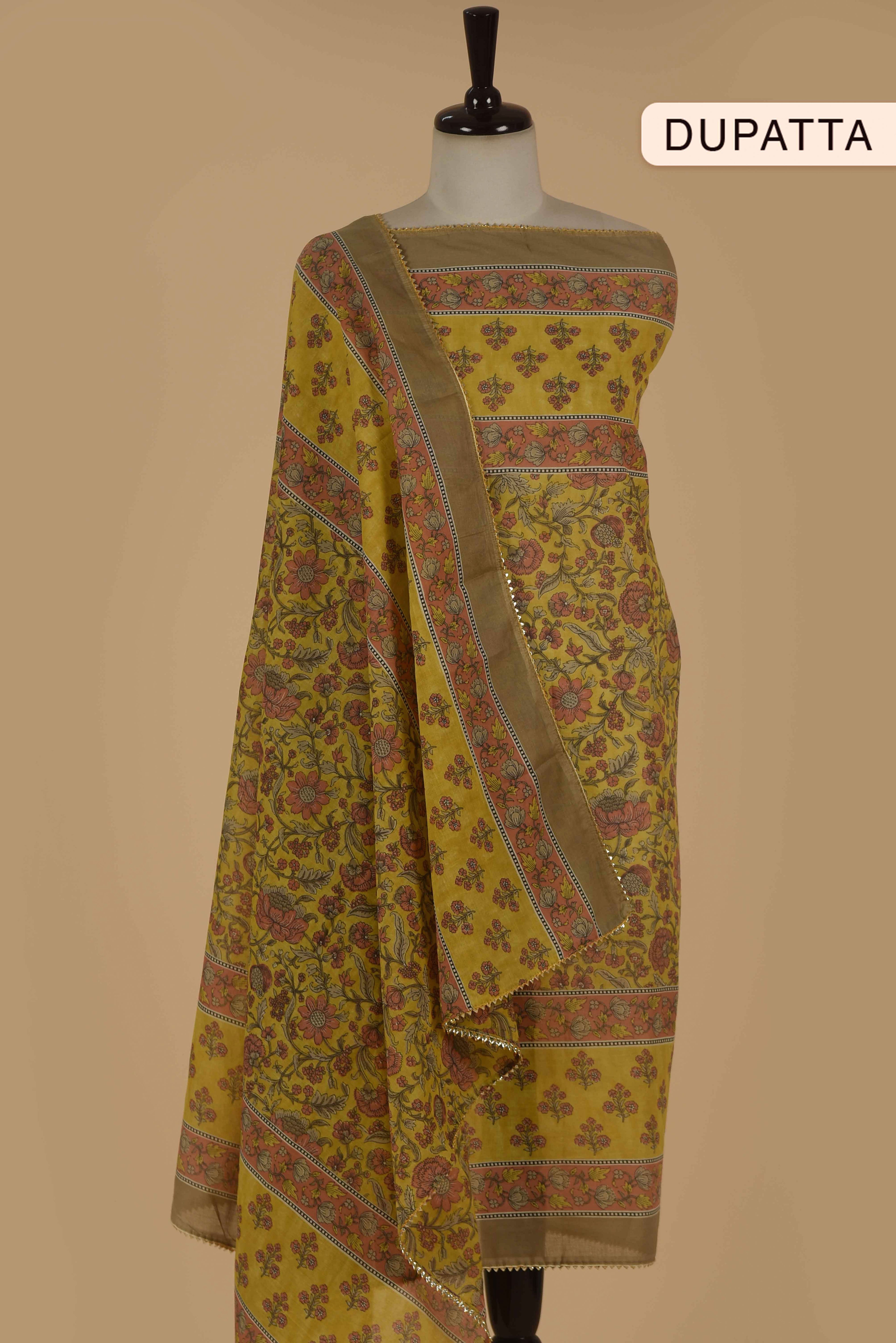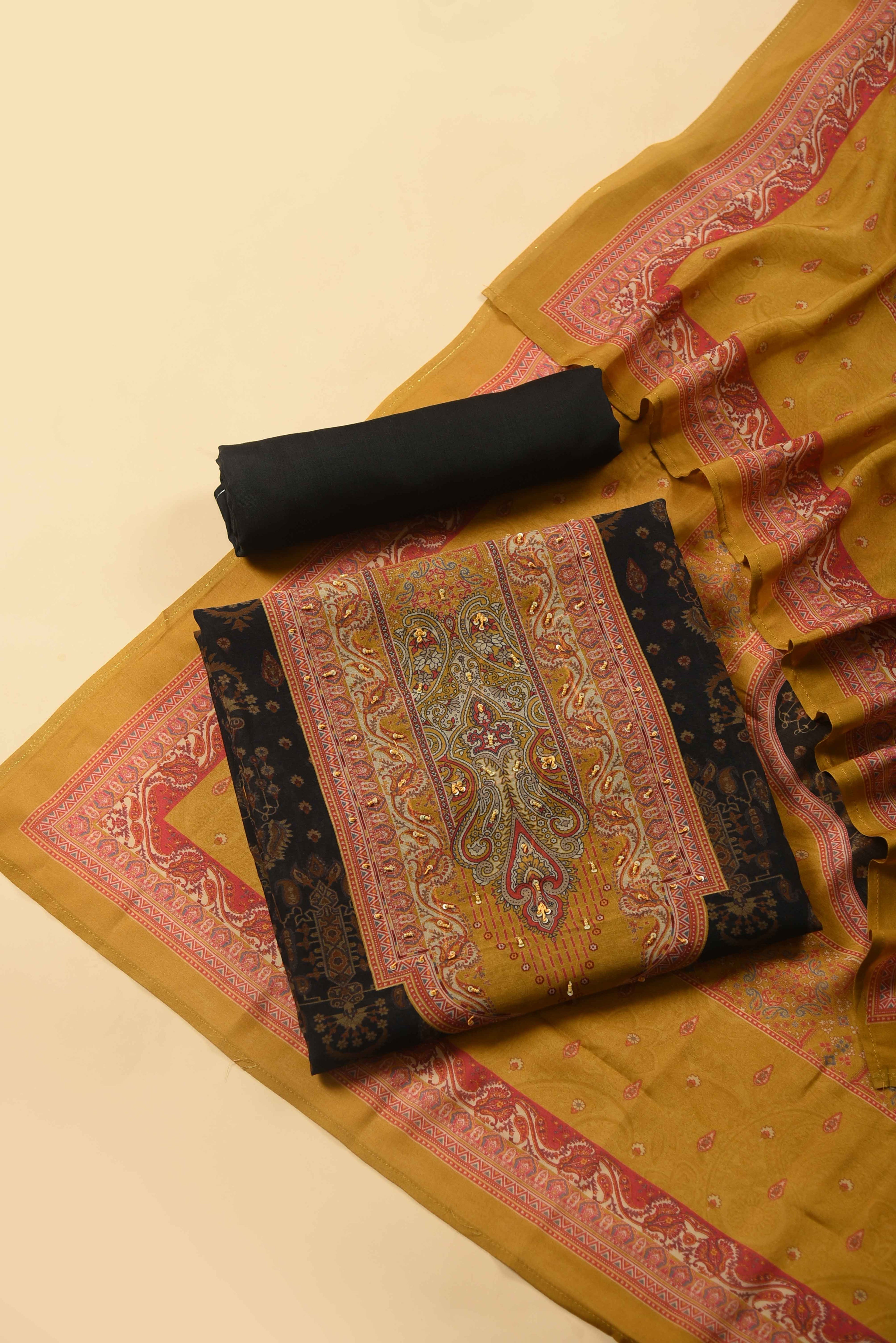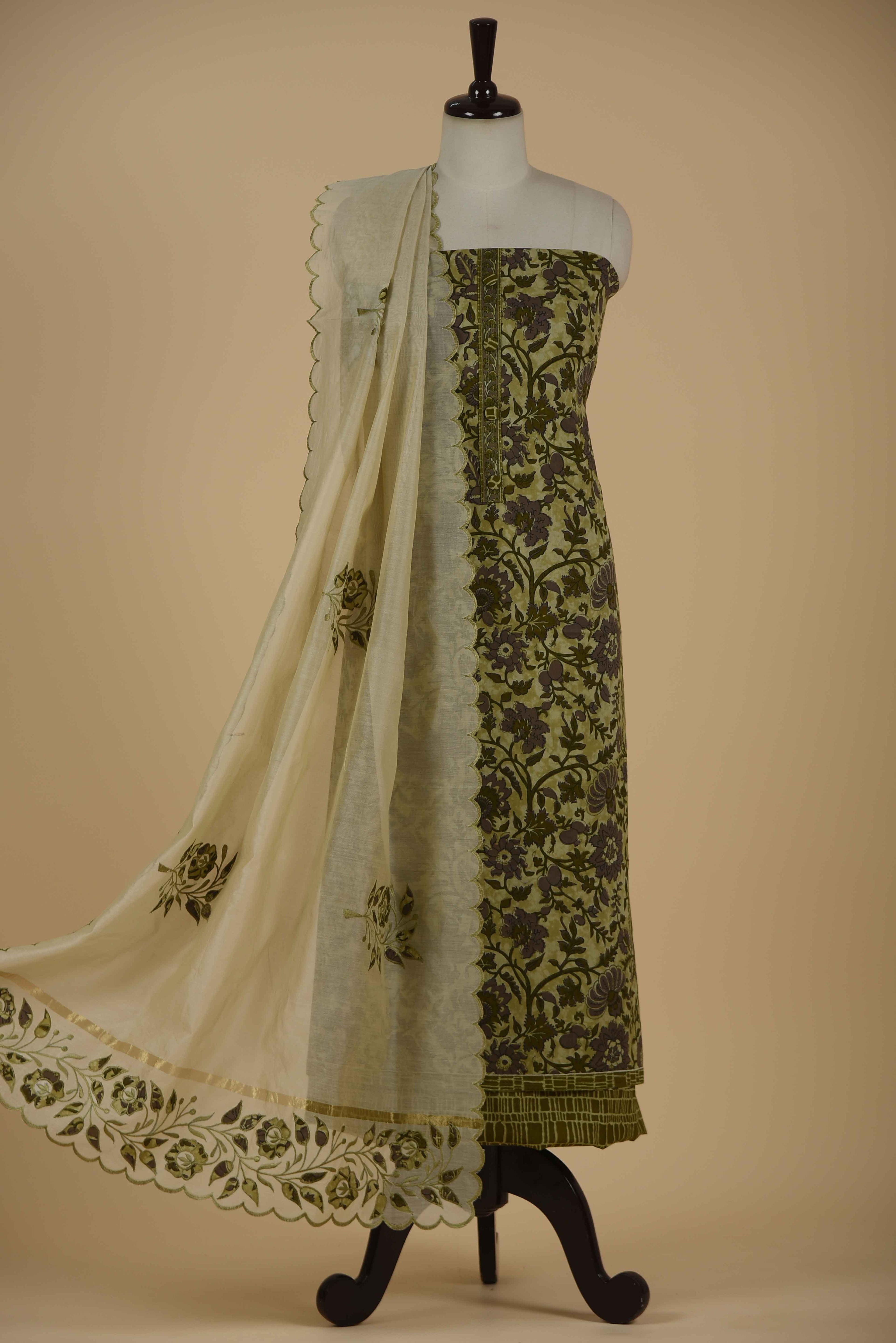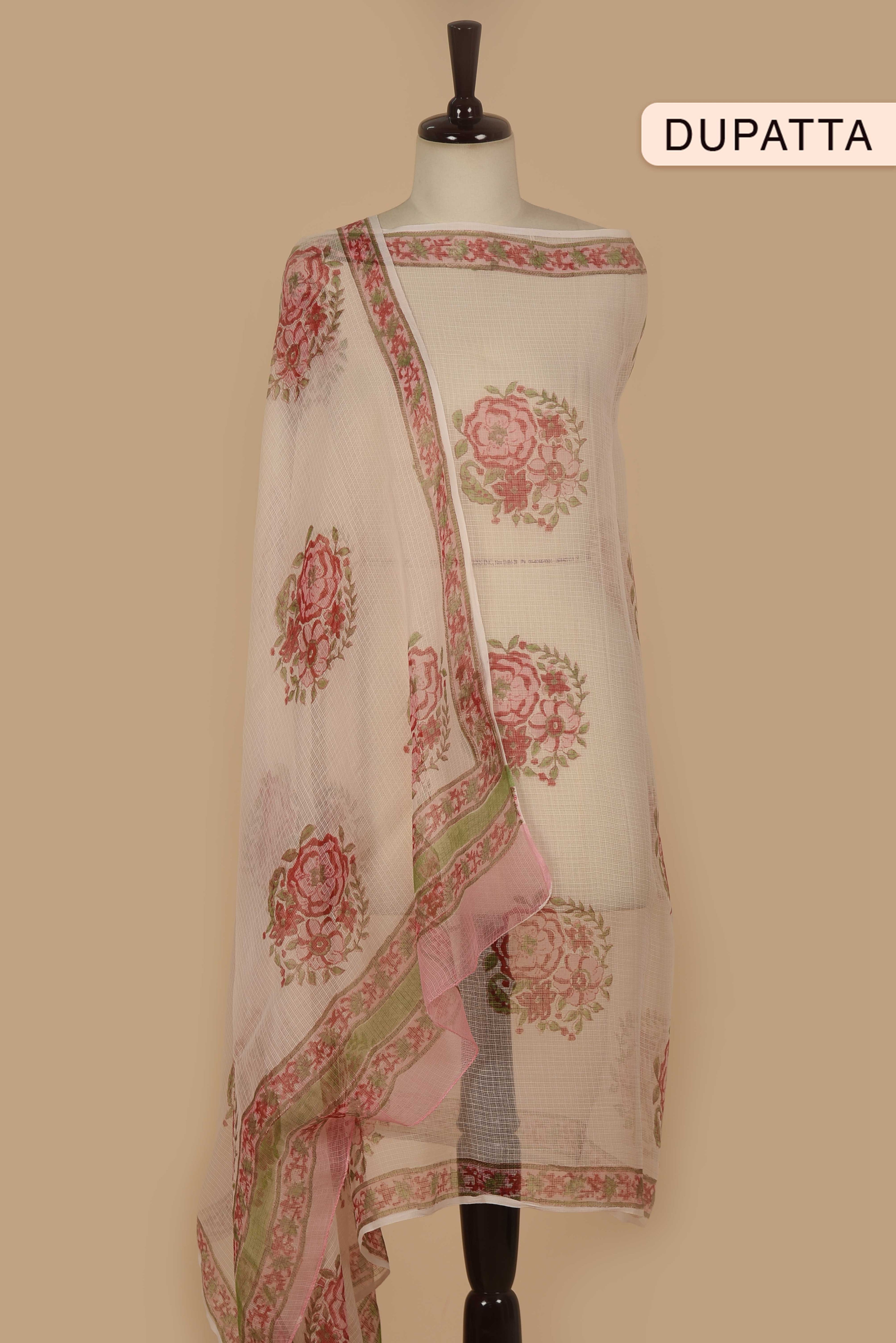 Red Mul chanderi Embroidered Unstitched Suit Fabric Set With Mul Chanderi Embroidered Dupatta