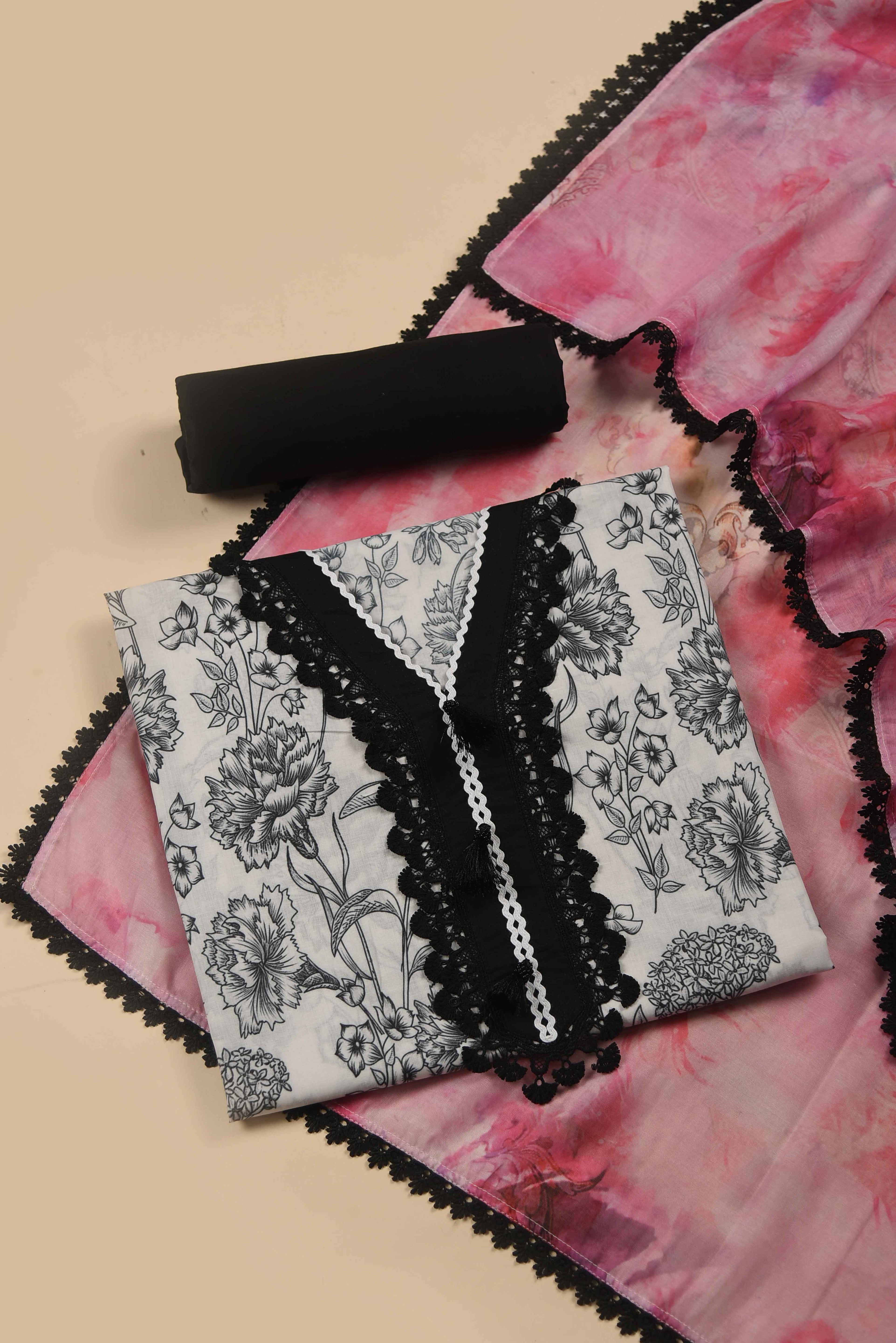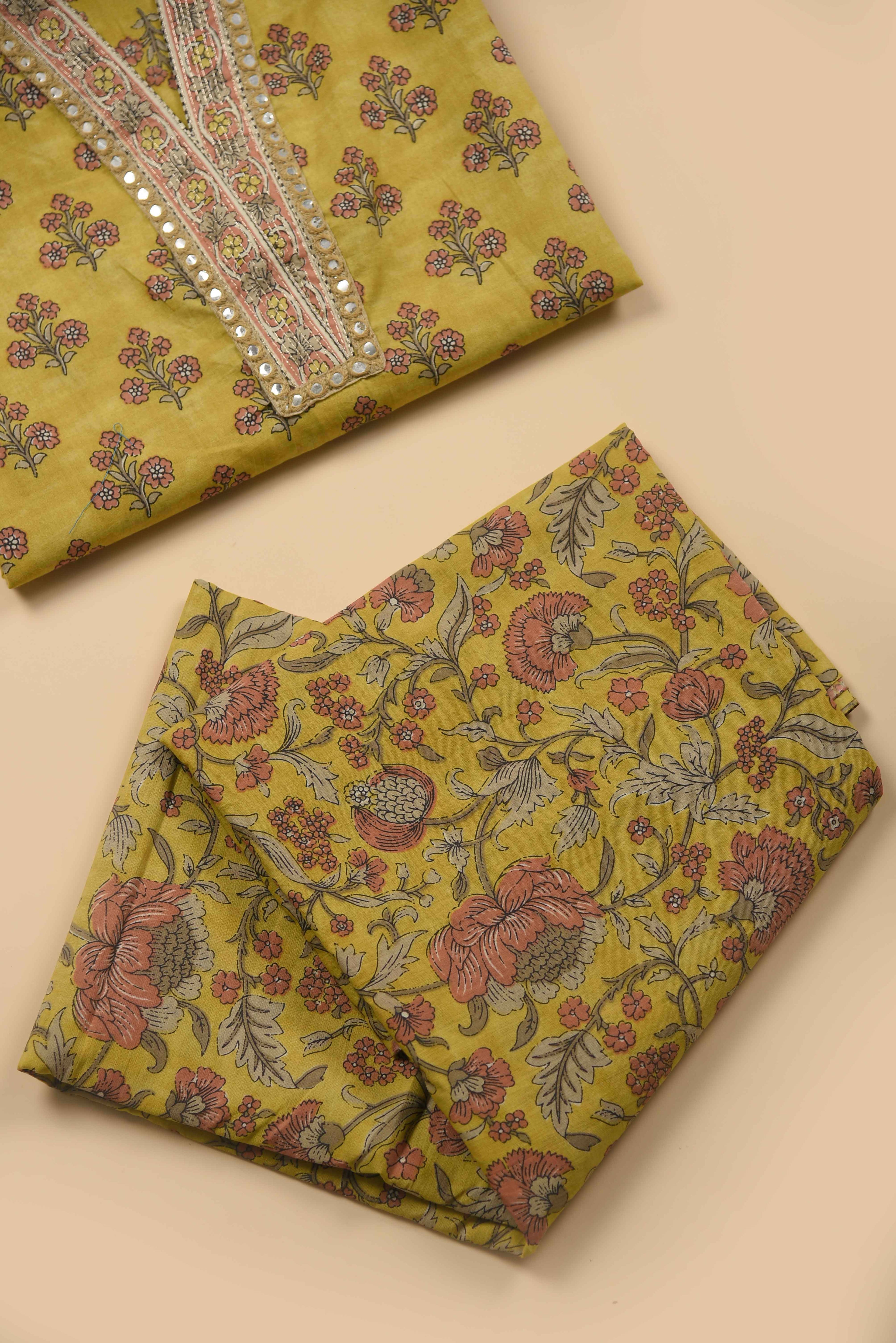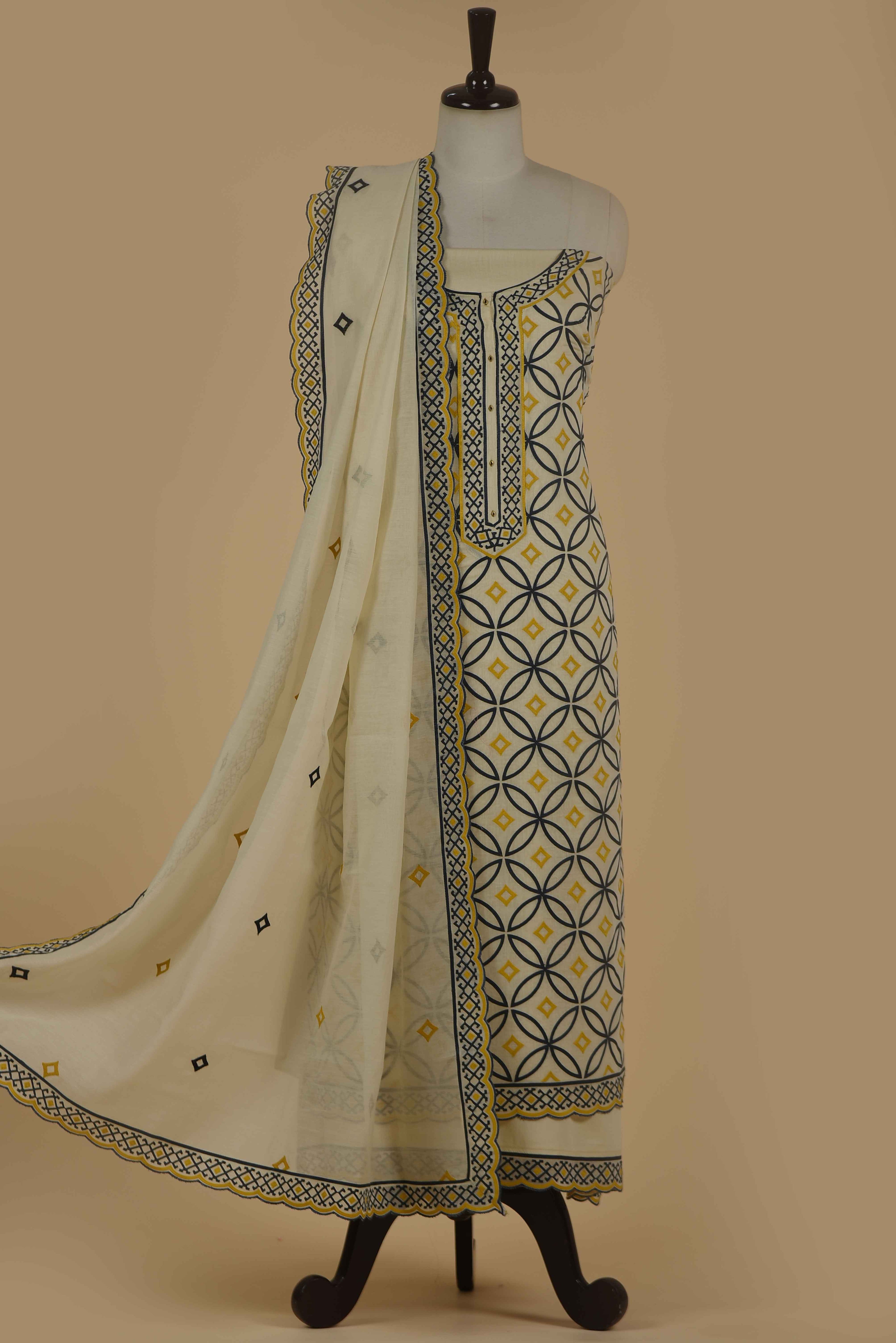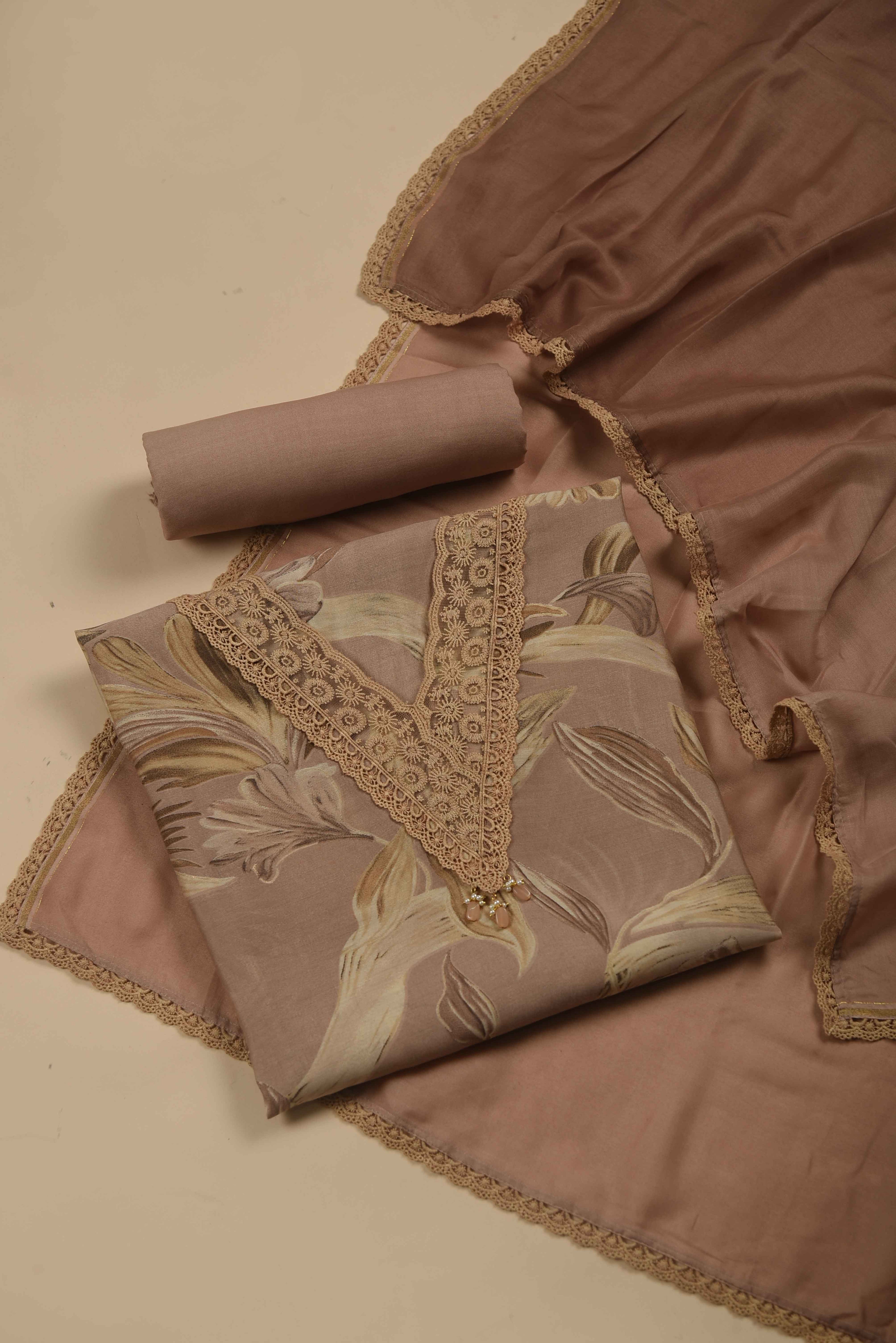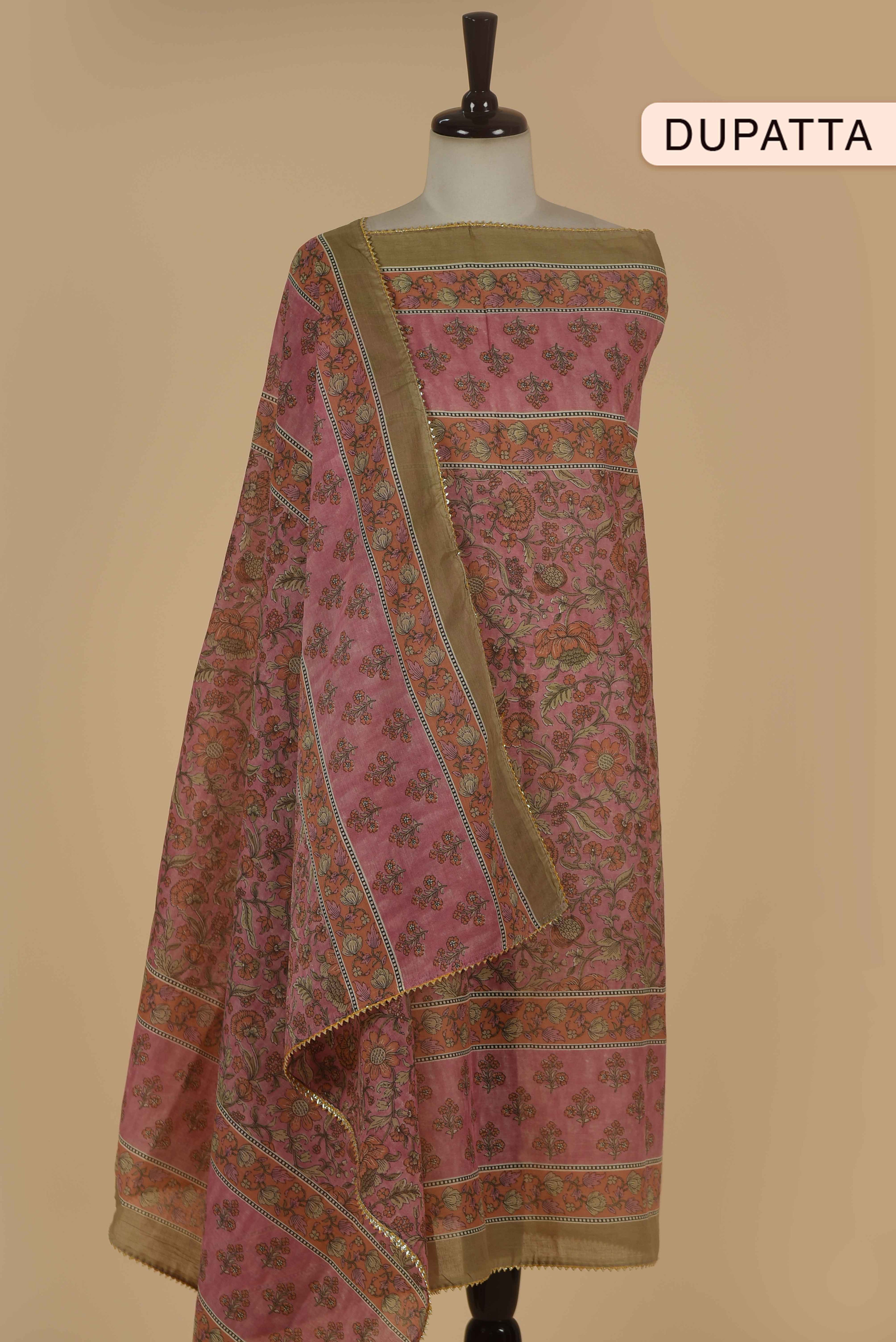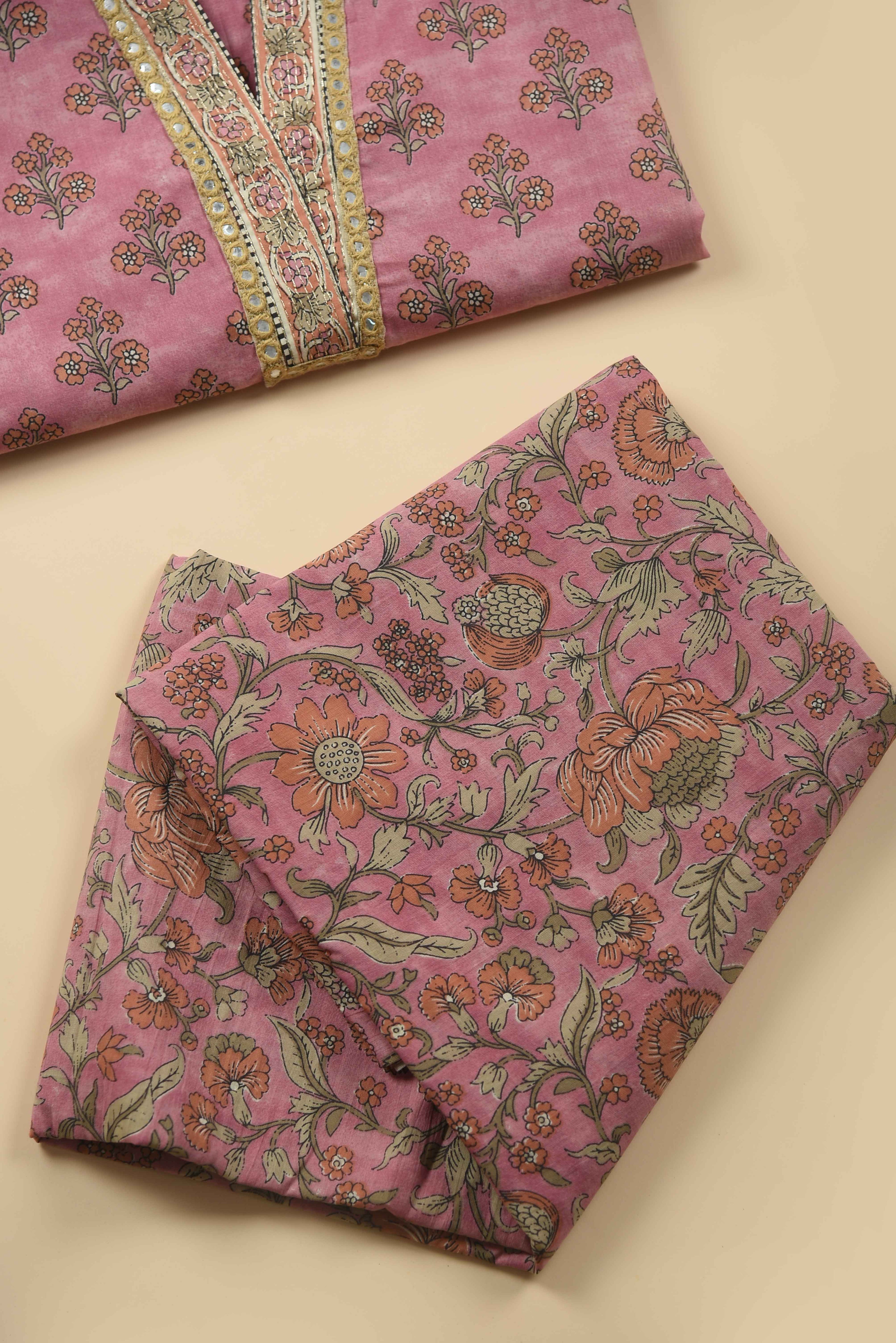 Red Mul chanderi Embroidered Unstitched Suit Fabric Set With Mul Chanderi Embroidered Dupatta