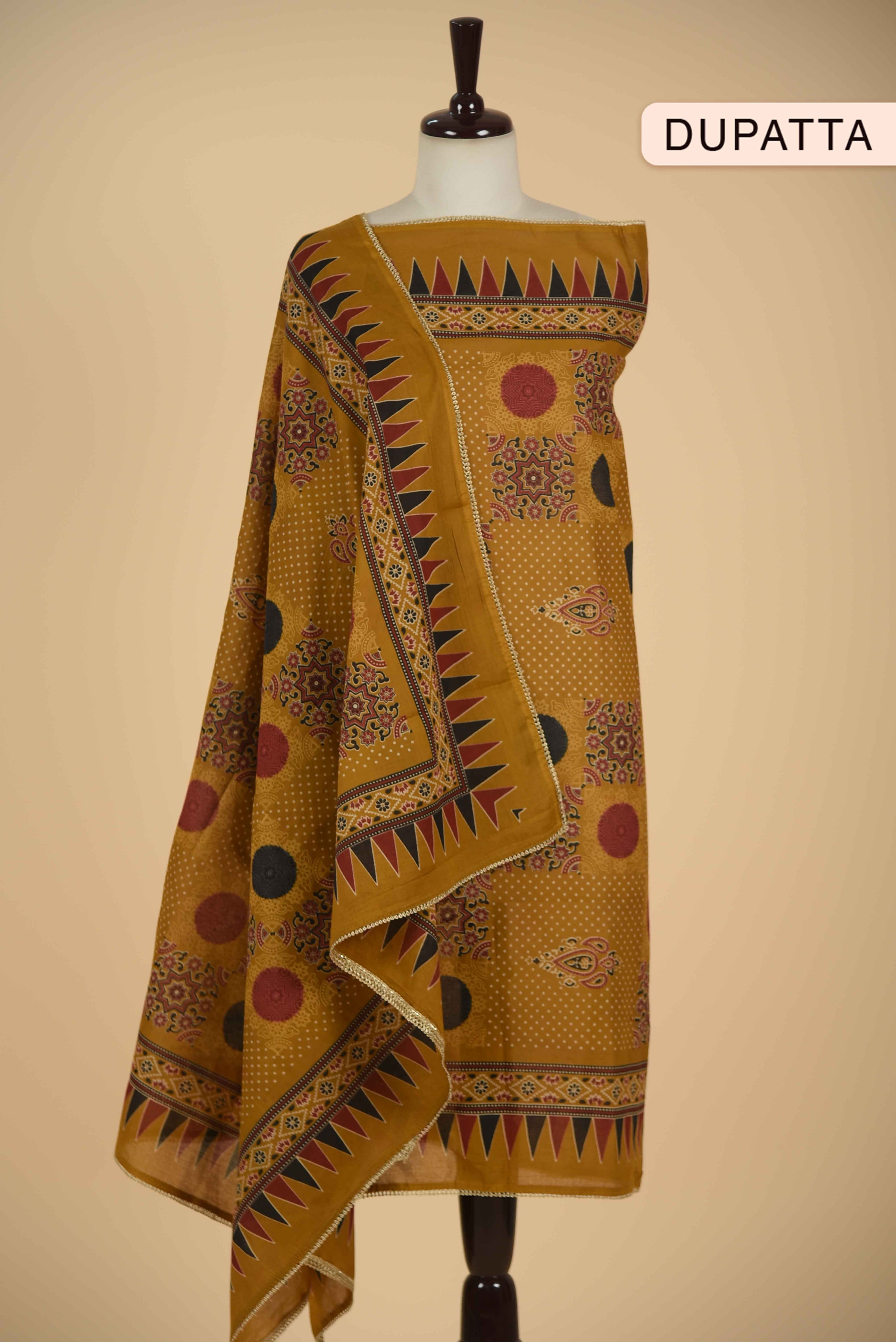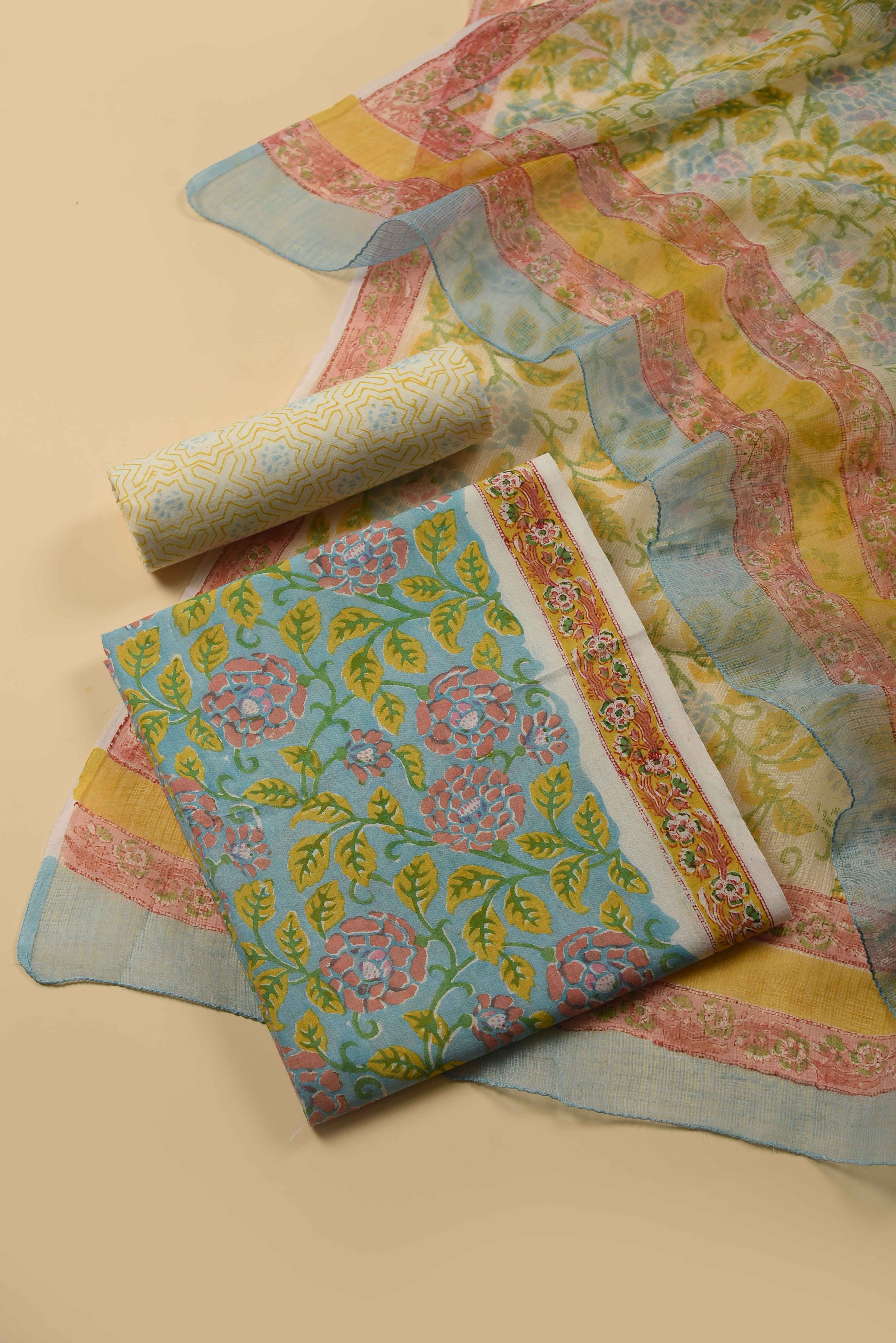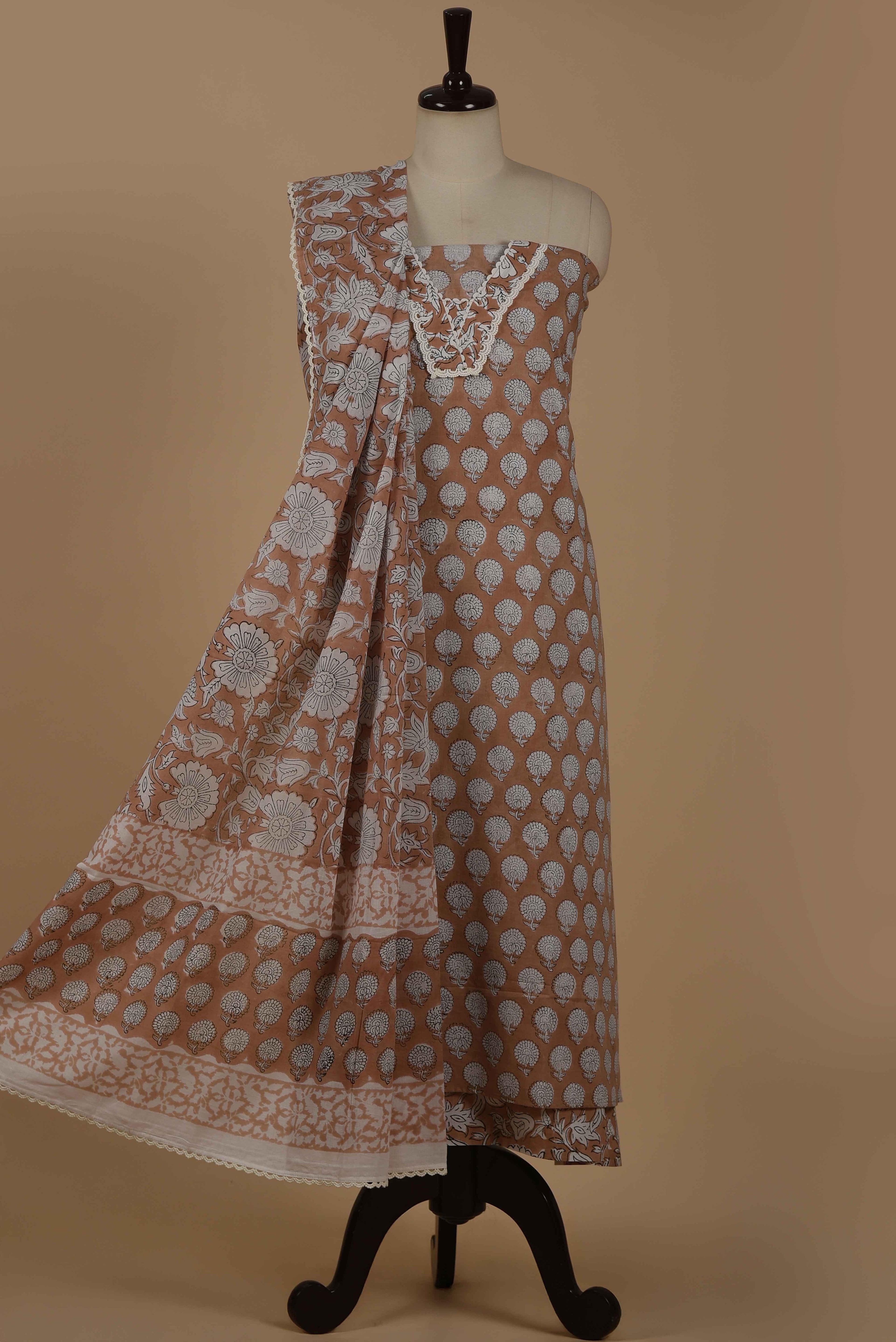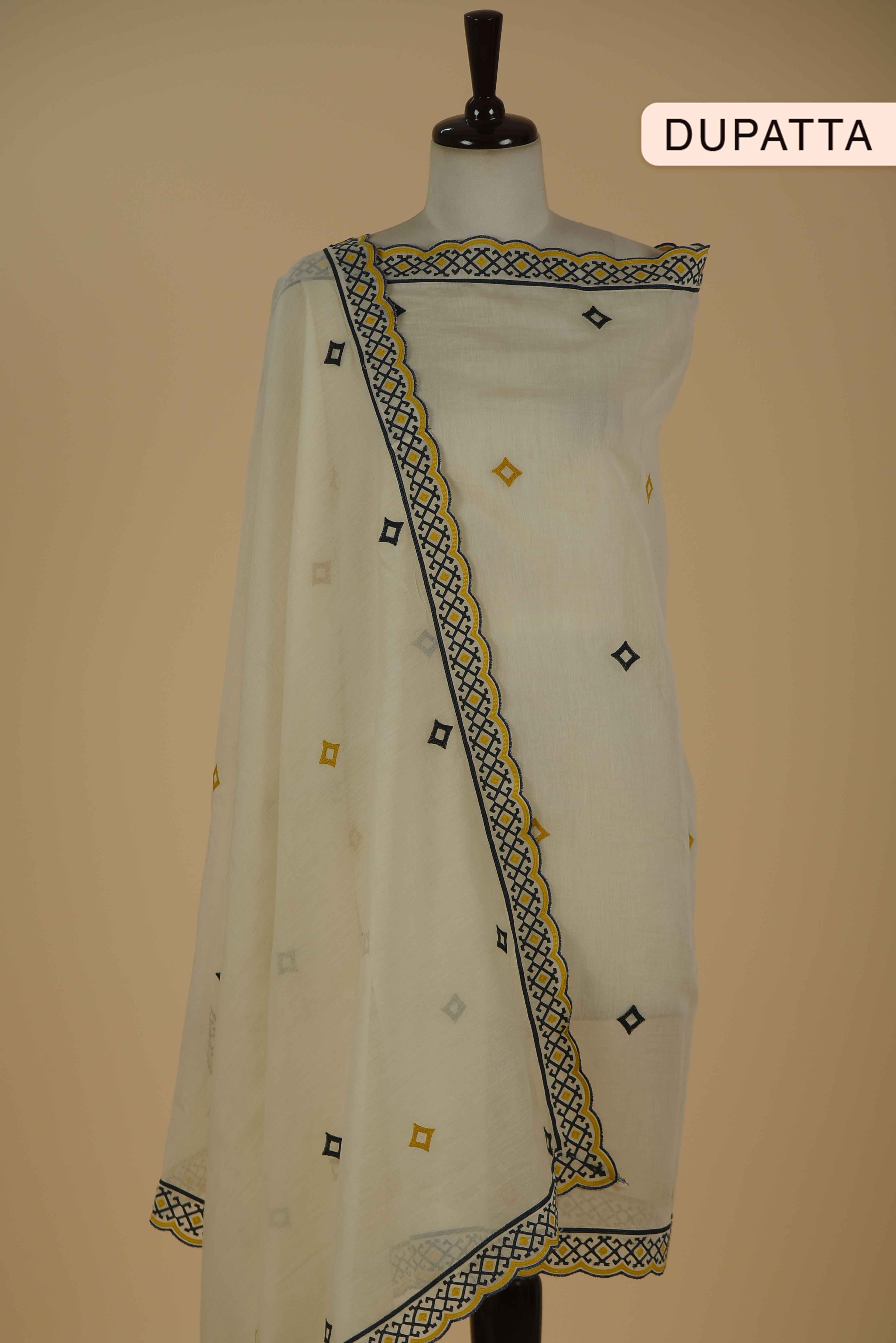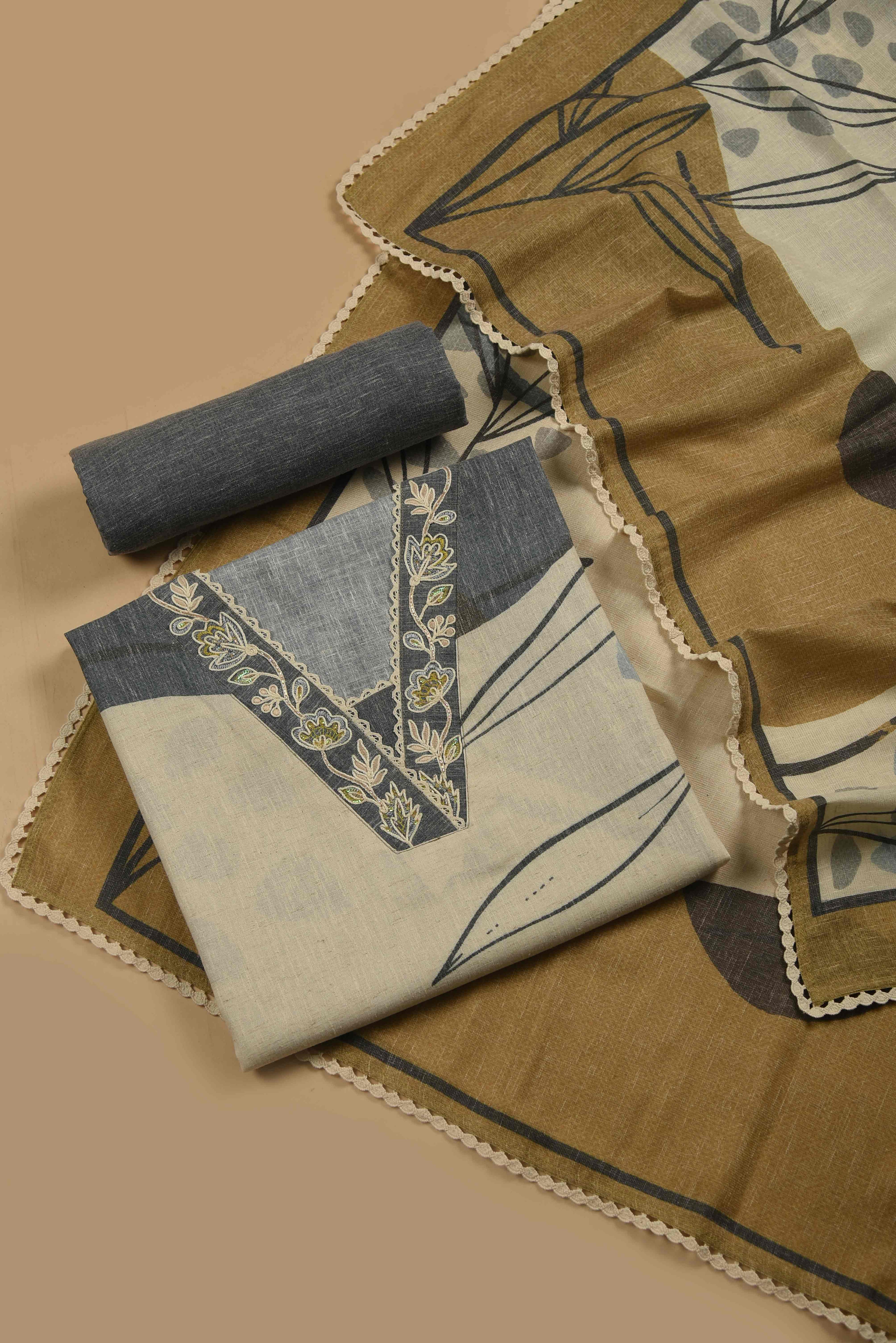 Red Mul chanderi Embroidered Unstitched Suit Fabric Set With Mul Chanderi Embroidered Dupatta