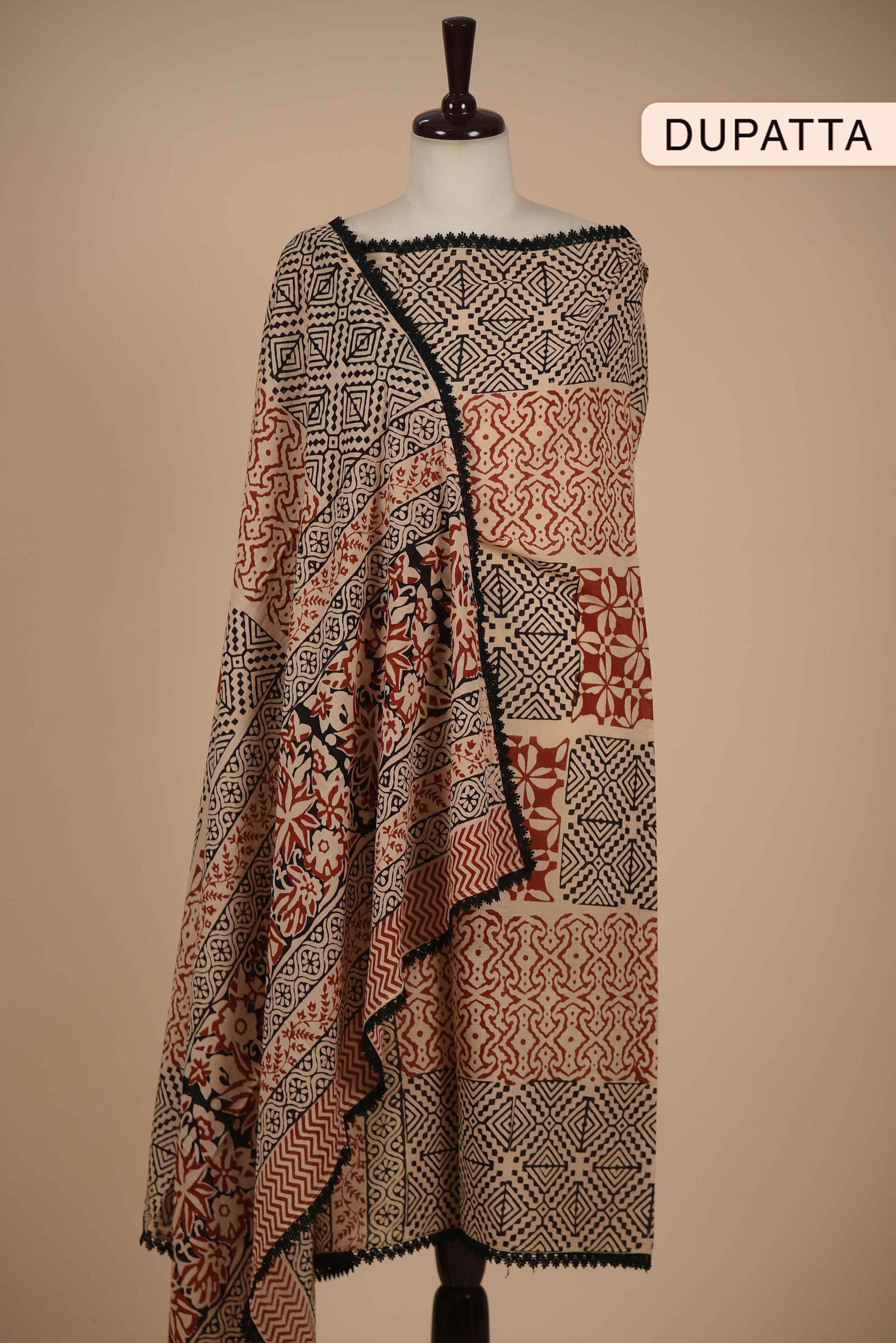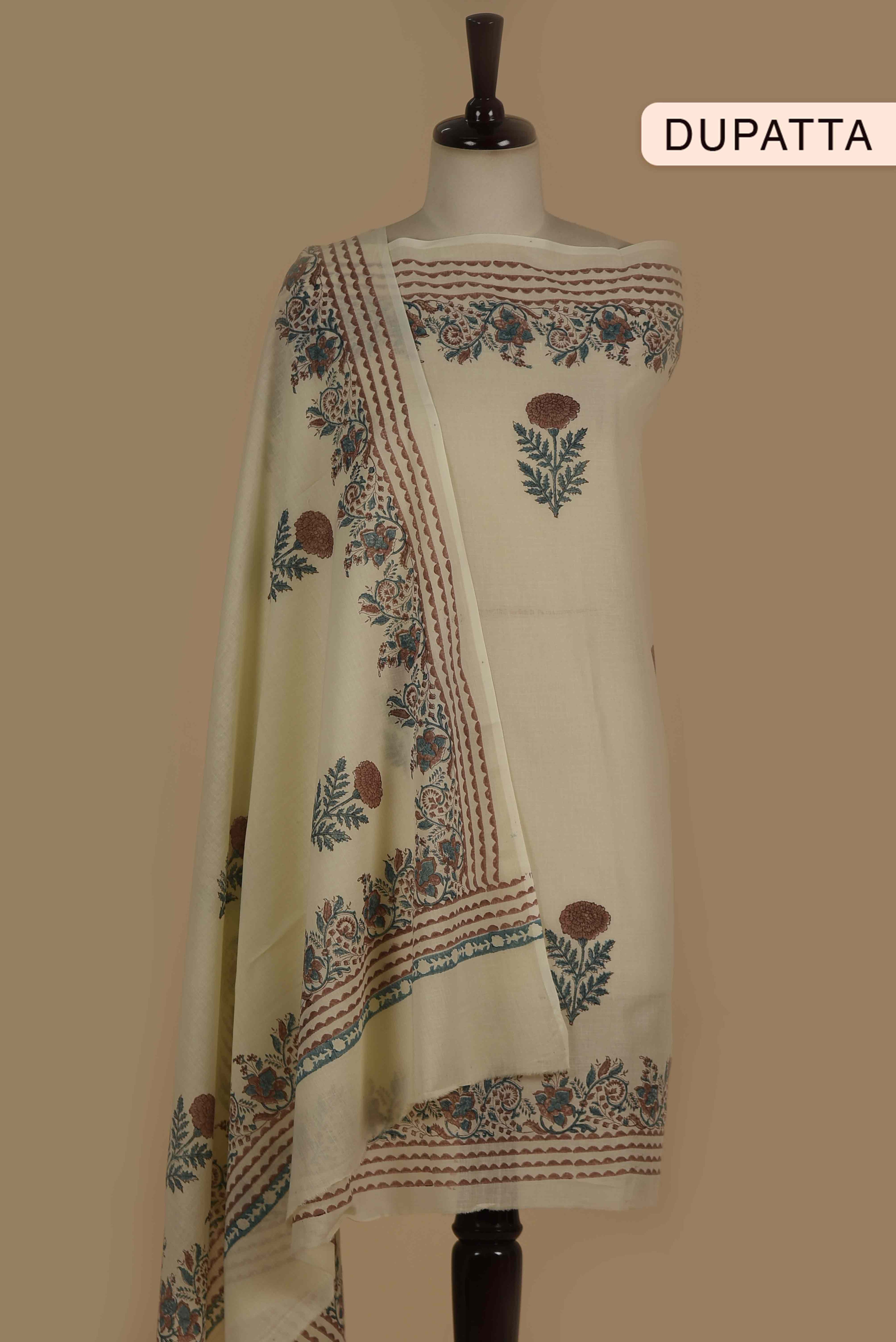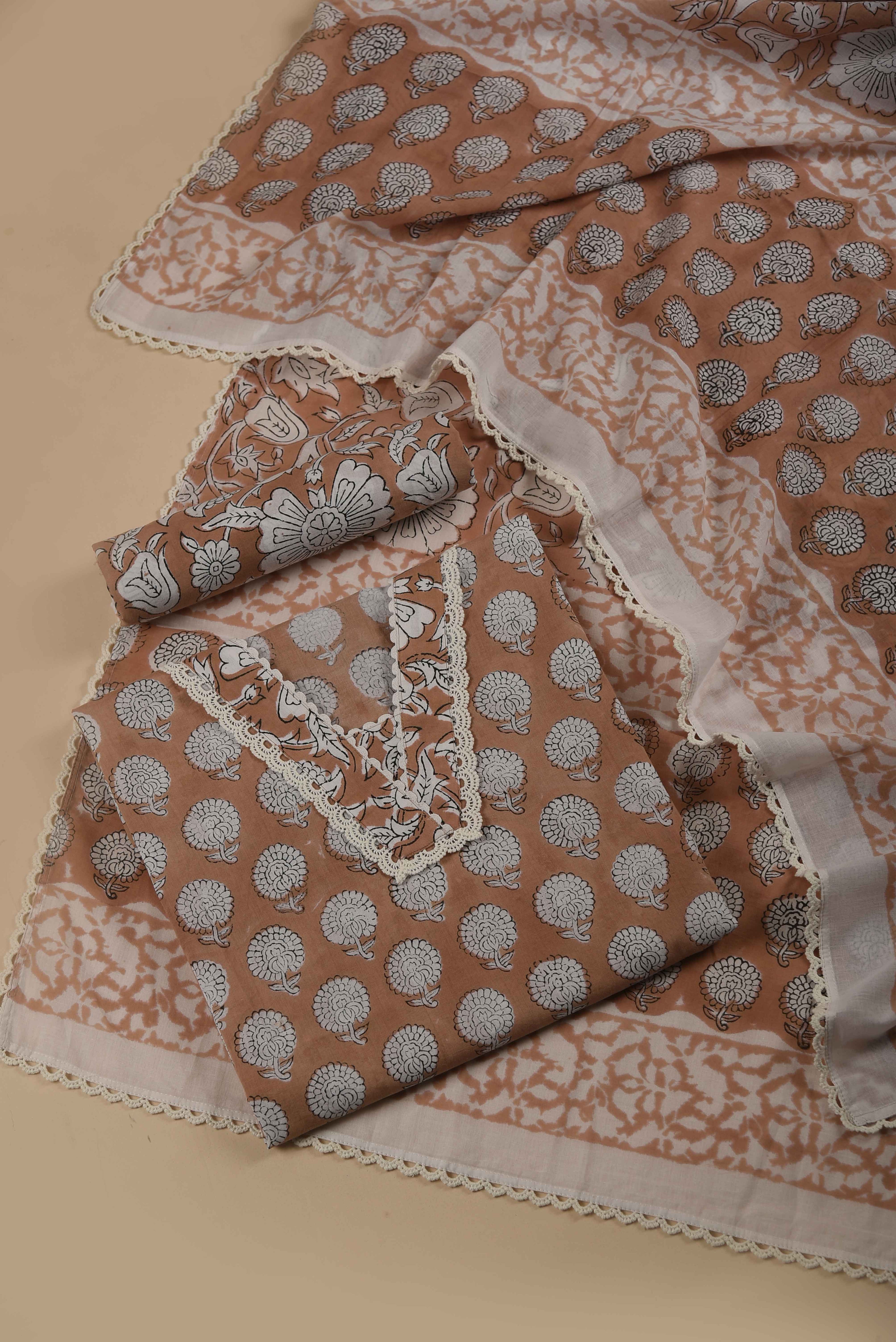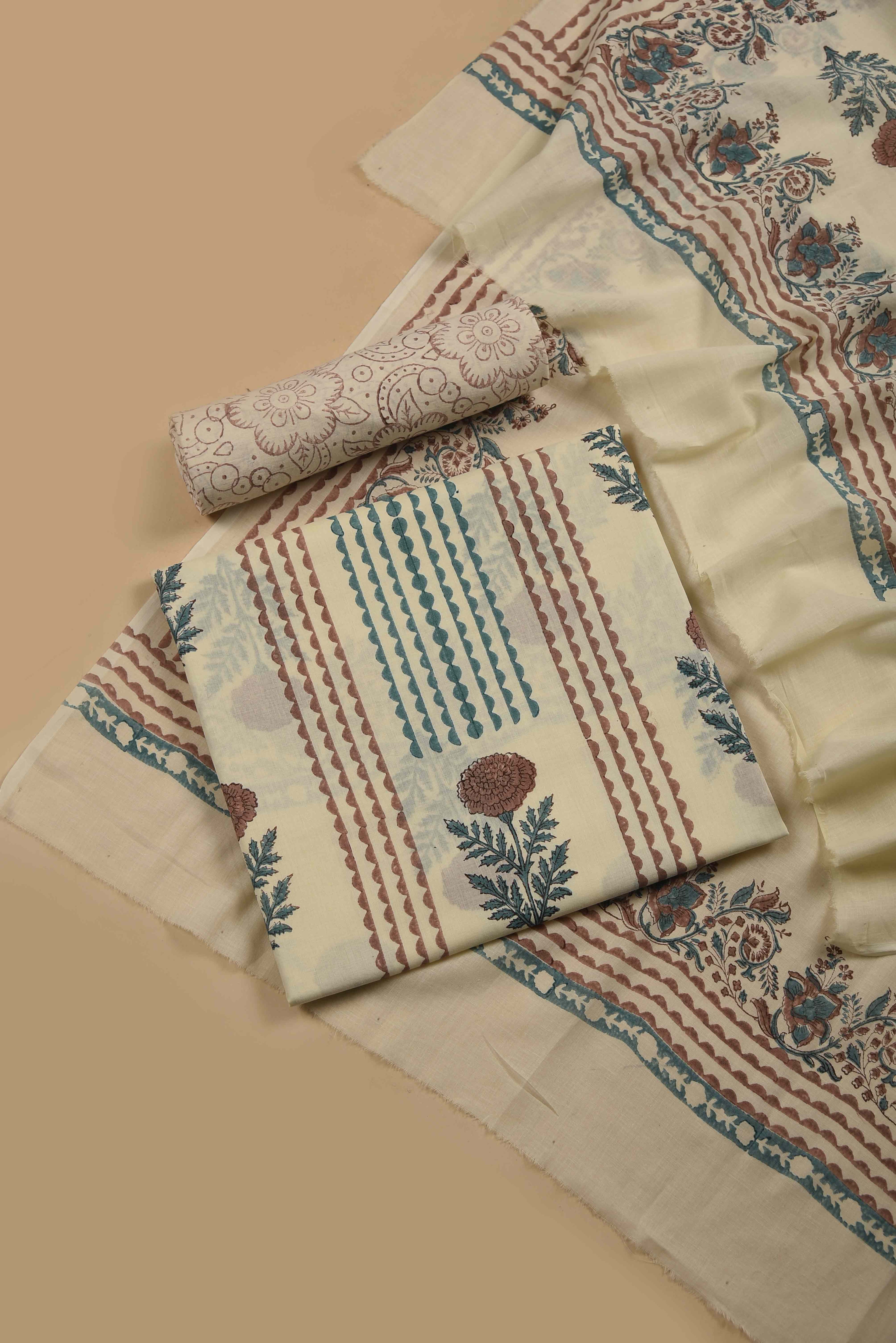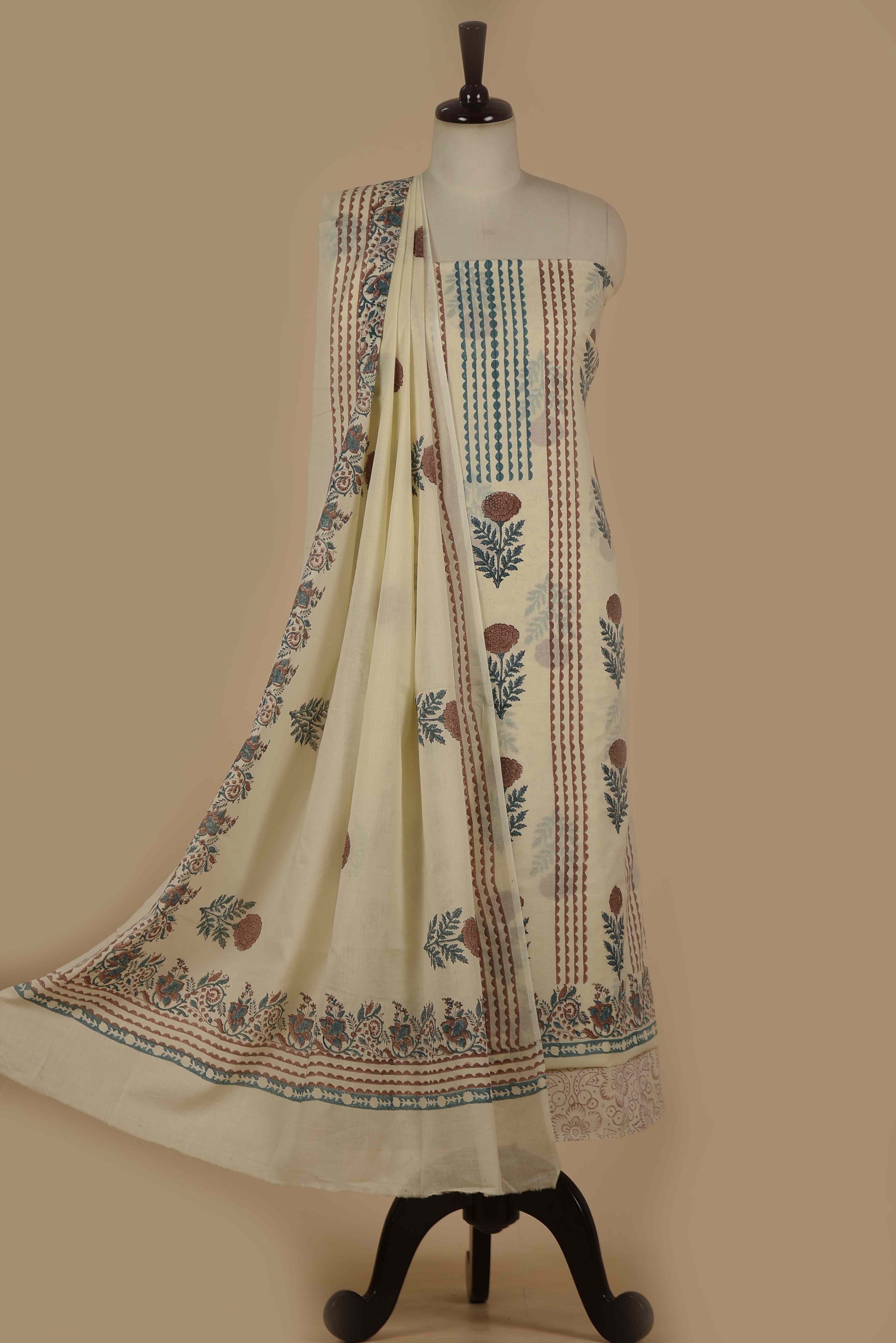 Red Mul chanderi Embroidered Unstitched Suit Fabric Set With Mul Chanderi Embroidered Dupatta