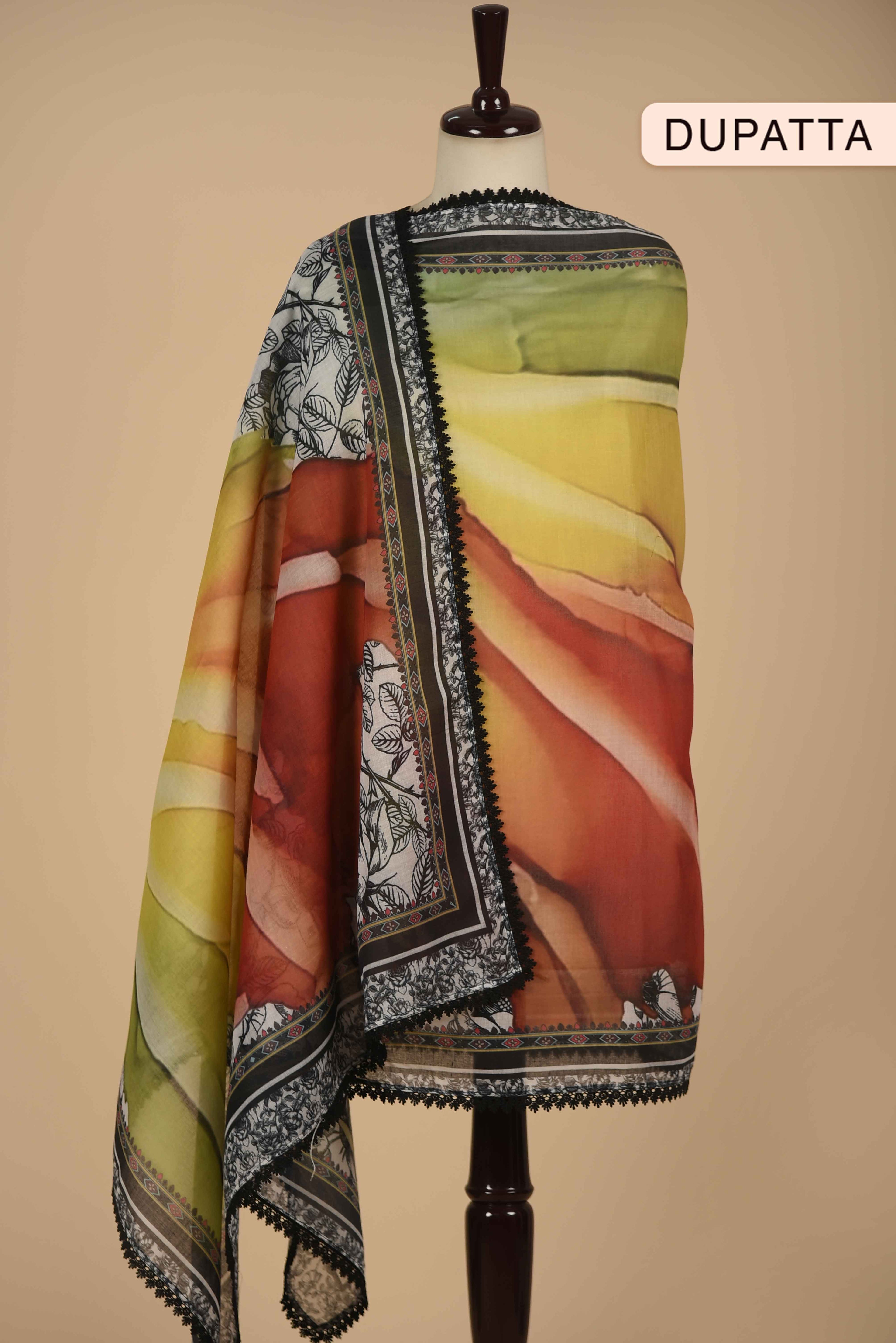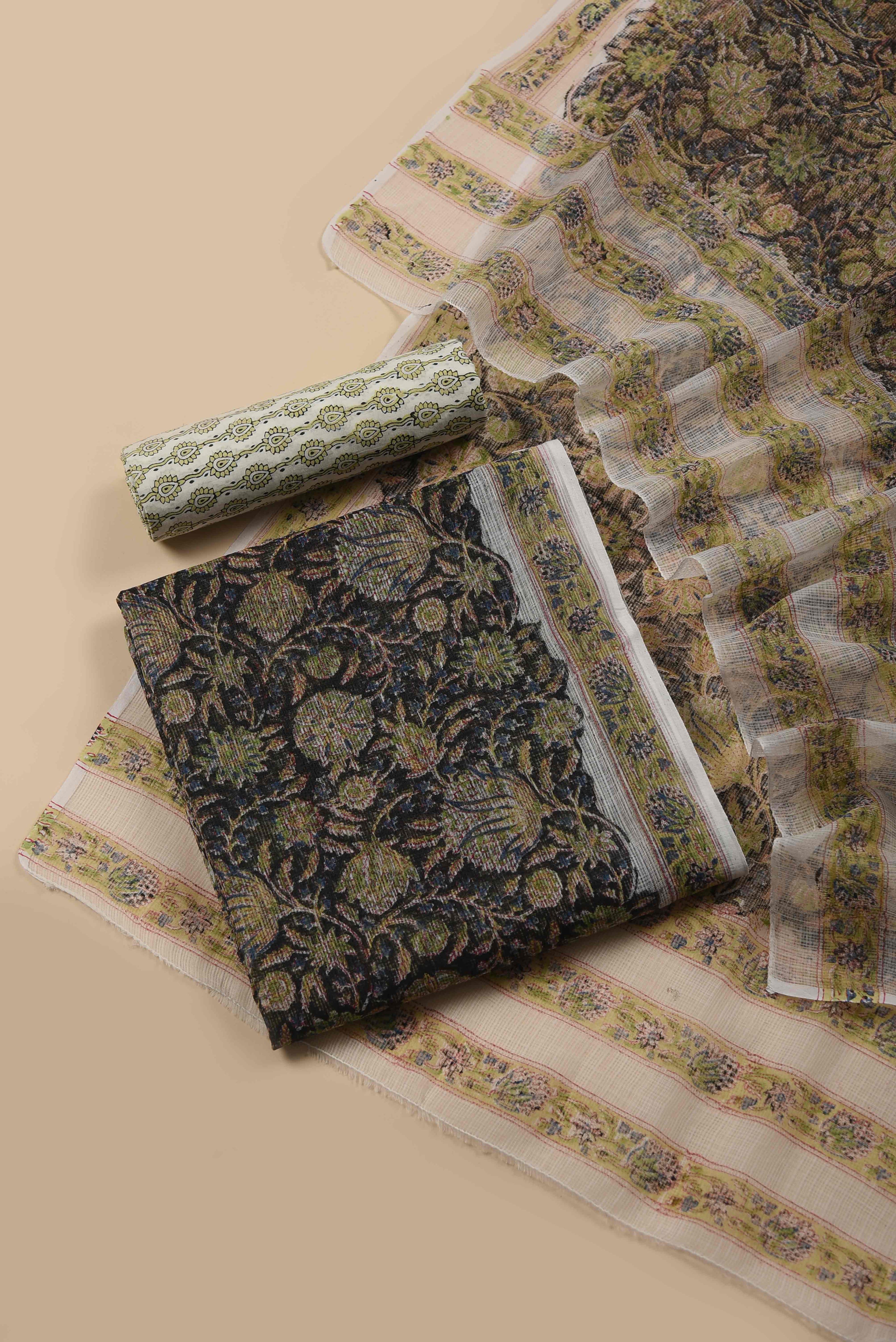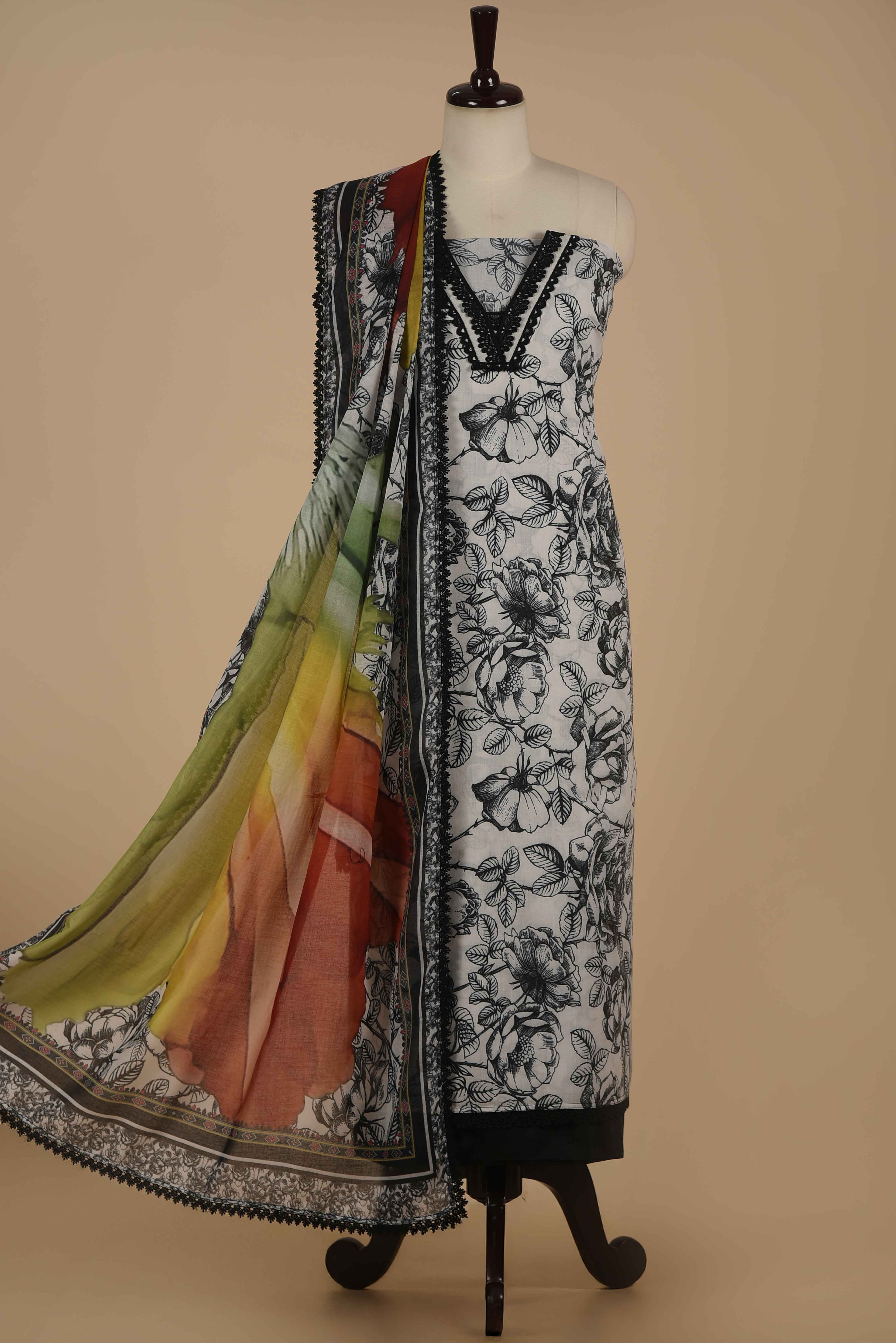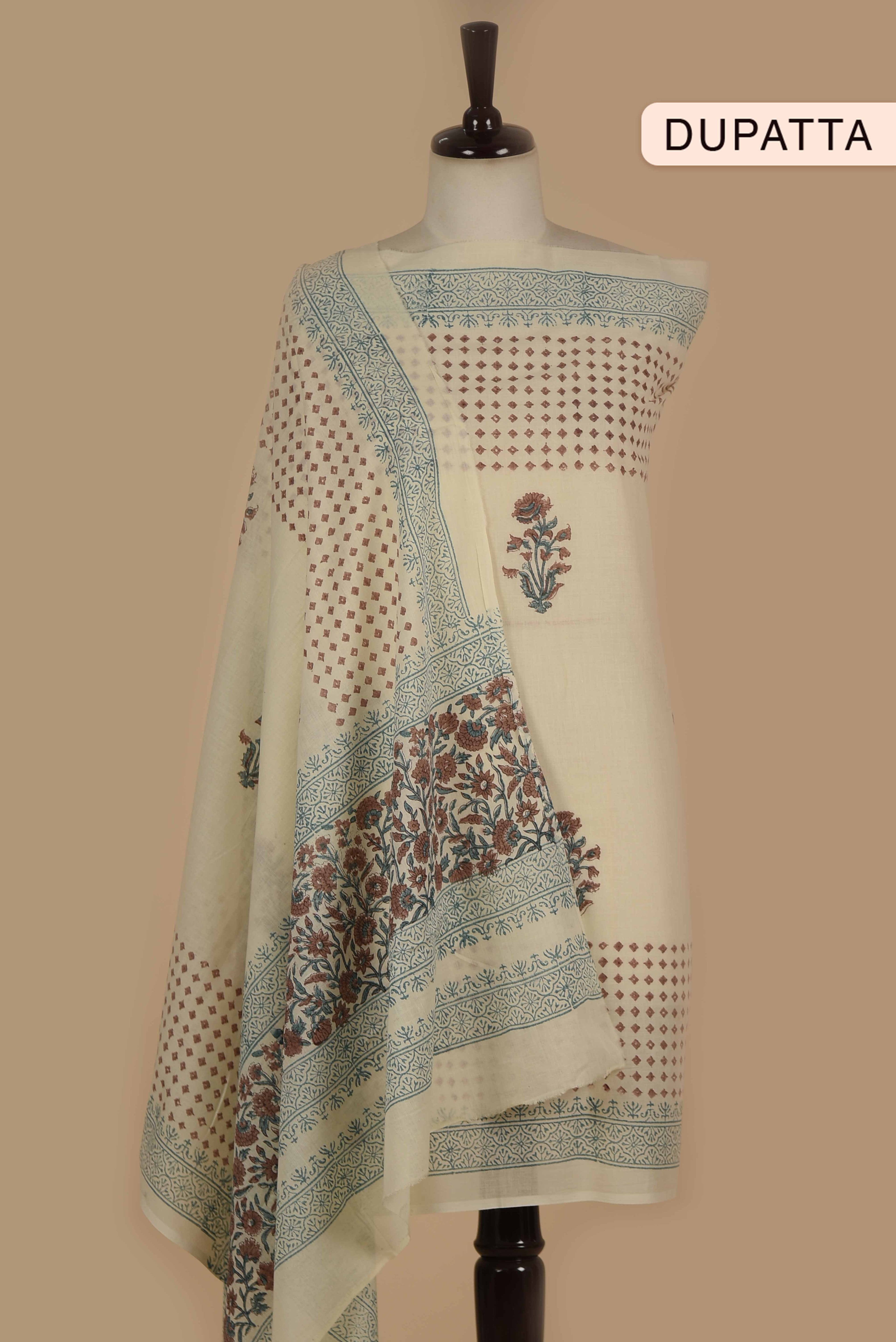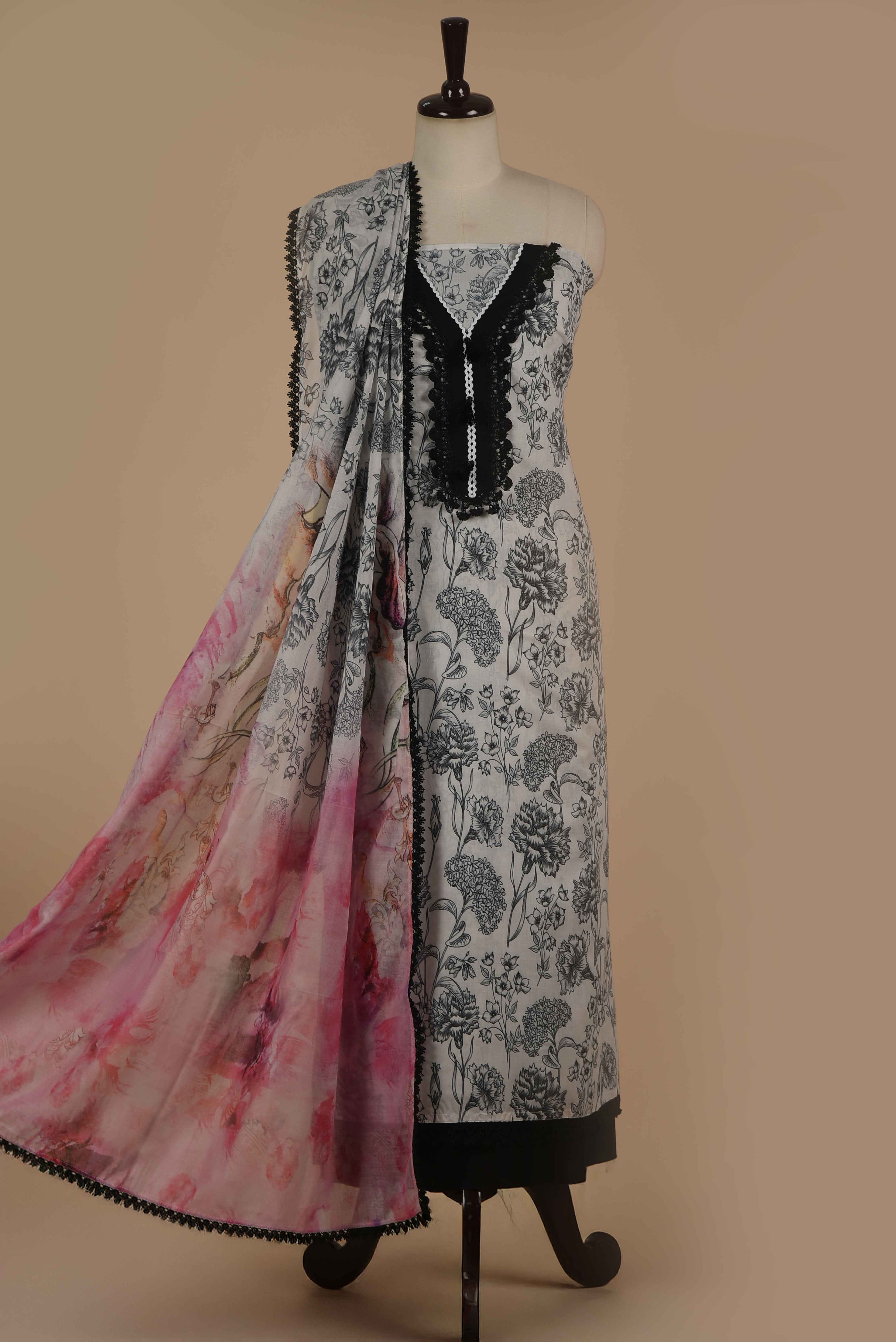 Red Mul chanderi Embroidered Unstitched Suit Fabric Set With Mul Chanderi Embroidered Dupatta
