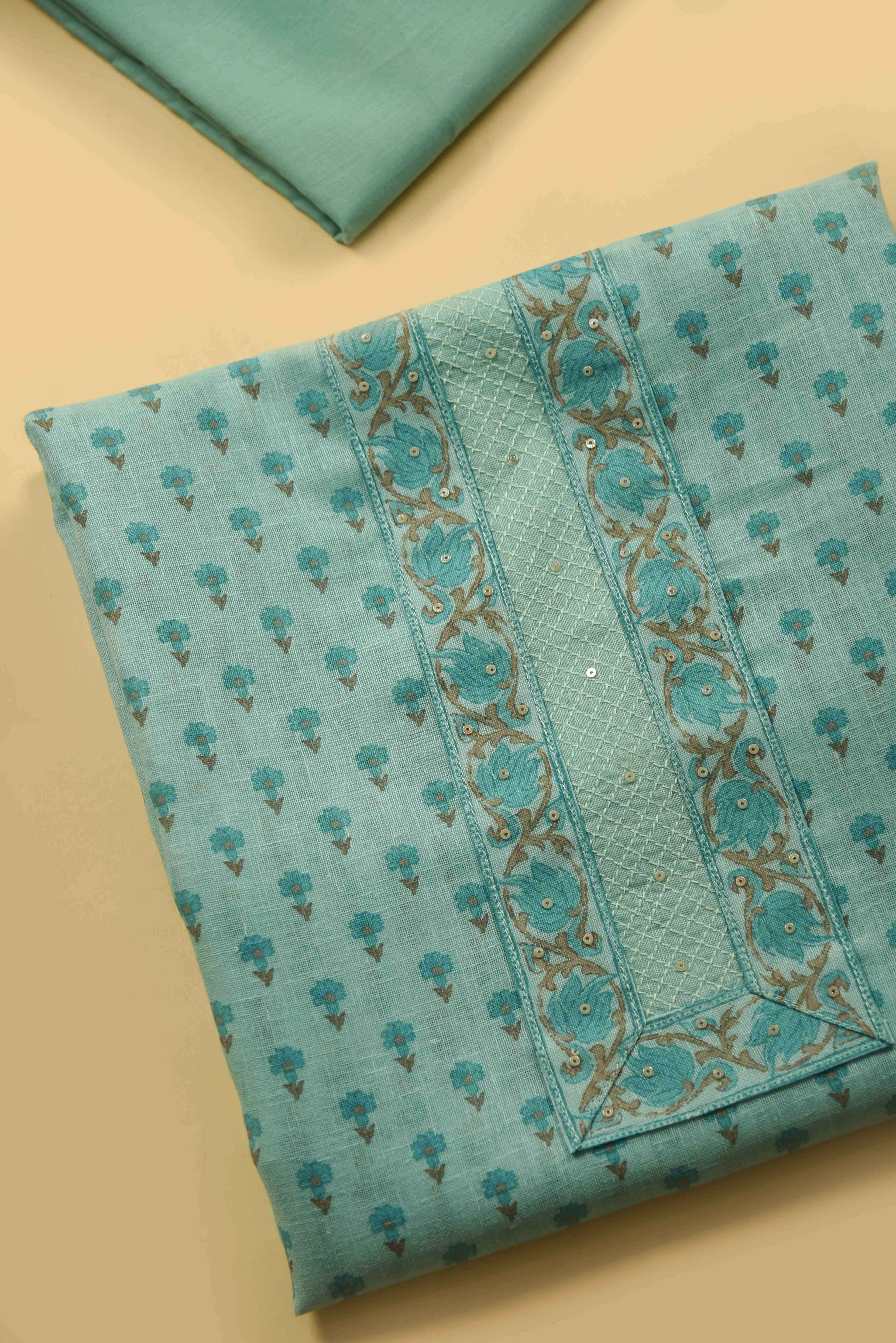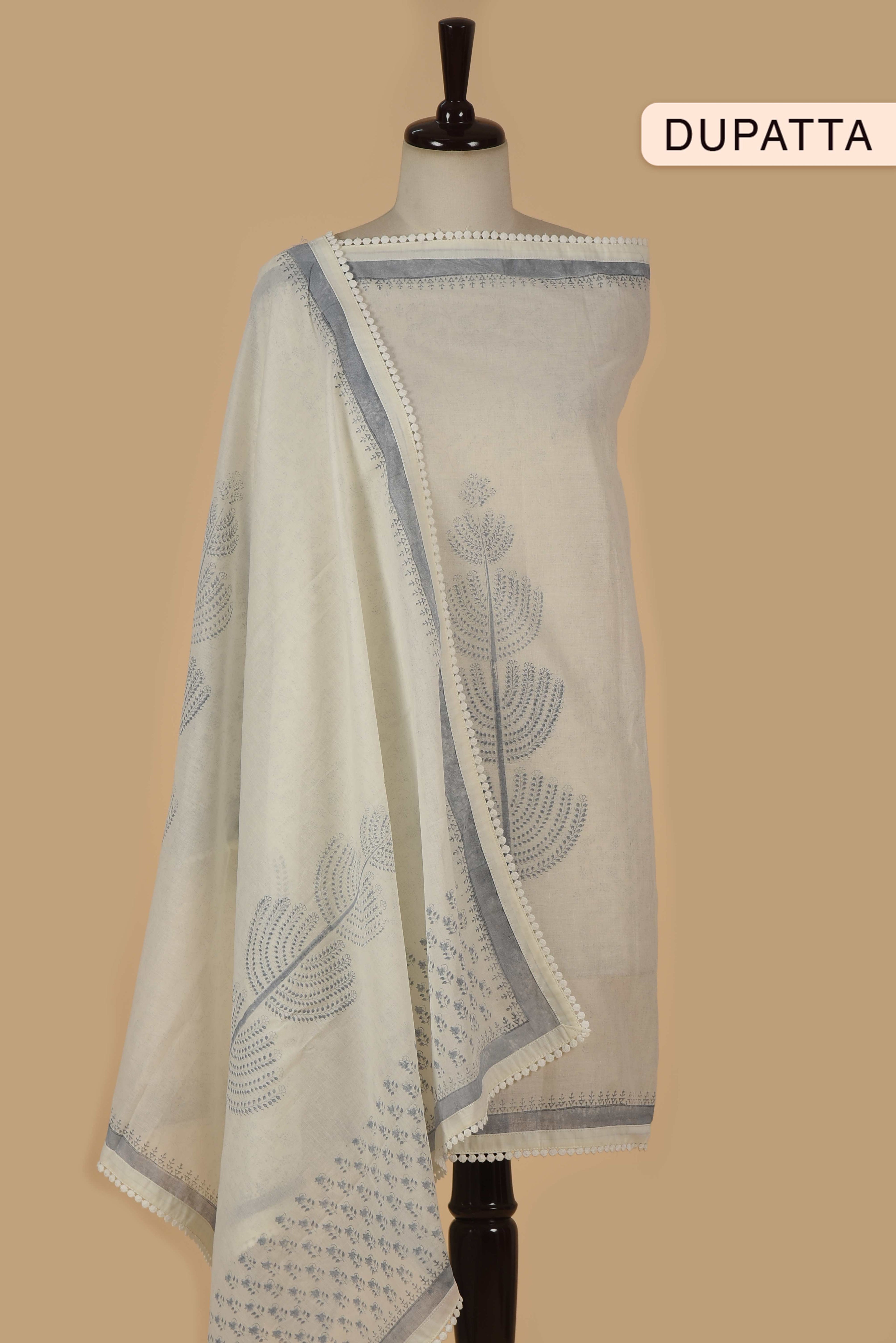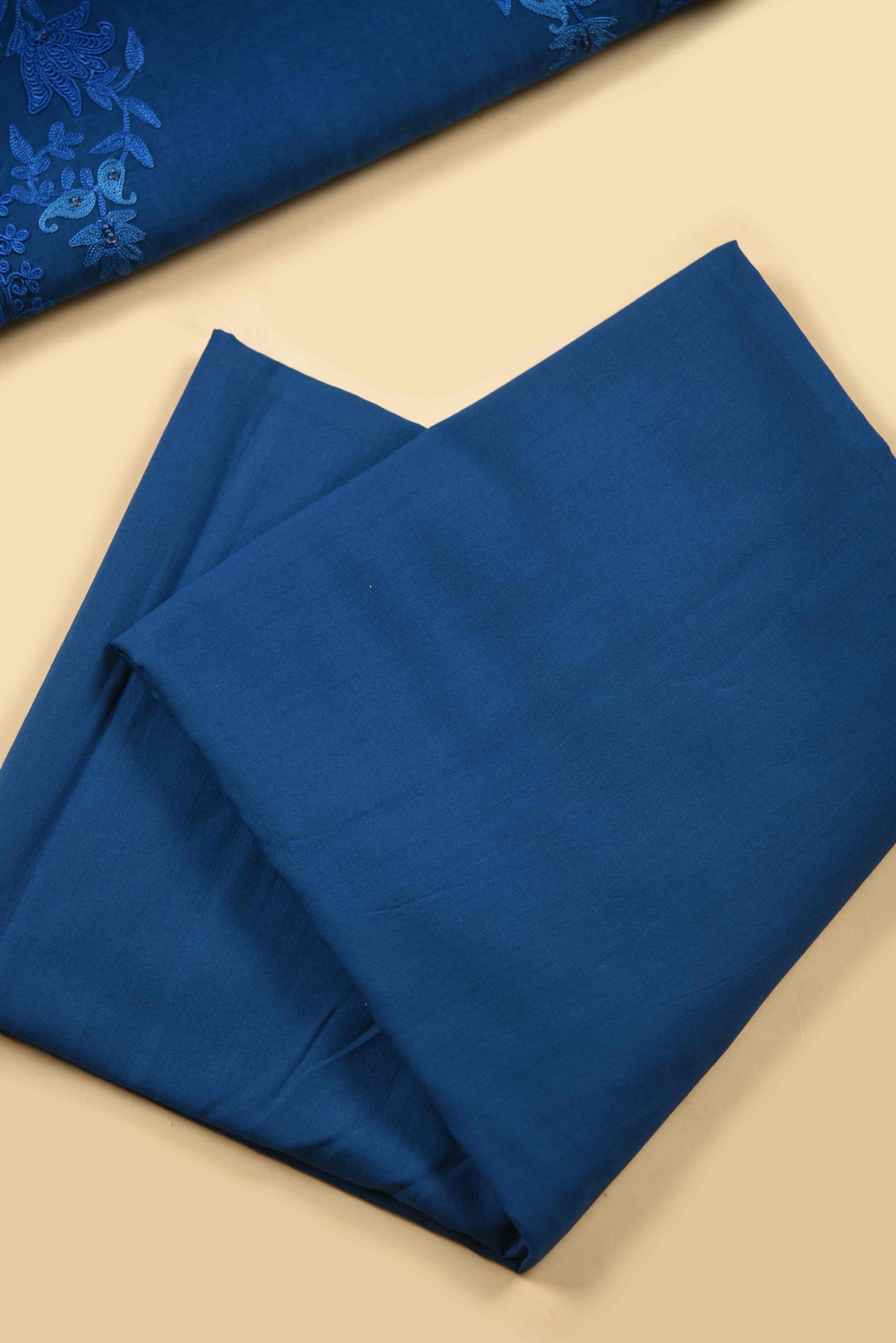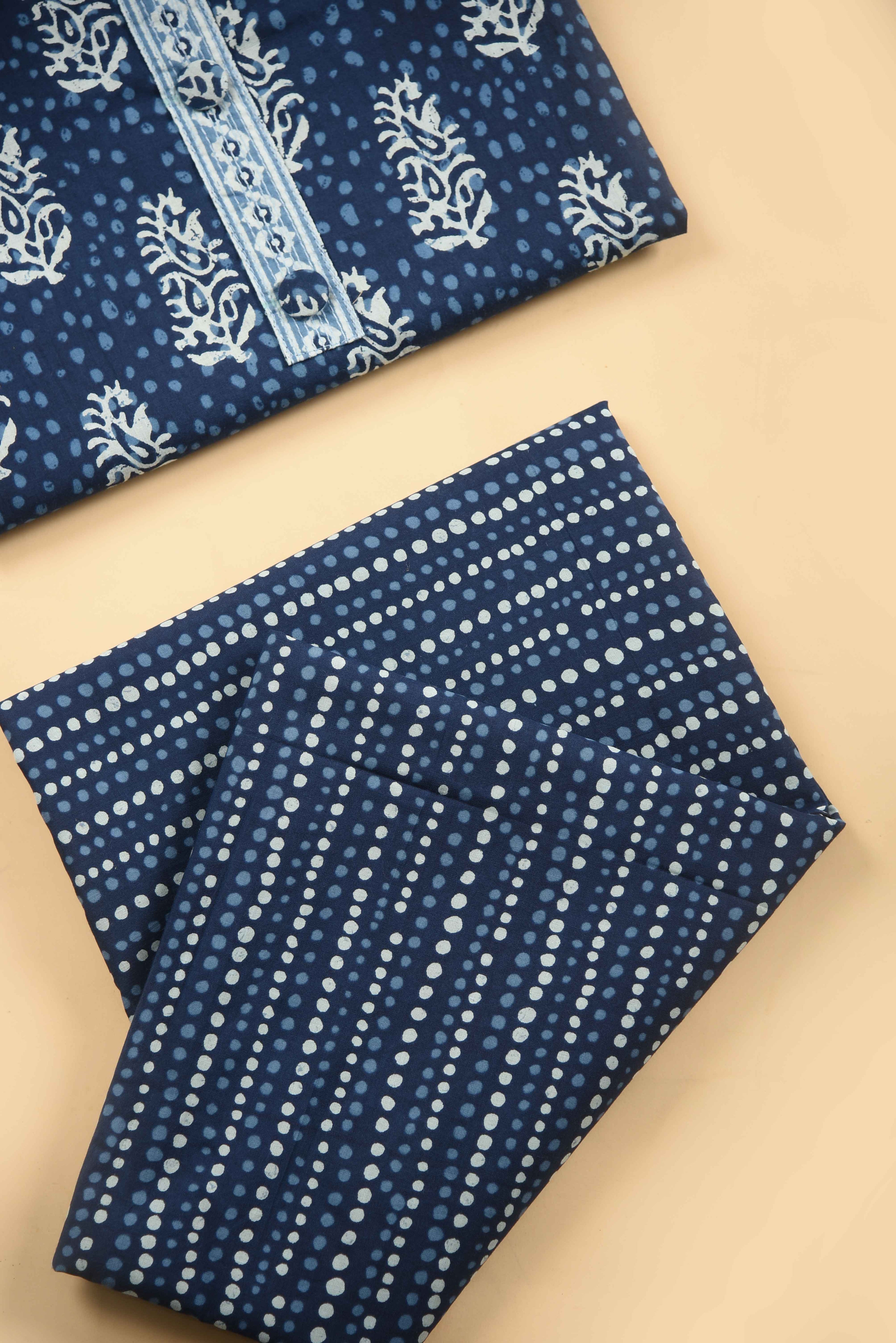 Blue Pure Cotton Printed With Lace Work Unstitched Suit Fabric Set With Cotton Printed Dupatta