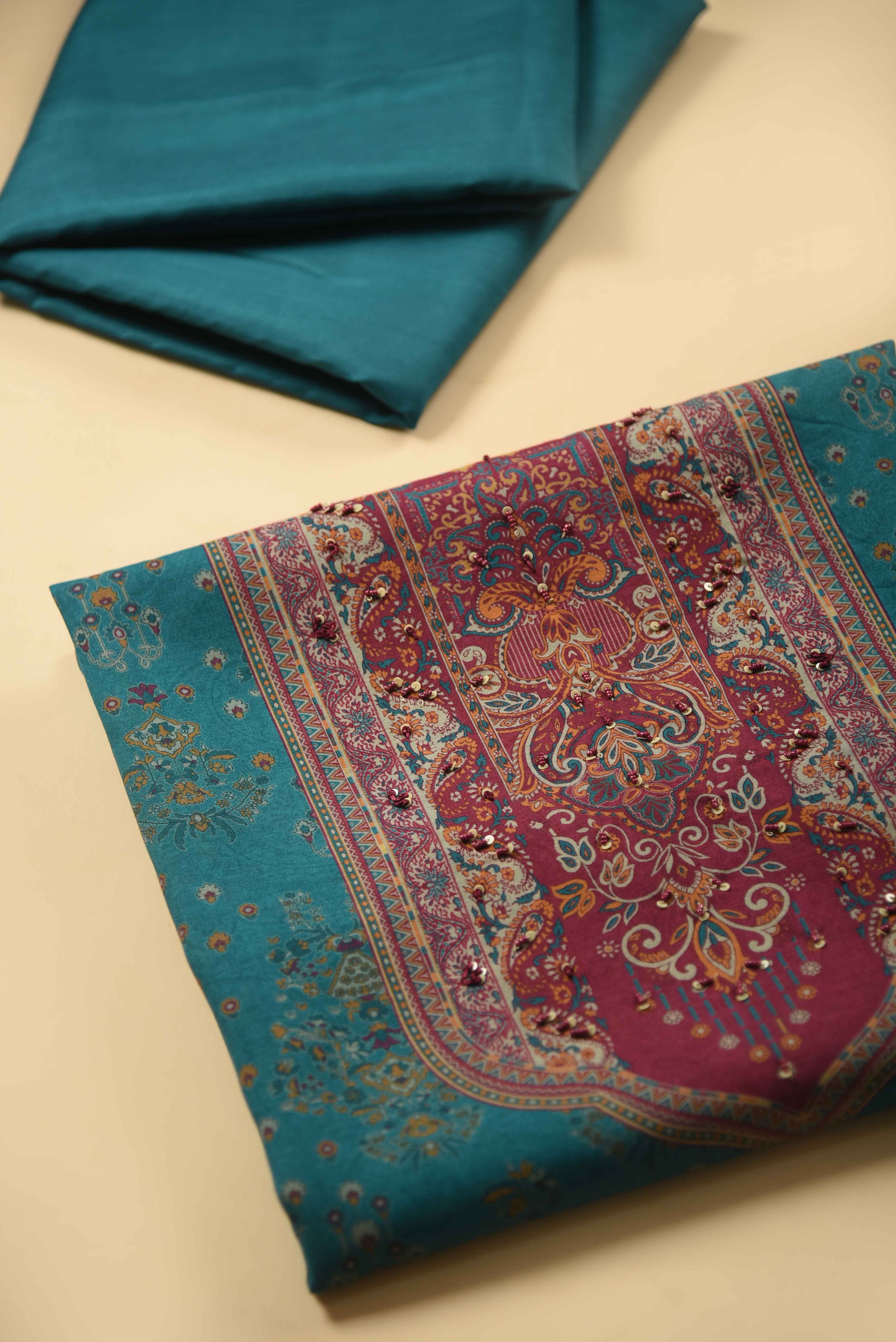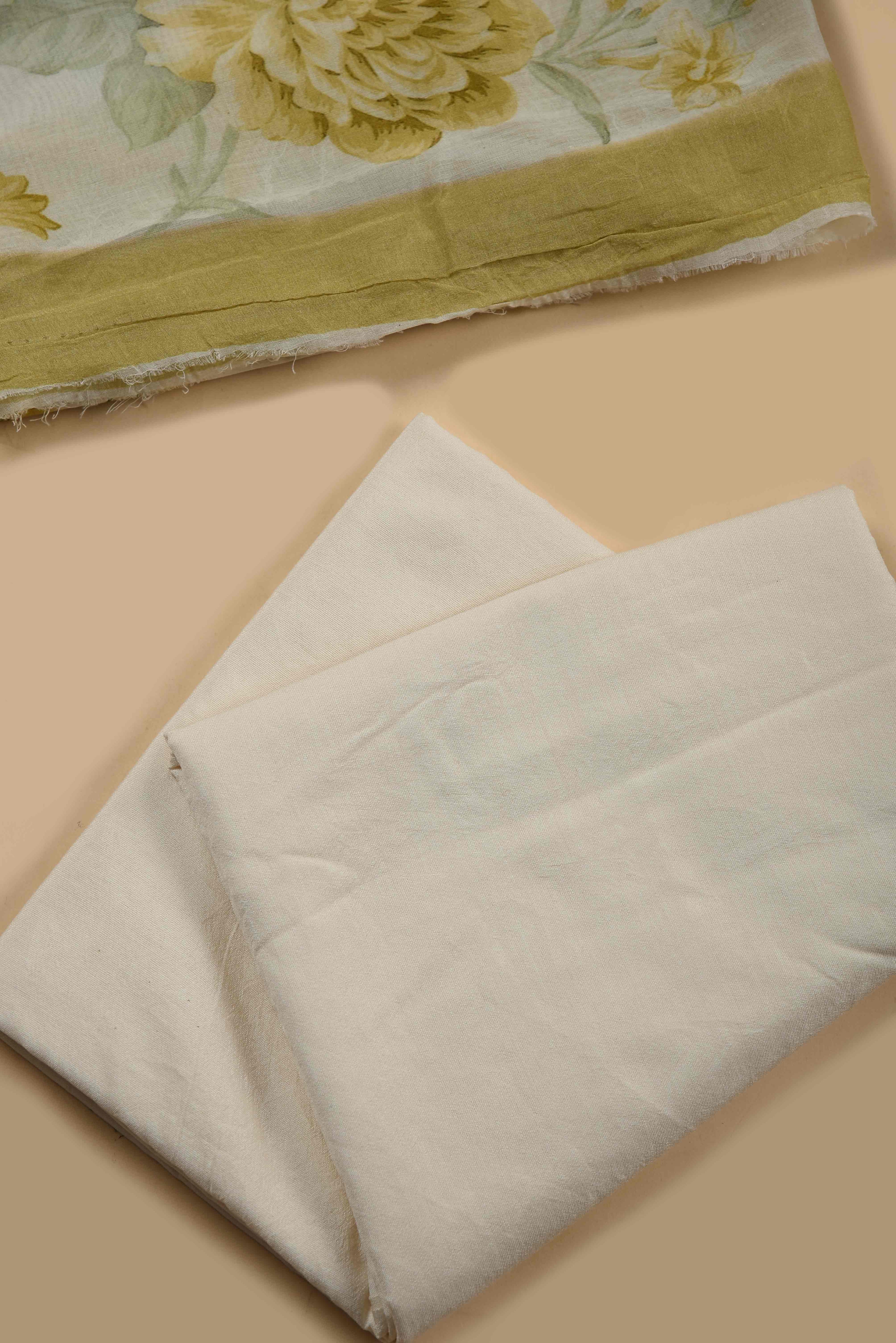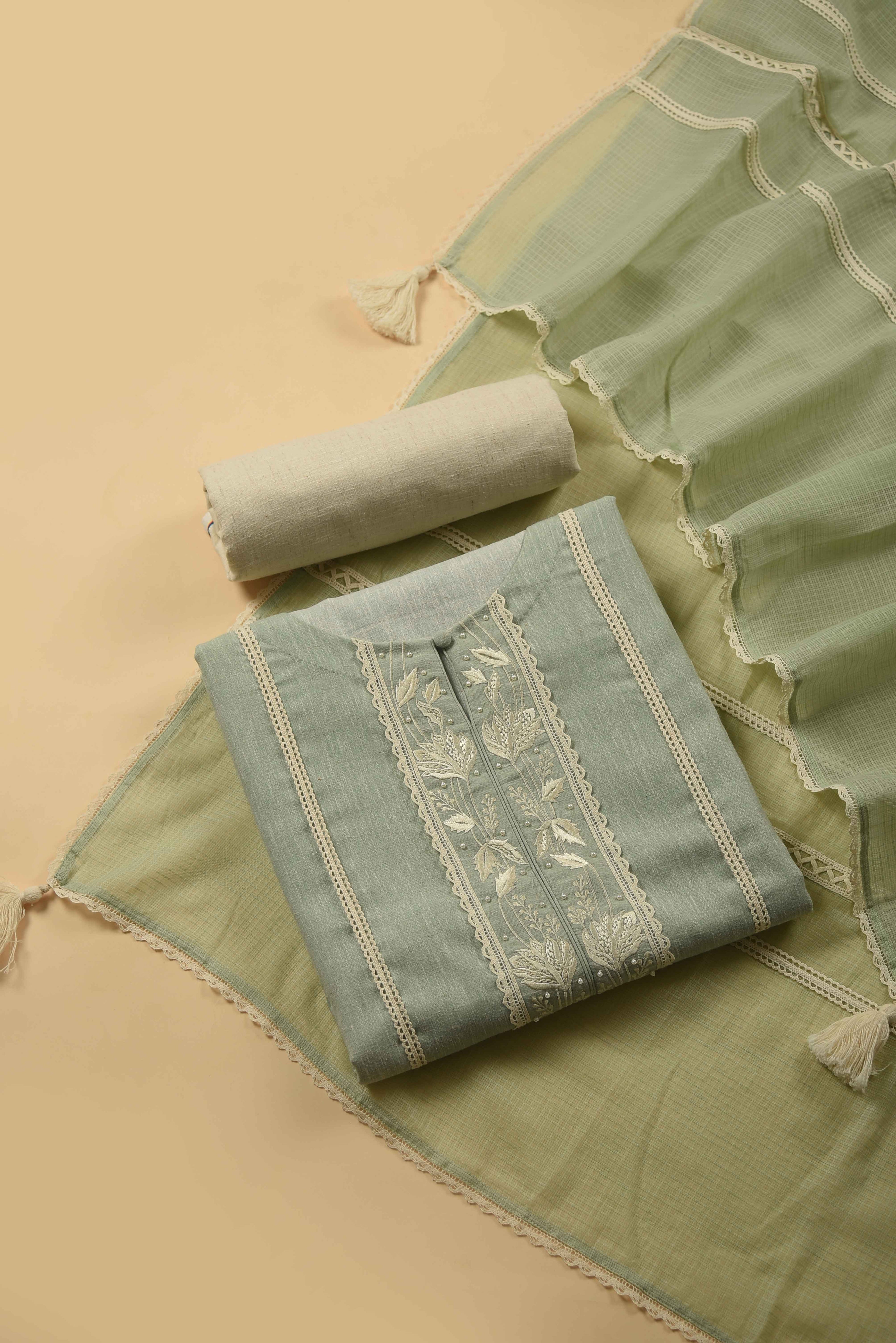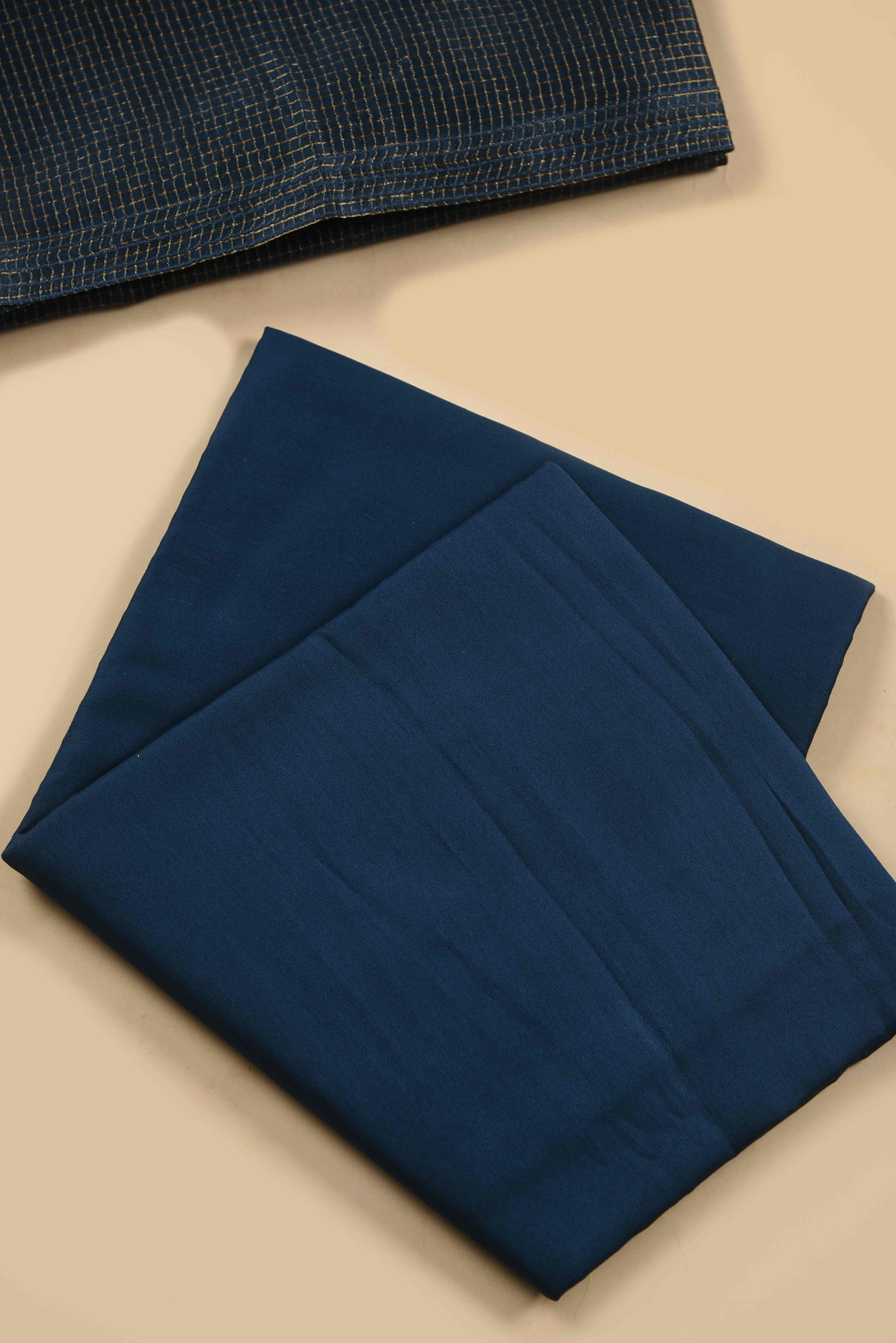 Blue Pure Cotton Printed With Lace Work Unstitched Suit Fabric Set With Cotton Printed Dupatta