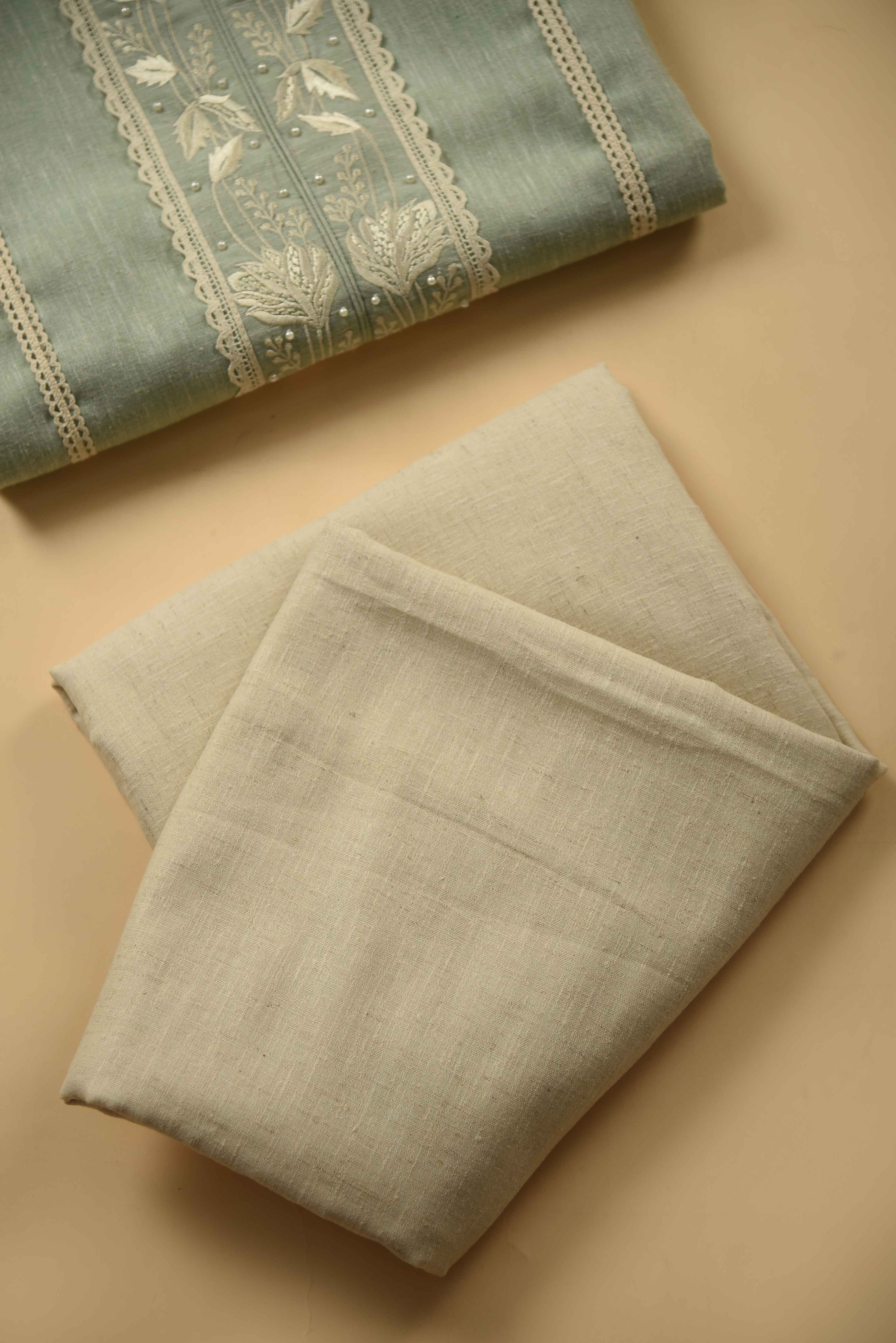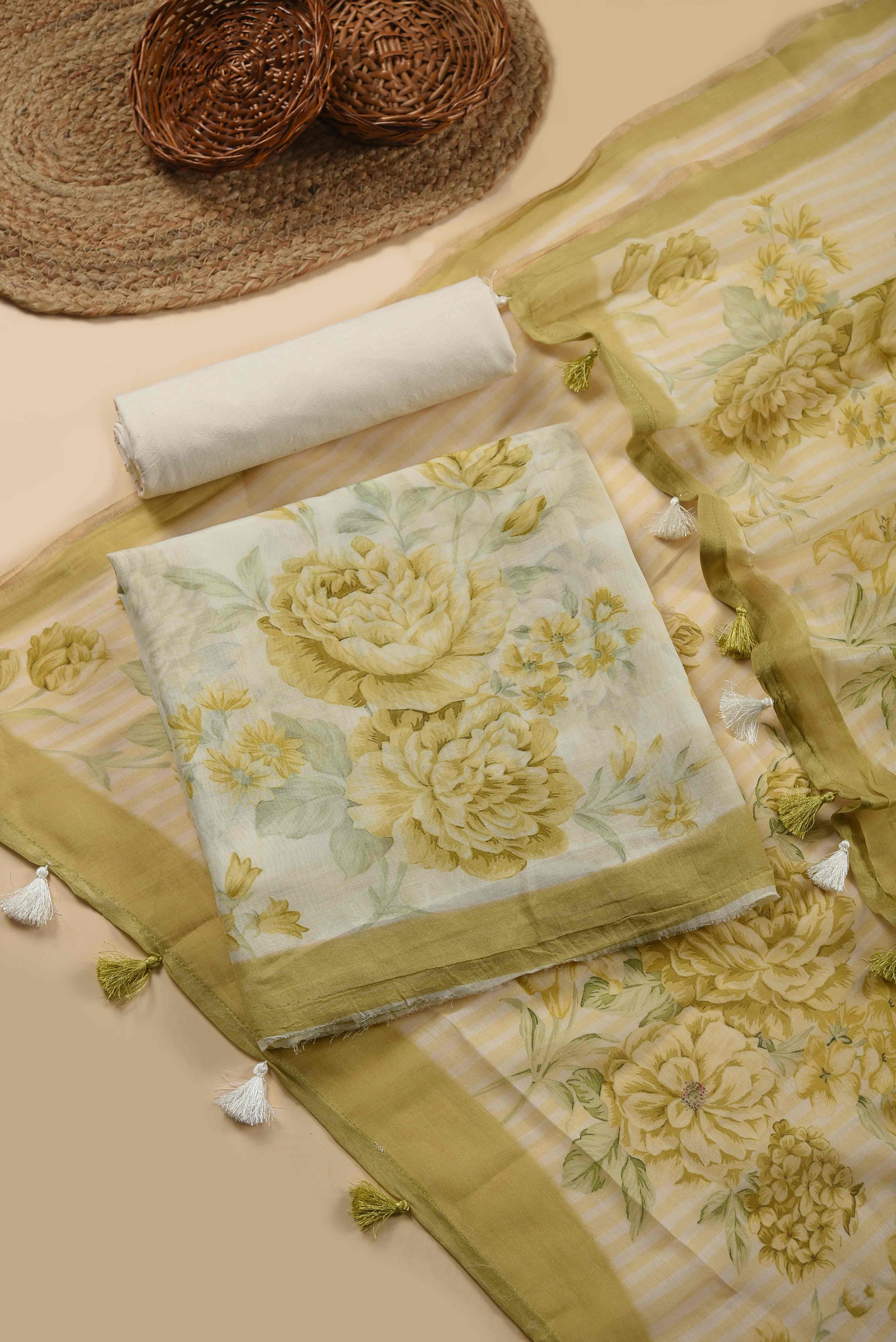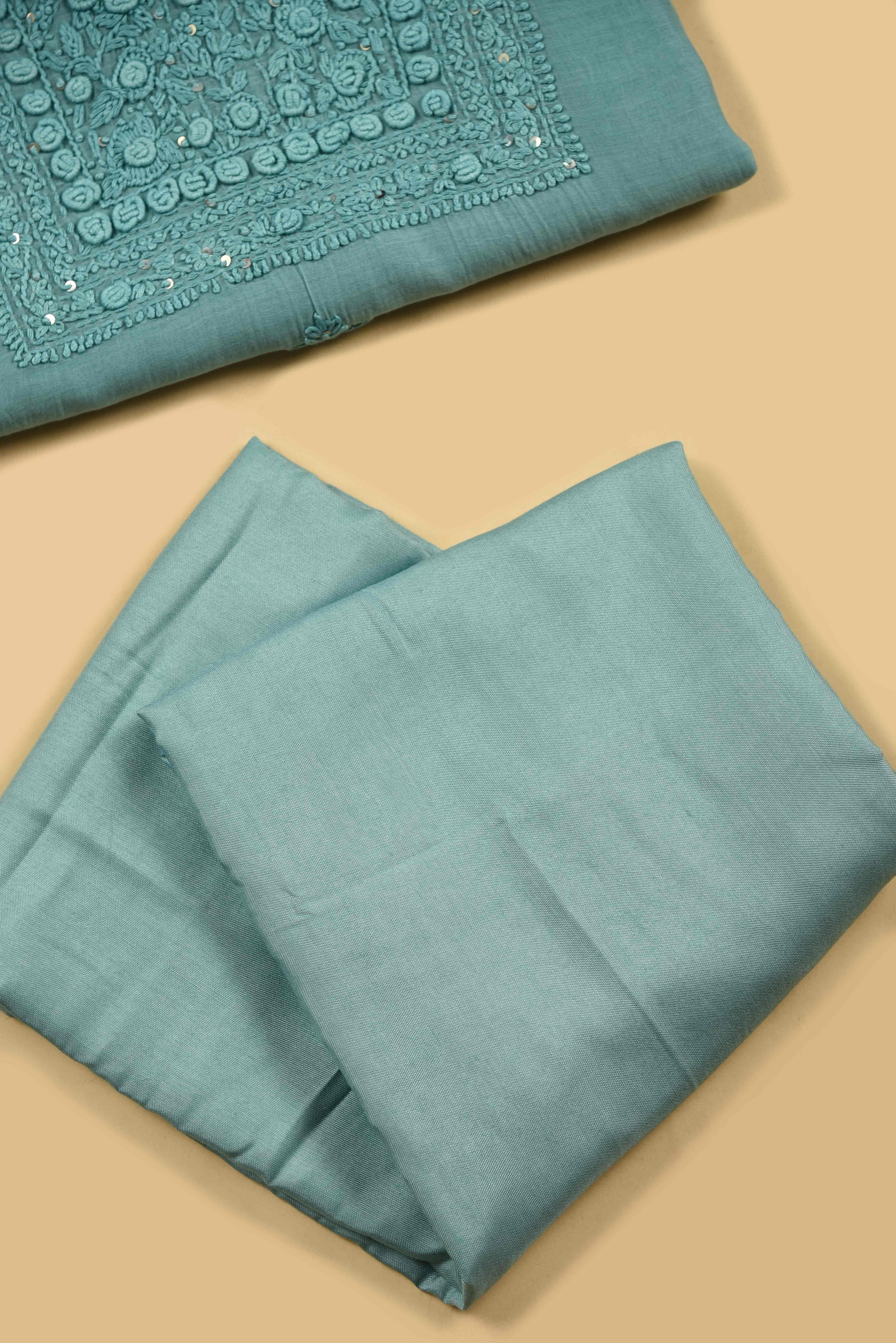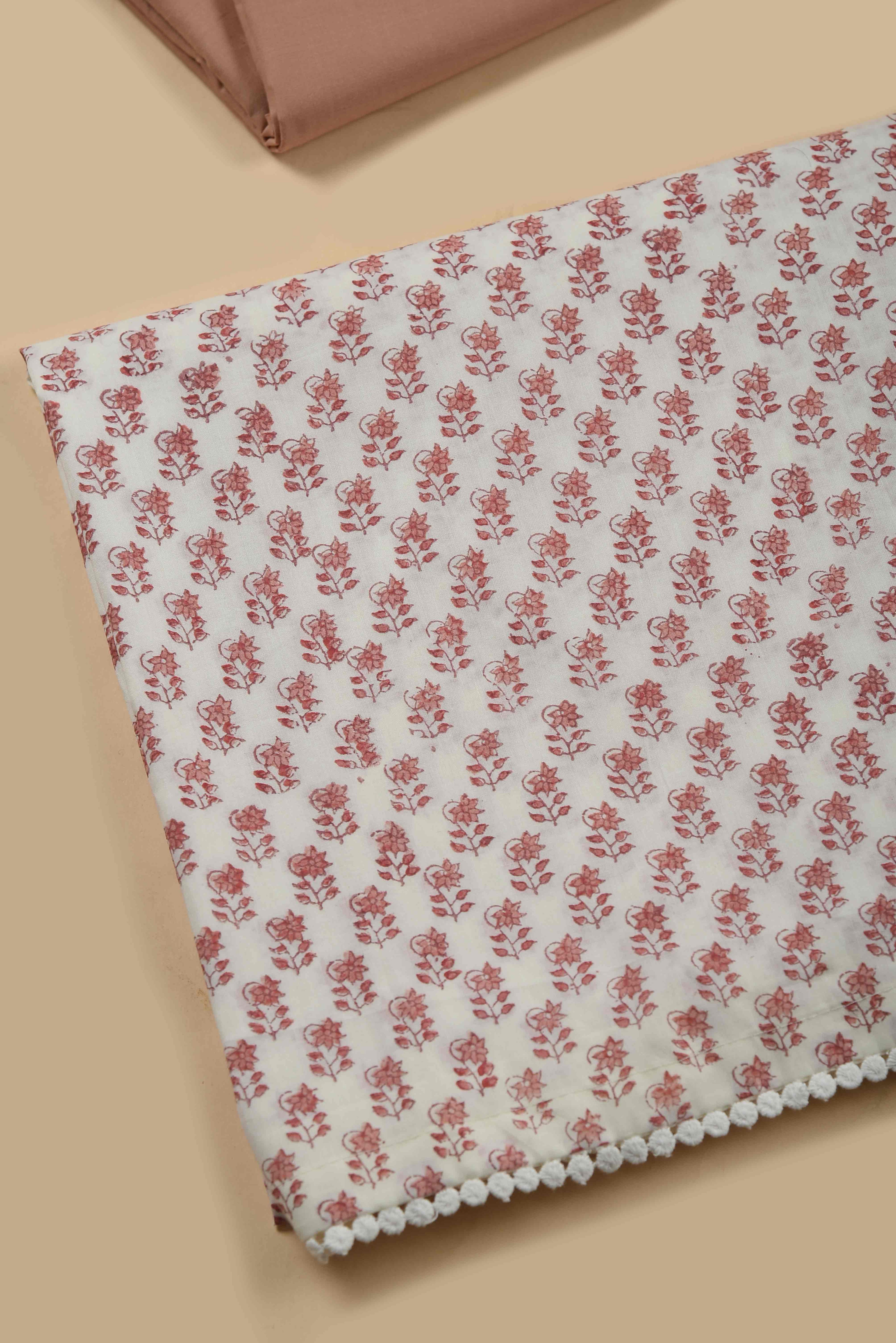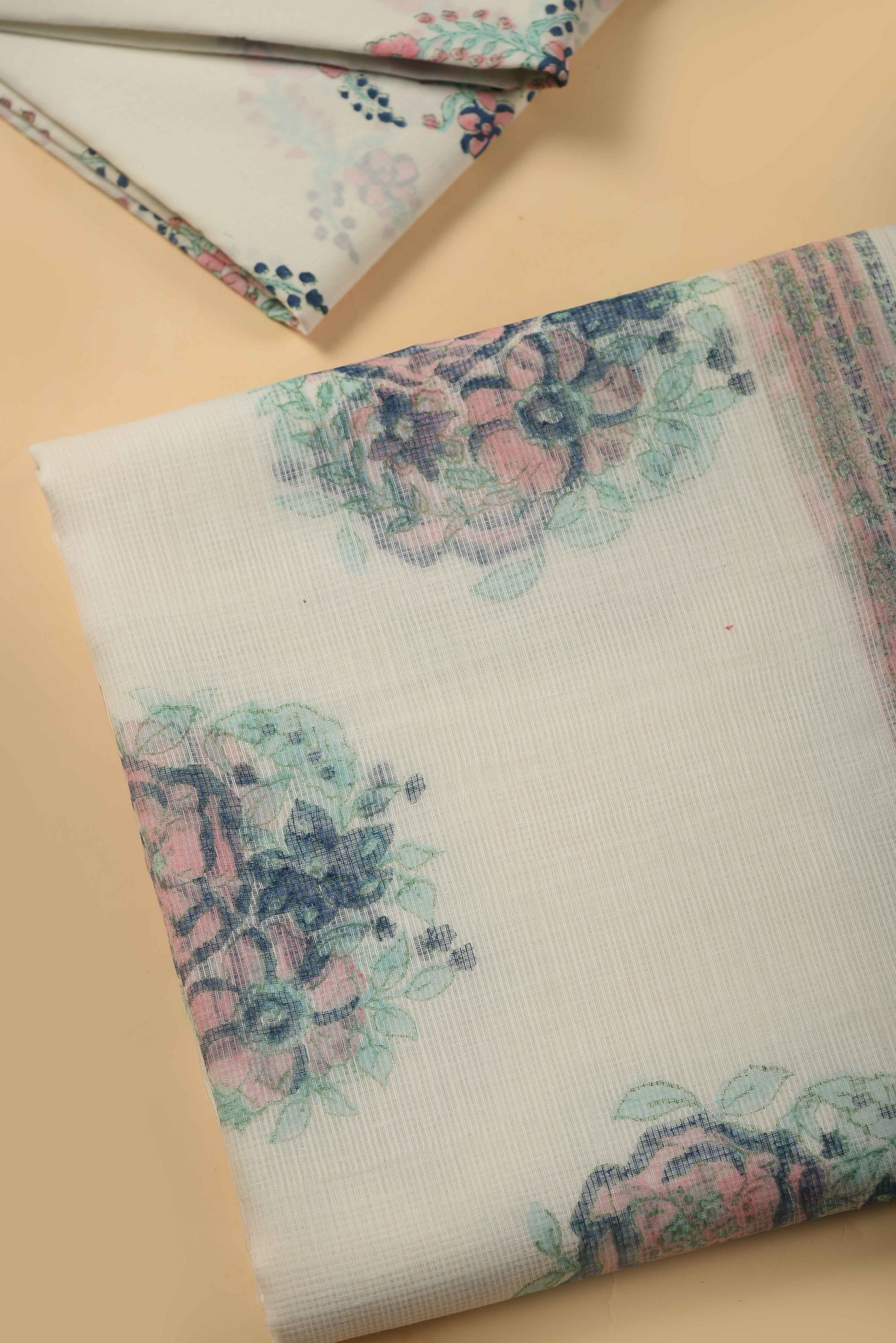 Blue Pure Cotton Printed With Lace Work Unstitched Suit Fabric Set With Cotton Printed Dupatta