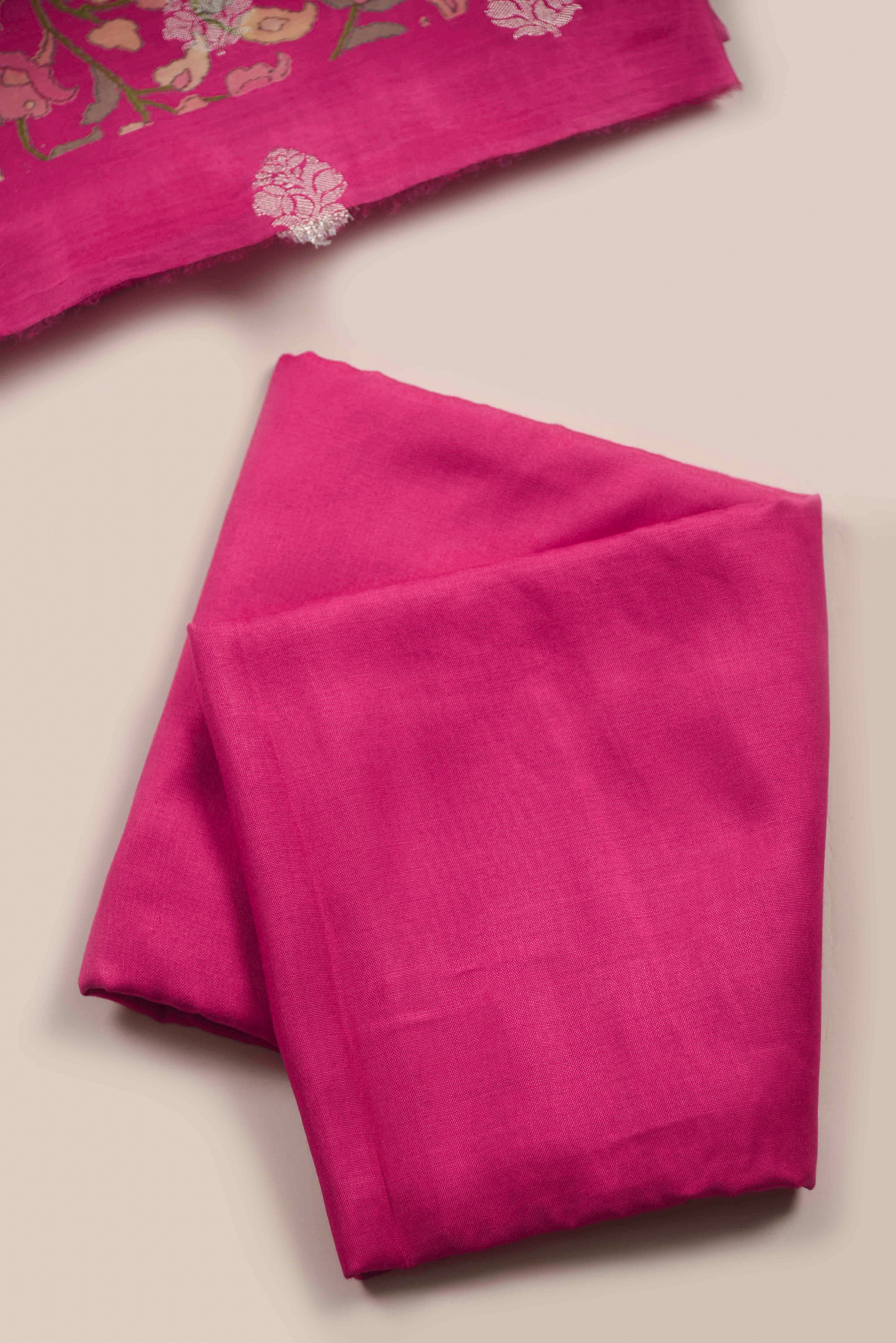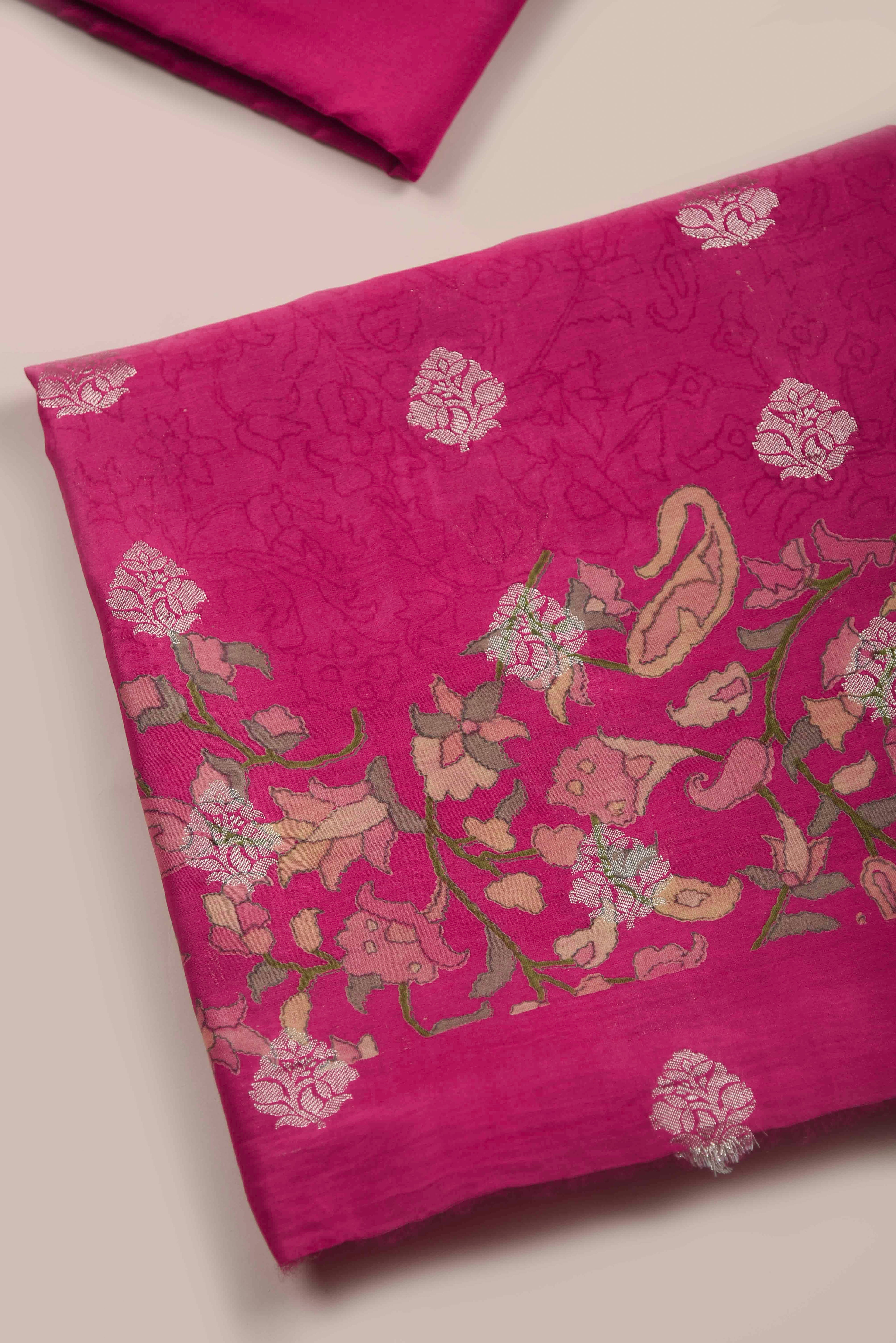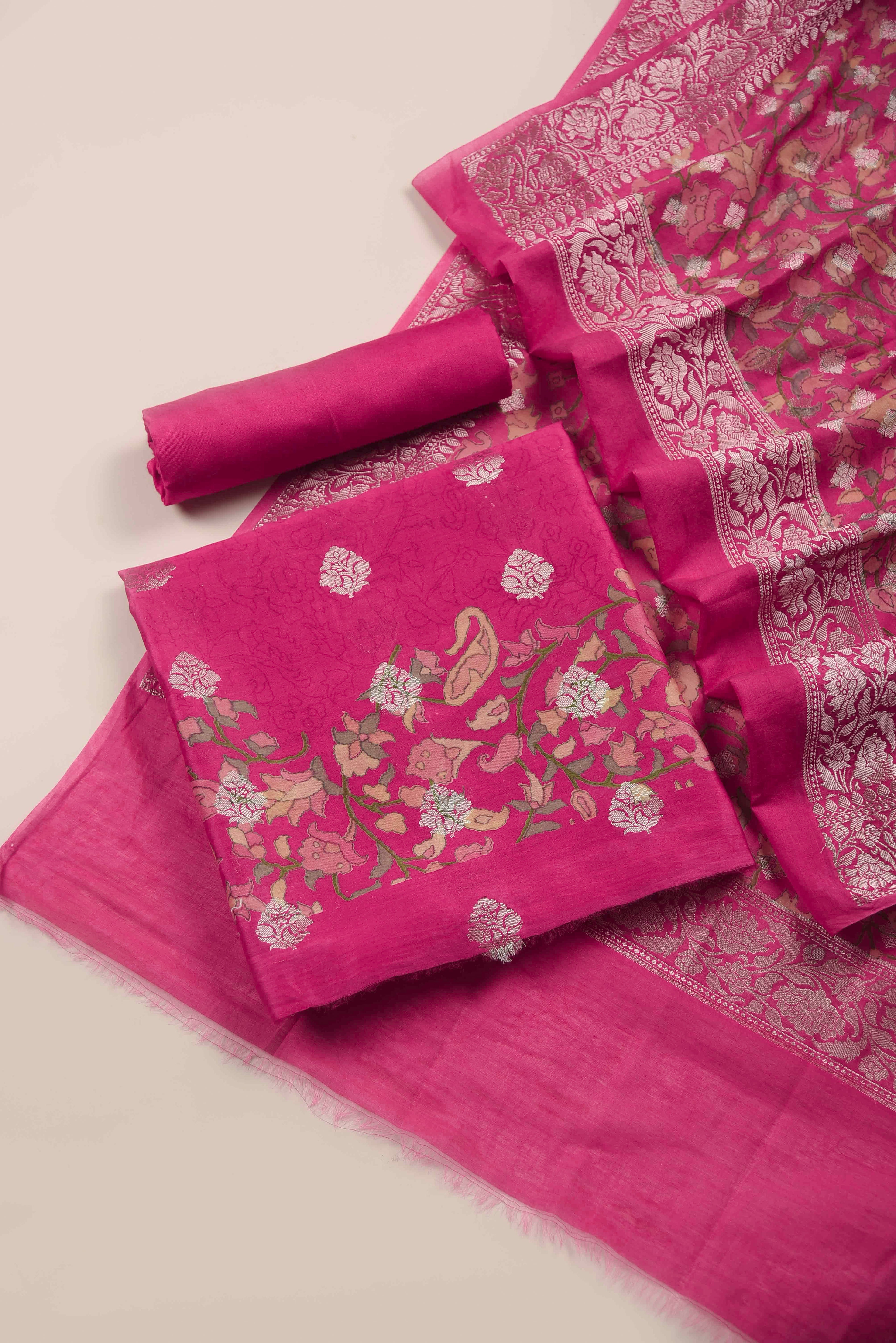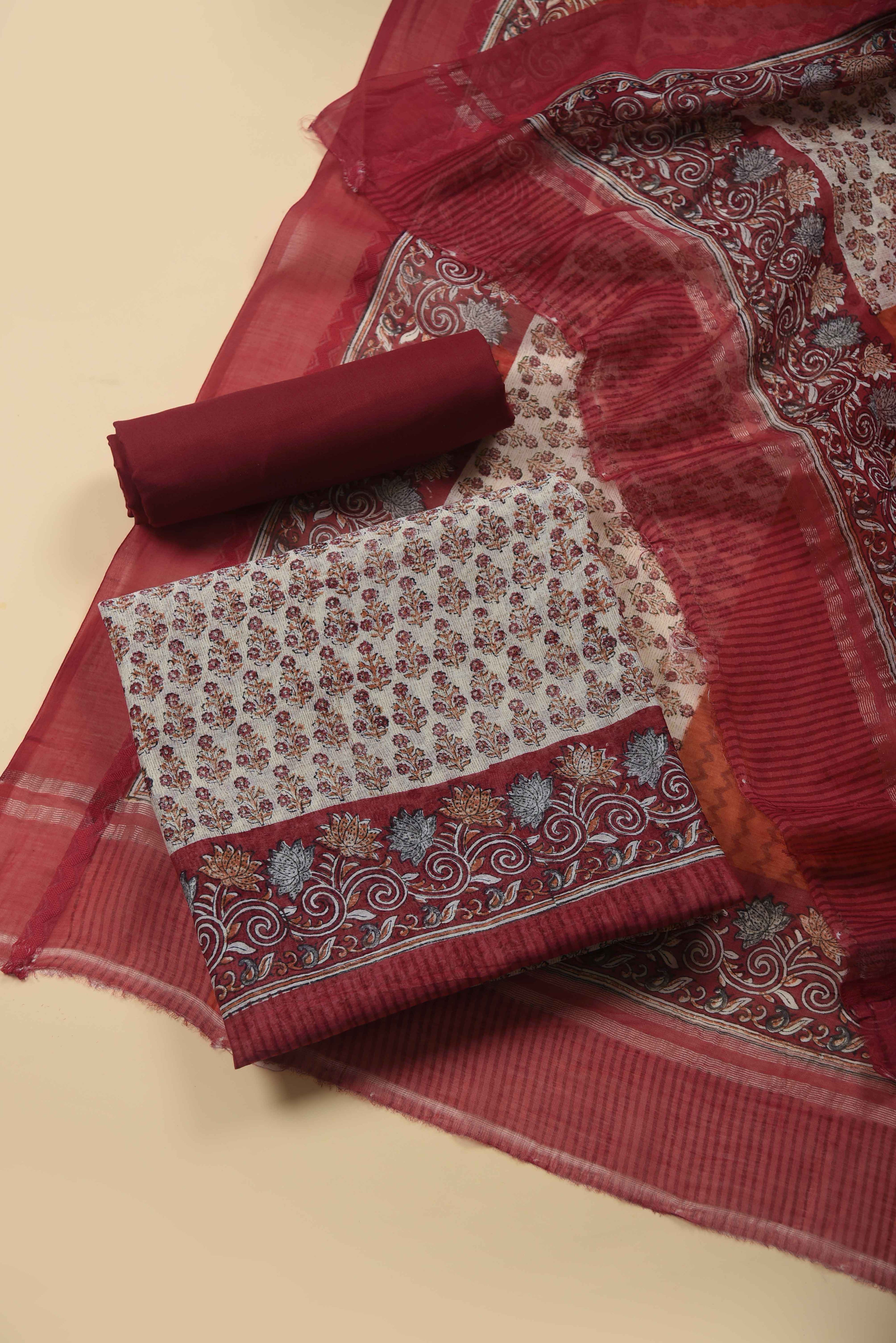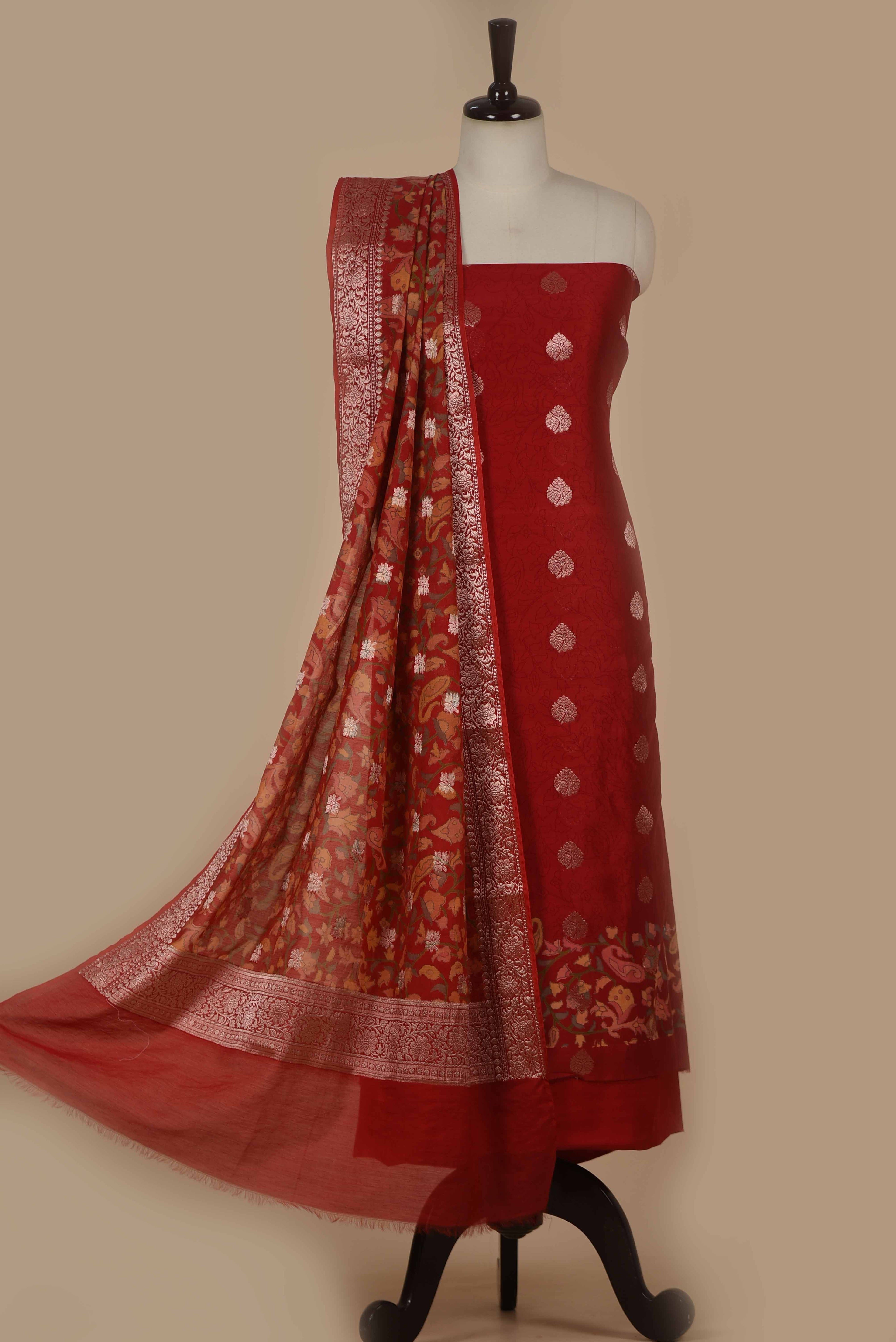 Maroon Banarasi Chanderi Woven Unstitched Suit Fabric Set With Banarasi Chanderi Woven Dupatta