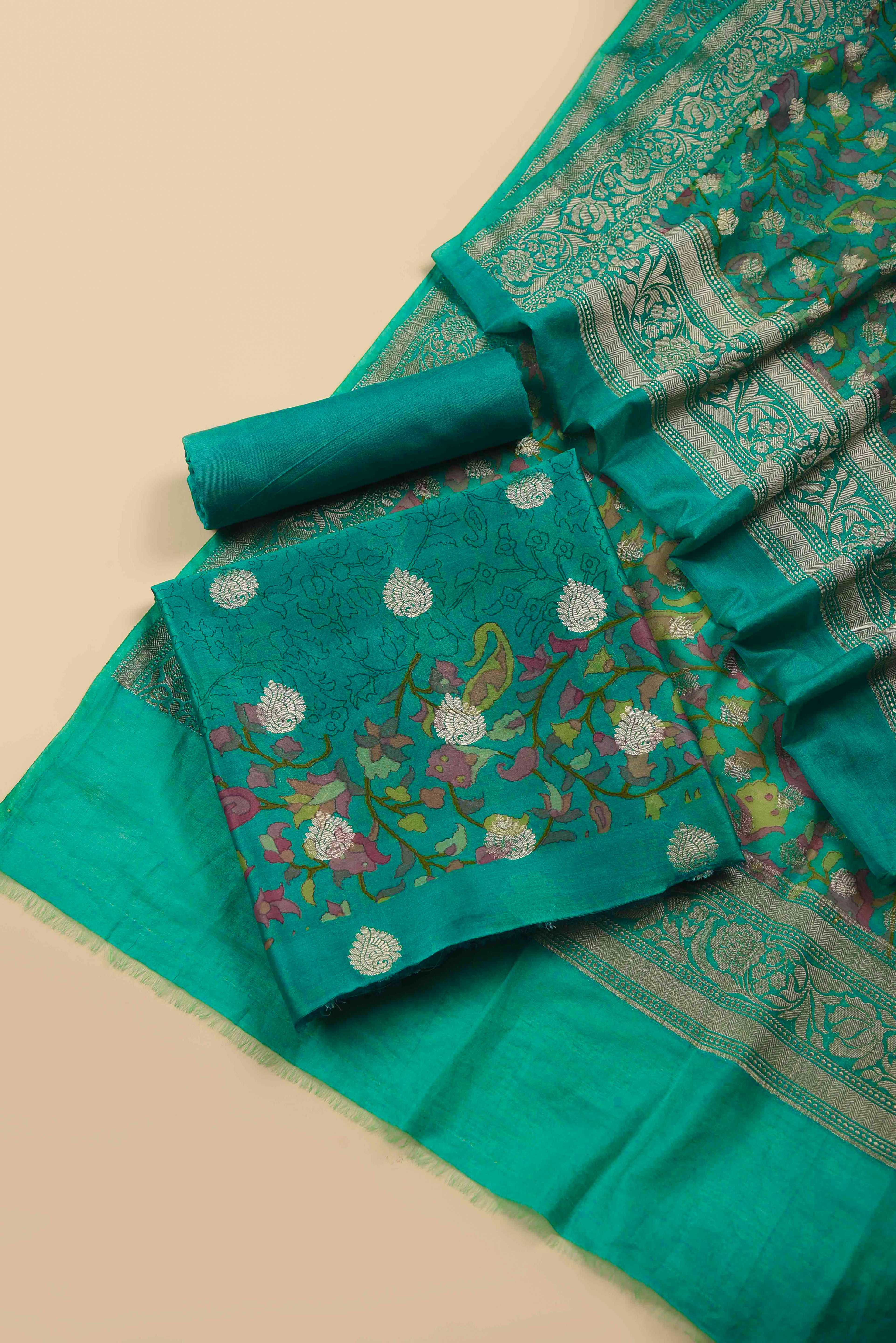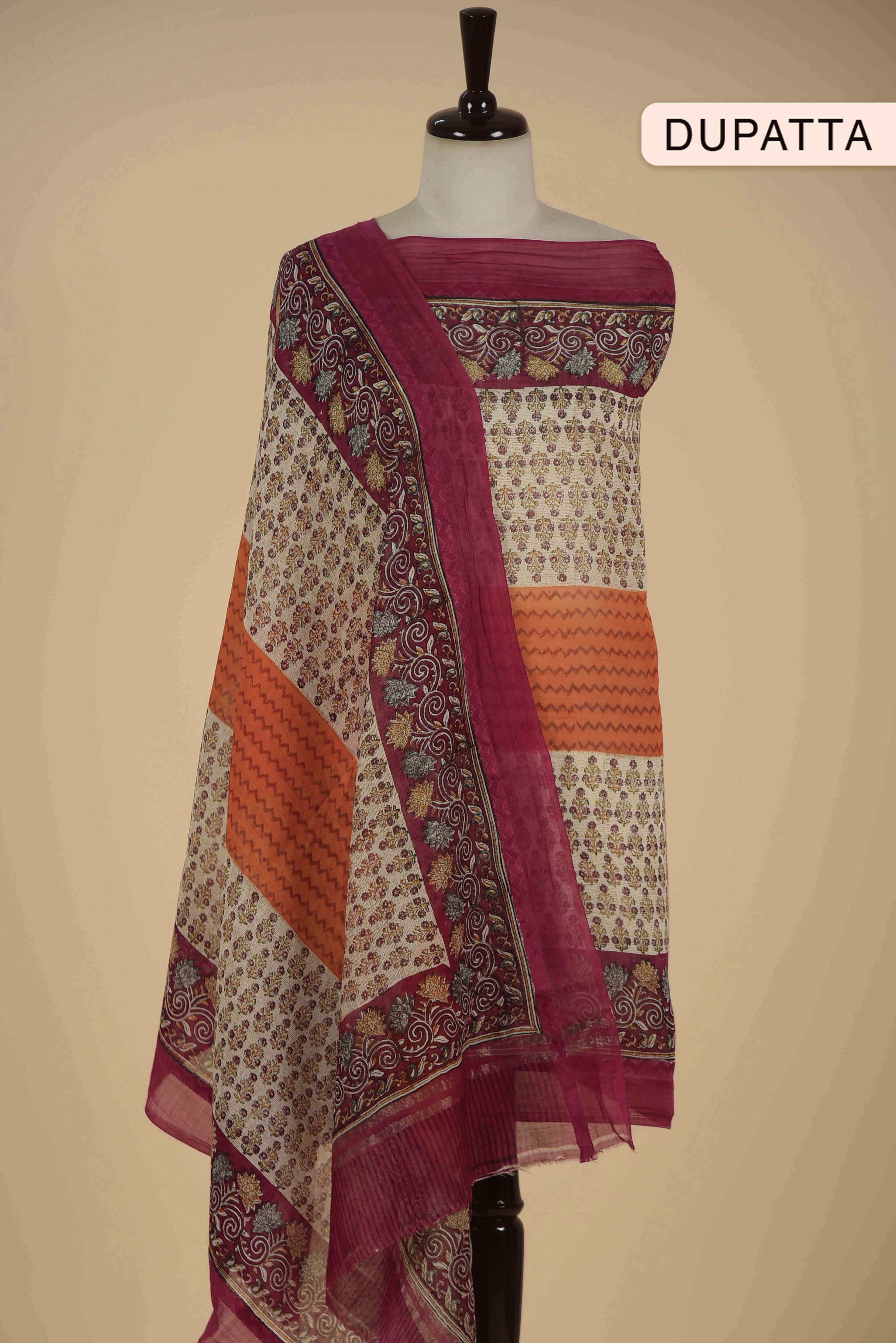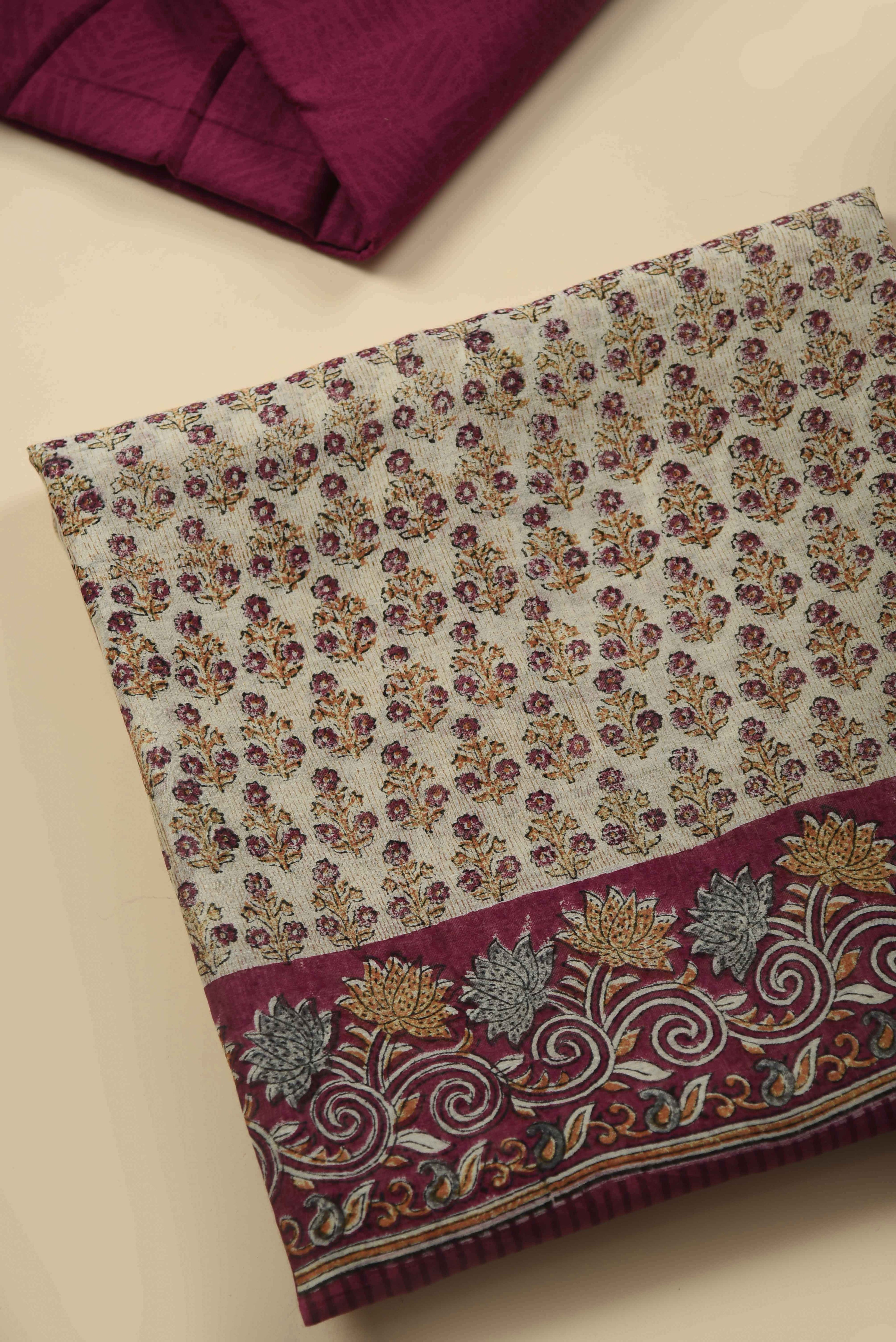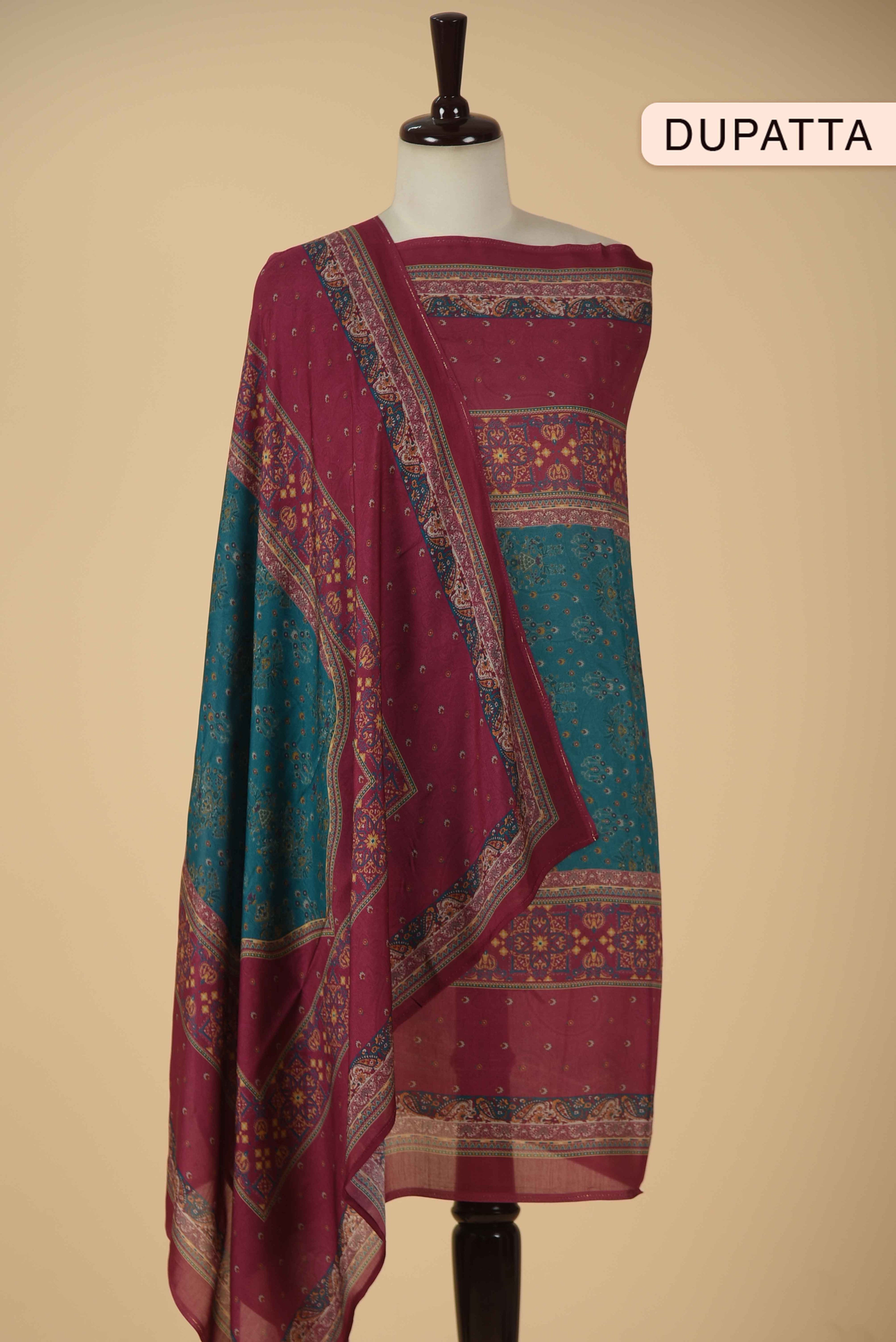 Maroon Banarasi Chanderi Woven Unstitched Suit Fabric Set With Banarasi Chanderi Woven Dupatta