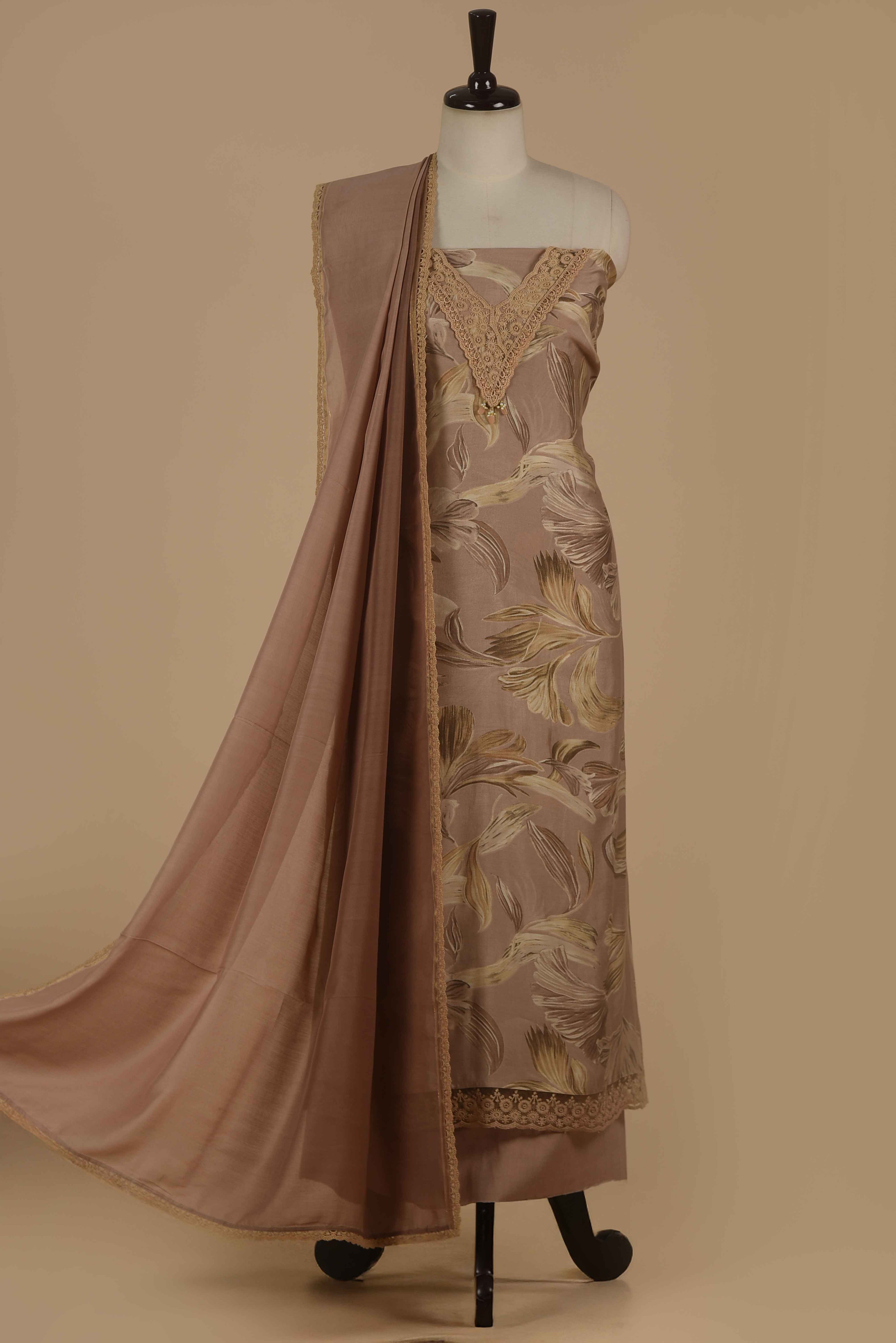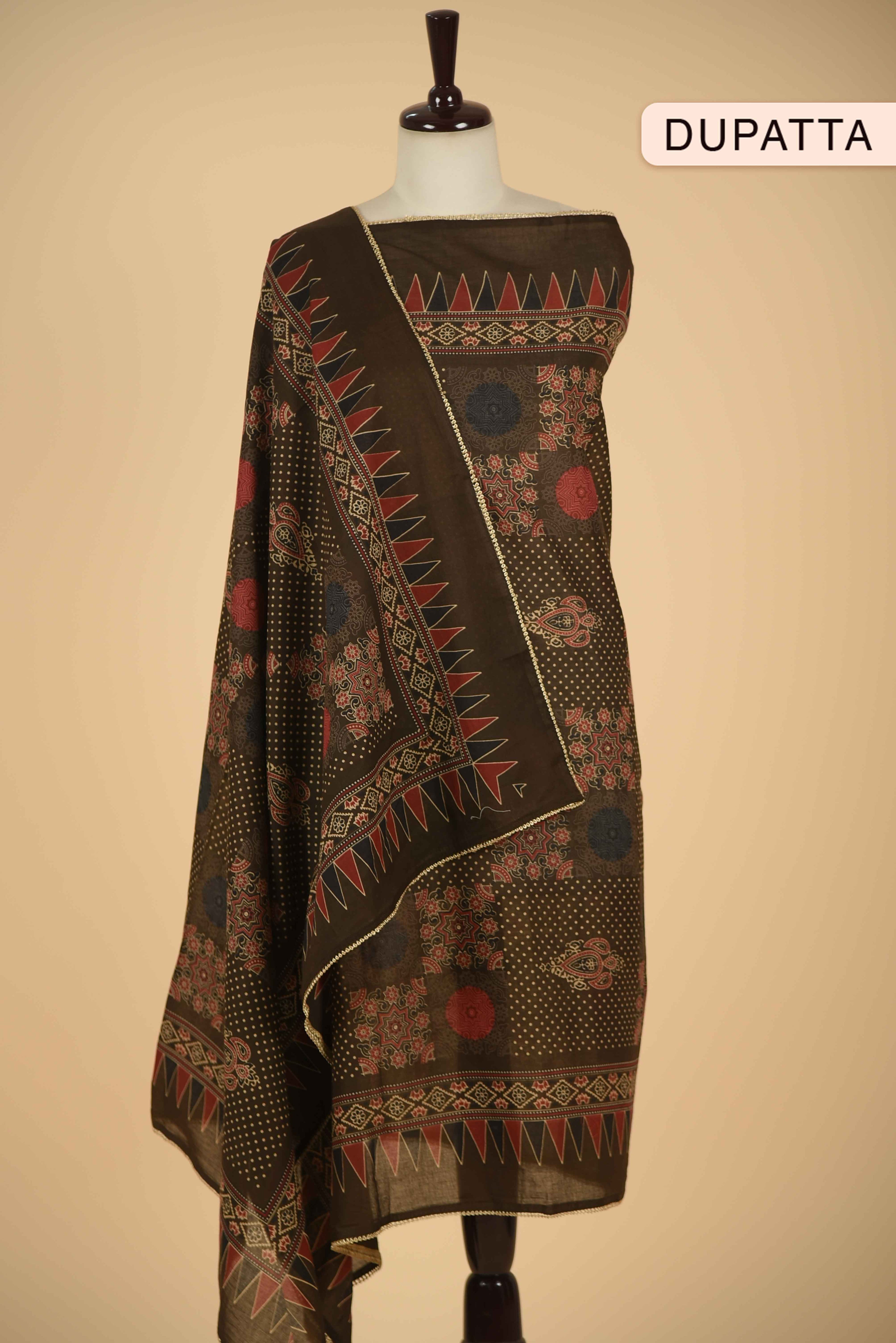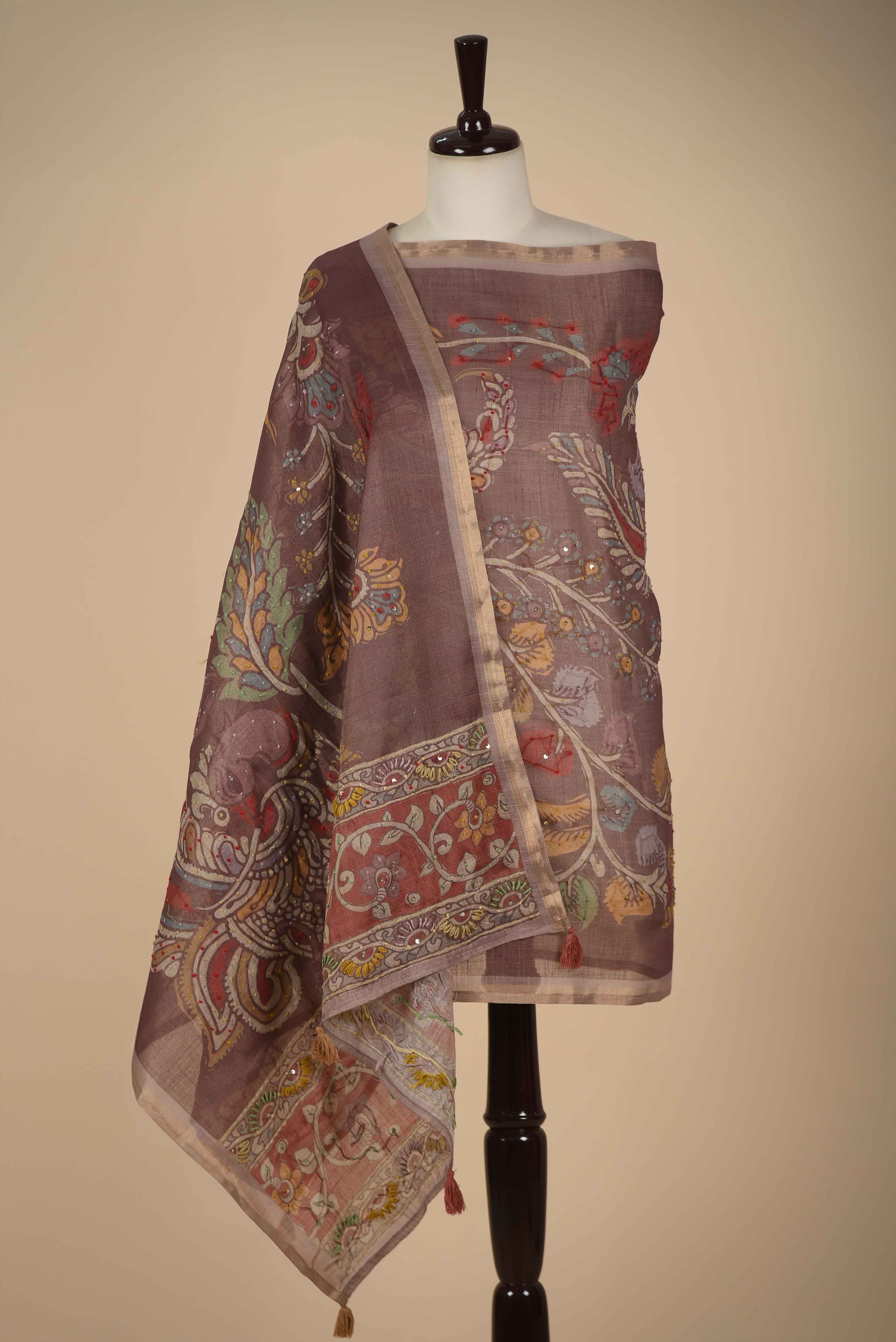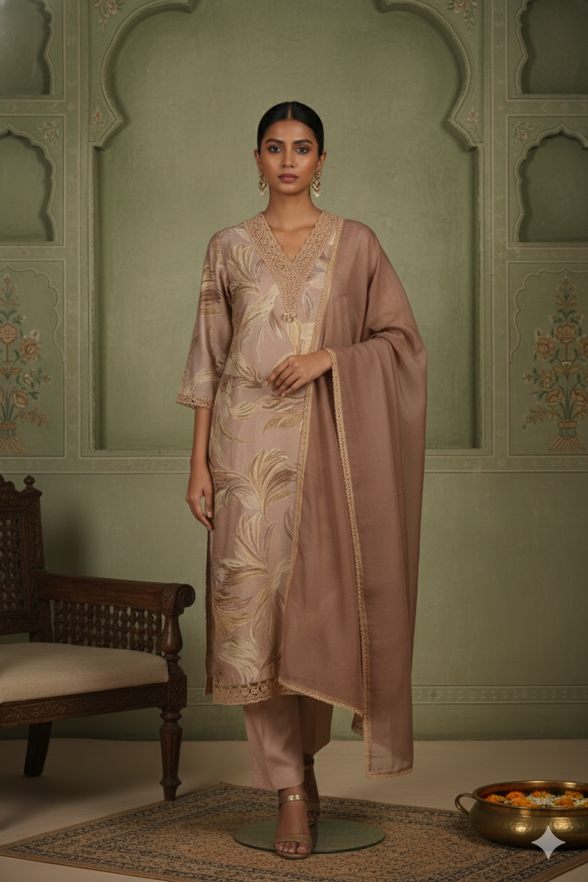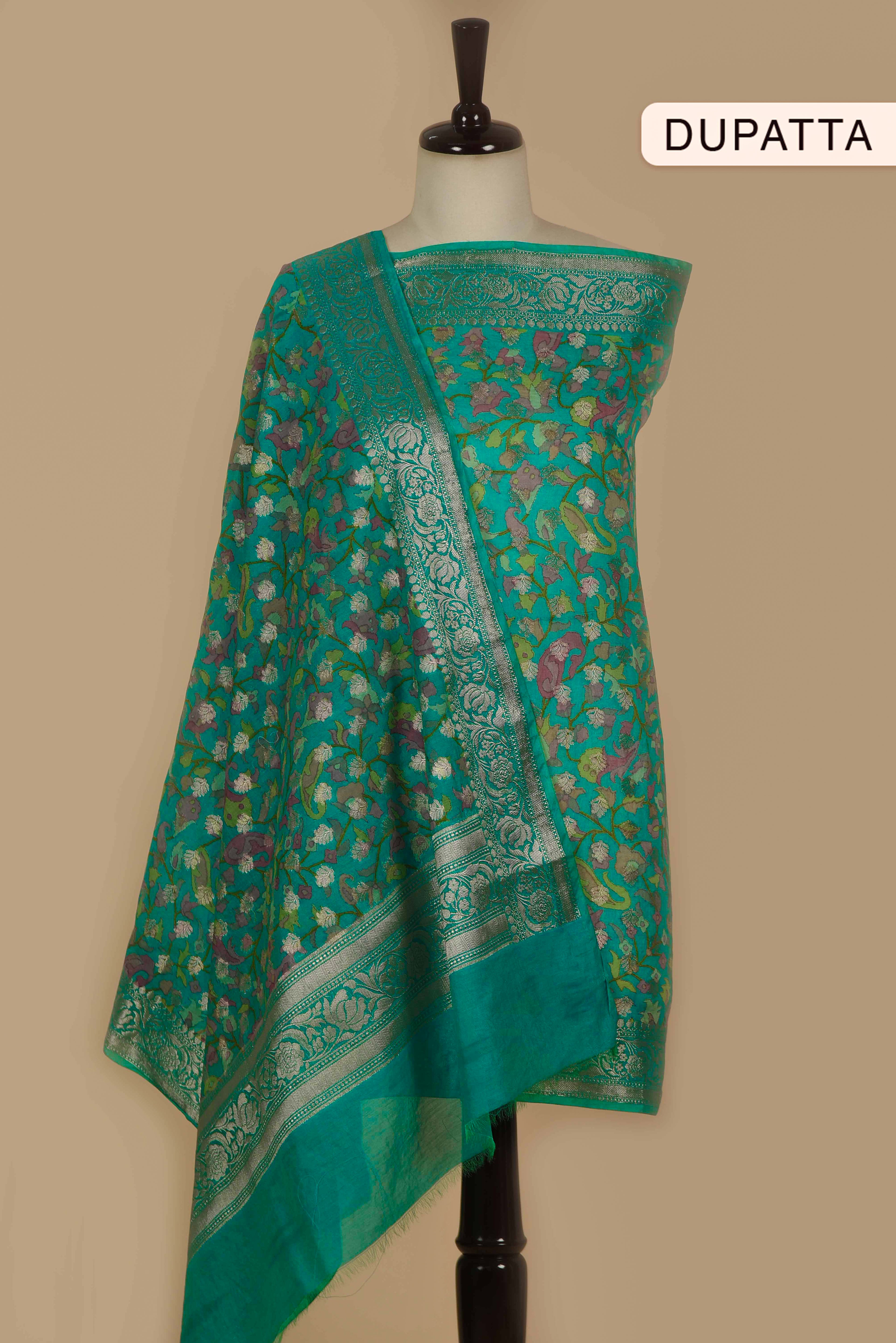 Maroon Banarasi Chanderi Woven Unstitched Suit Fabric Set With Banarasi Chanderi Woven Dupatta