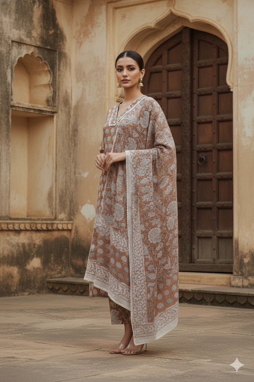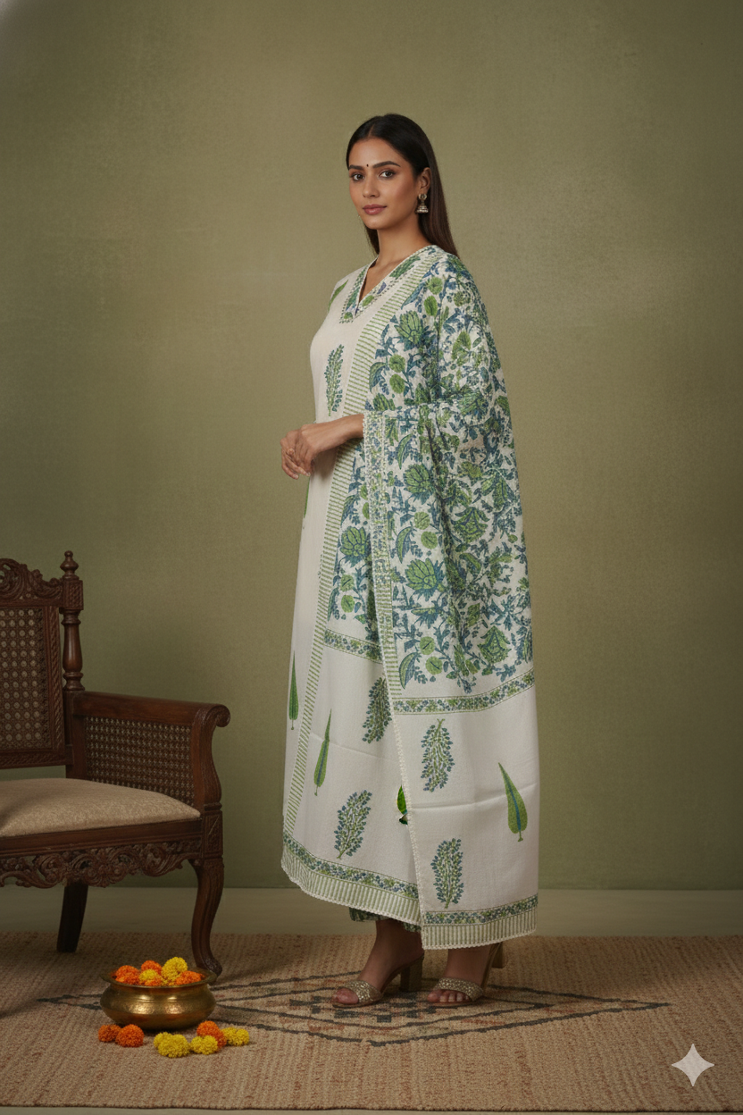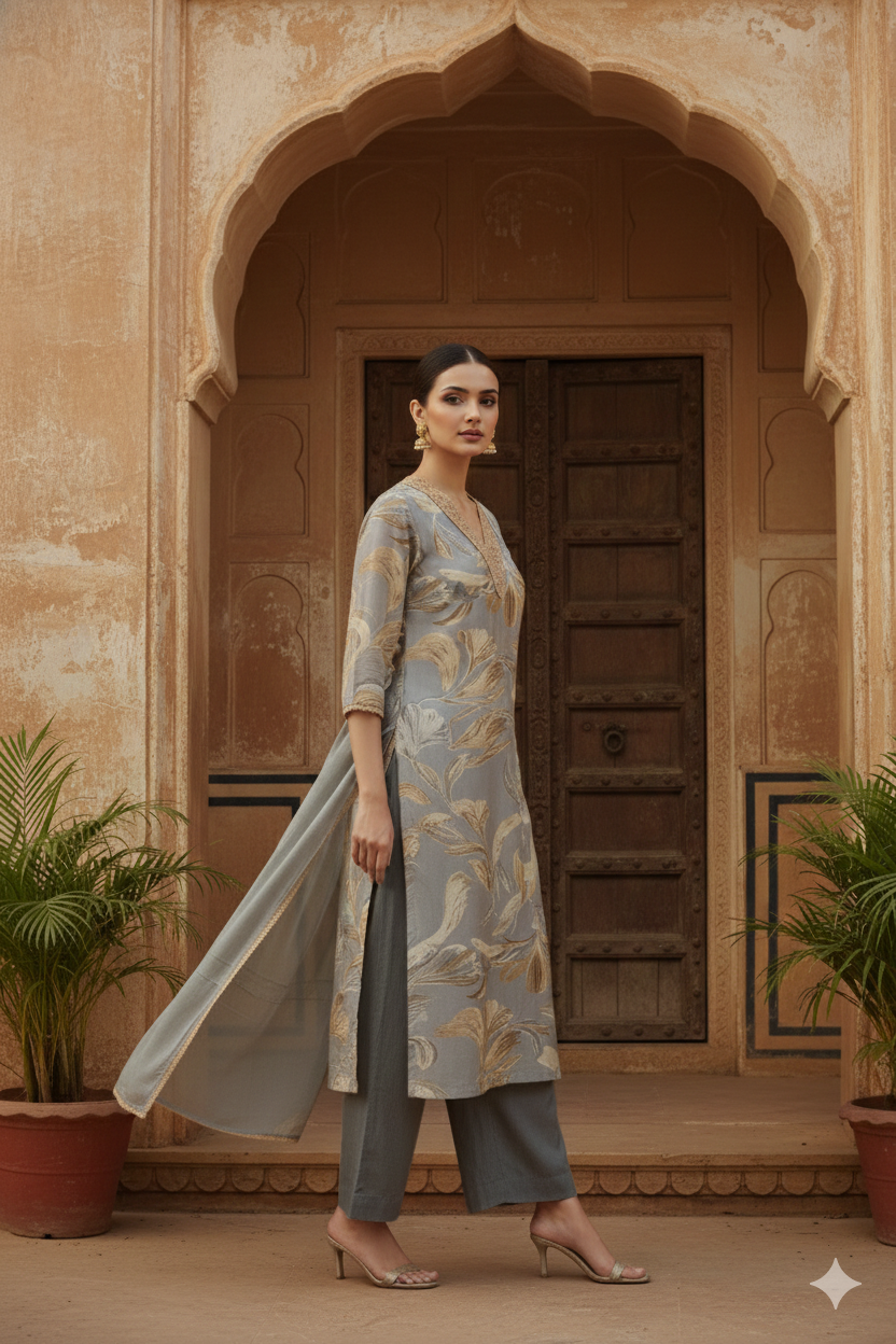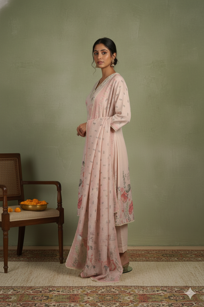 Brown Winter Wear Wool Spun Blend Tribal Embroidered Co-ord Set-Regular Fit