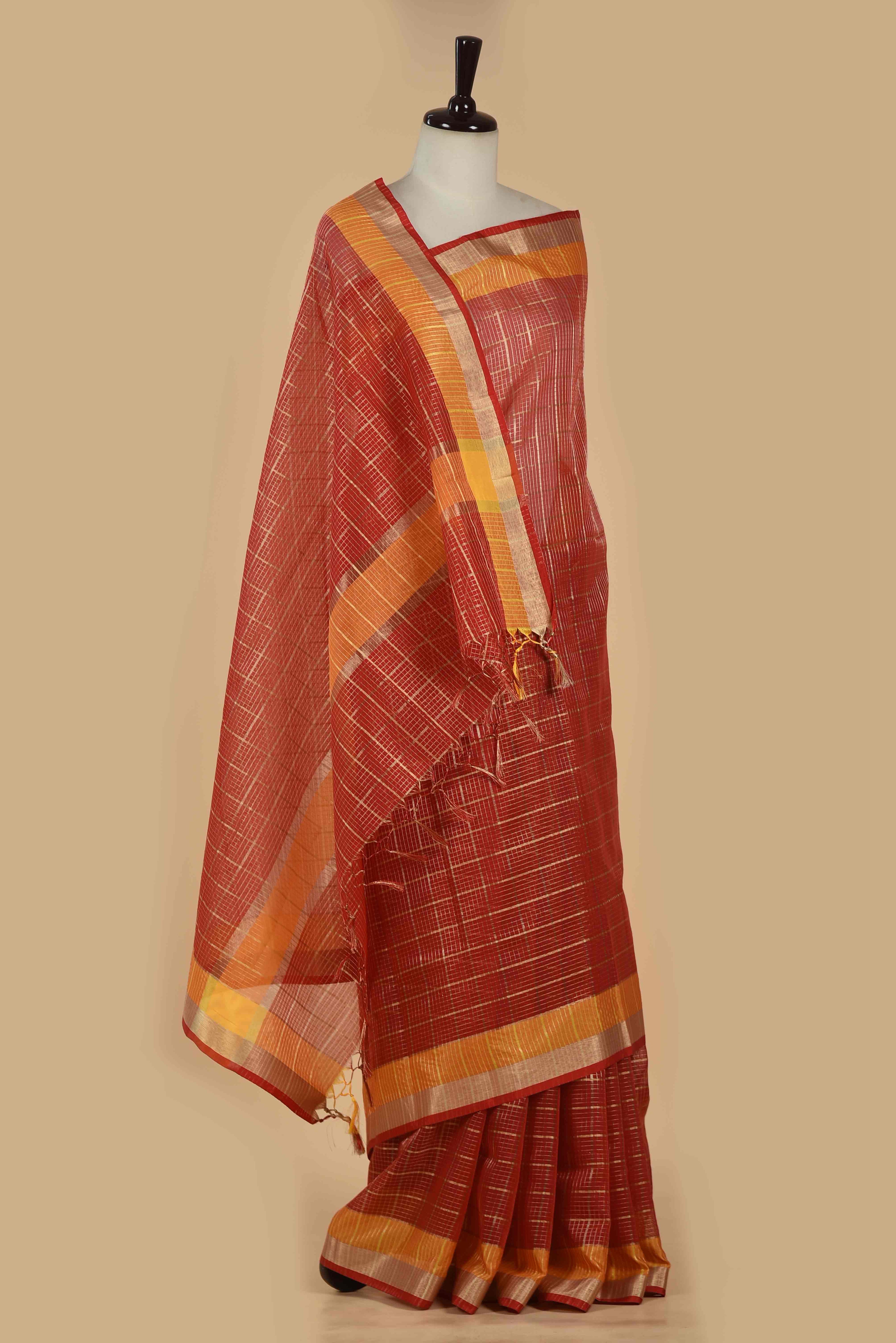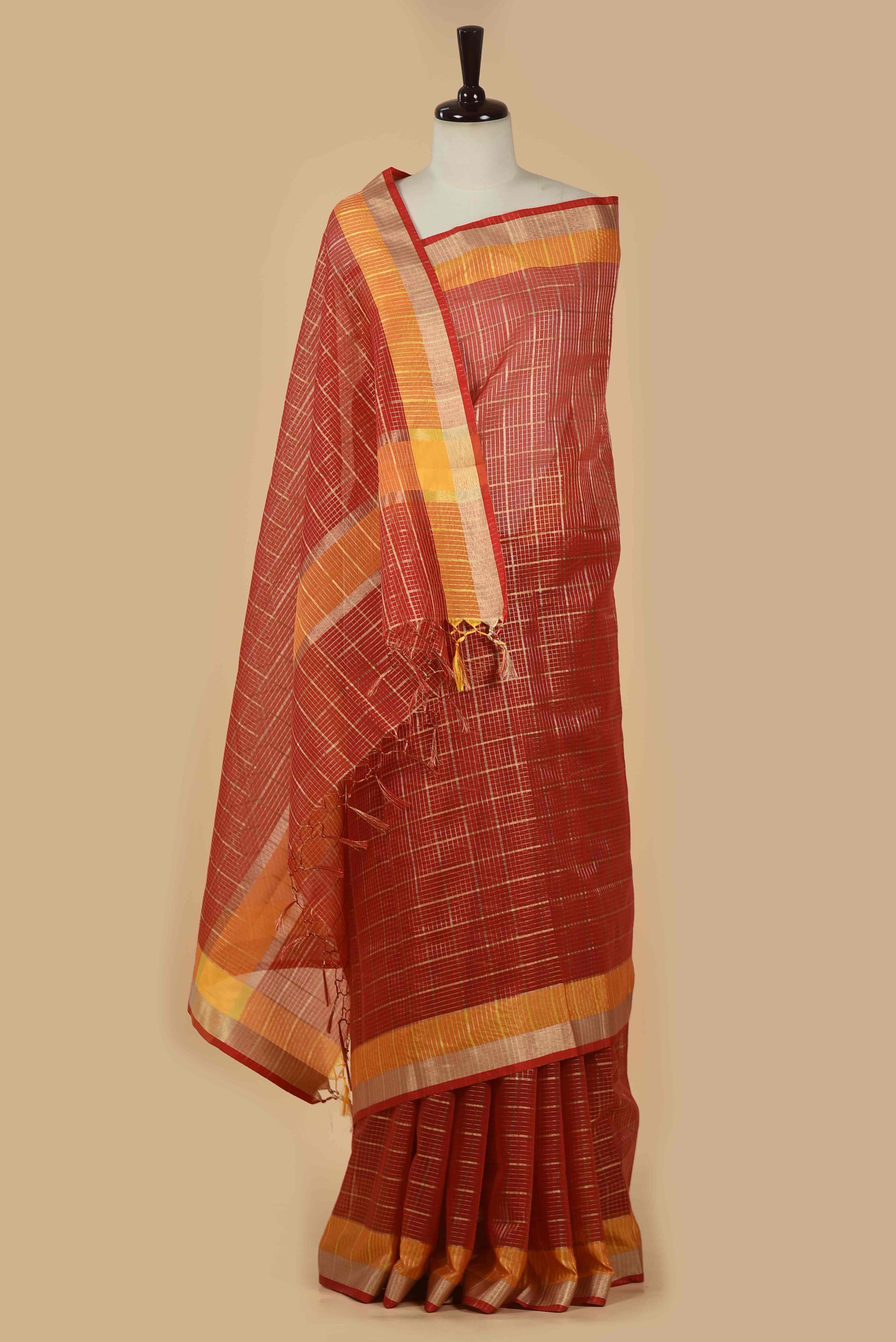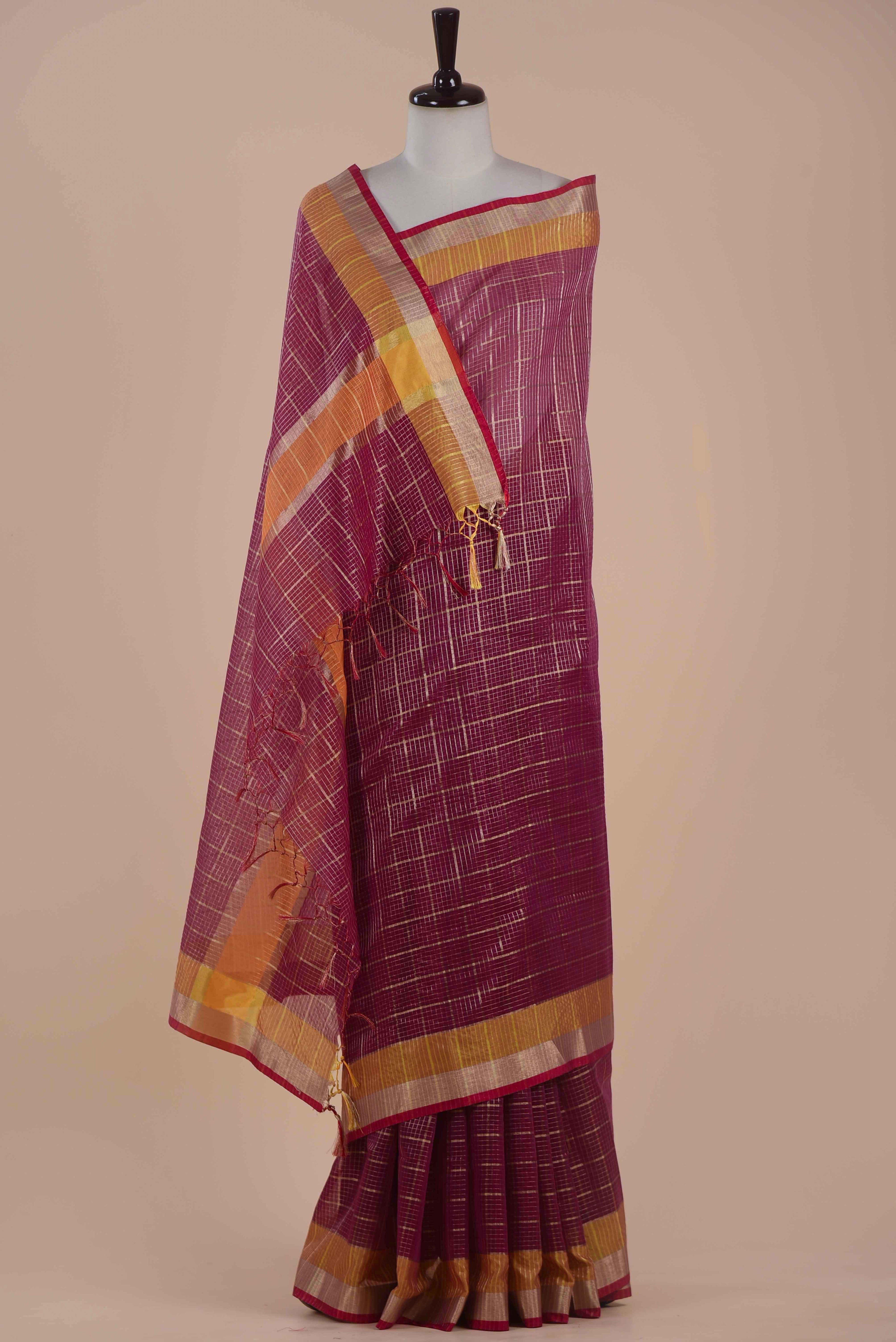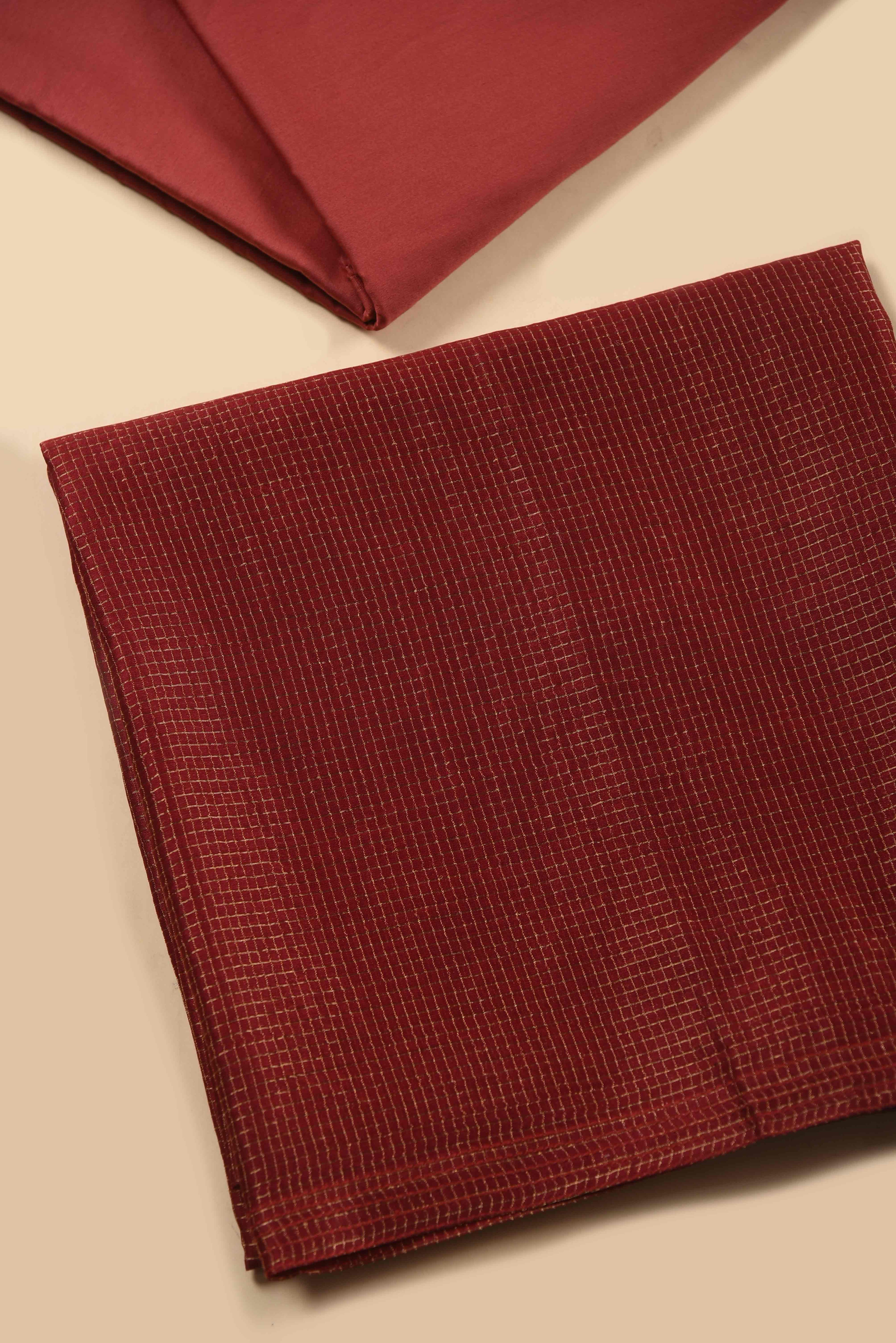 Burgundy Pure Handloom Cotton Self-Check Shirt – Relaxed Fit