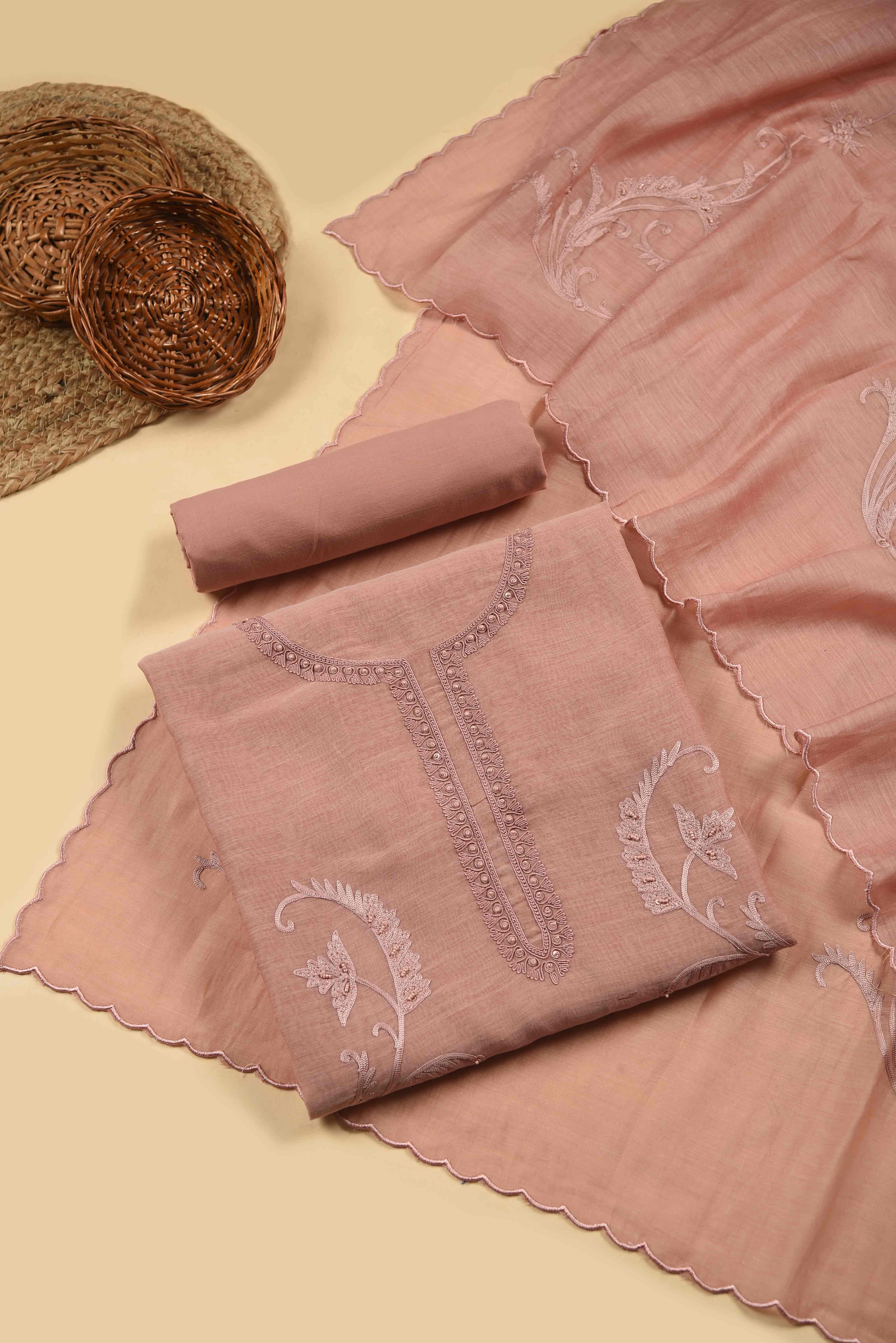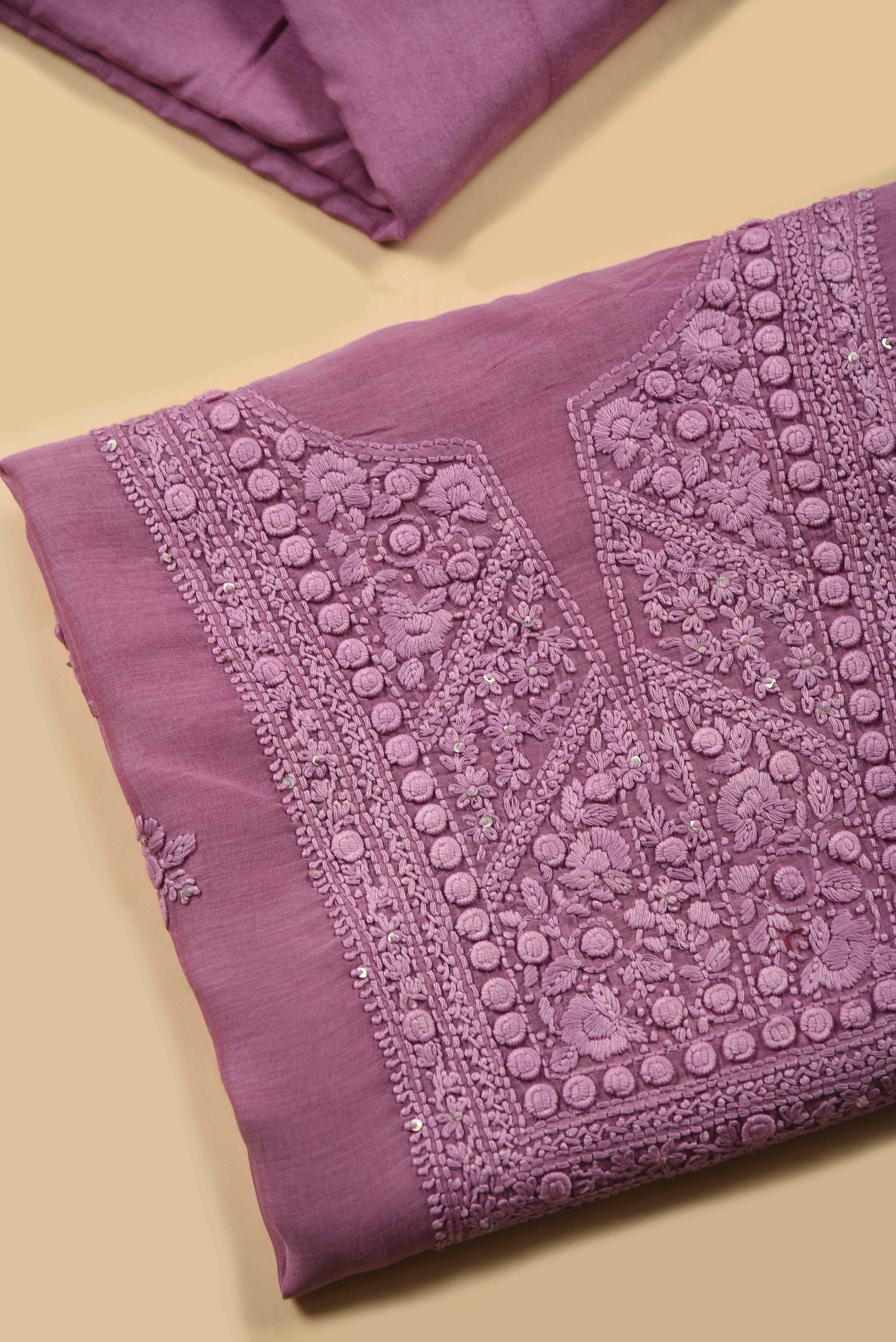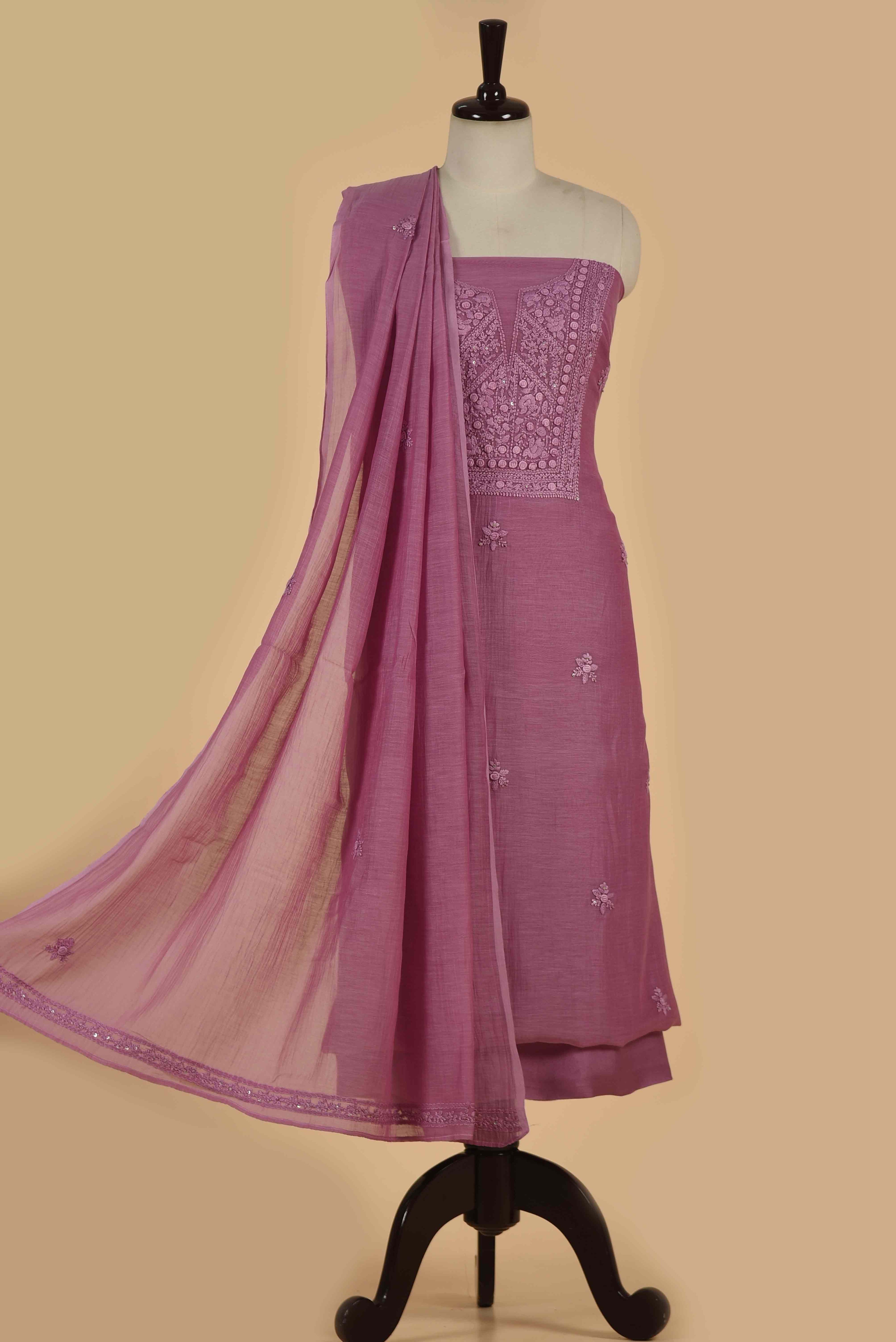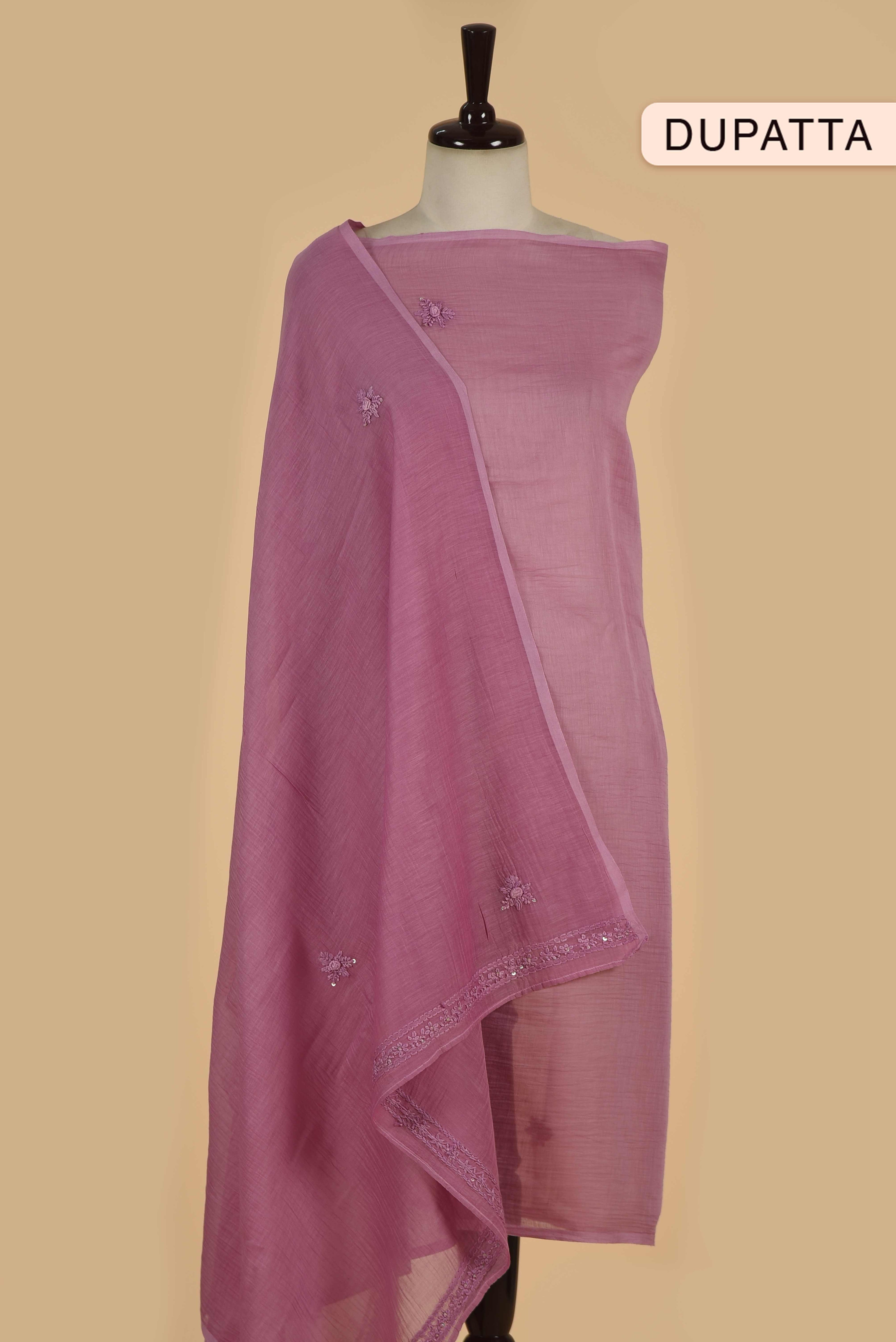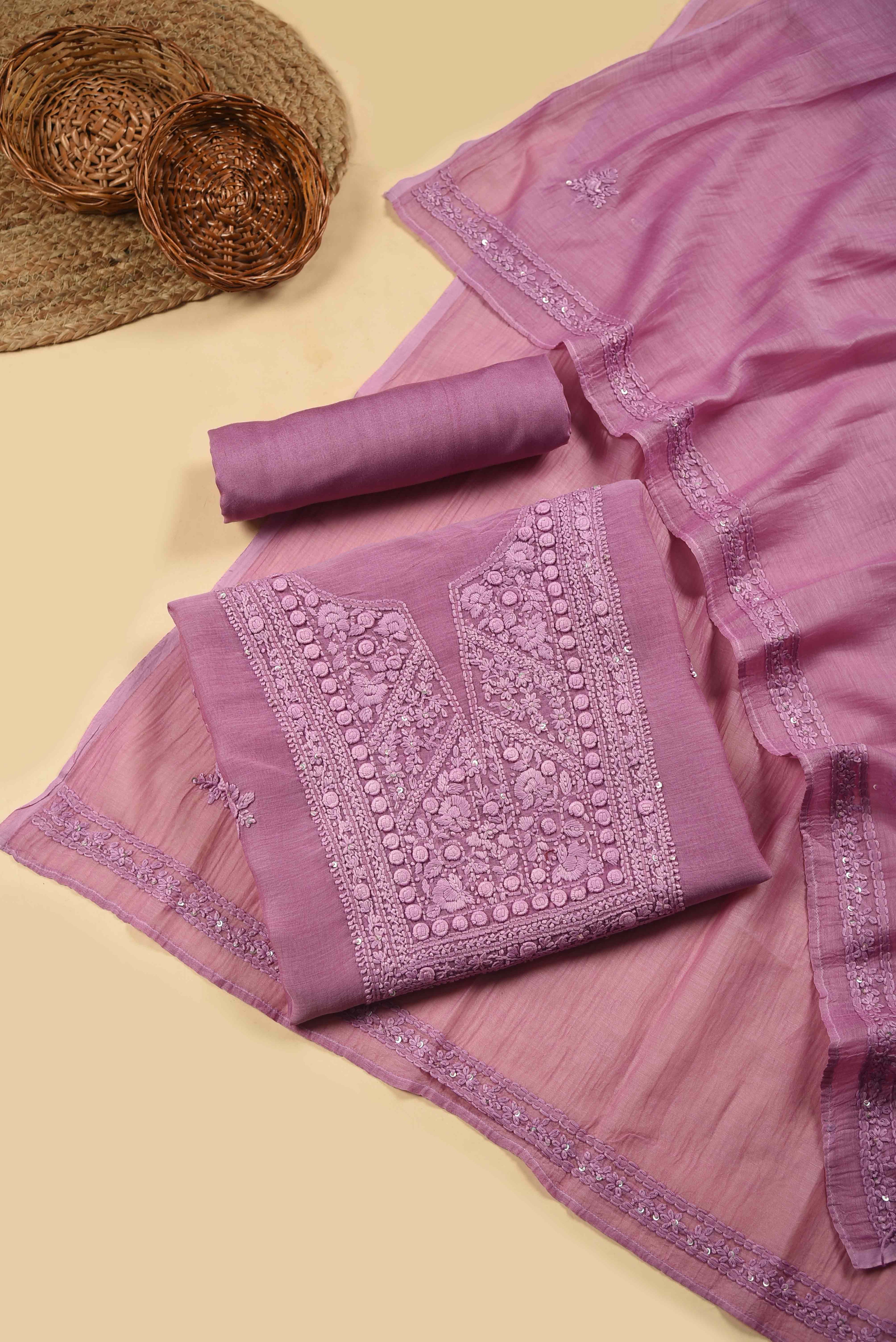 Light Mauve Mul Chanderi Embroidered Unstitched Suit Fabric Set With Mul Chanderi Embroidered Dupatta