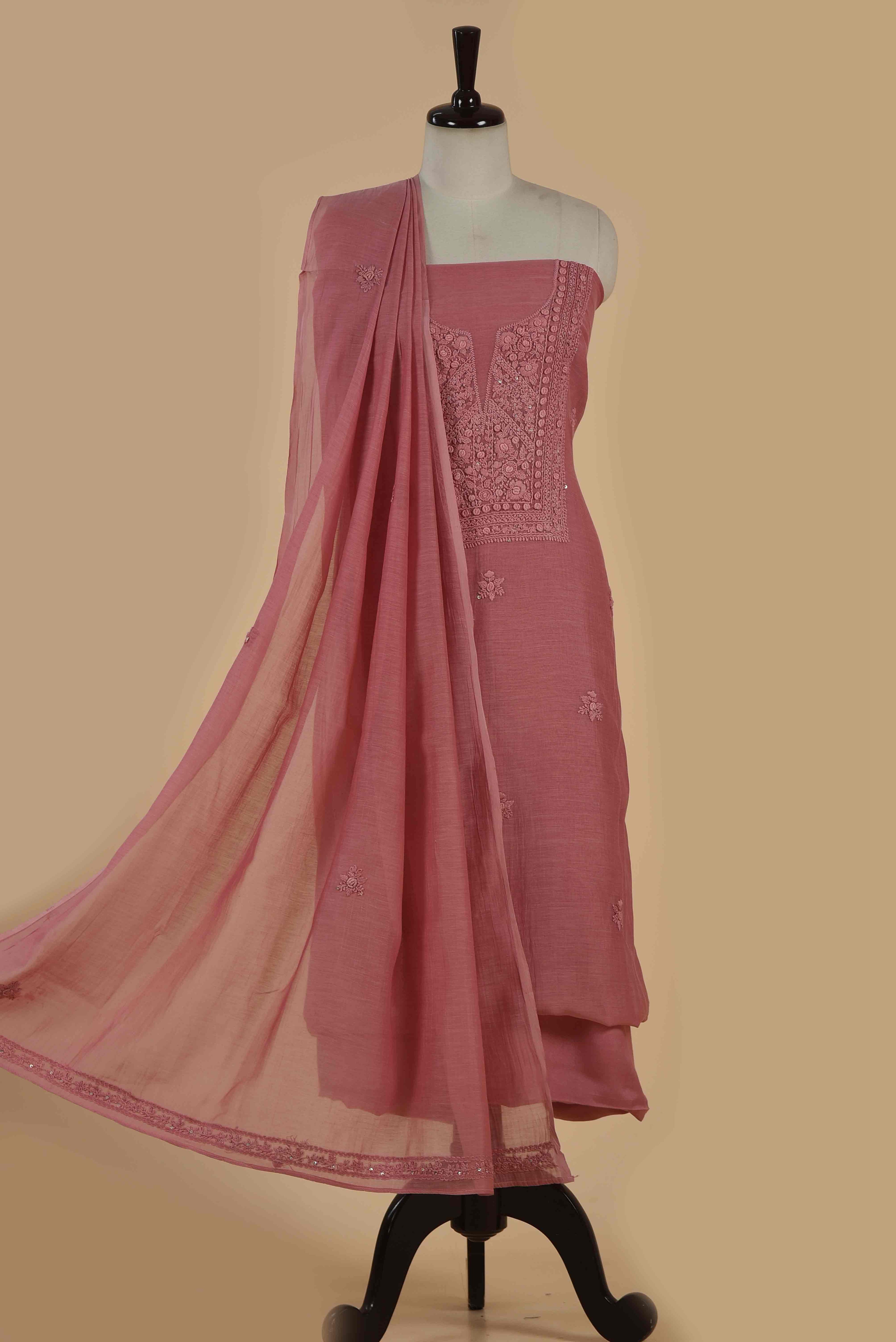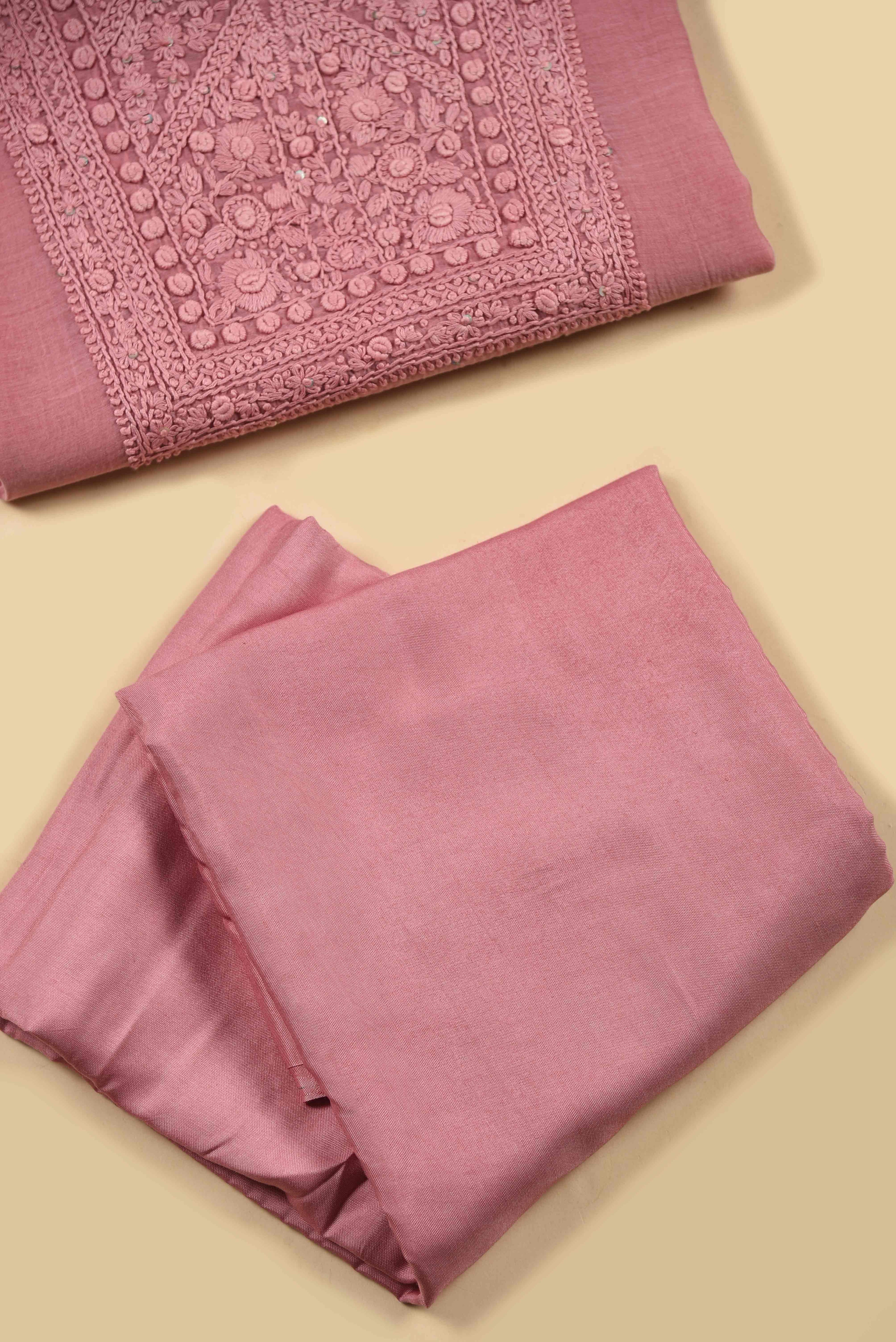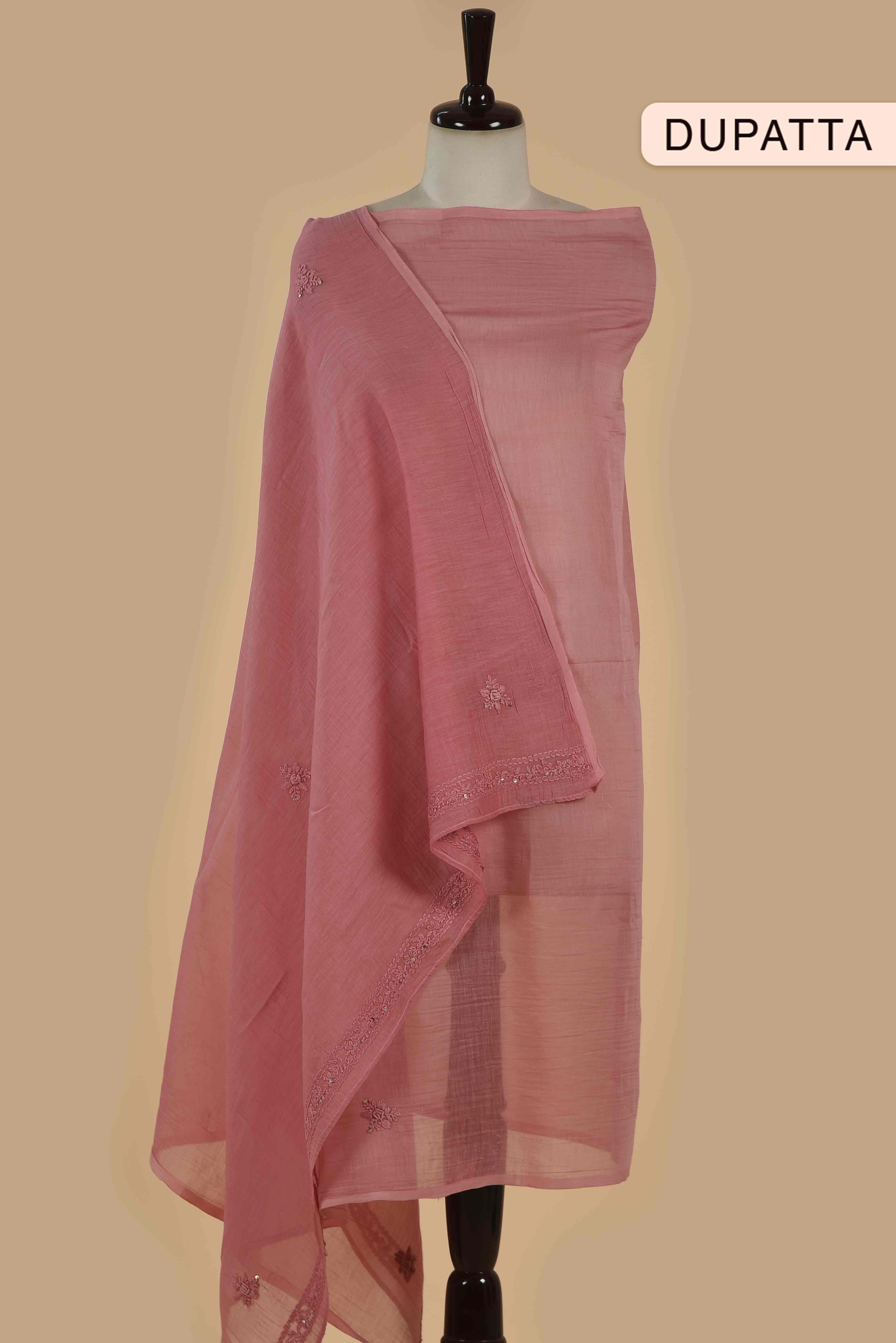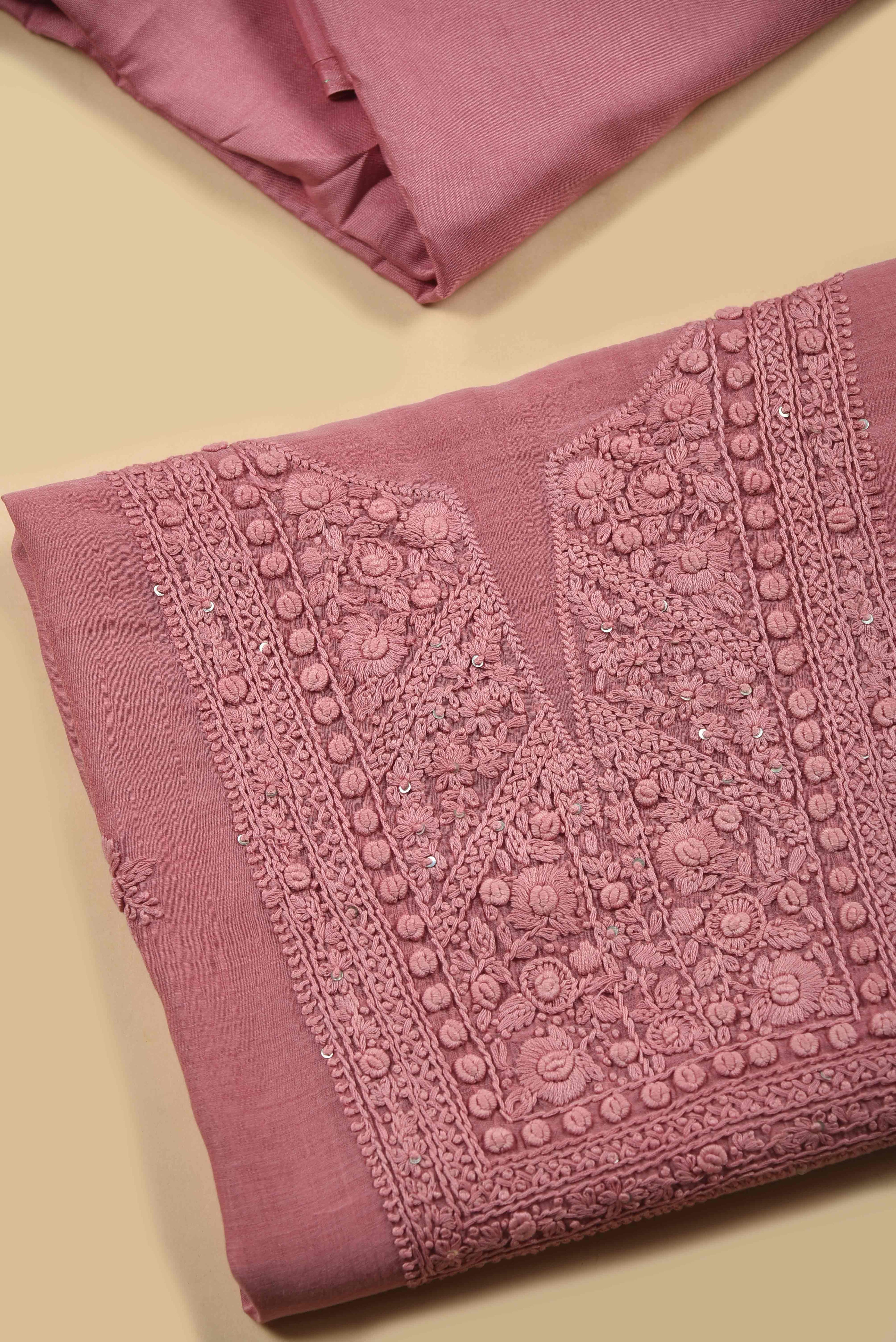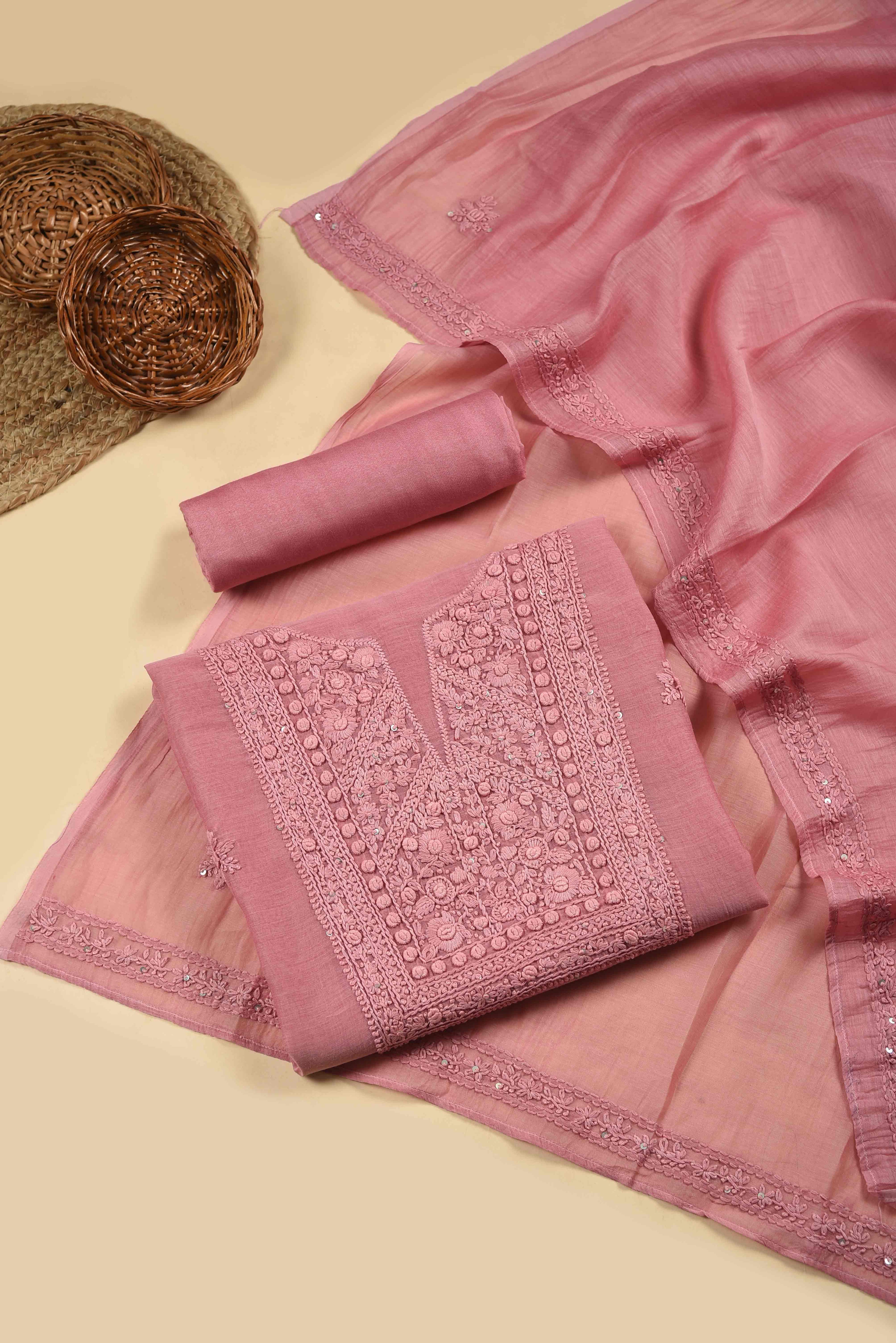 Light Mauve Mul Chanderi Embroidered Unstitched Suit Fabric Set With Mul Chanderi Embroidered Dupatta