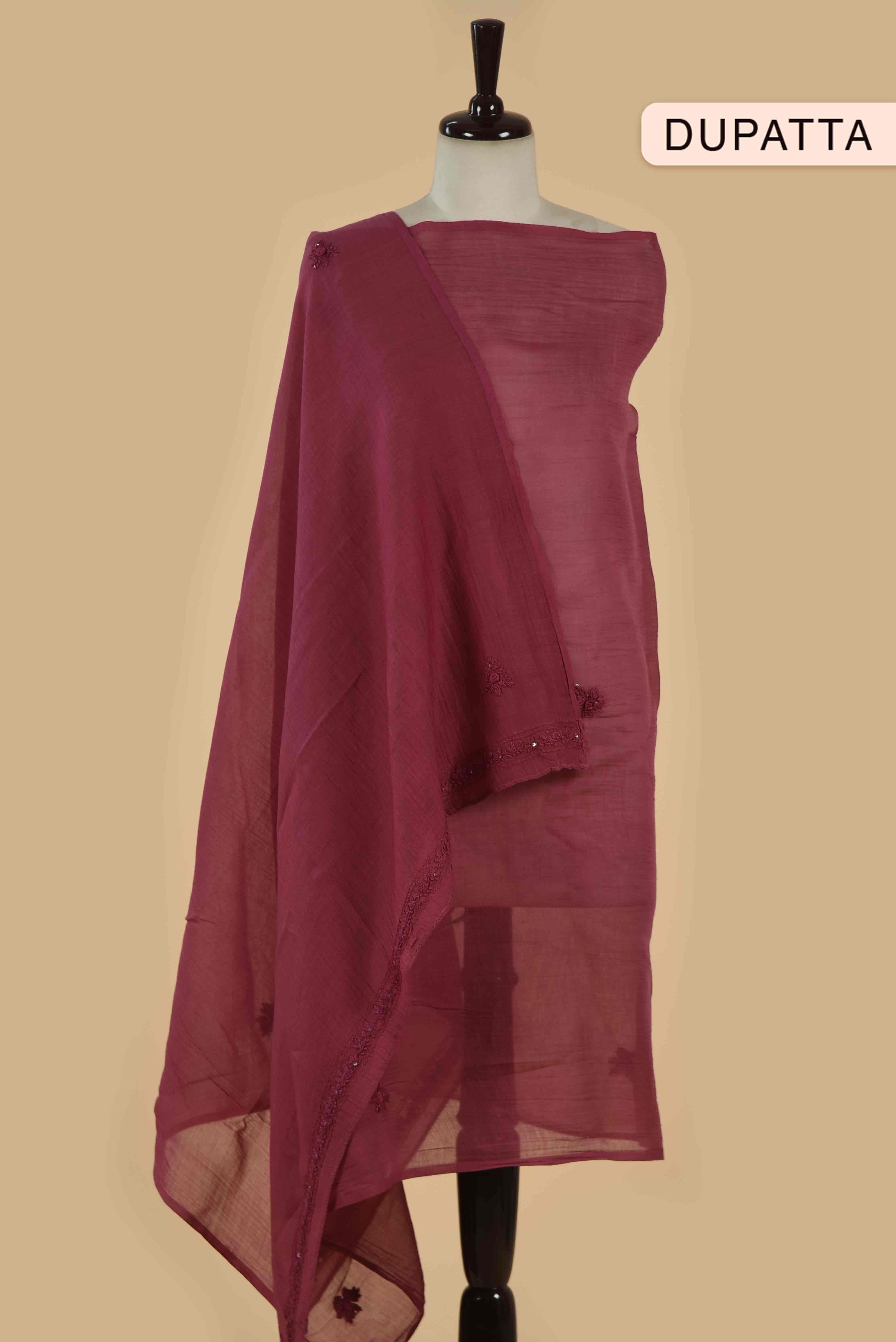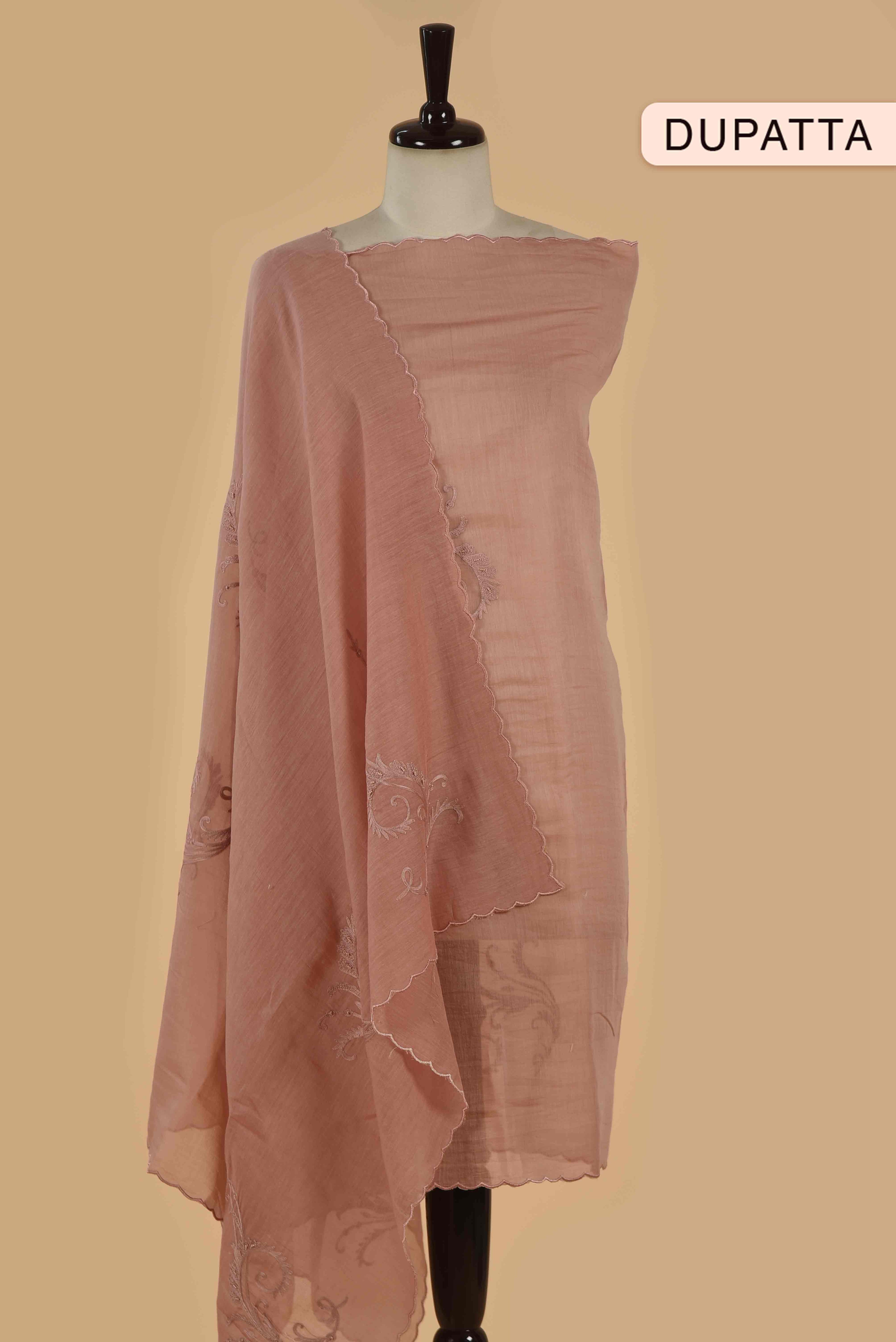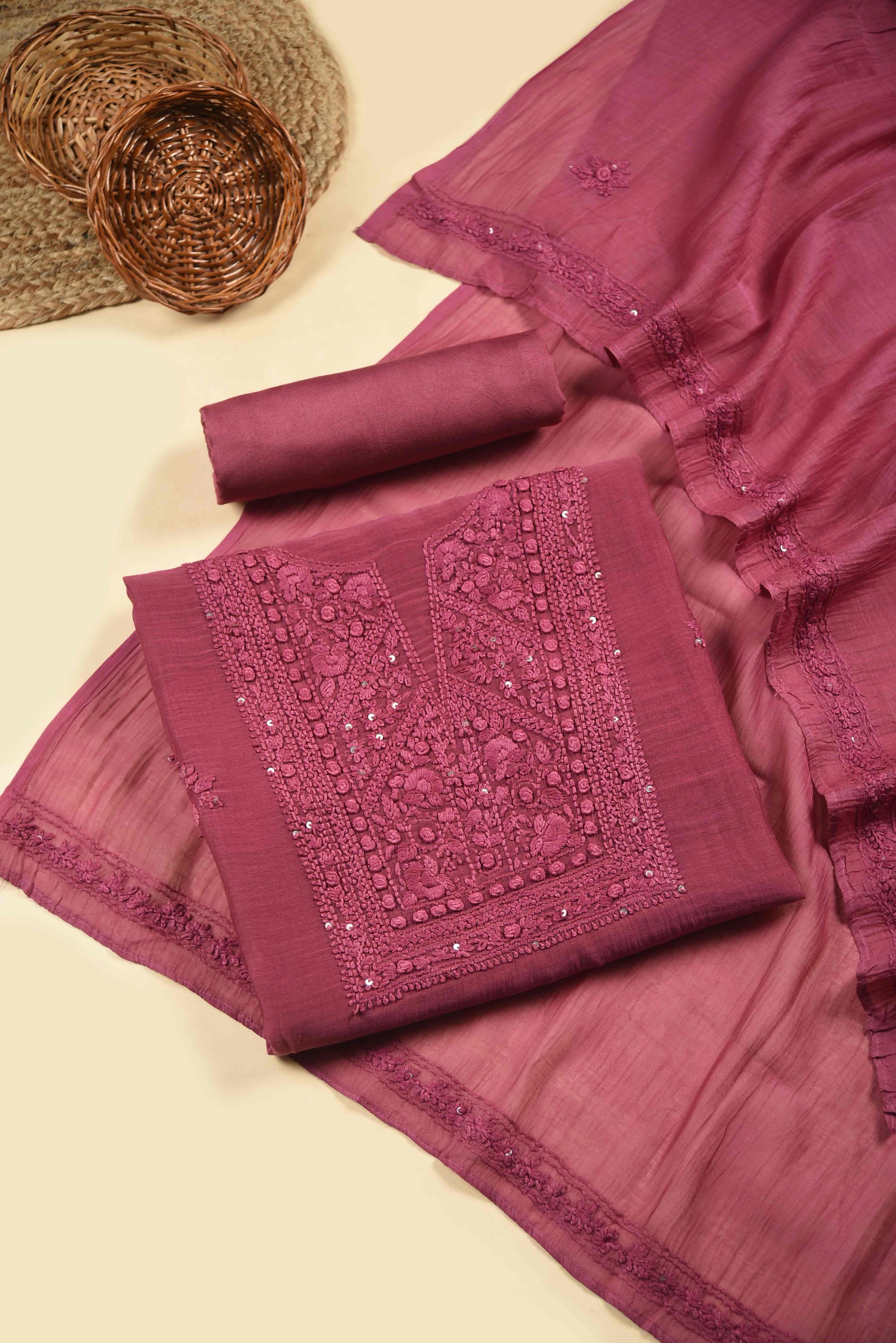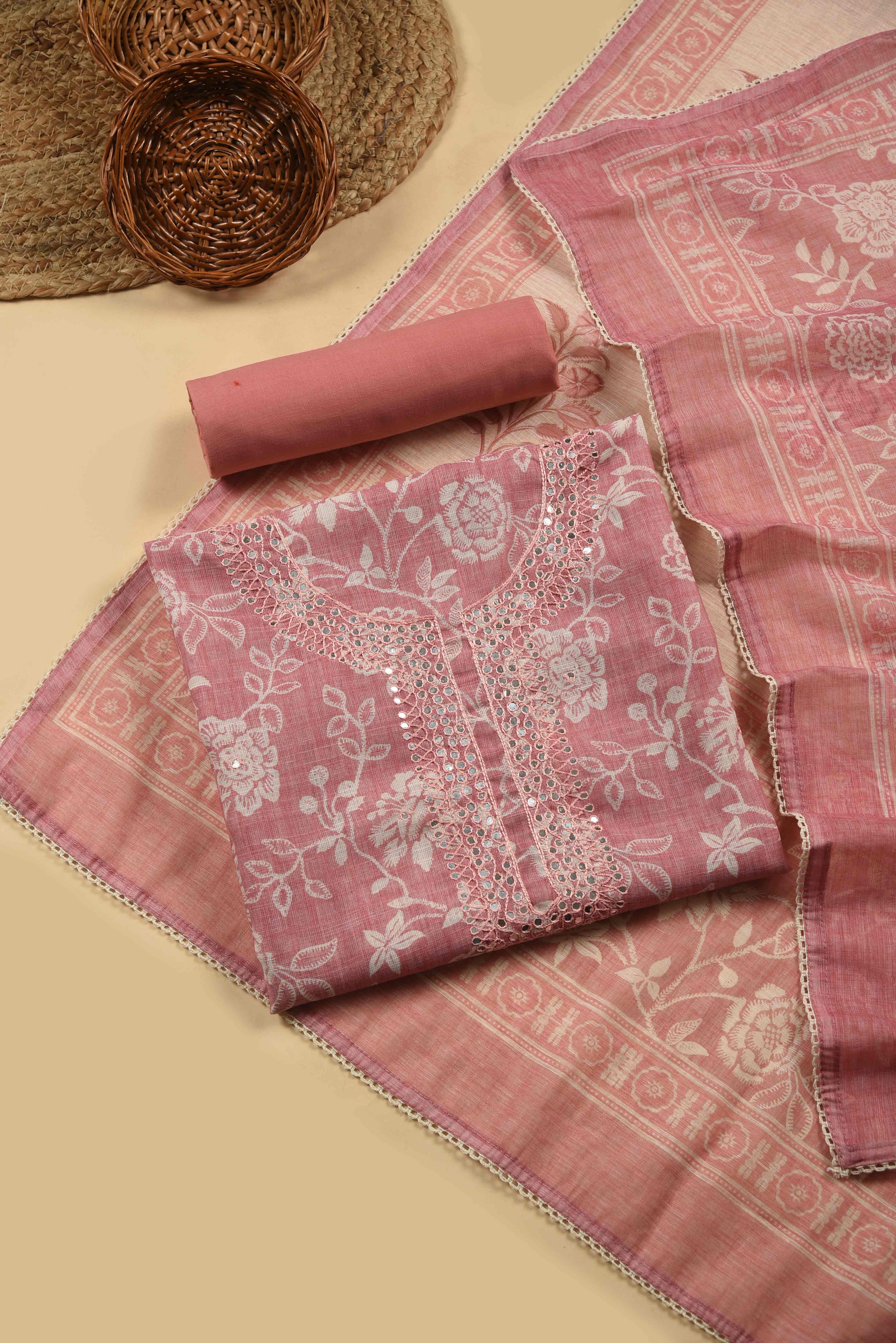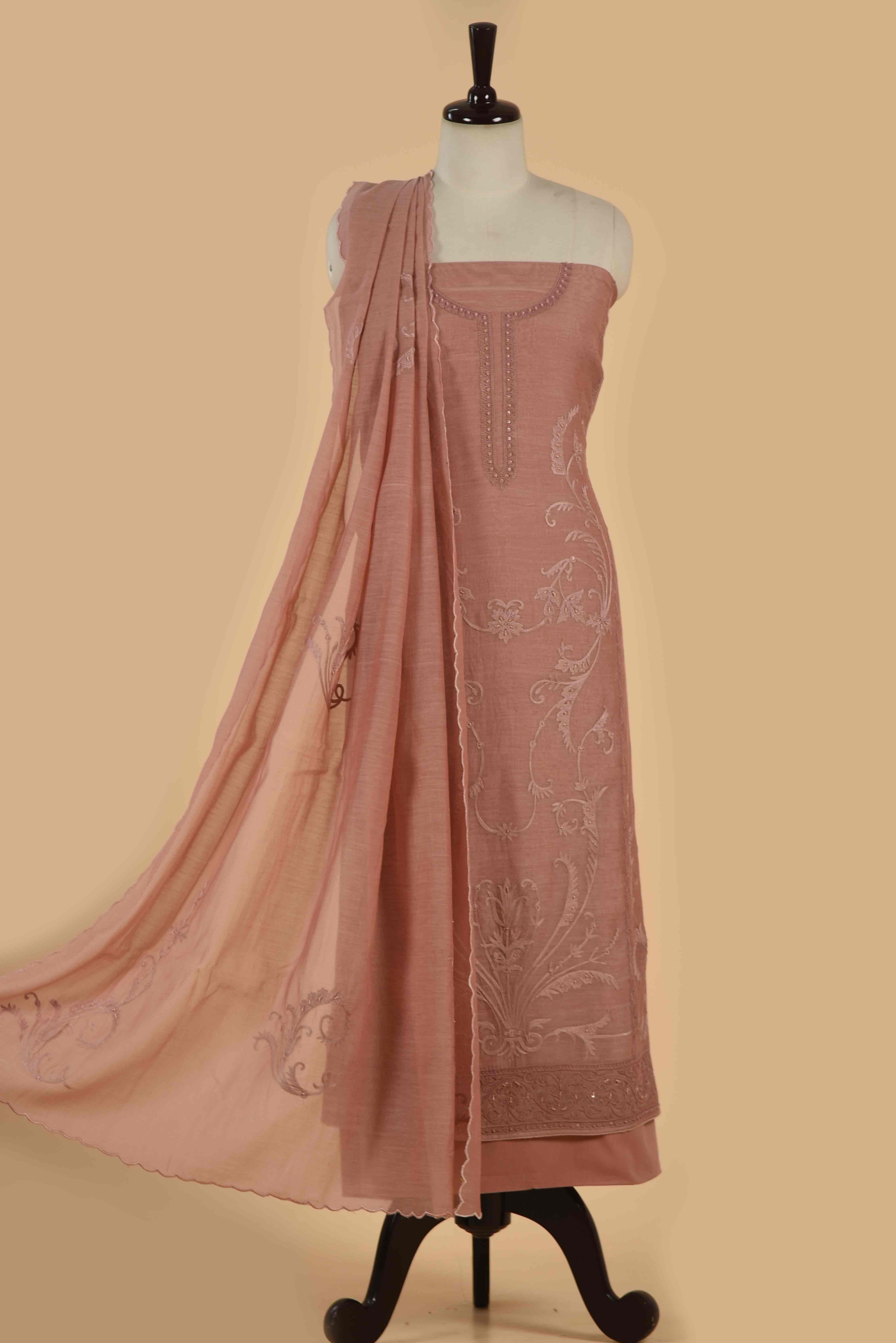 Light Mauve Mul Chanderi Embroidered Unstitched Suit Fabric Set With Mul Chanderi Embroidered Dupatta