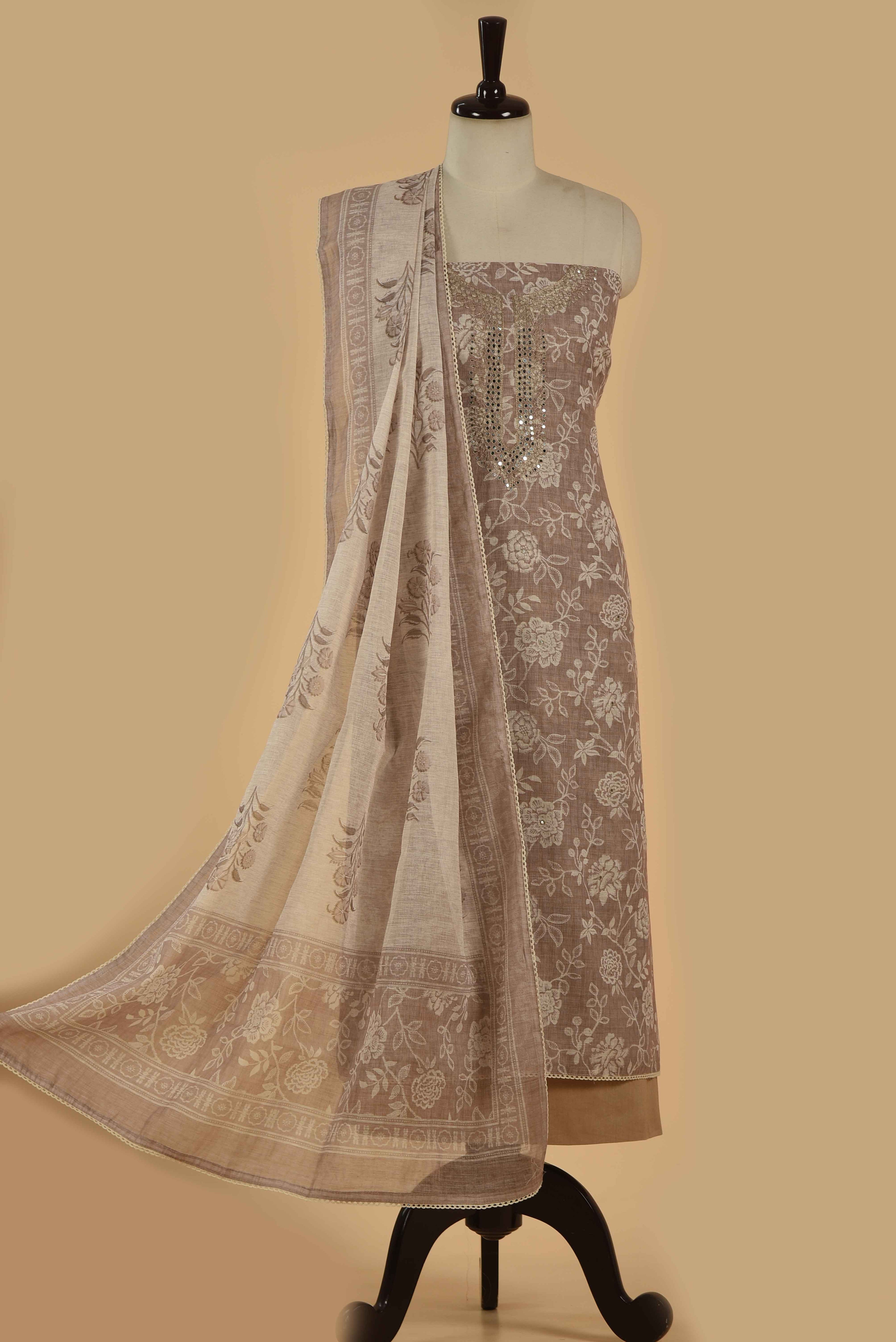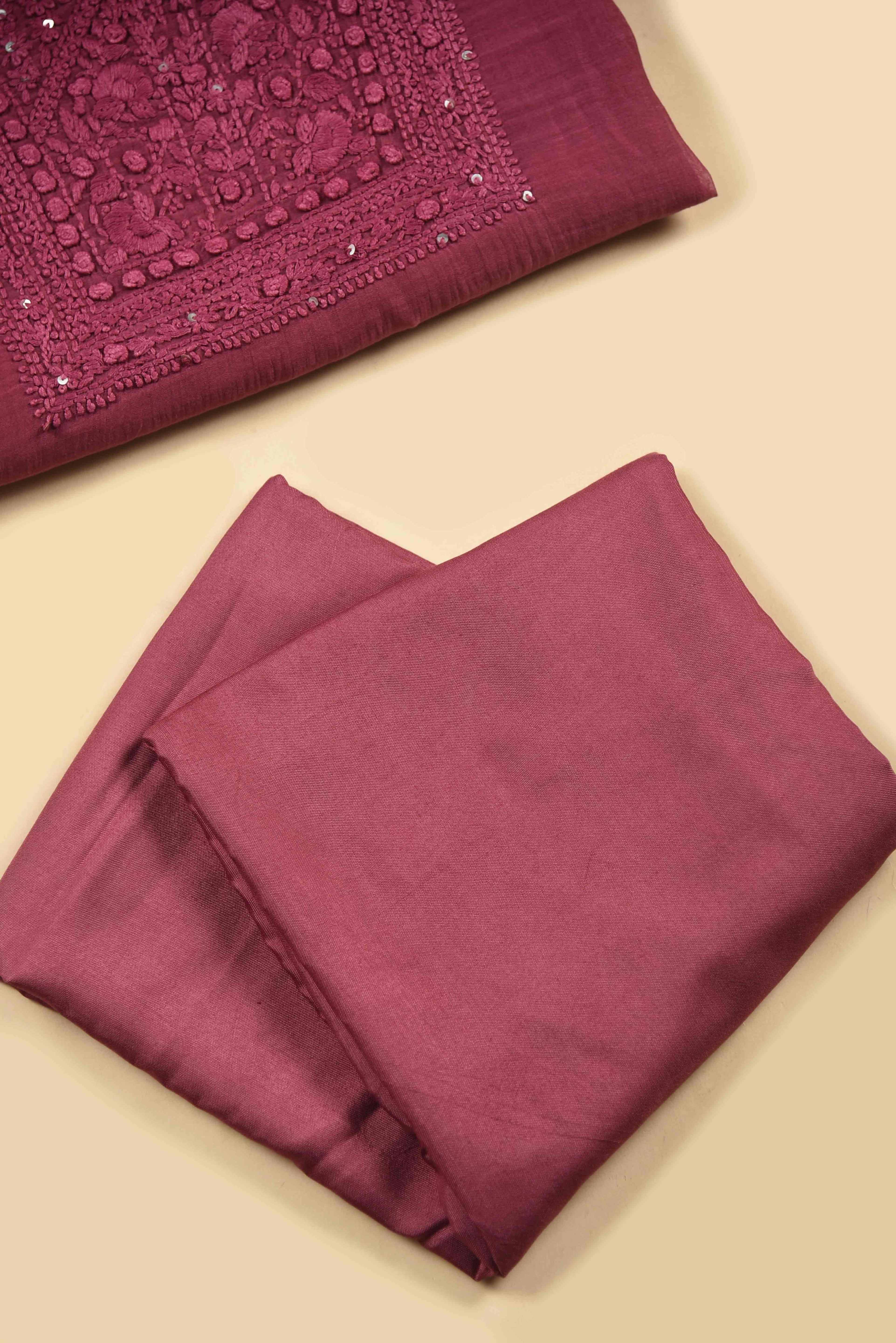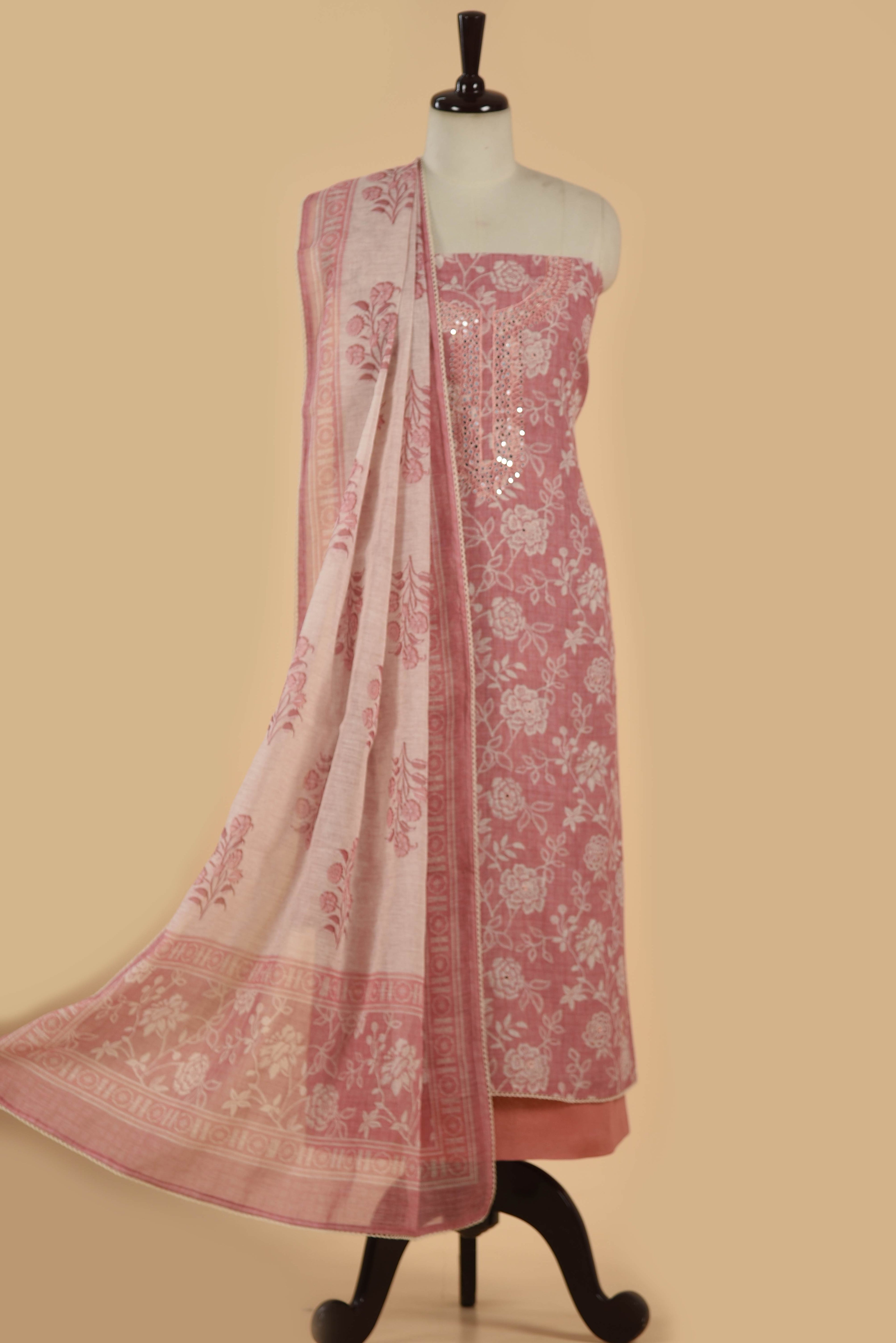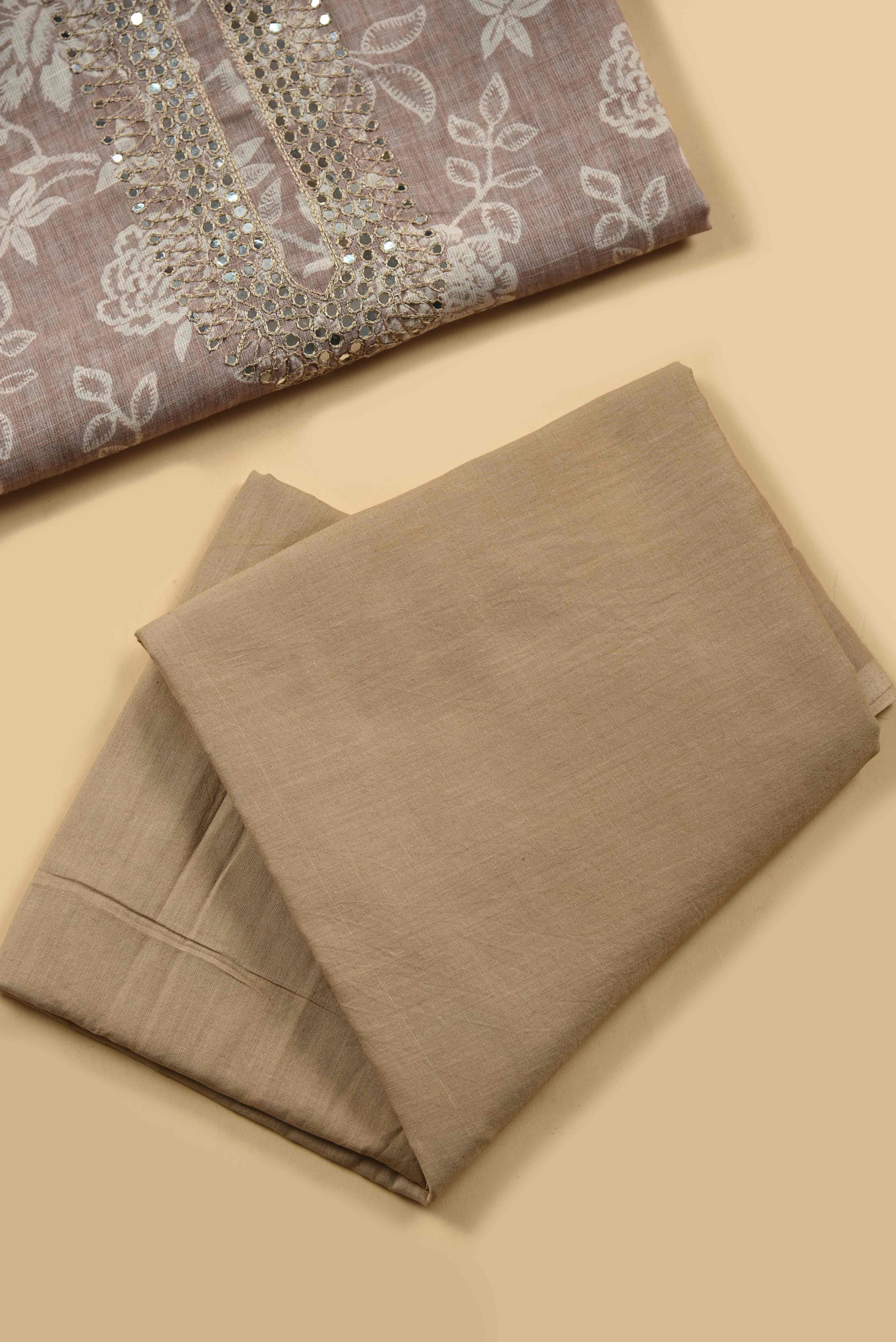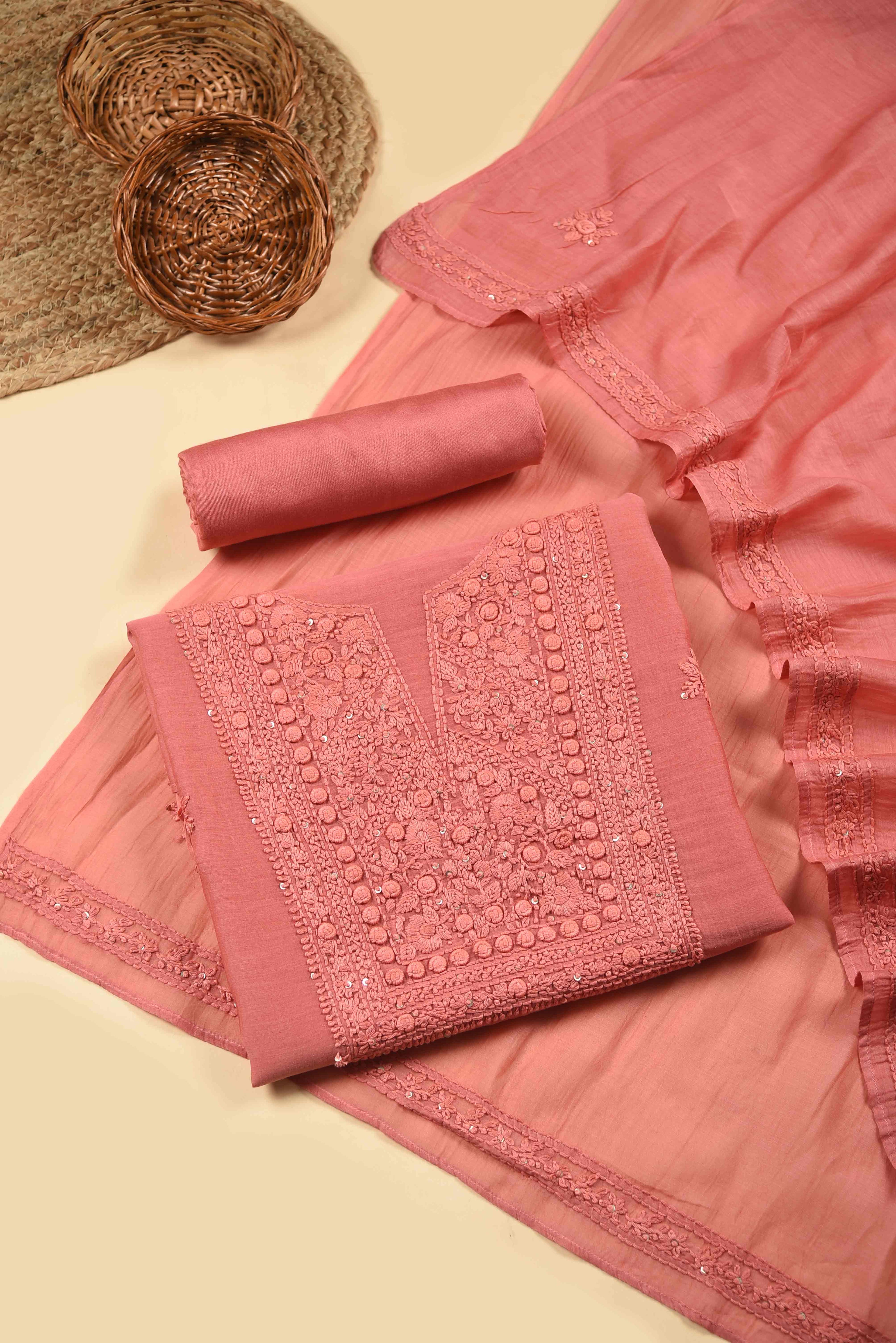 Light Mauve Mul Chanderi Embroidered Unstitched Suit Fabric Set With Mul Chanderi Embroidered Dupatta