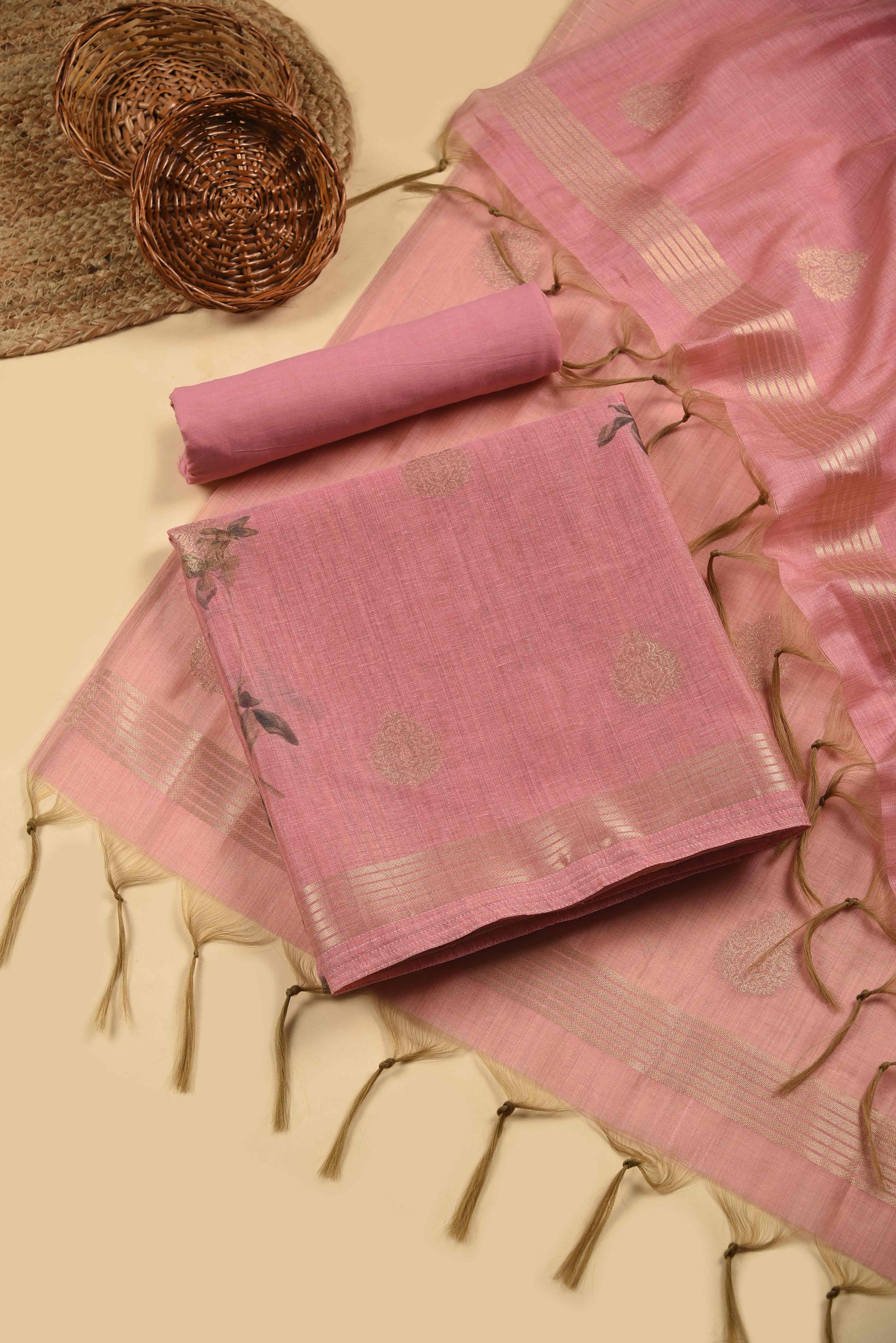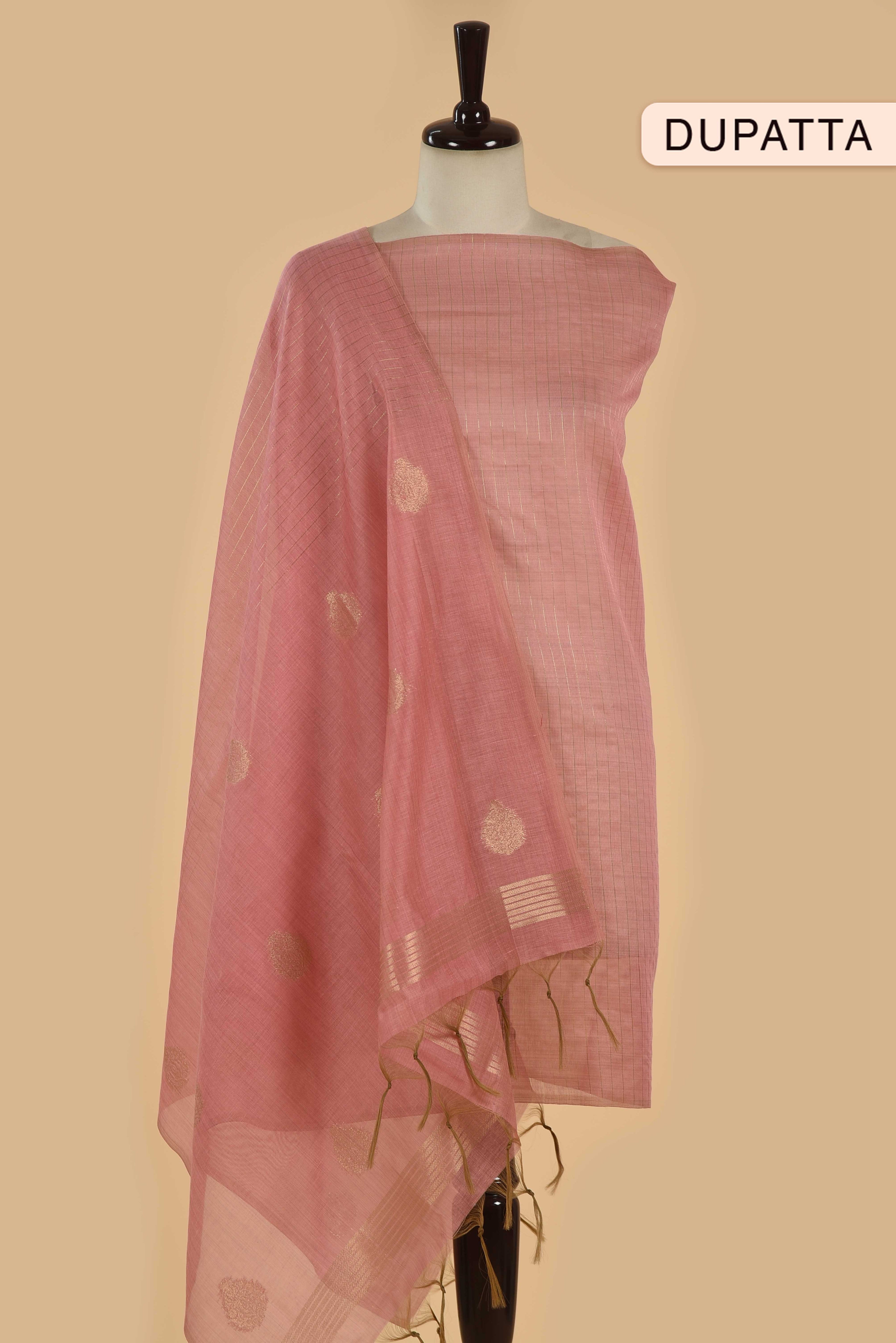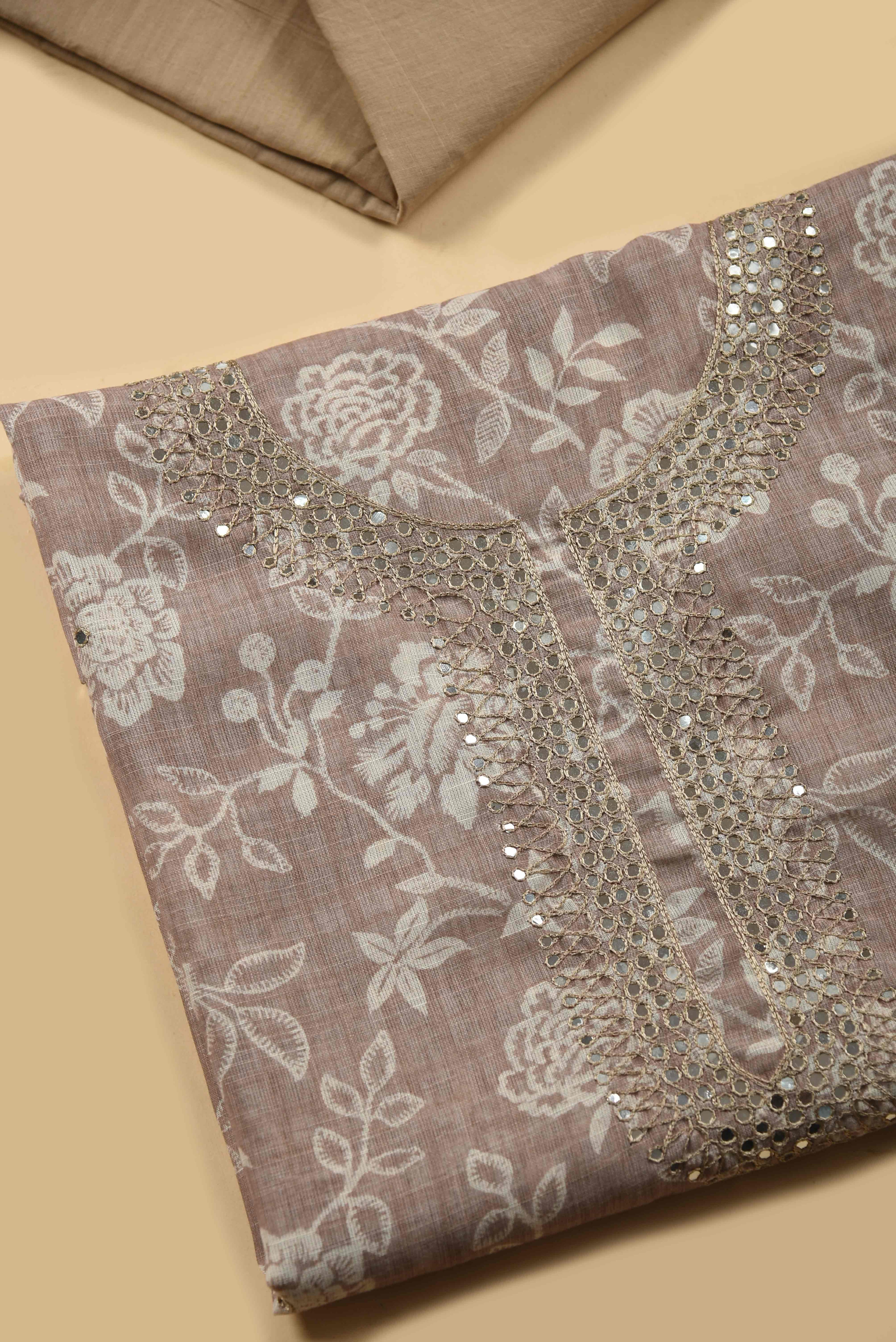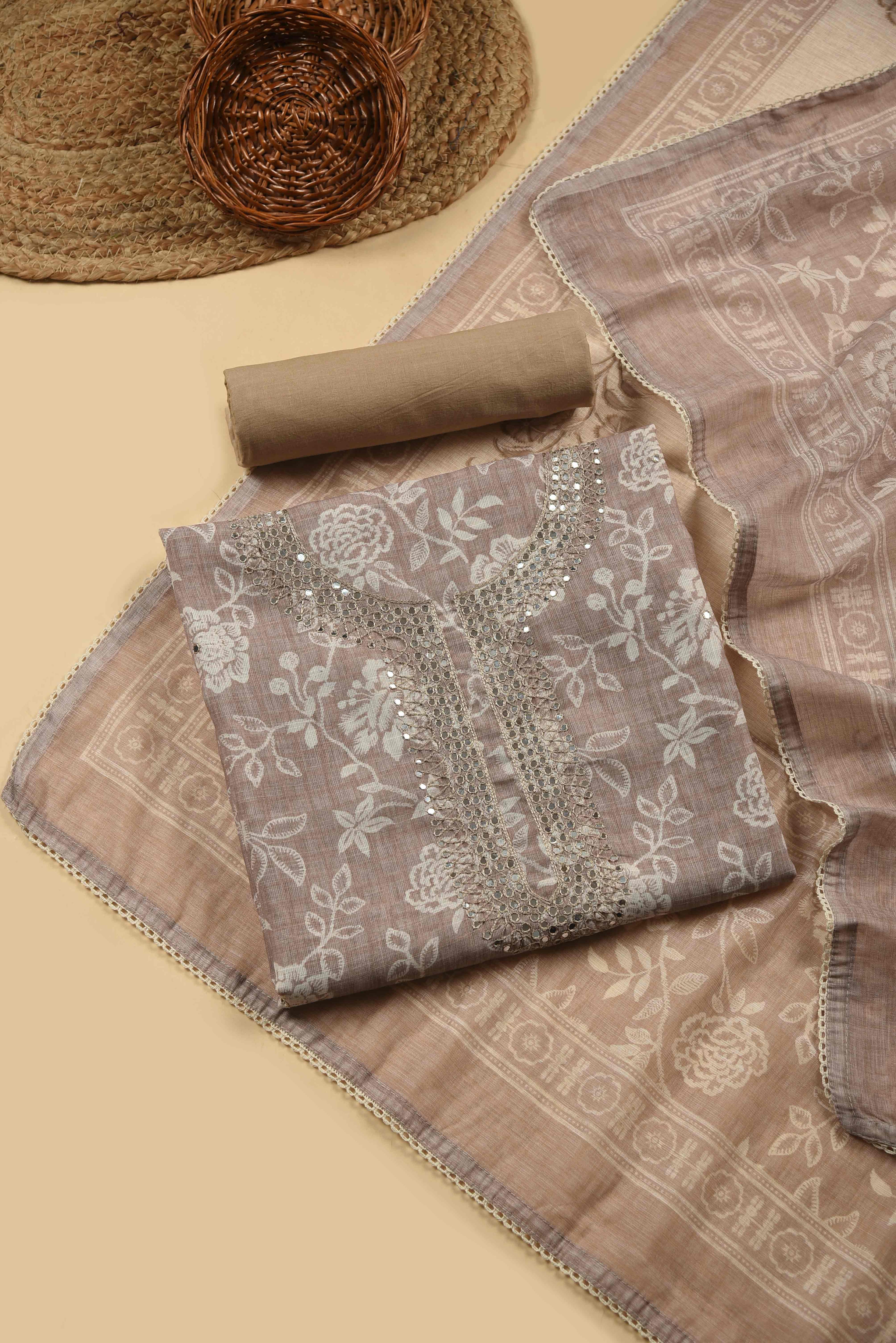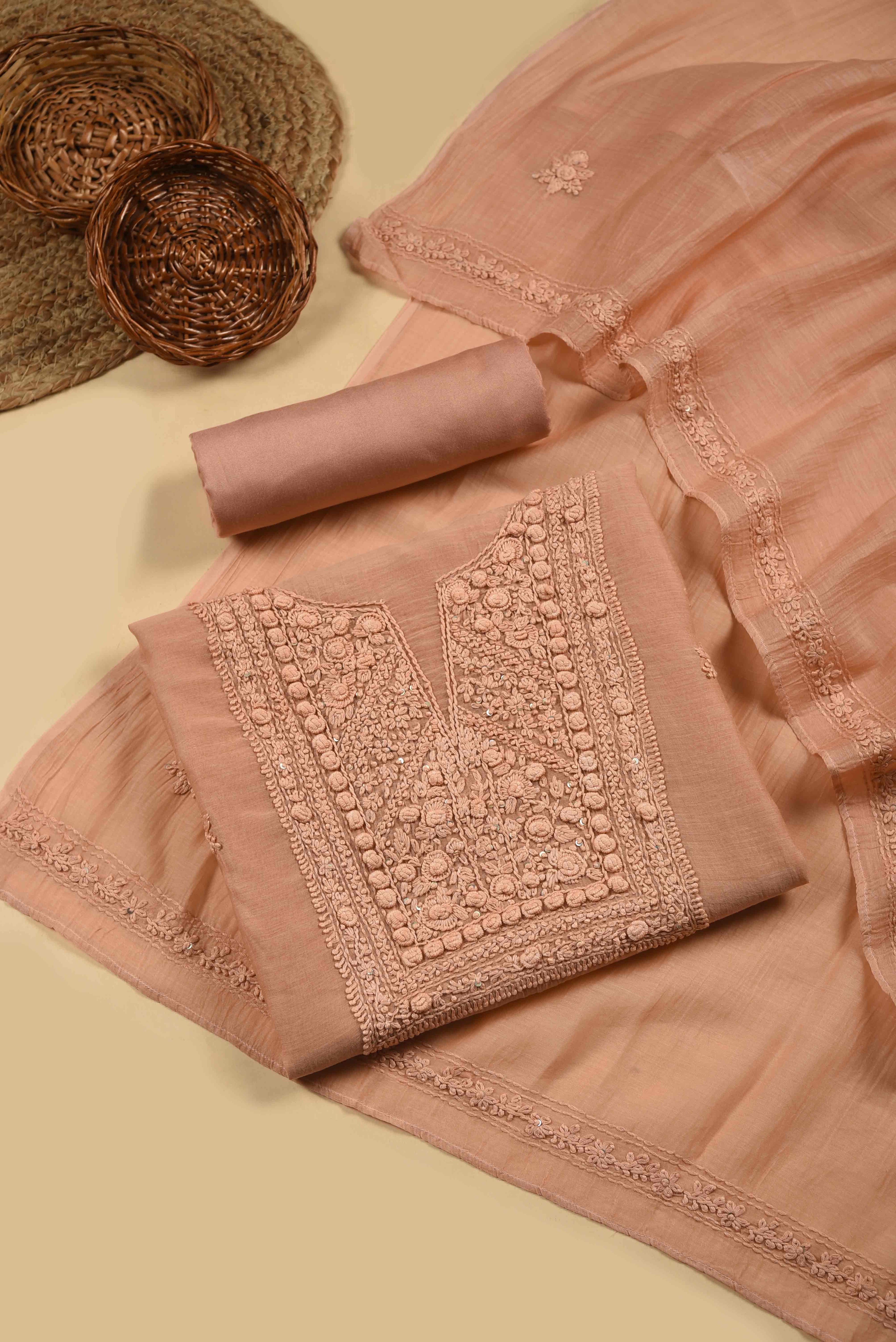 Light Mauve Mul Chanderi Embroidered Unstitched Suit Fabric Set With Mul Chanderi Embroidered Dupatta