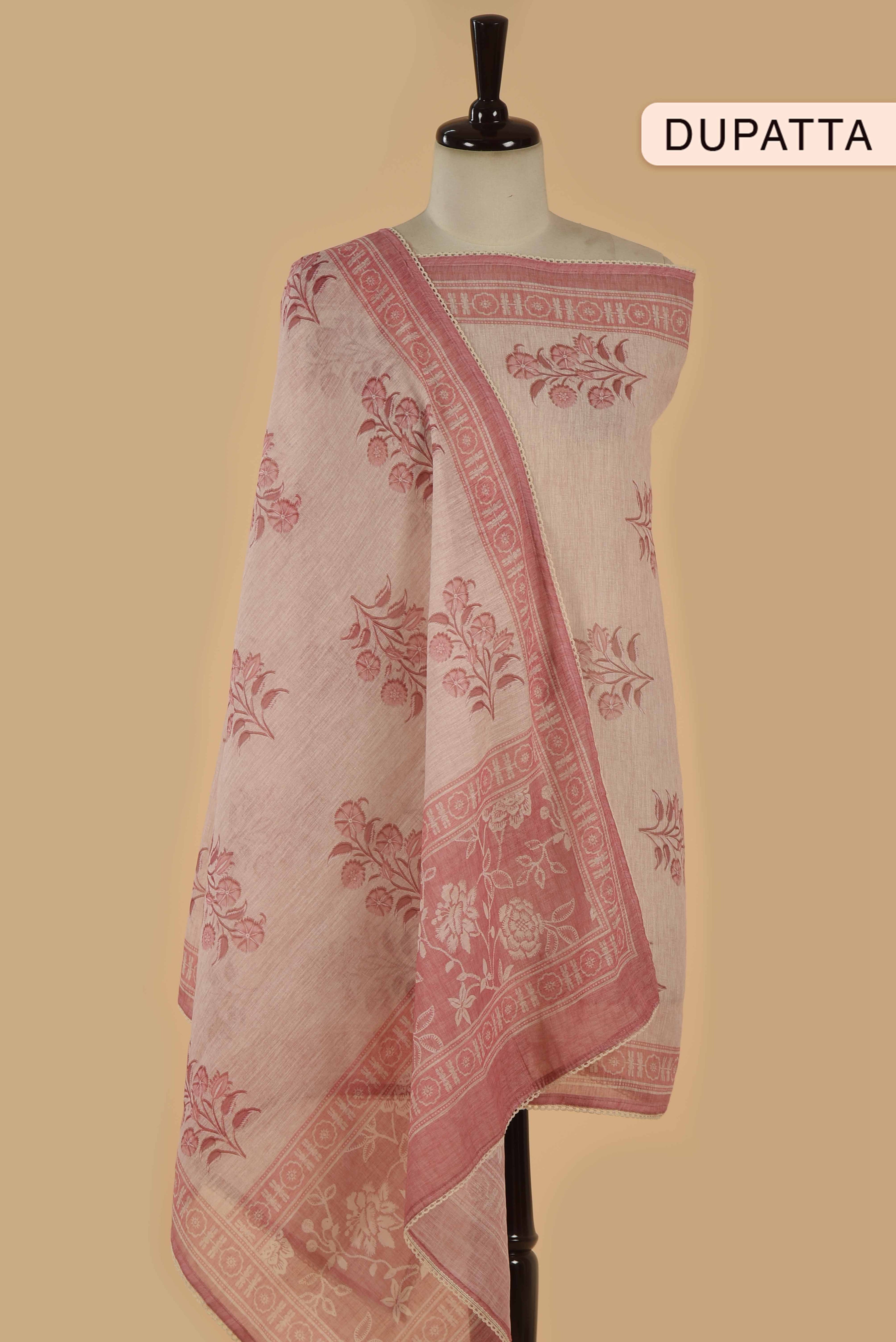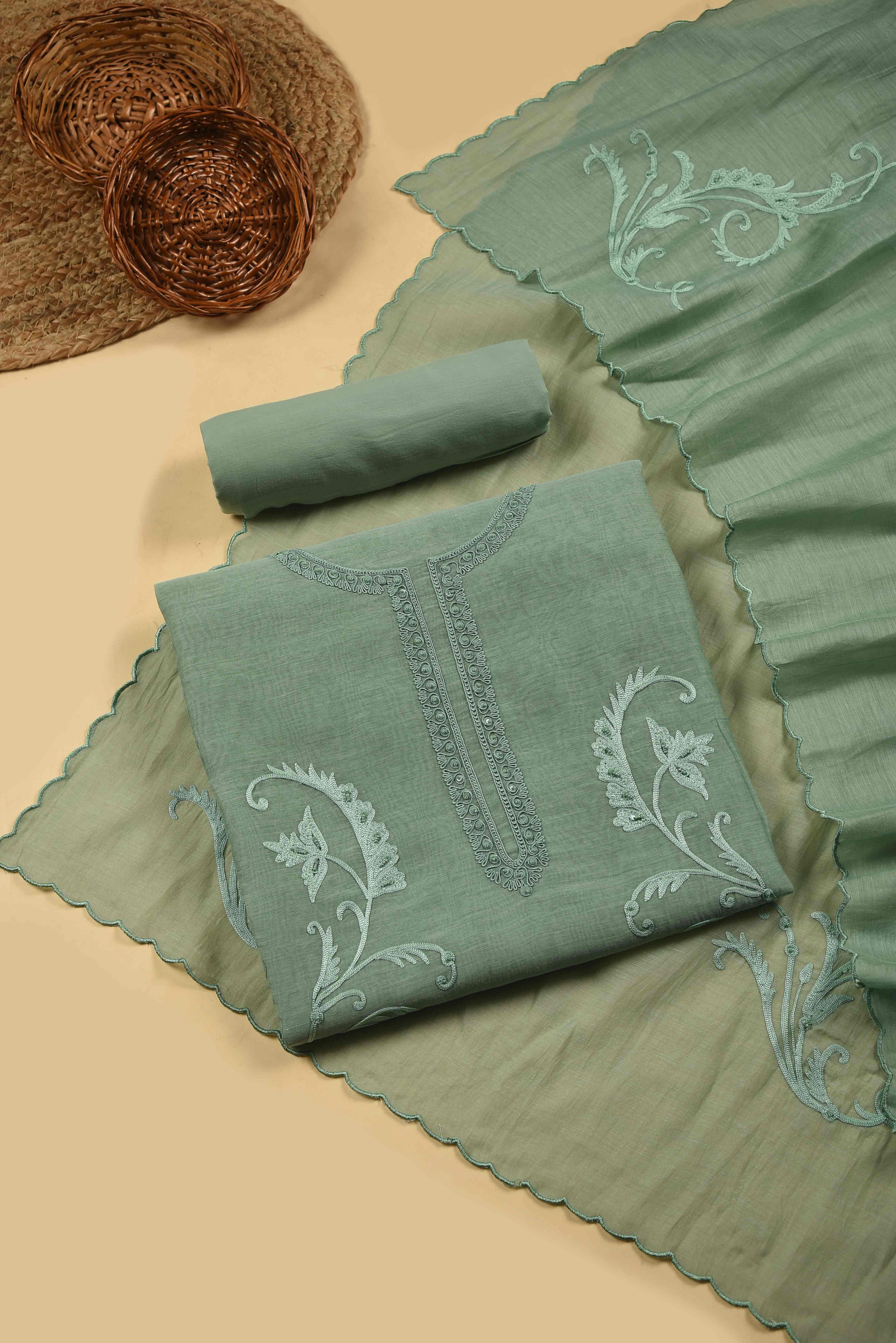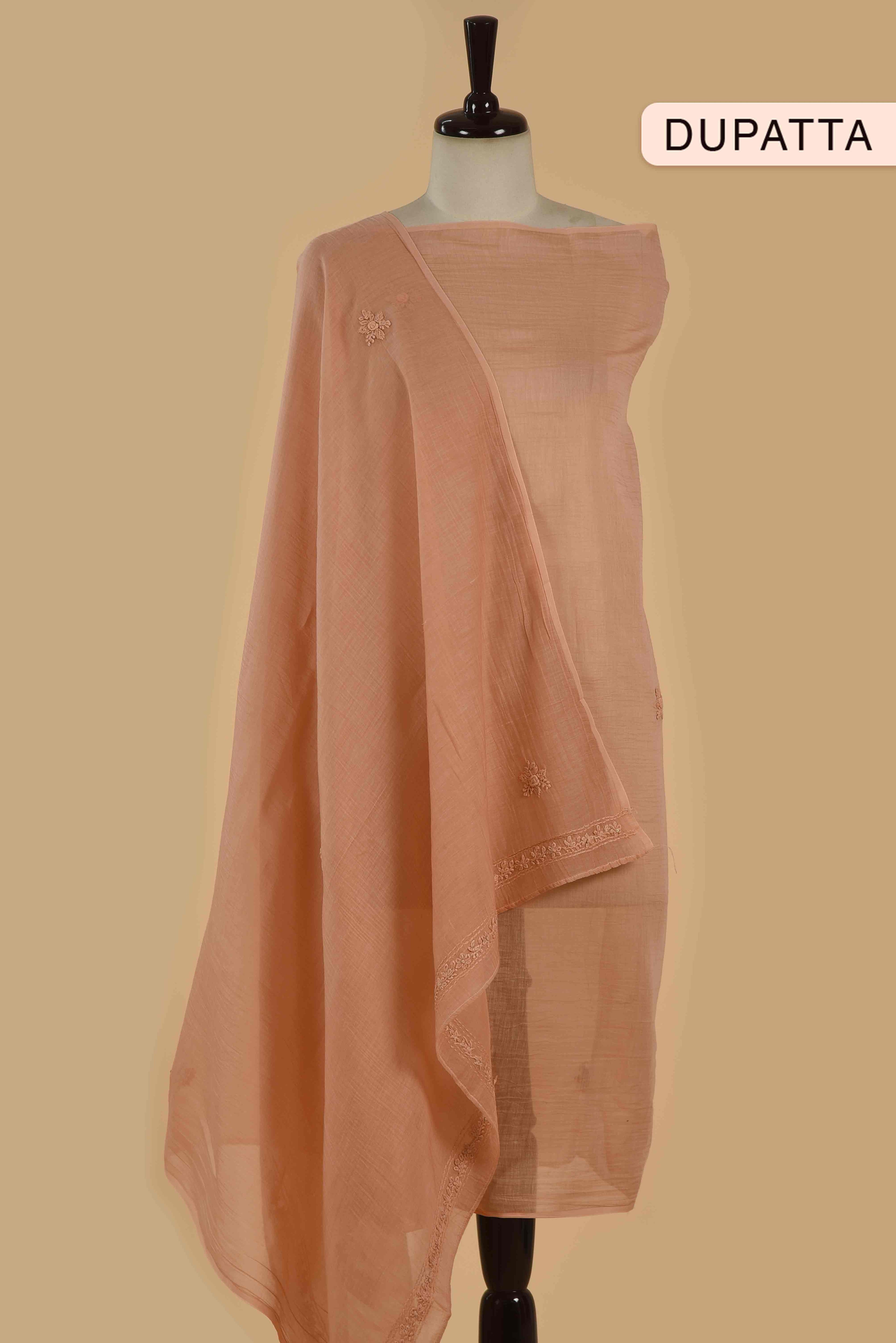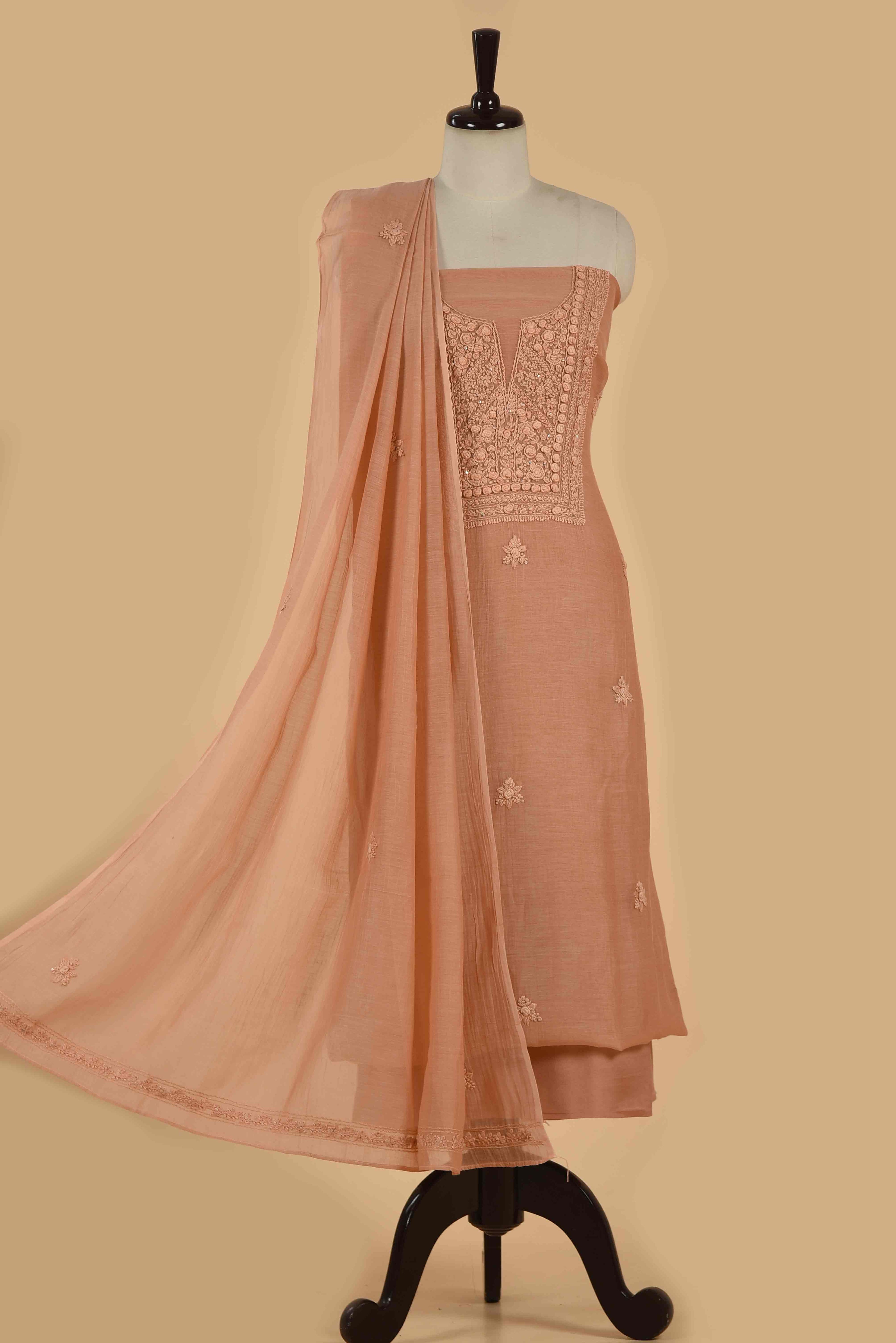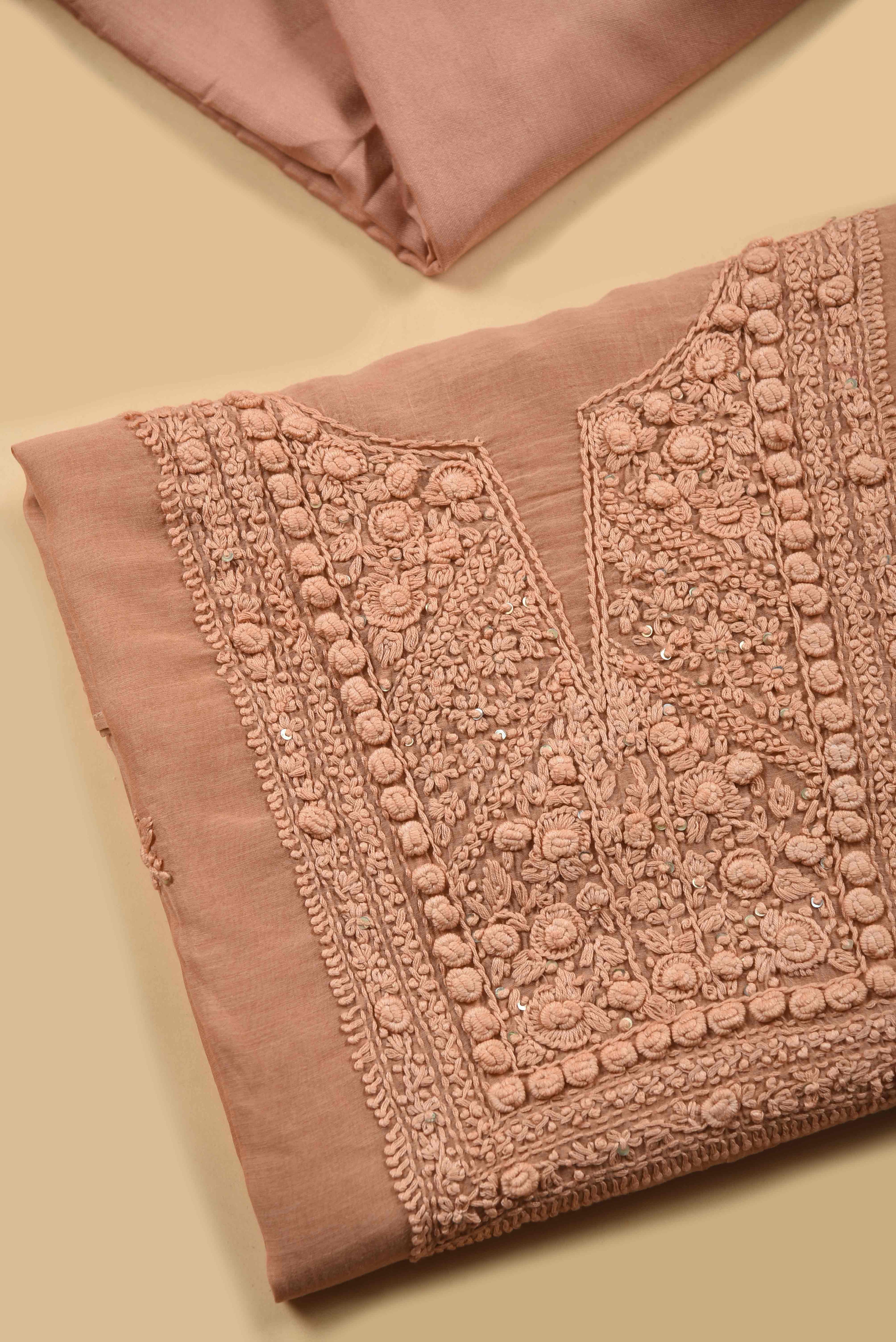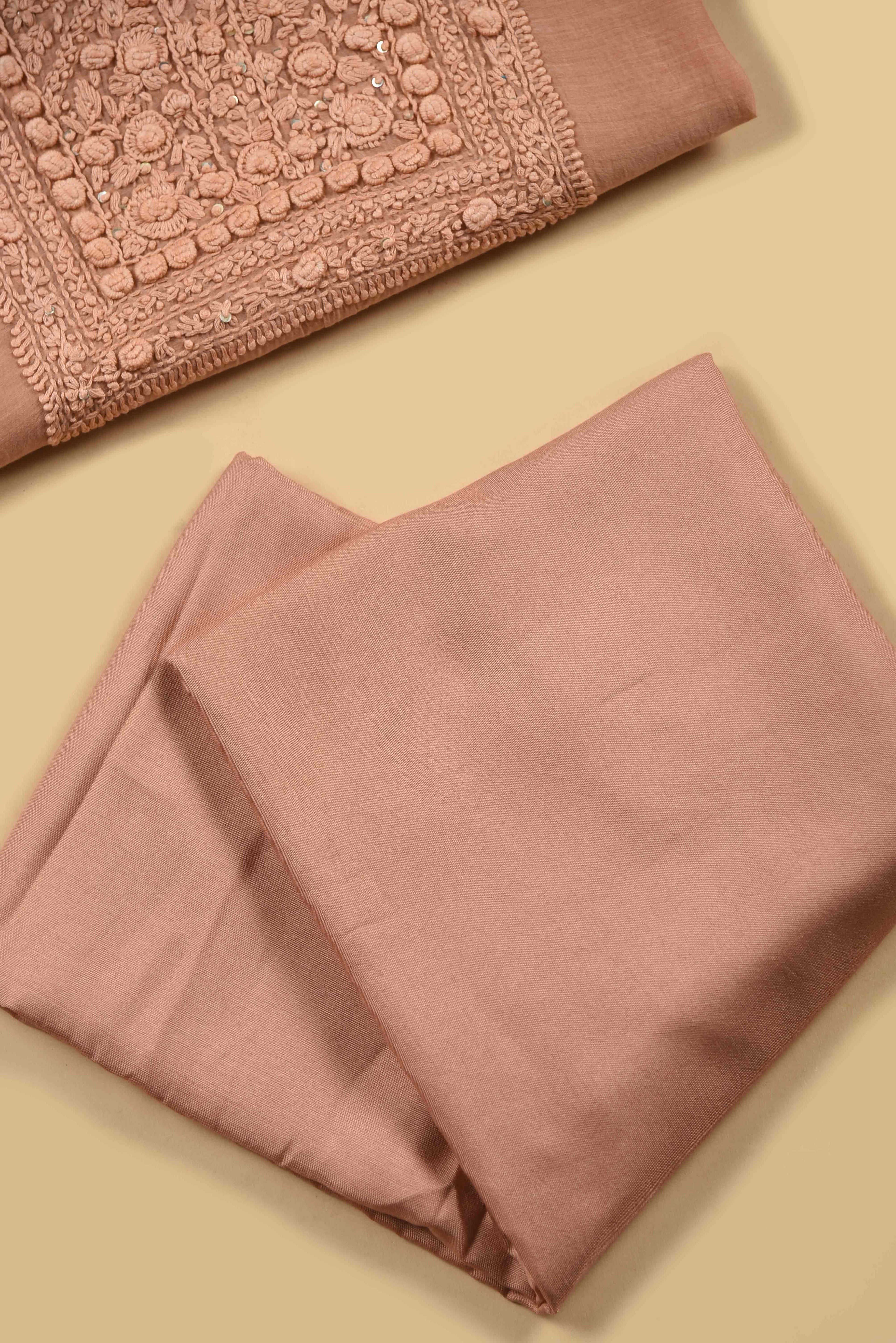 Light Mauve Mul Chanderi Embroidered Unstitched Suit Fabric Set With Mul Chanderi Embroidered Dupatta