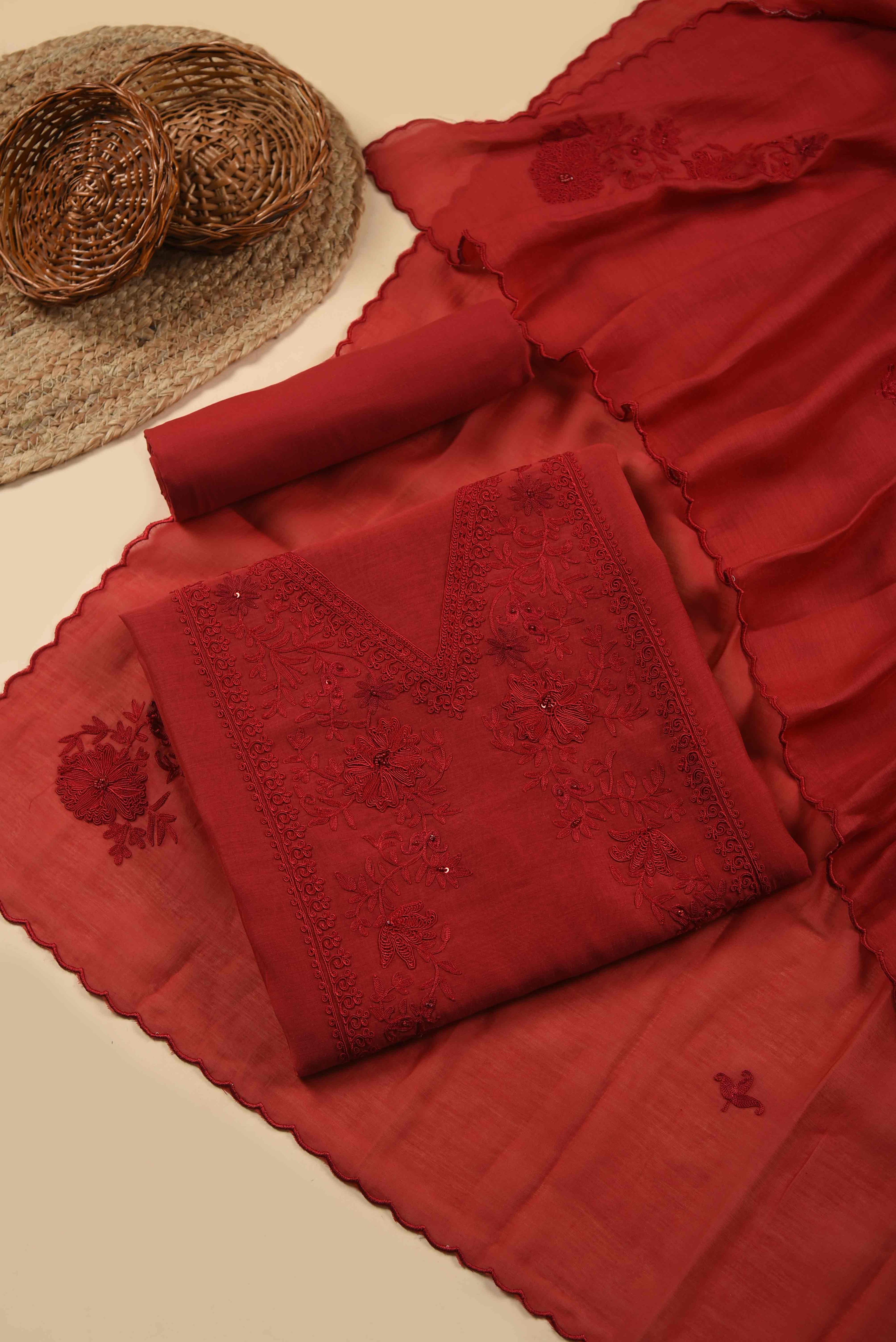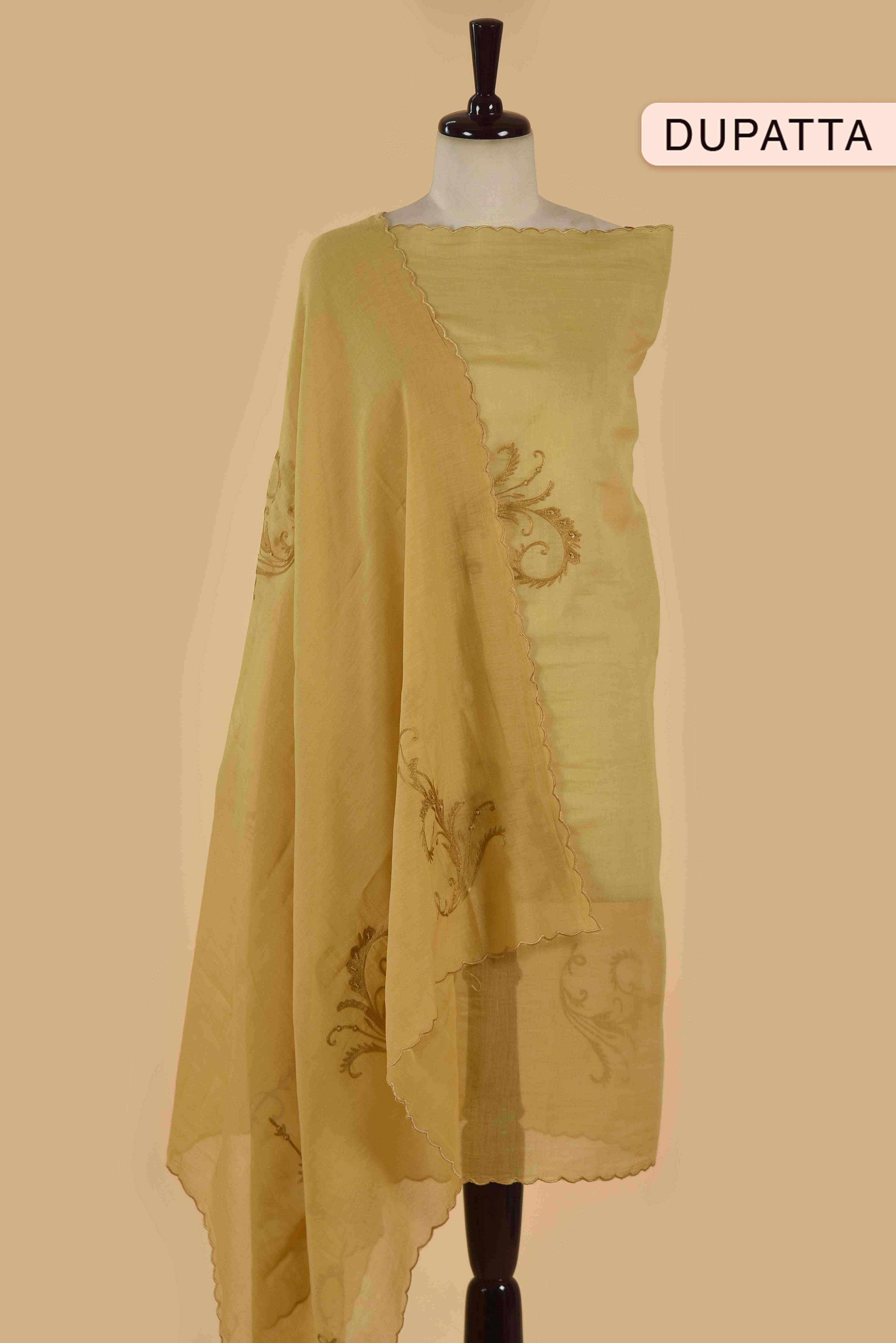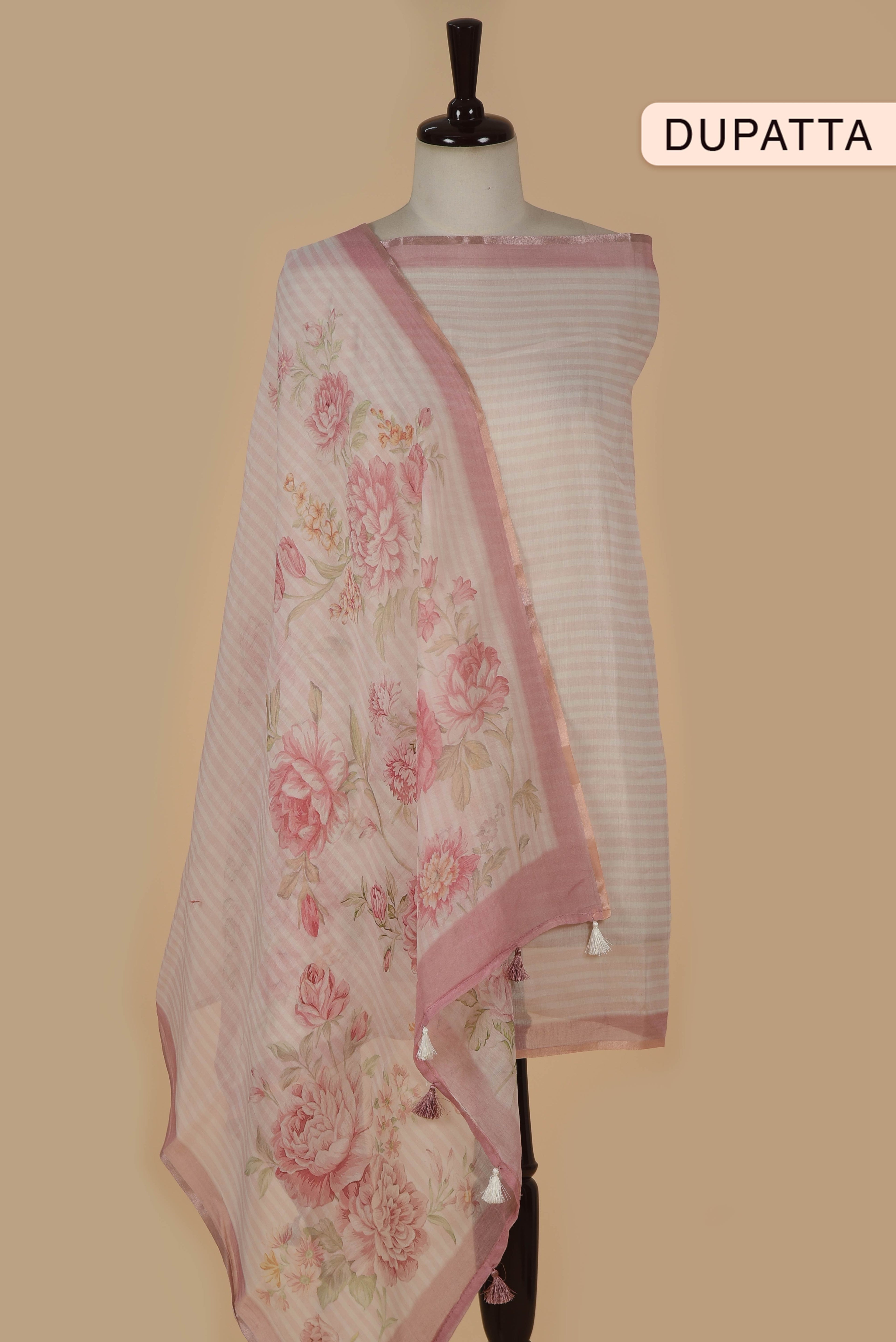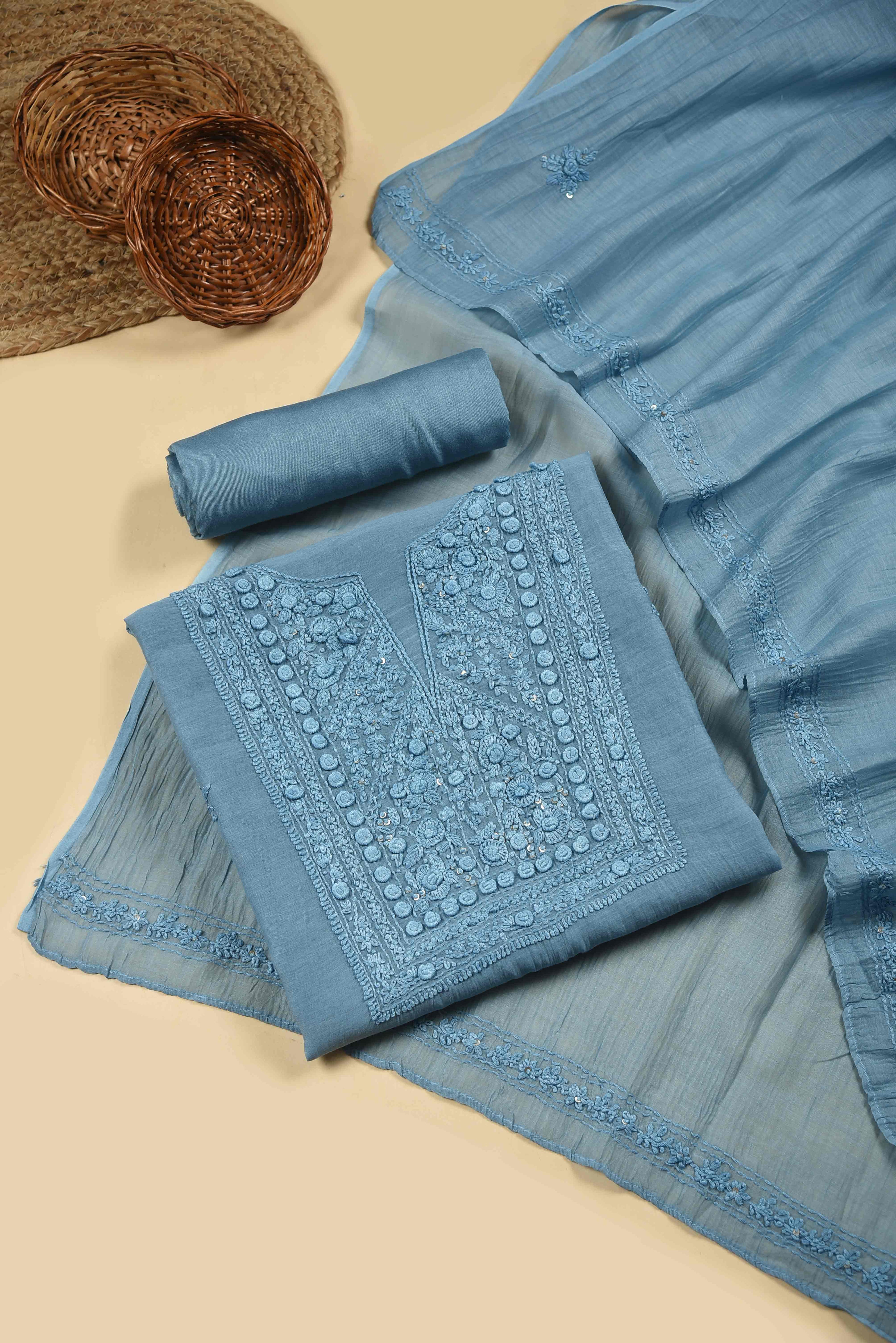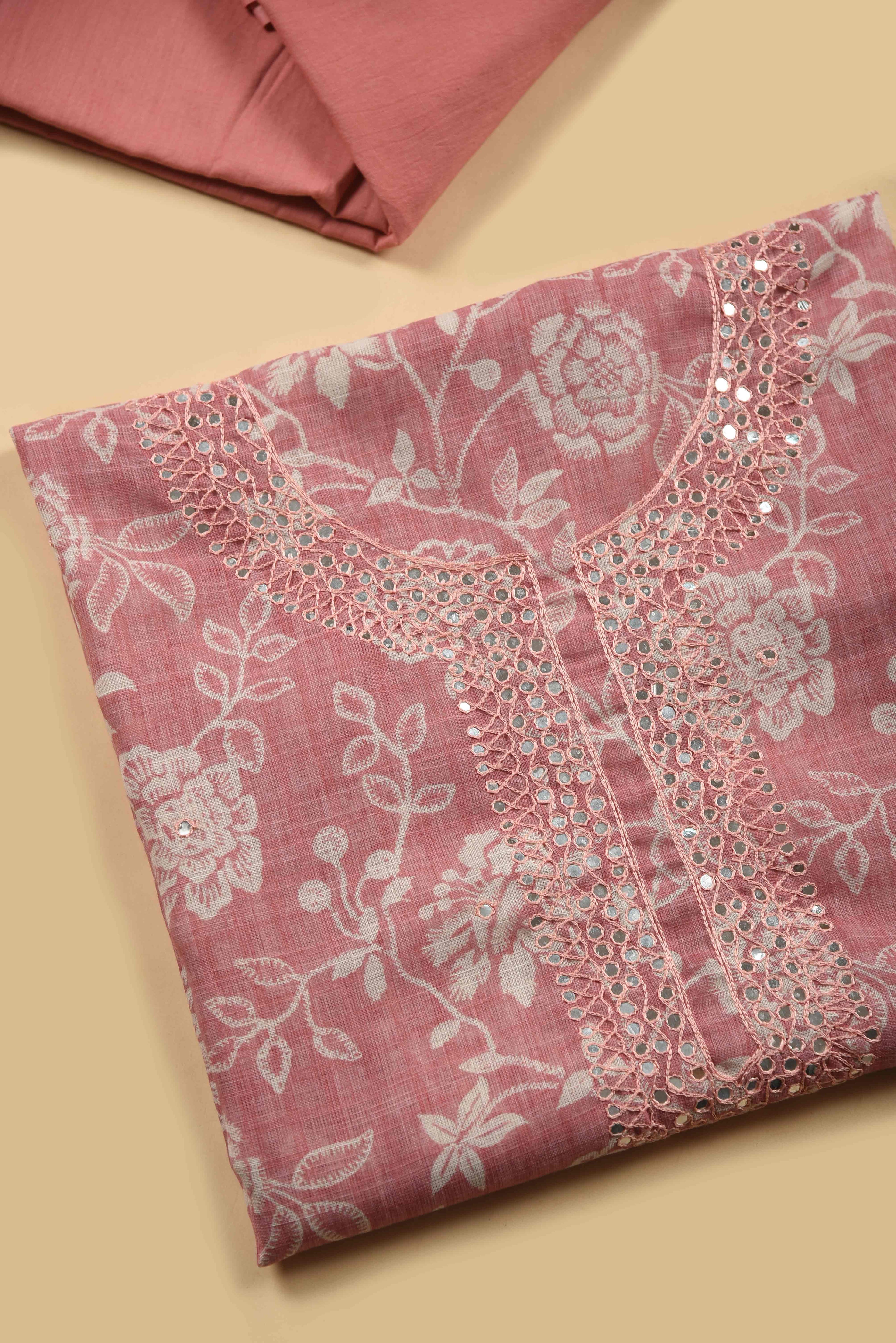 Light Mauve Mul Chanderi Embroidered Unstitched Suit Fabric Set With Mul Chanderi Embroidered Dupatta