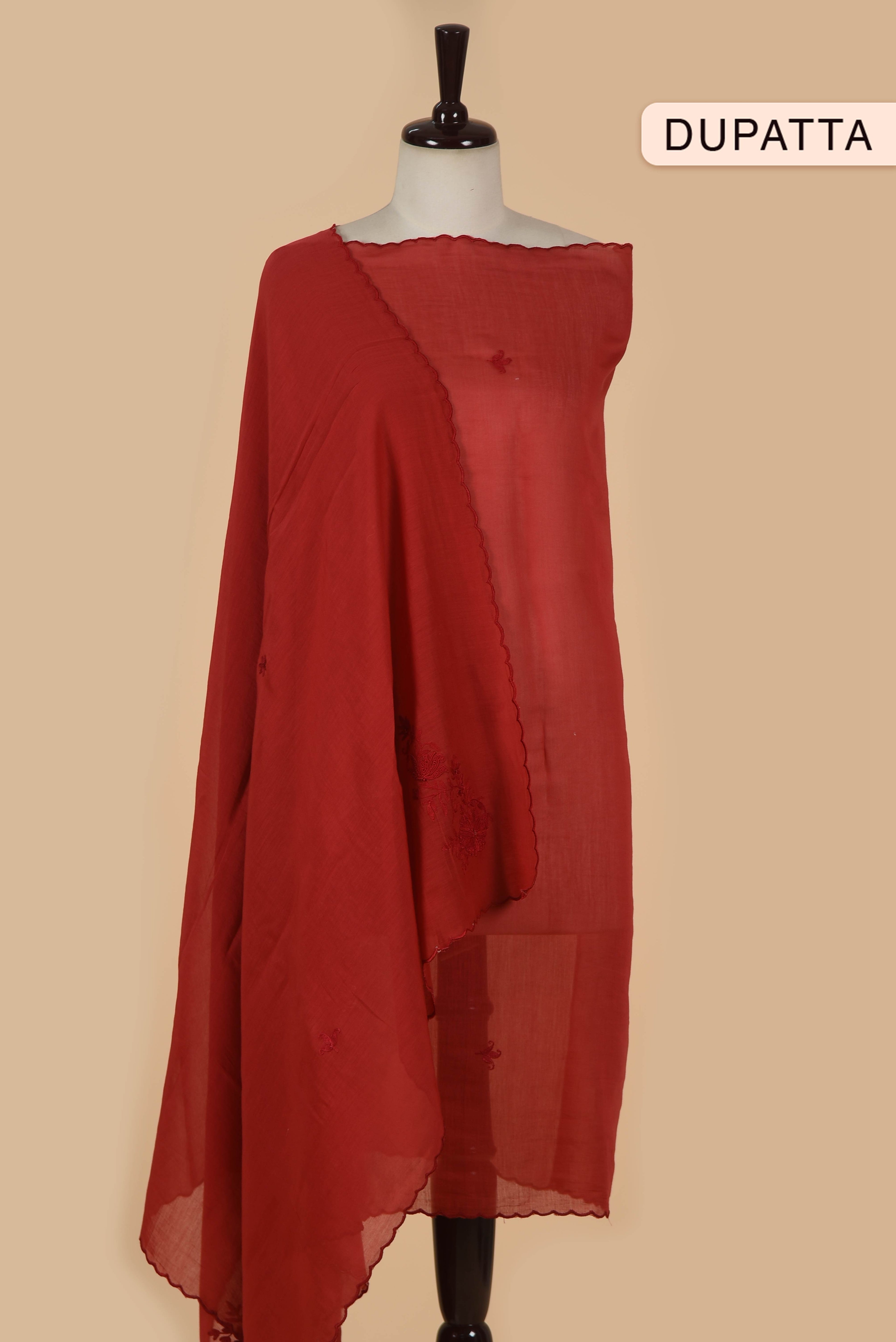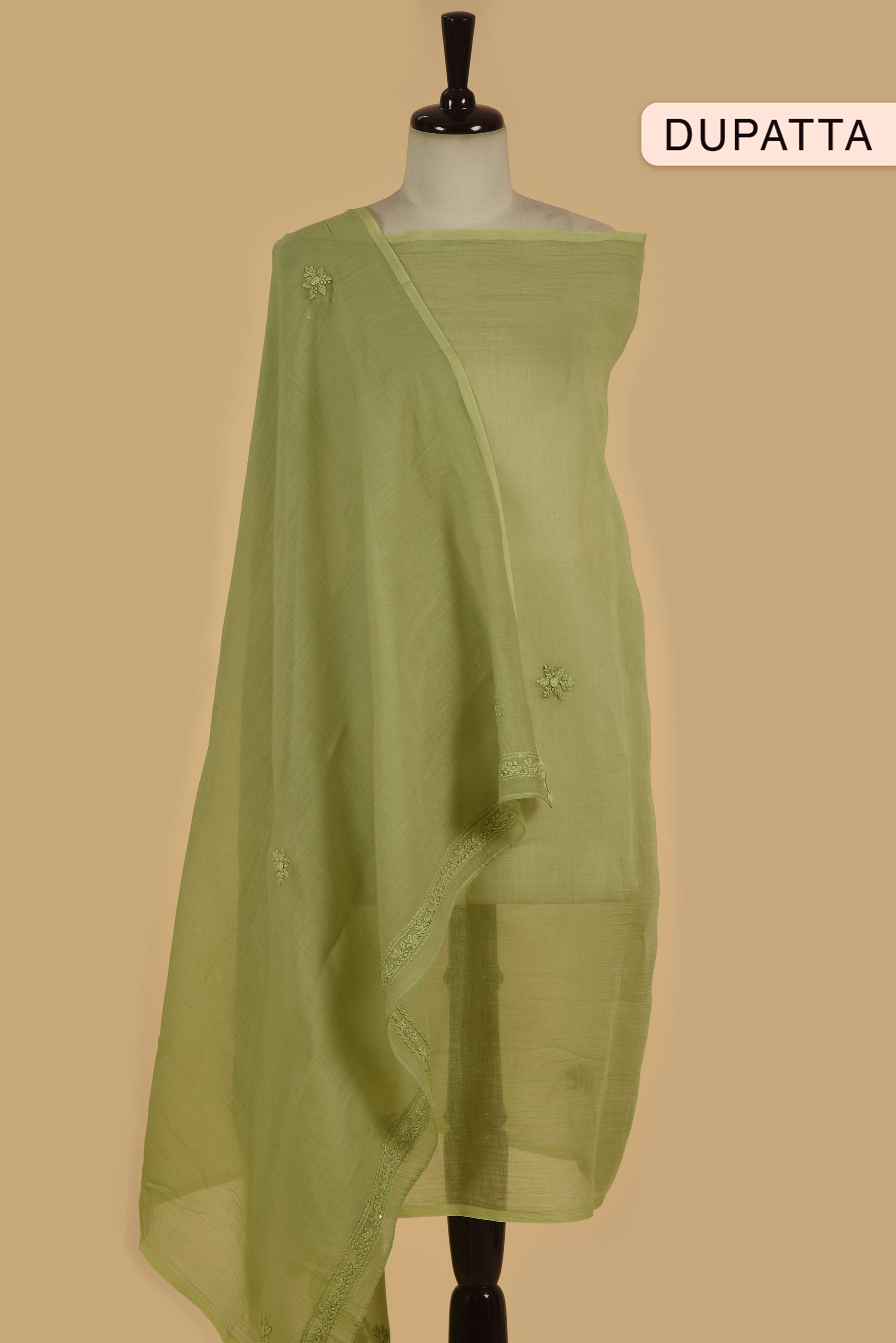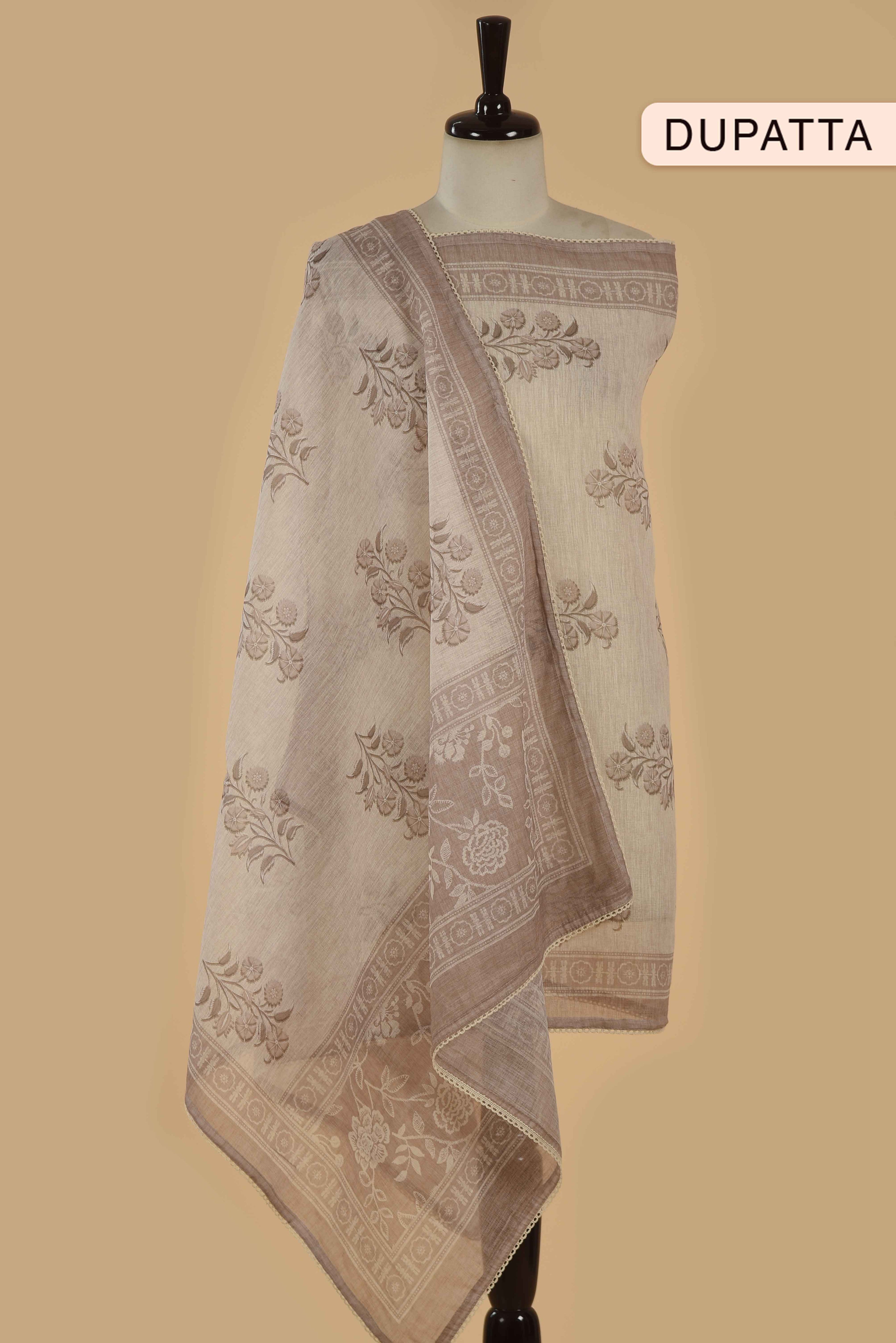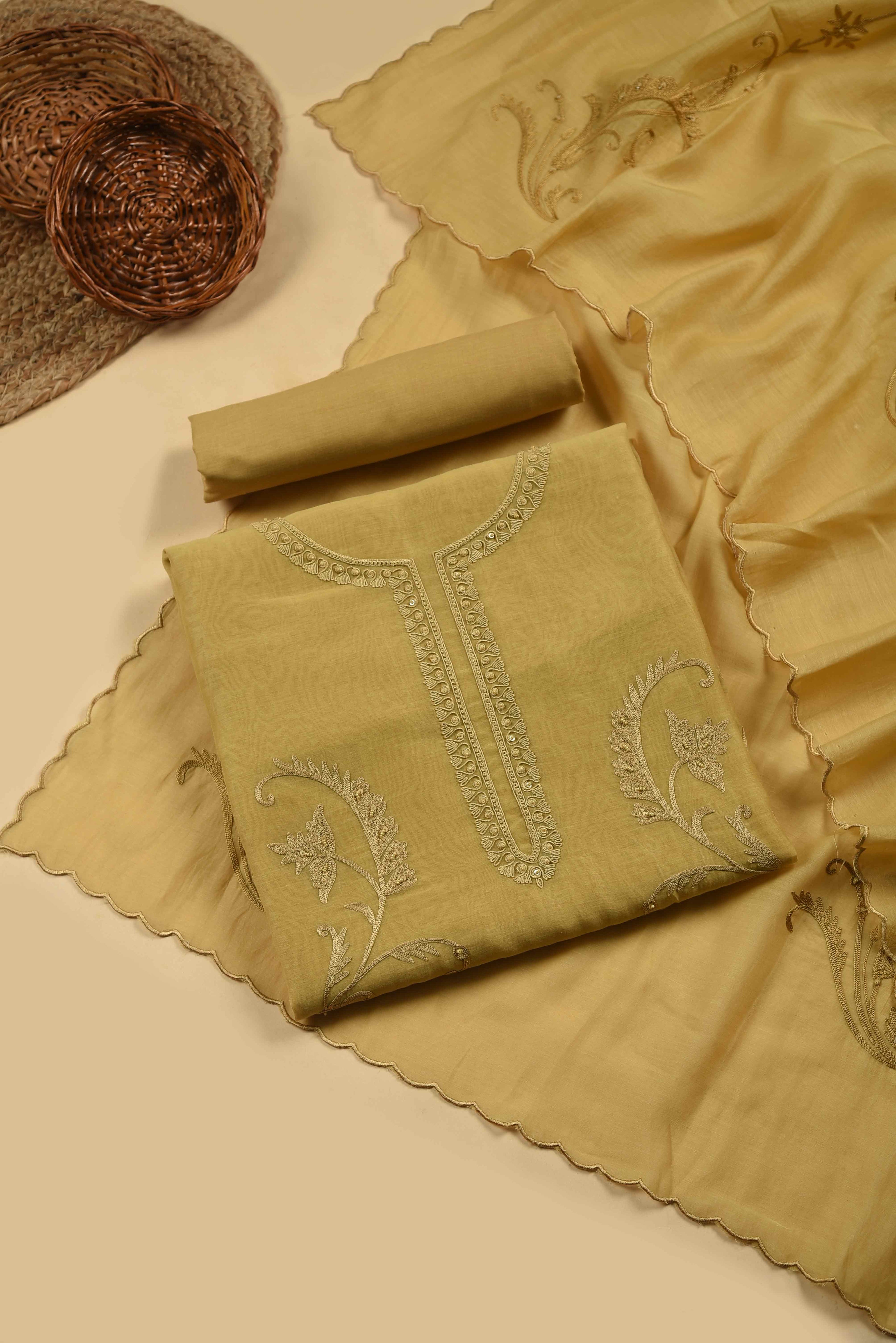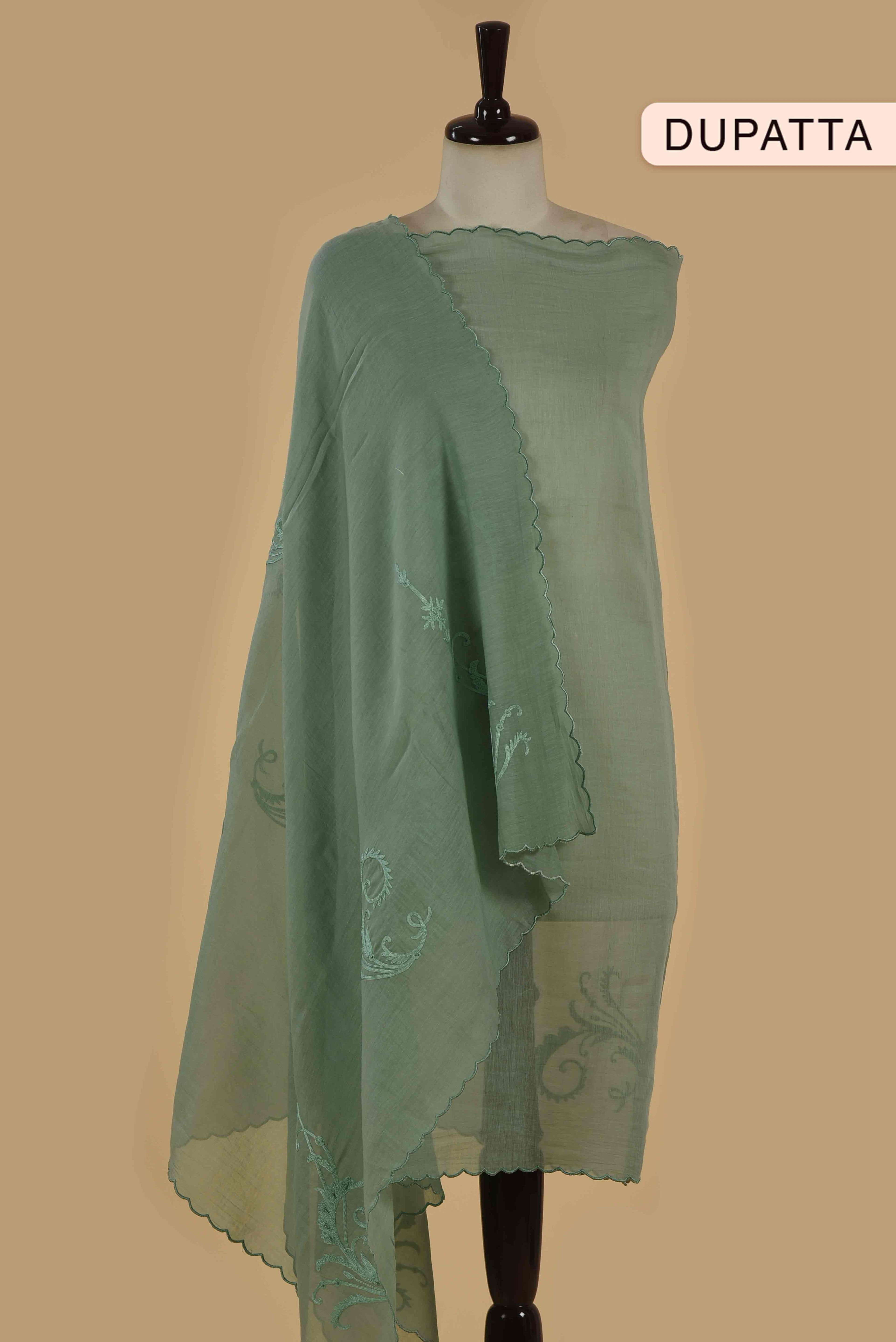 Light Mauve Mul Chanderi Embroidered Unstitched Suit Fabric Set With Mul Chanderi Embroidered Dupatta