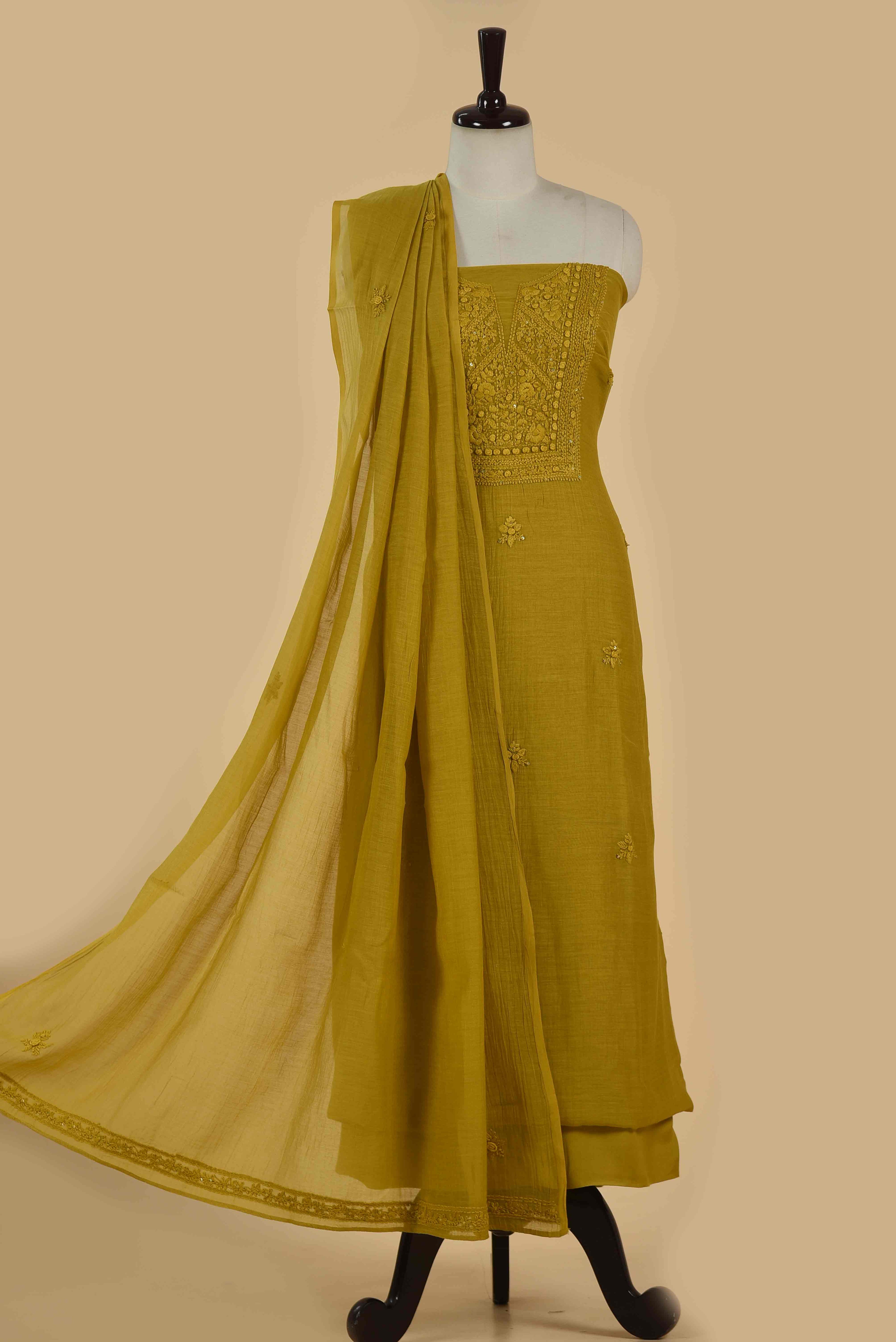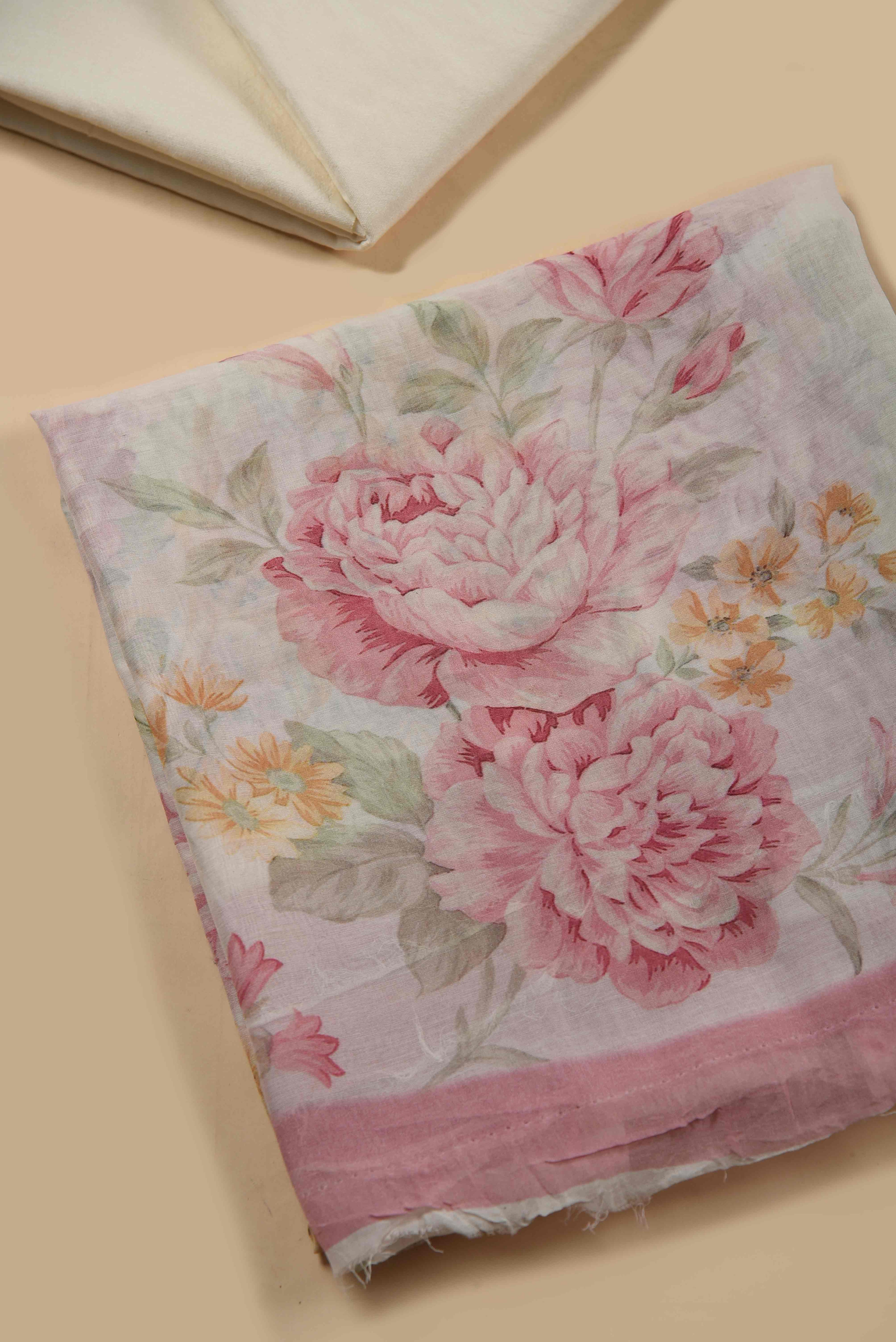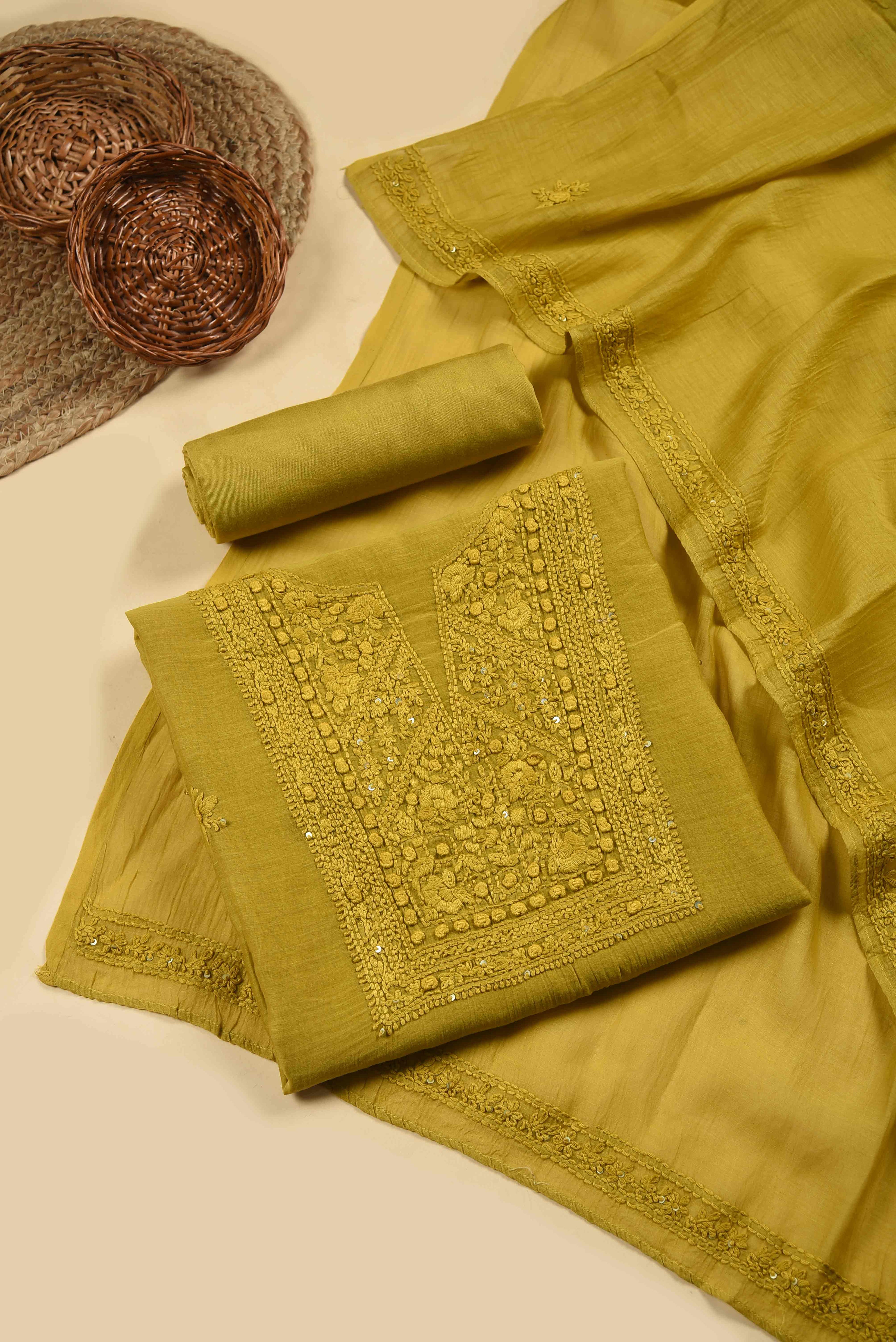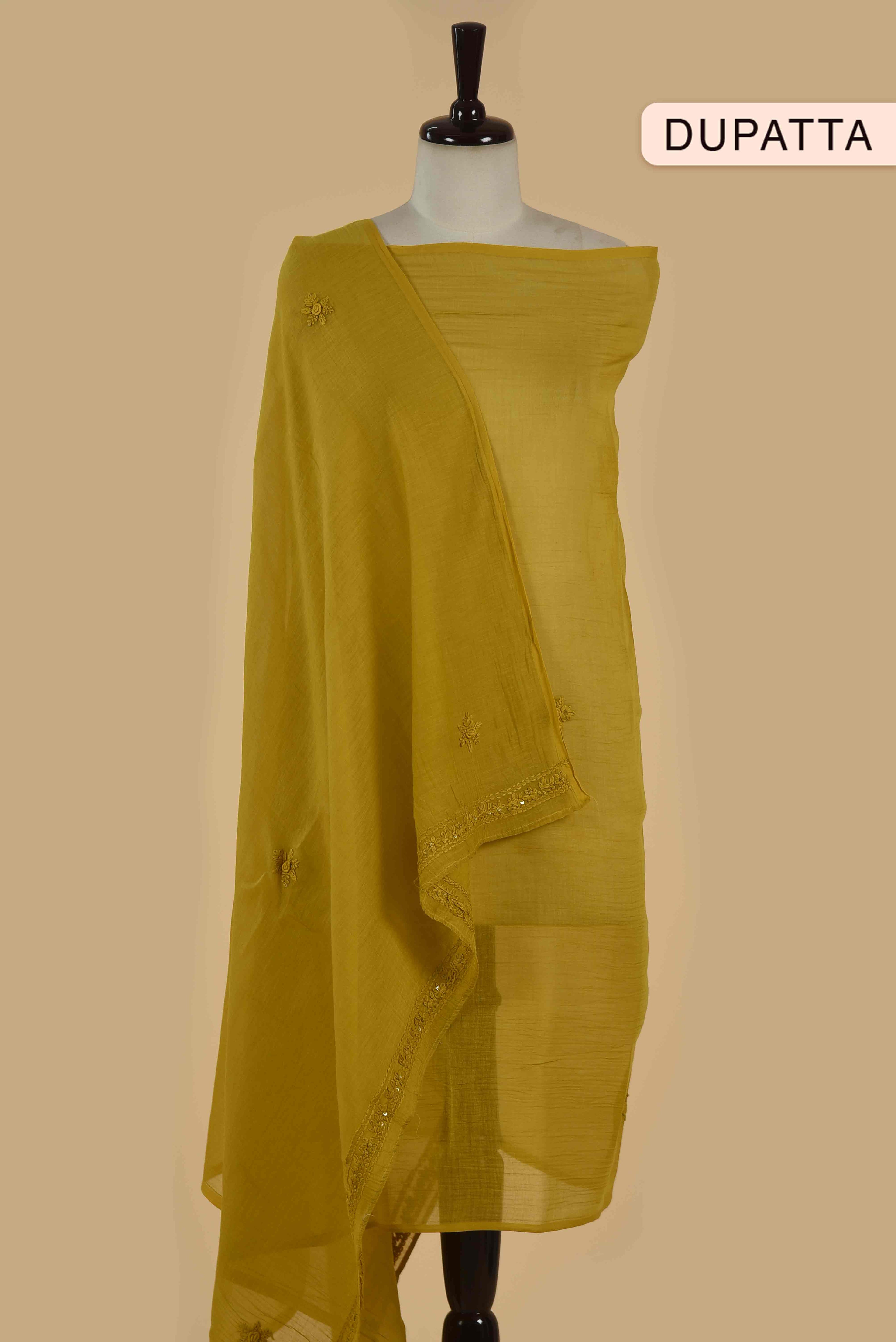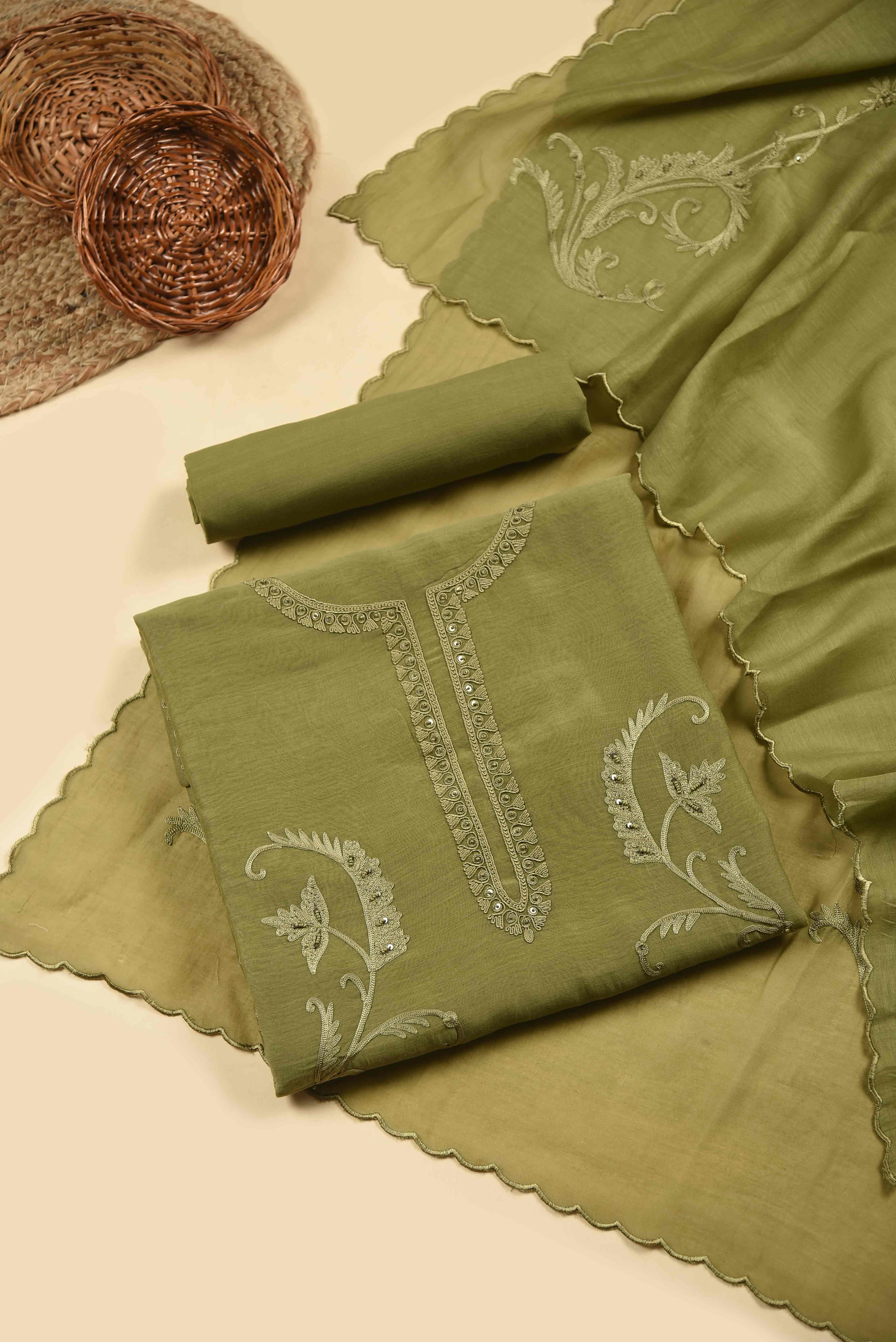 Light Mauve Mul Chanderi Embroidered Unstitched Suit Fabric Set With Mul Chanderi Embroidered Dupatta