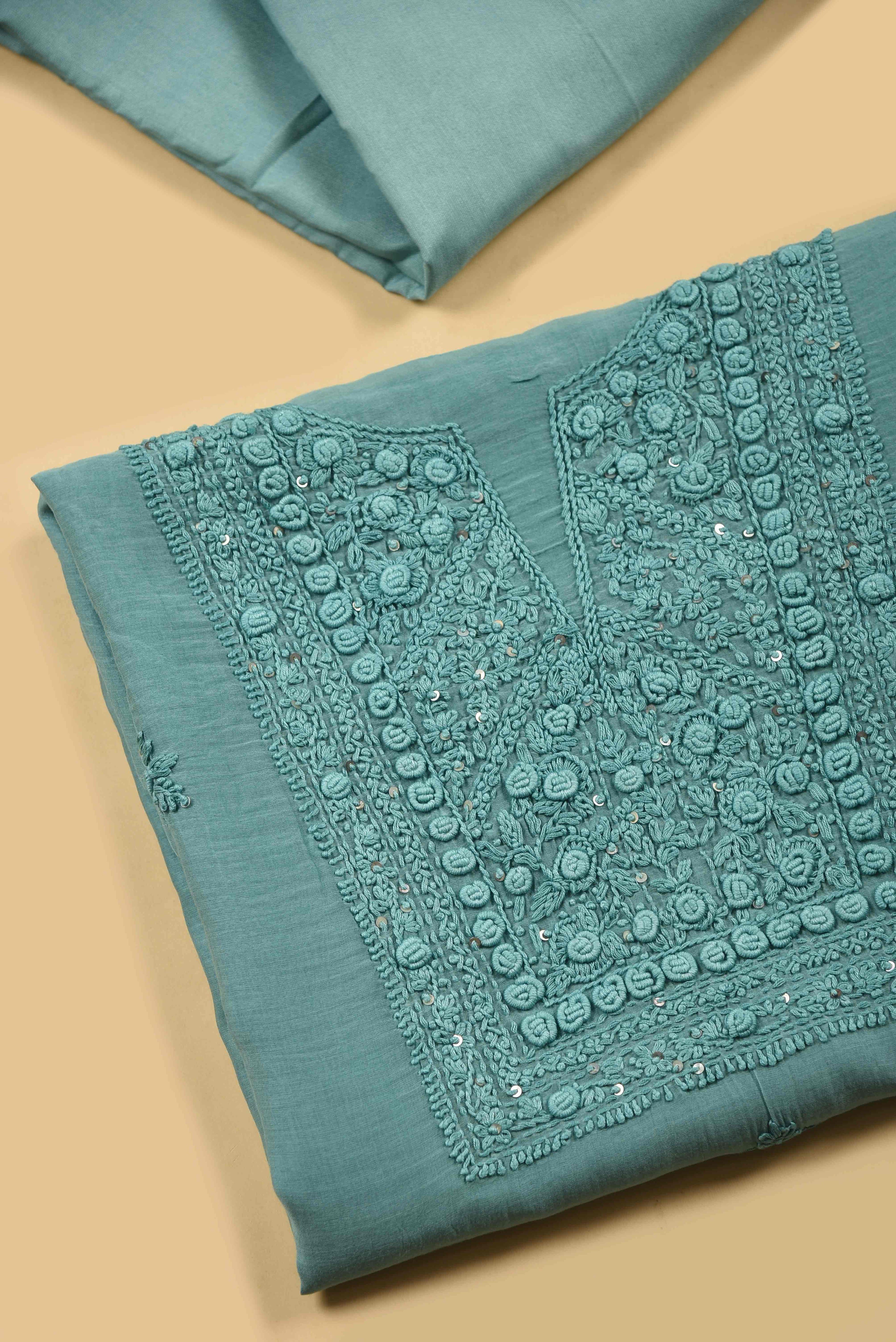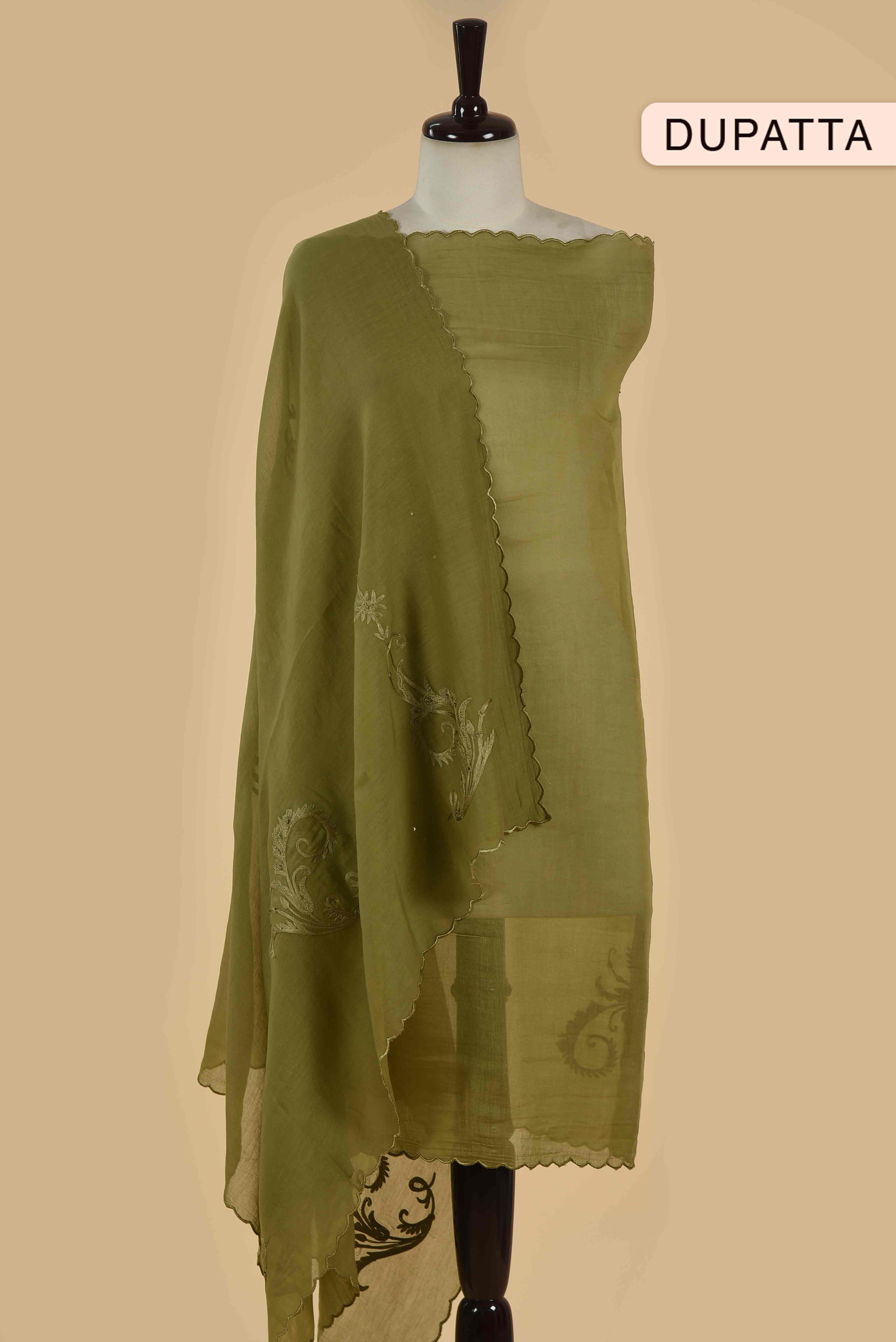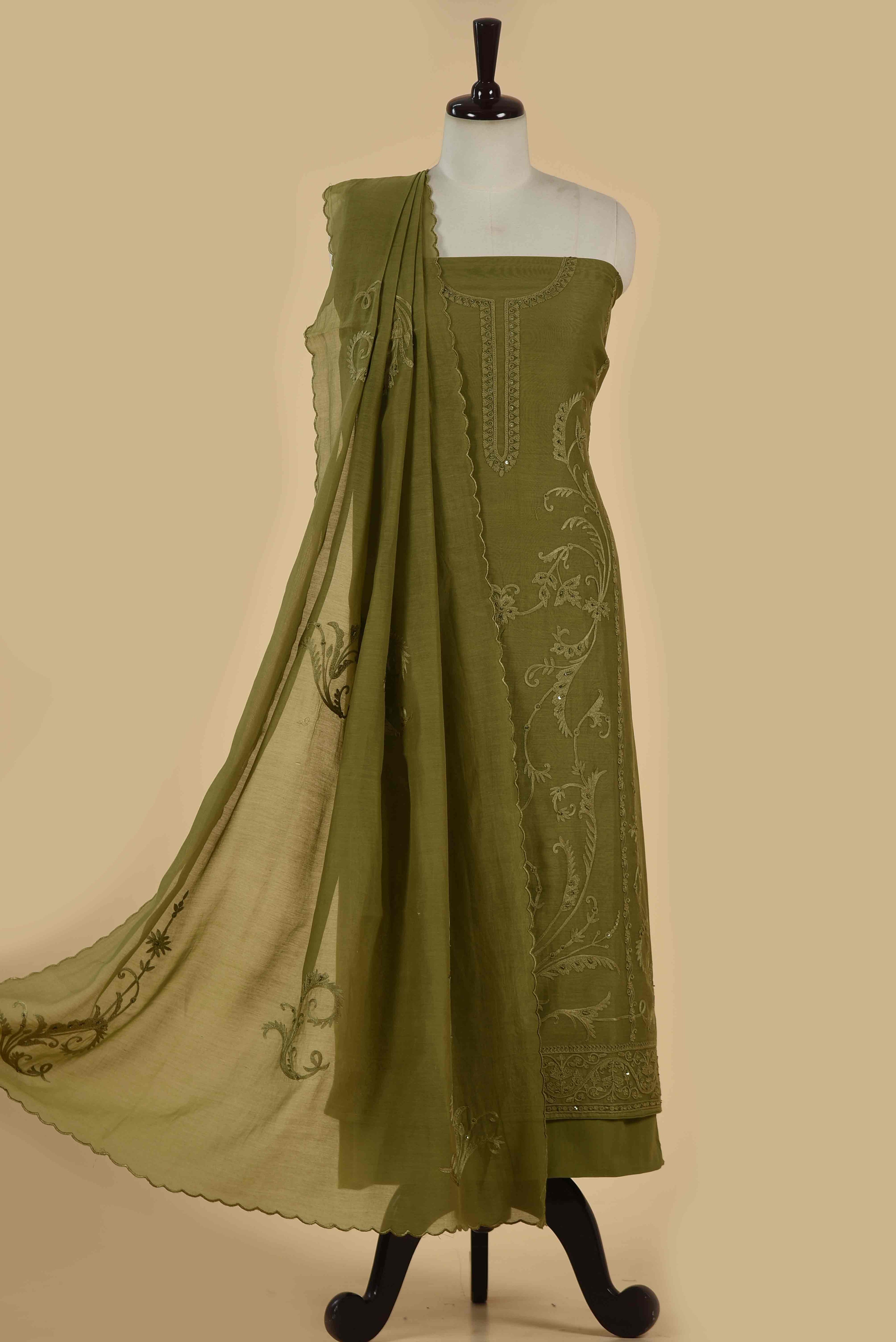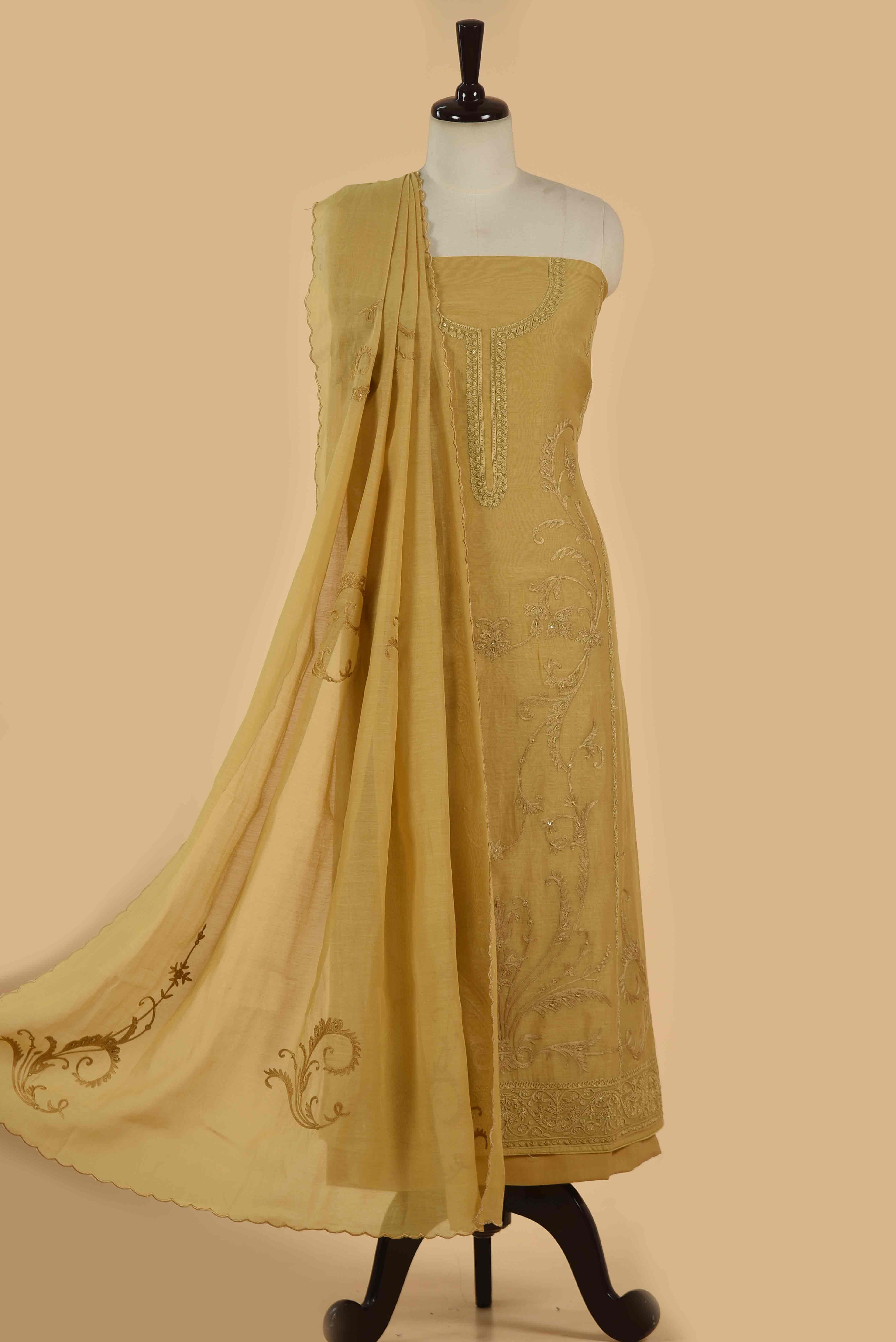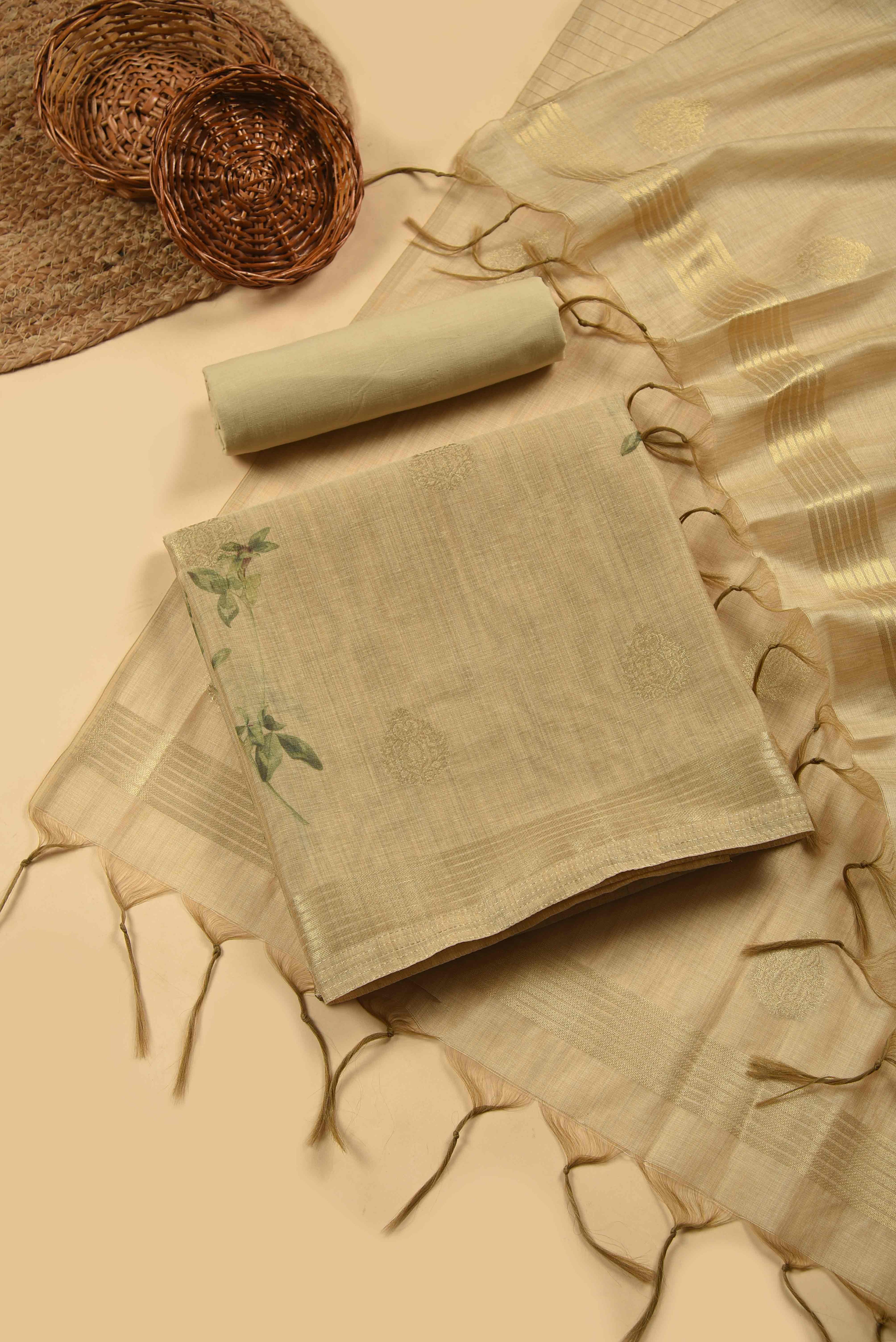 Light Mauve Mul Chanderi Embroidered Unstitched Suit Fabric Set With Mul Chanderi Embroidered Dupatta