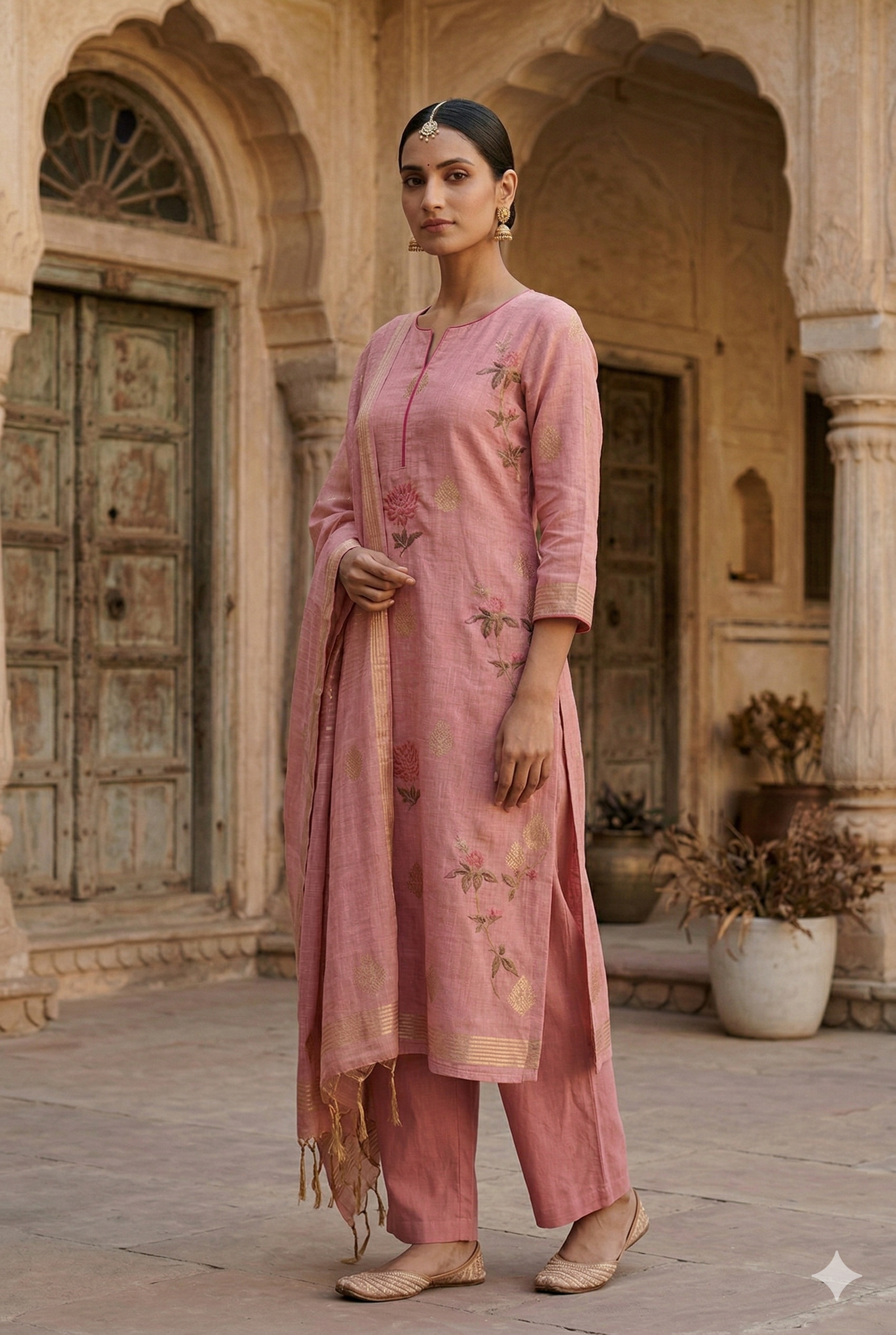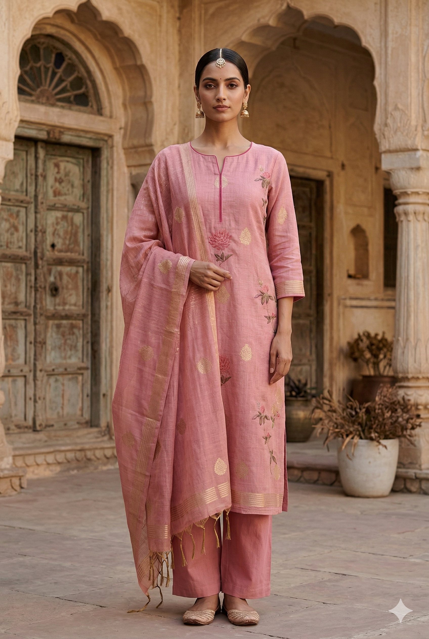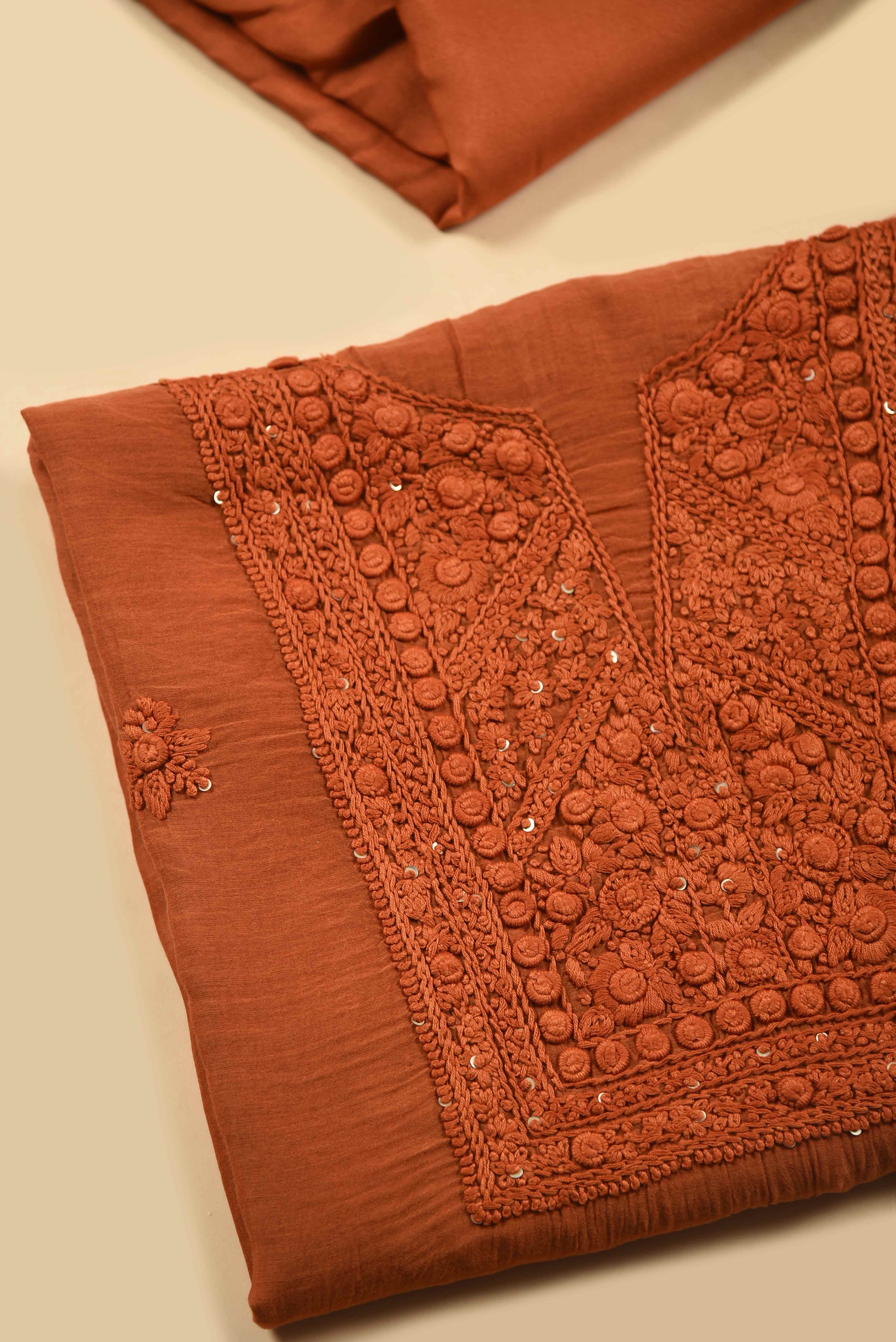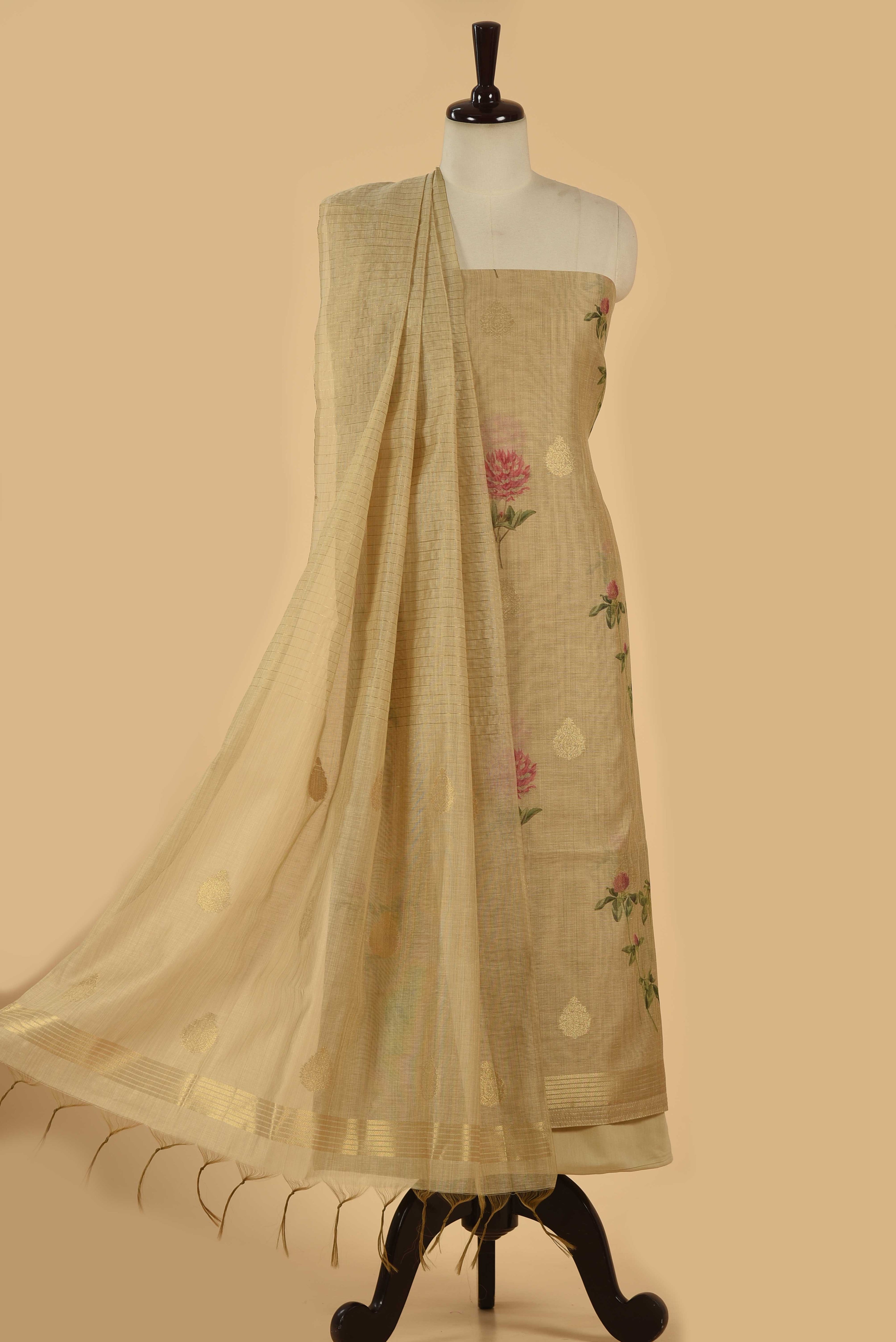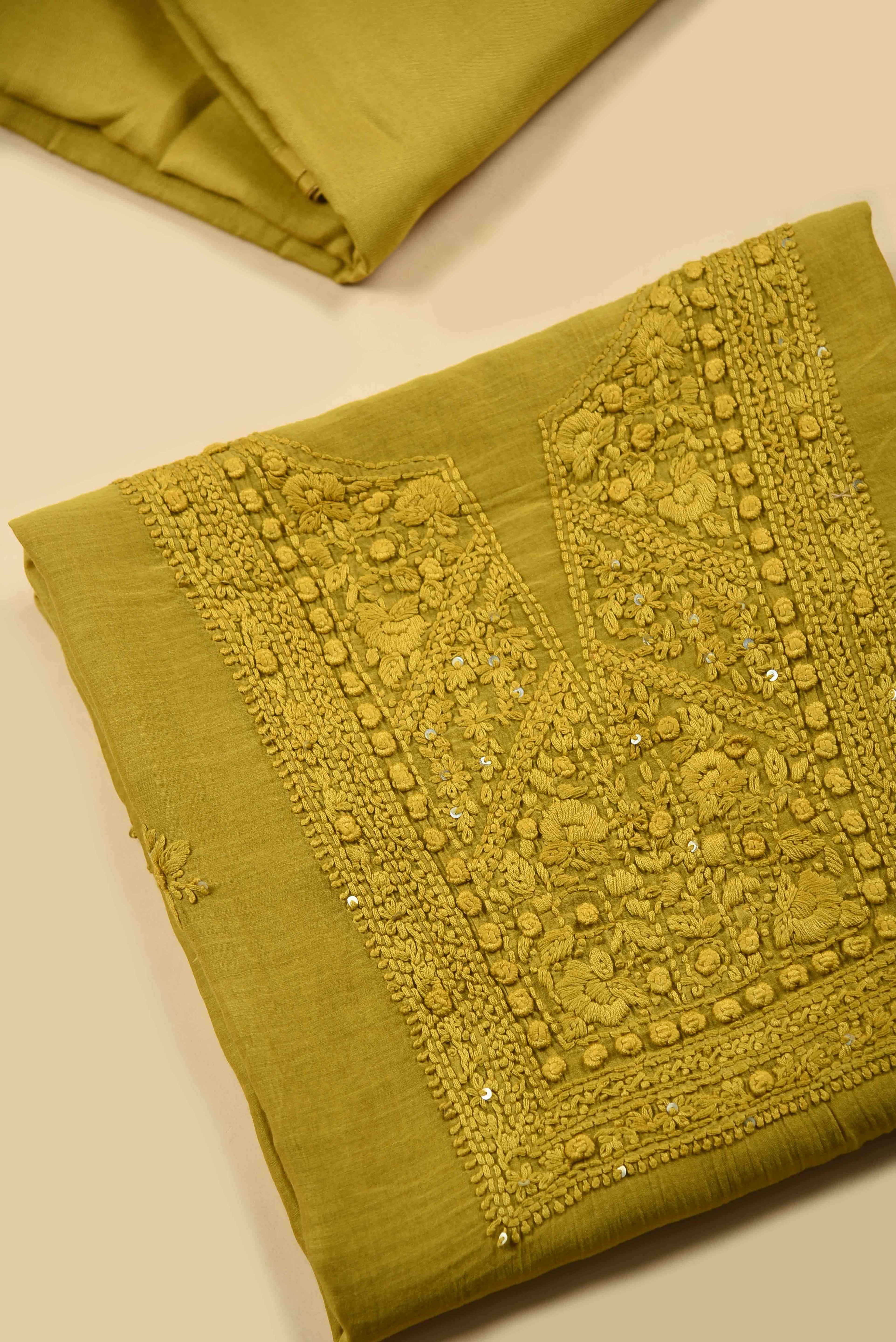 Light Mauve Mul Chanderi Embroidered Unstitched Suit Fabric Set With Mul Chanderi Embroidered Dupatta