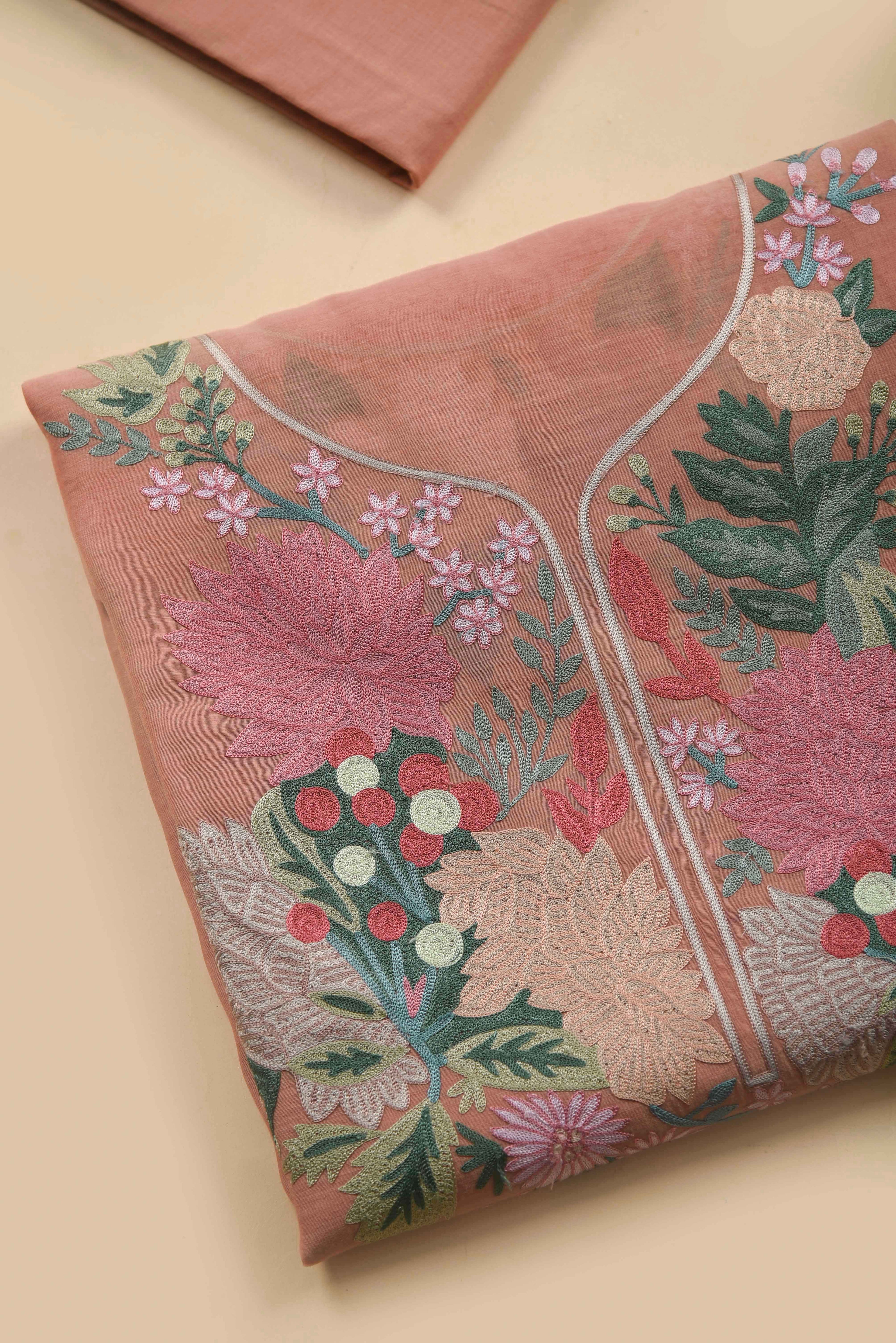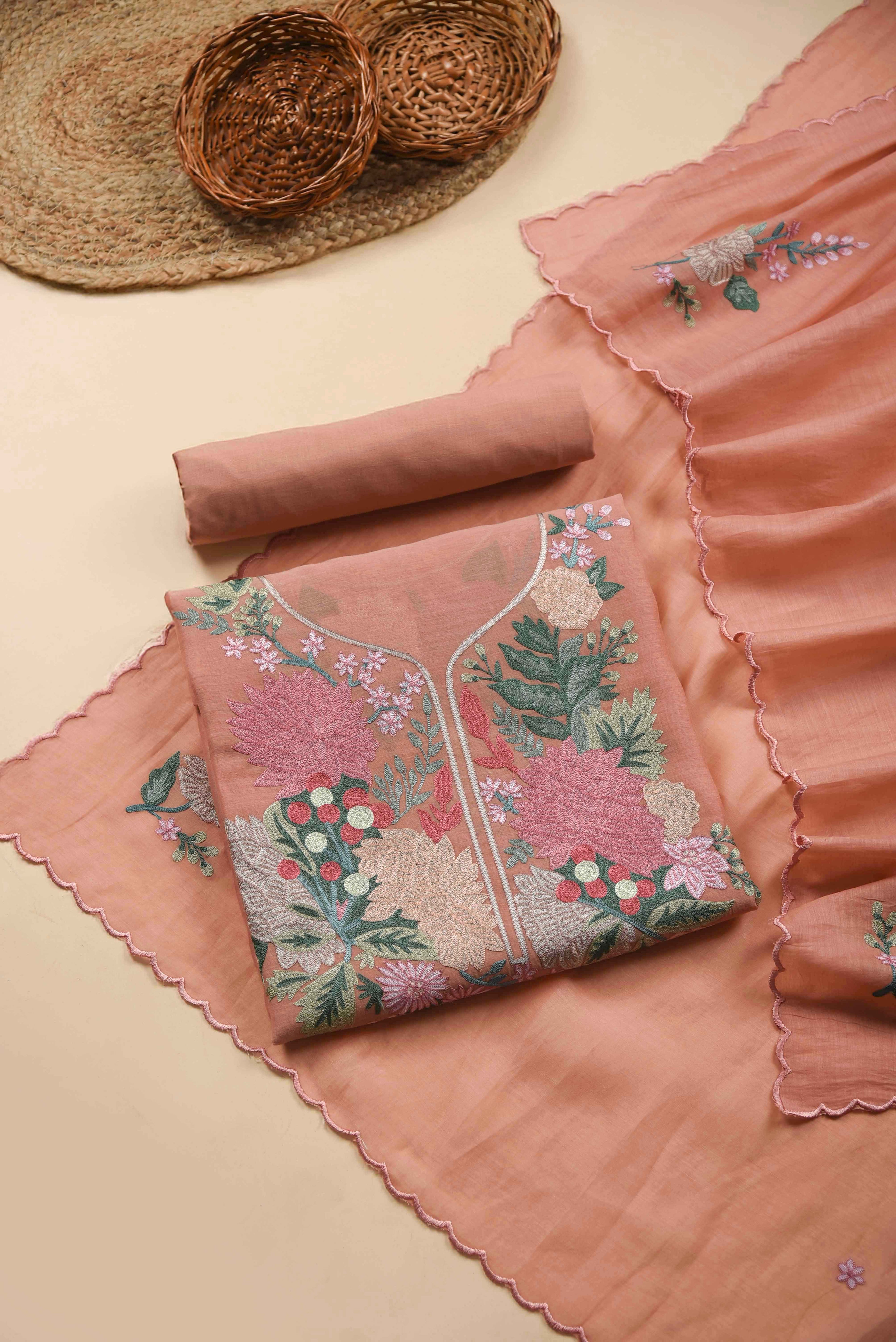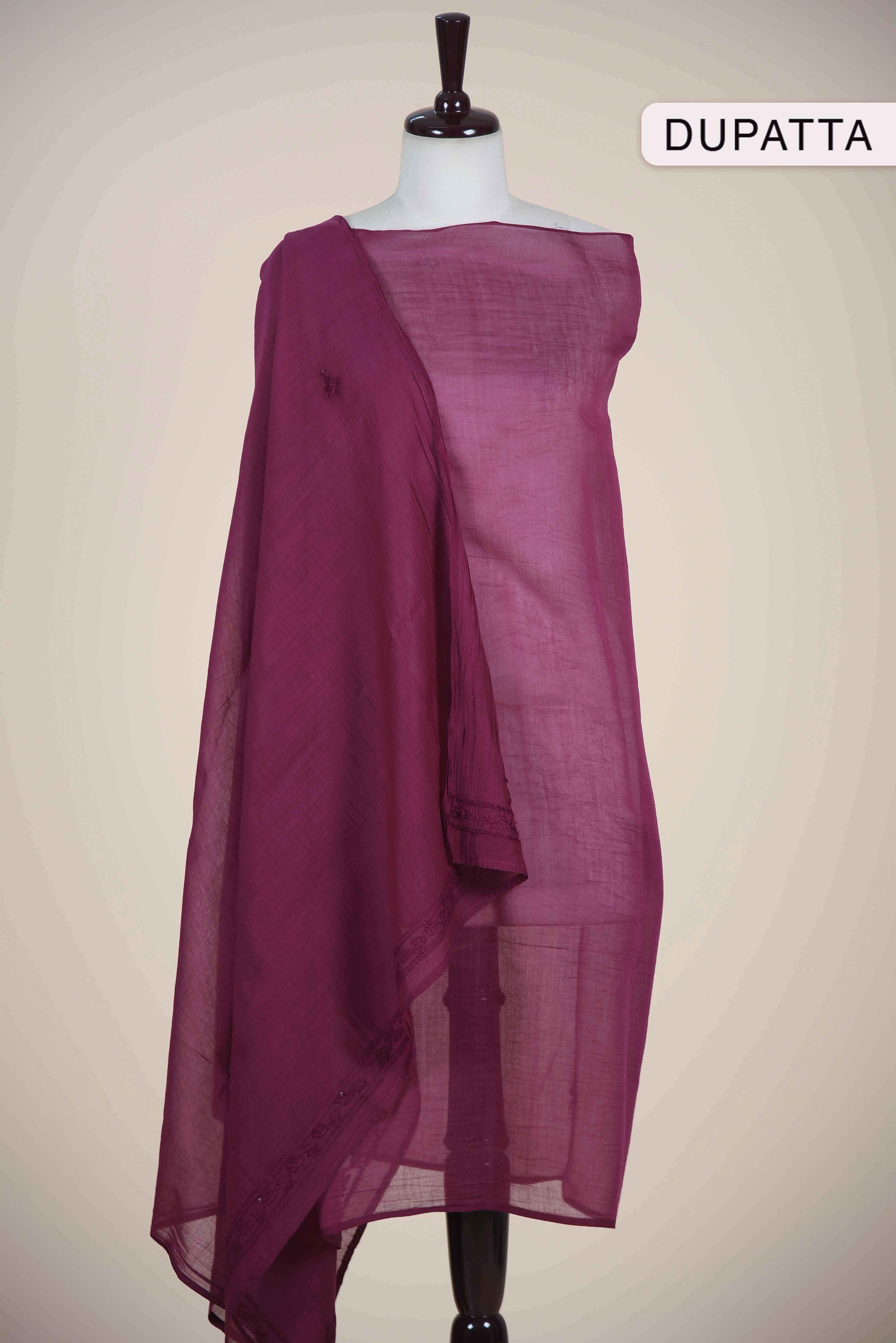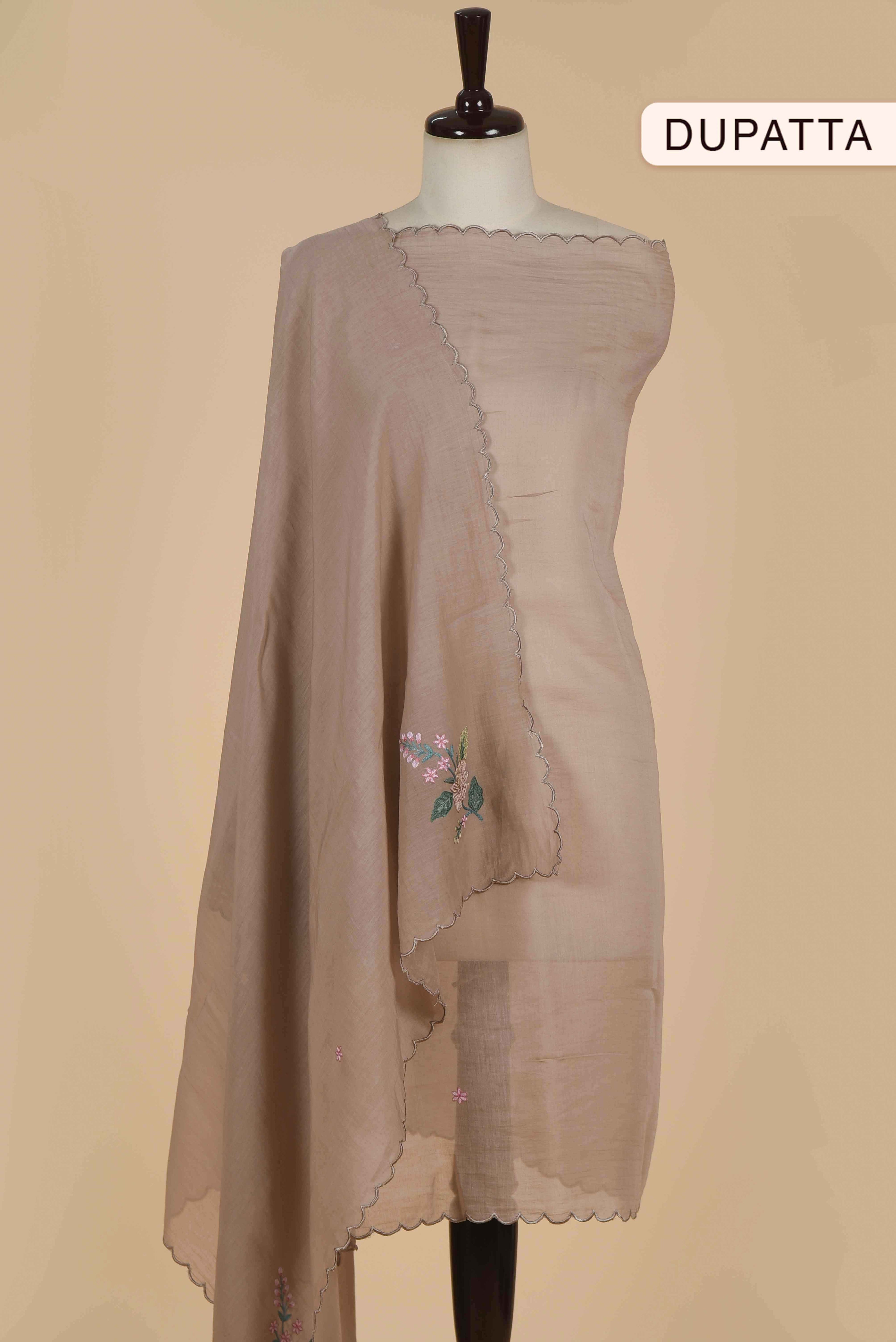 from 674 reviewsLight Mauve Mul Chanderi Embroidered Unstitched Suit Fabric Set With Mul Chanderi Embroidered Dupatta